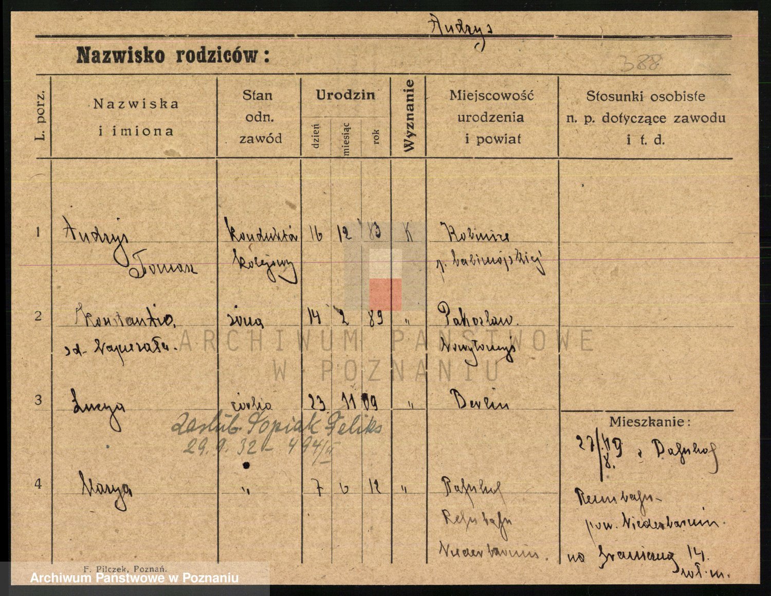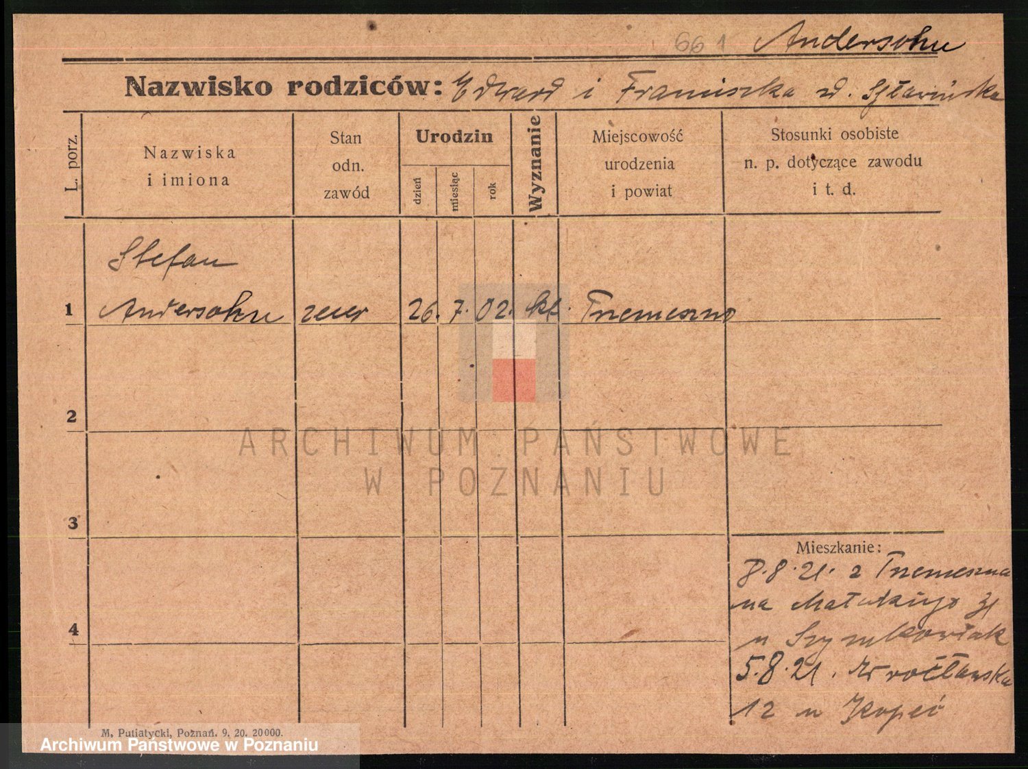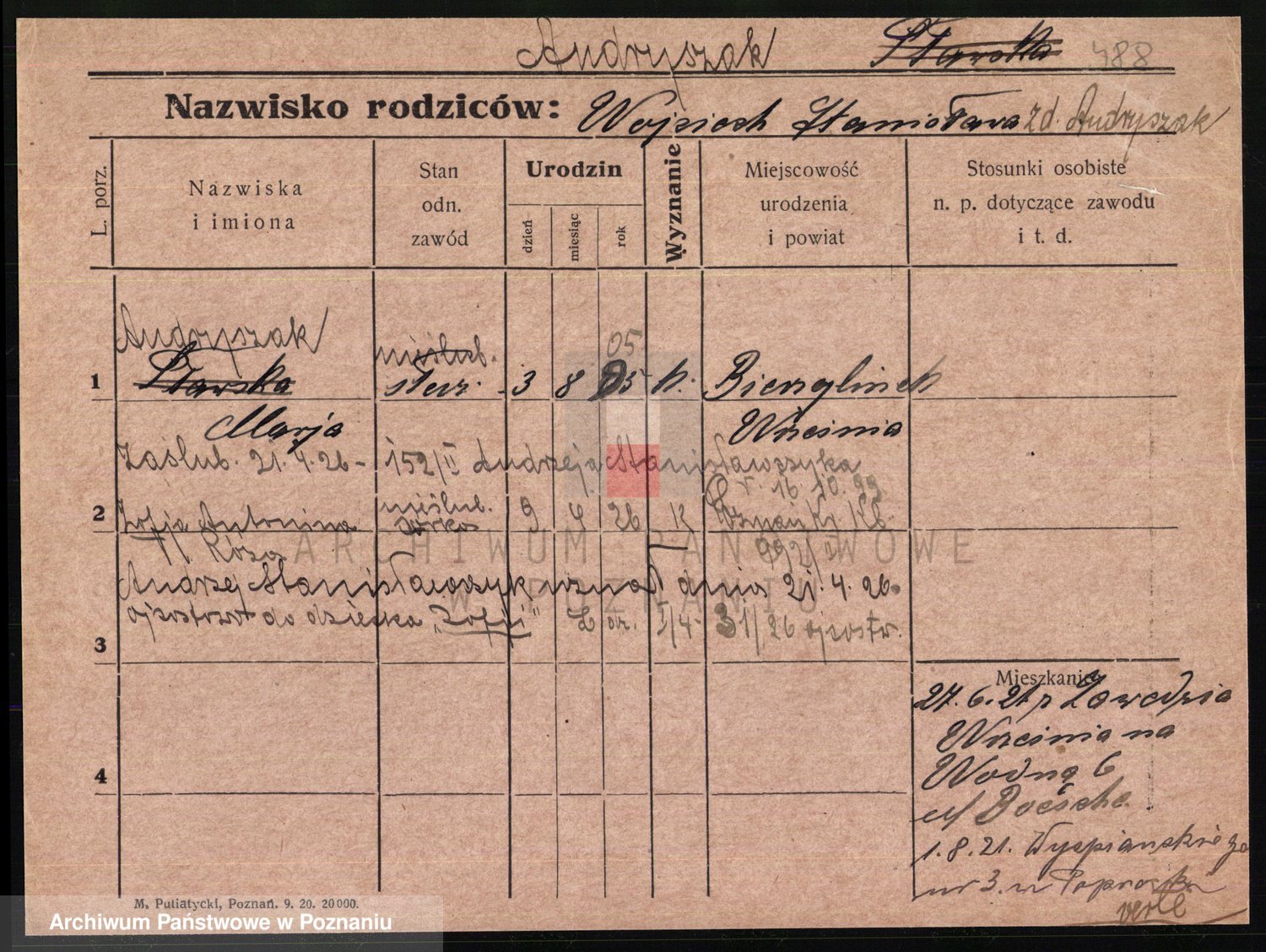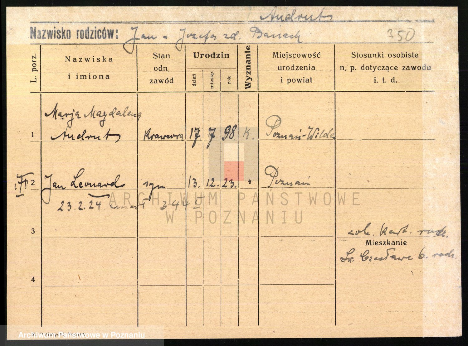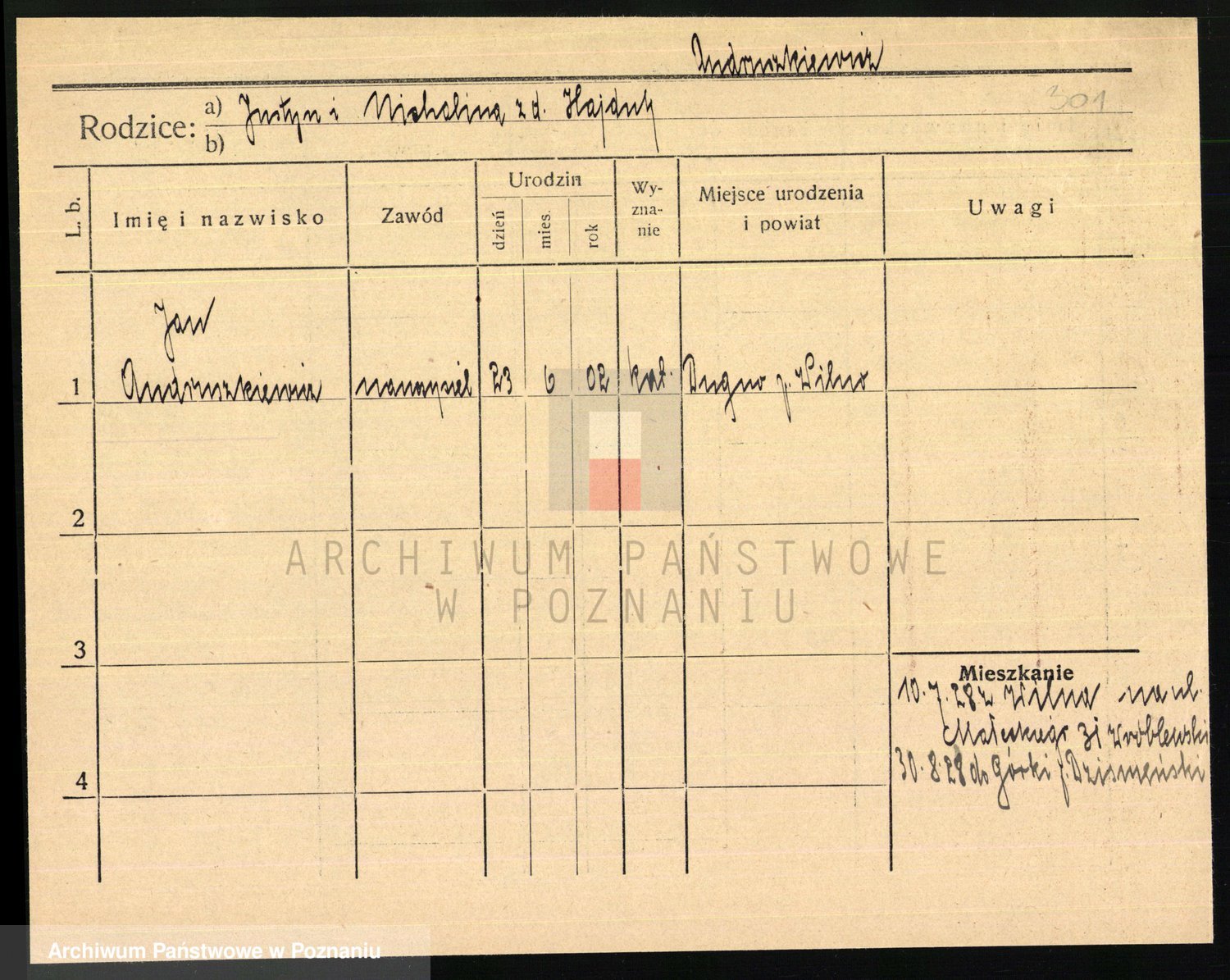 Podgląd karty osobowej dostępny jest po kliknięciu na nazwisko lub ikonkę karty. Można dokonywać powiększenia (ikony na górze) lub przechodzić między kolejnymi skanami (strzałki po bokach).