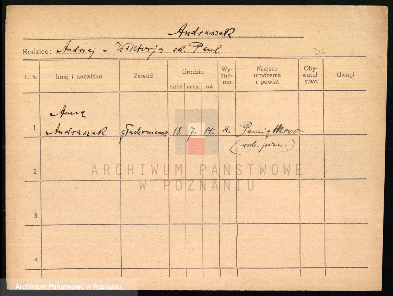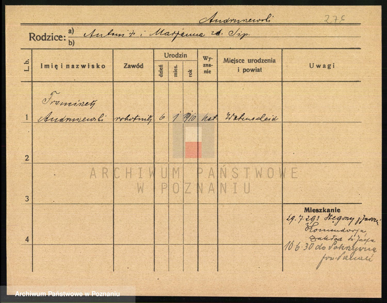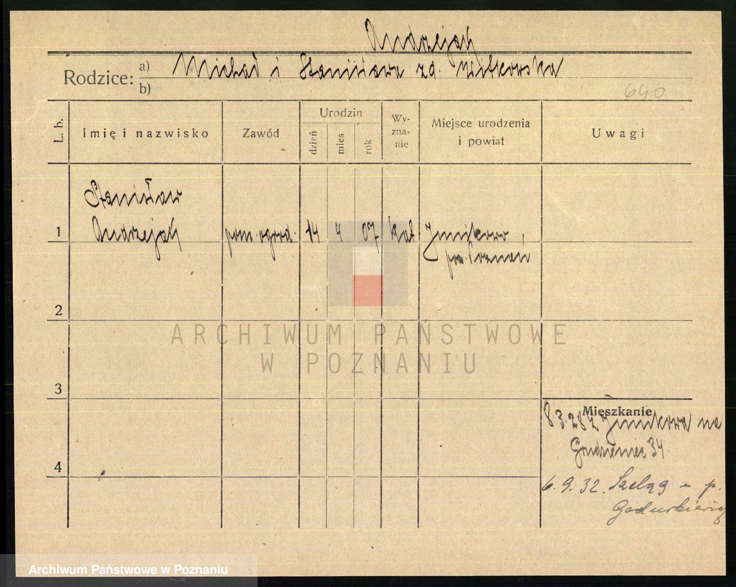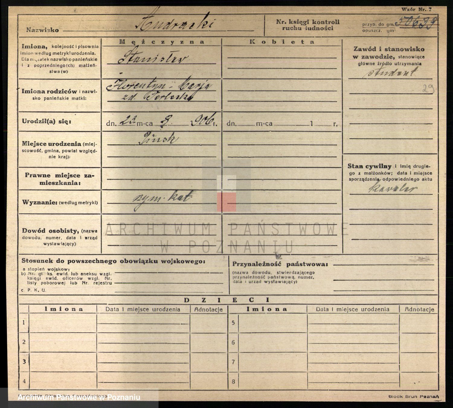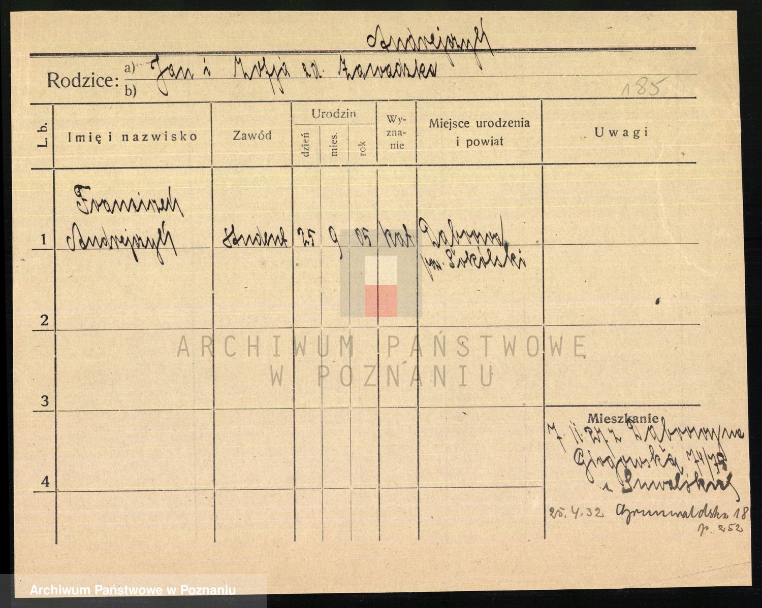 Podgląd karty osobowej dostępny jest po kliknięciu na nazwisko lub ikonkę karty. Można dokonywać powiększenia (ikony na górze) lub przechodzić między kolejnymi skanami (strzałki po bokach).