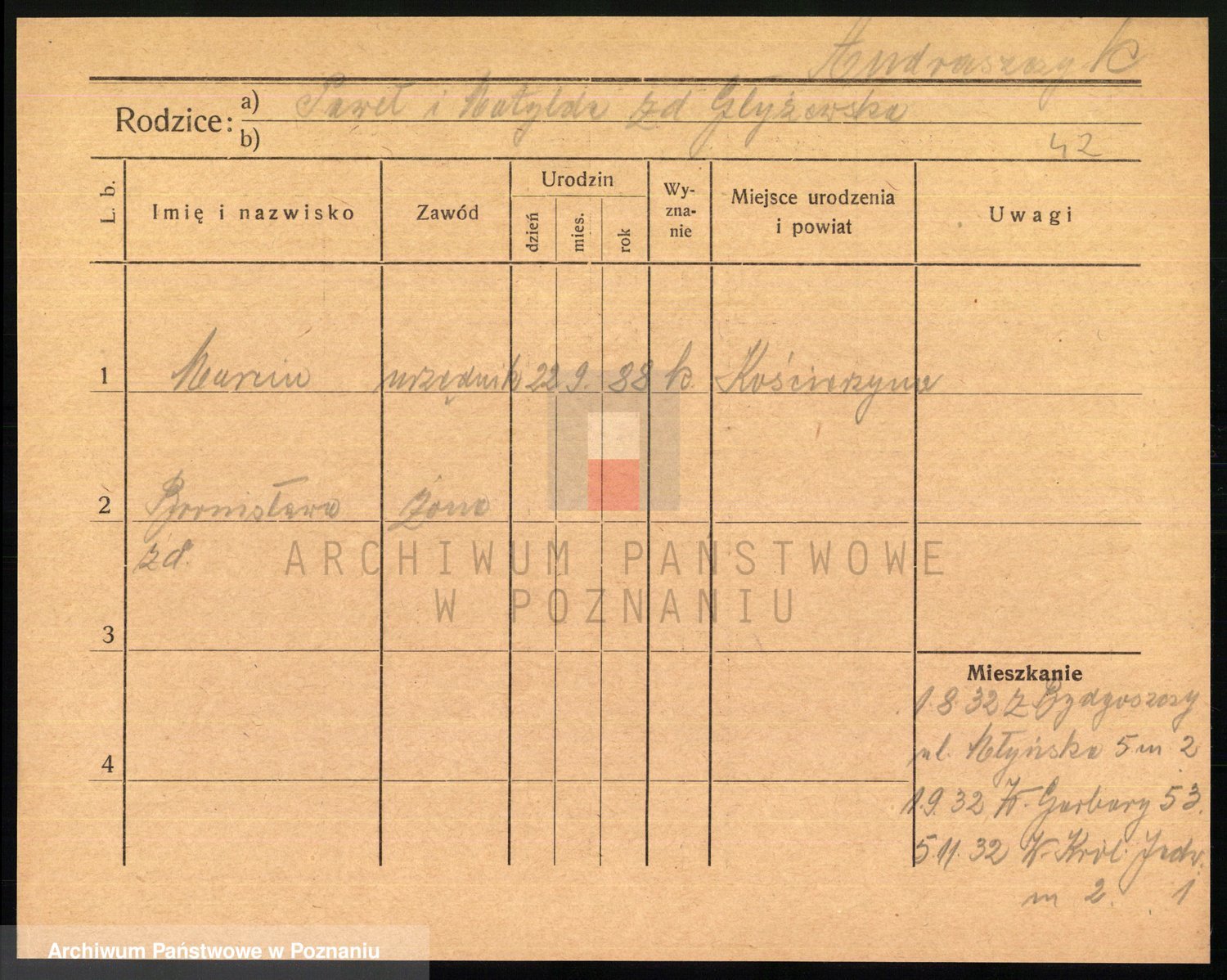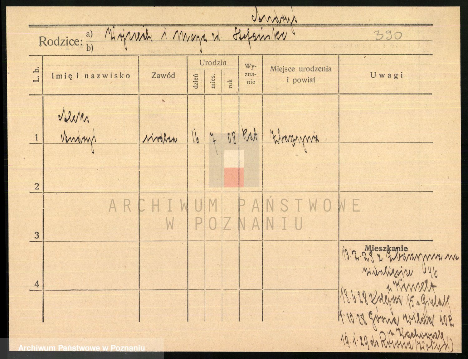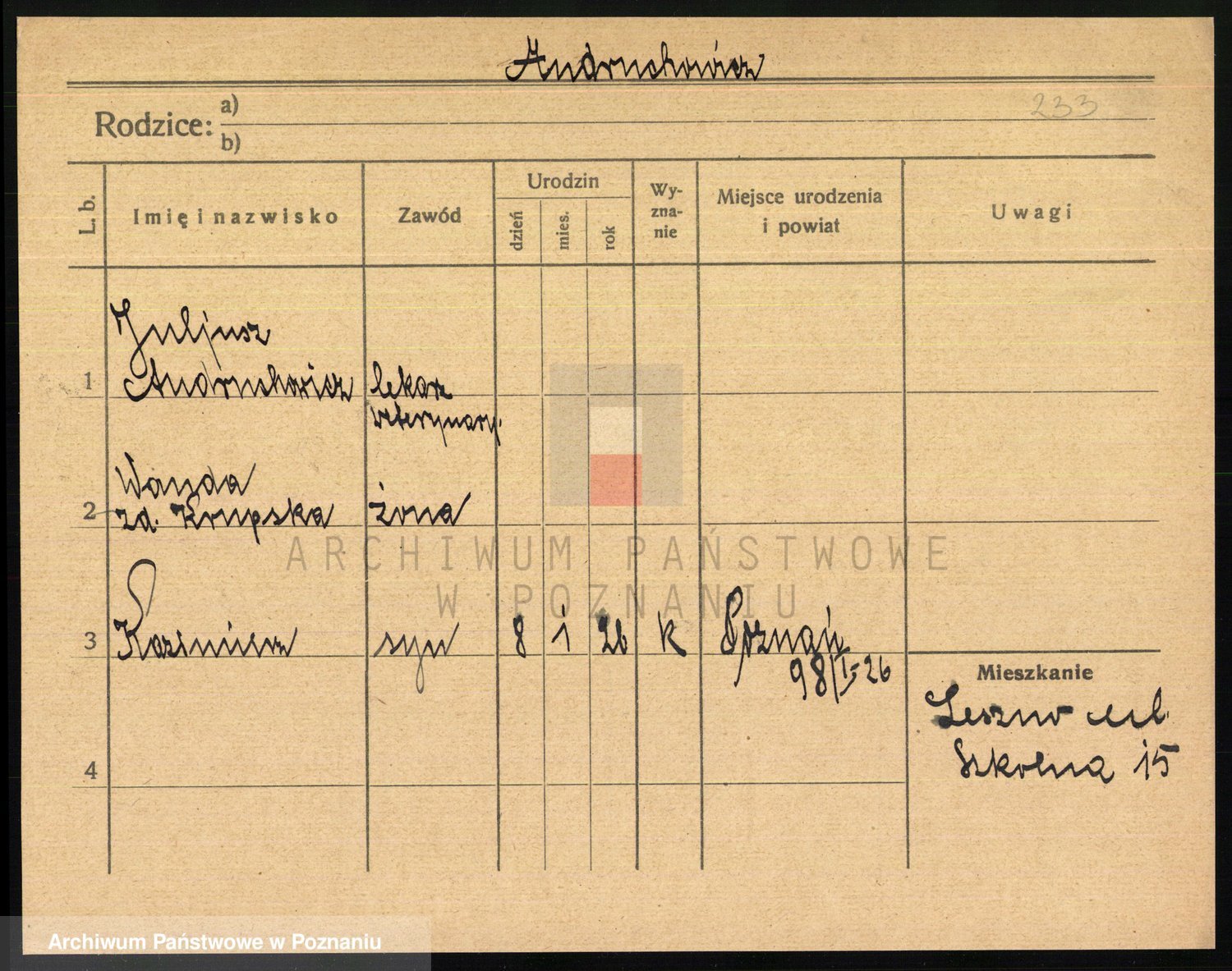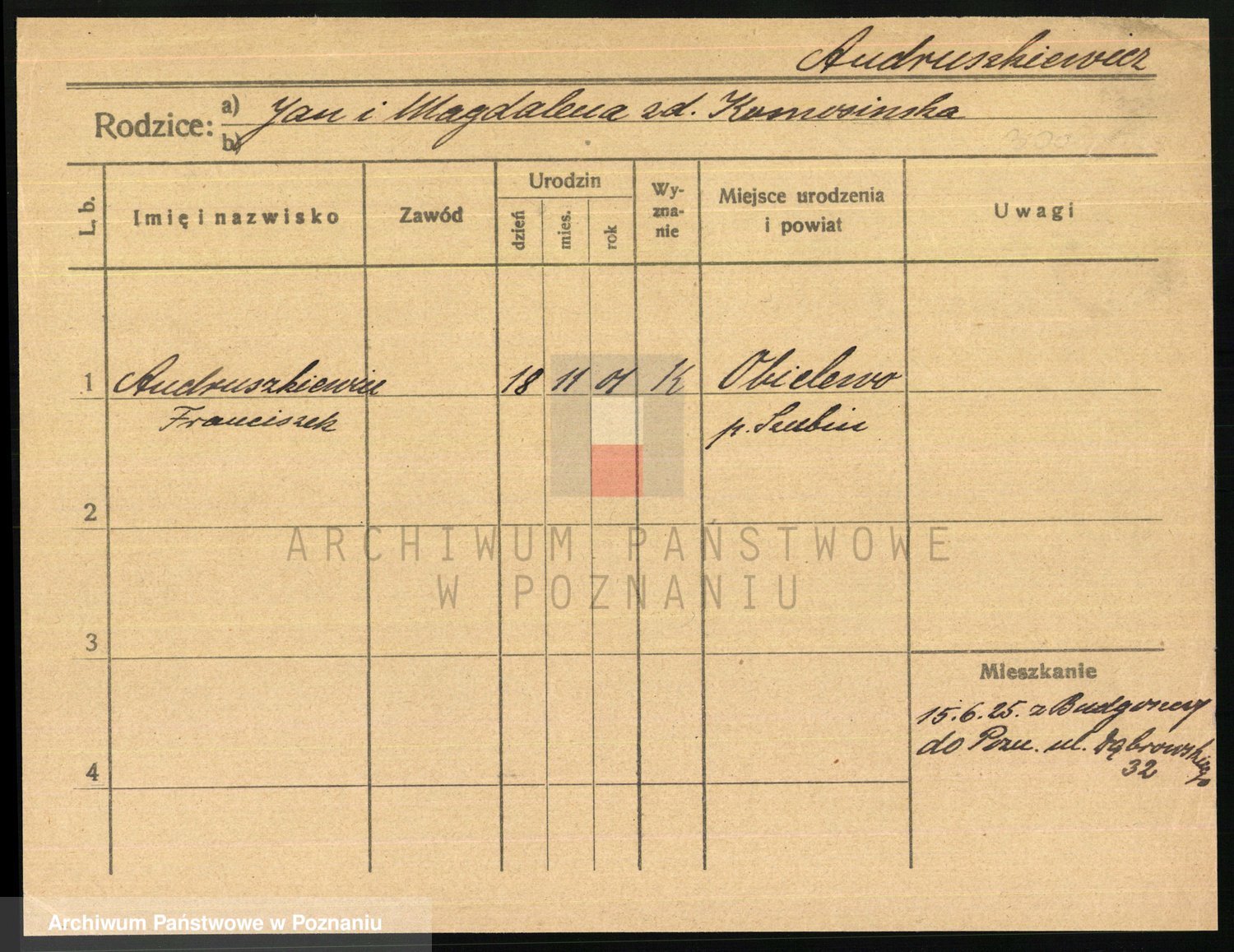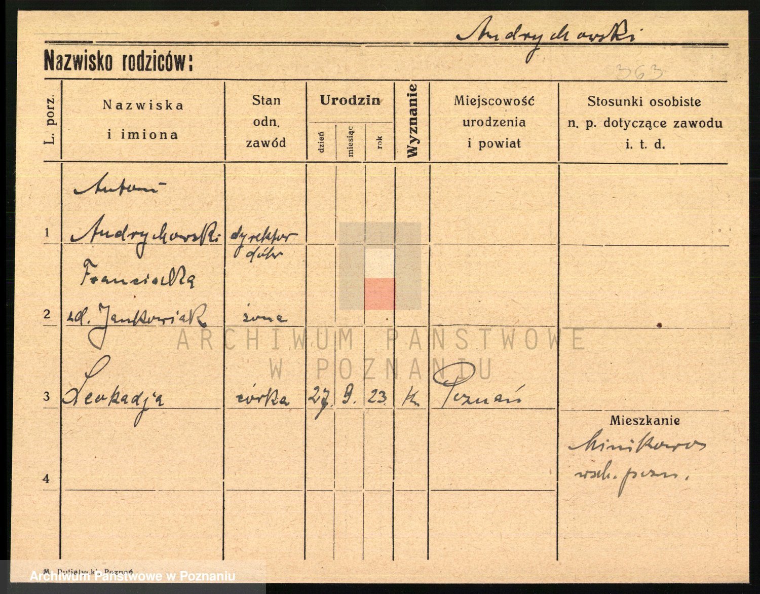 Podgląd karty osobowej dostępny jest po kliknięciu na nazwisko lub ikonkę karty. Można dokonywać powiększenia (ikony na górze) lub przechodzić między kolejnymi skanami (strzałki po bokach).