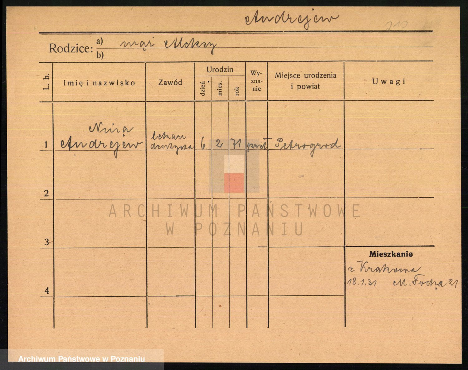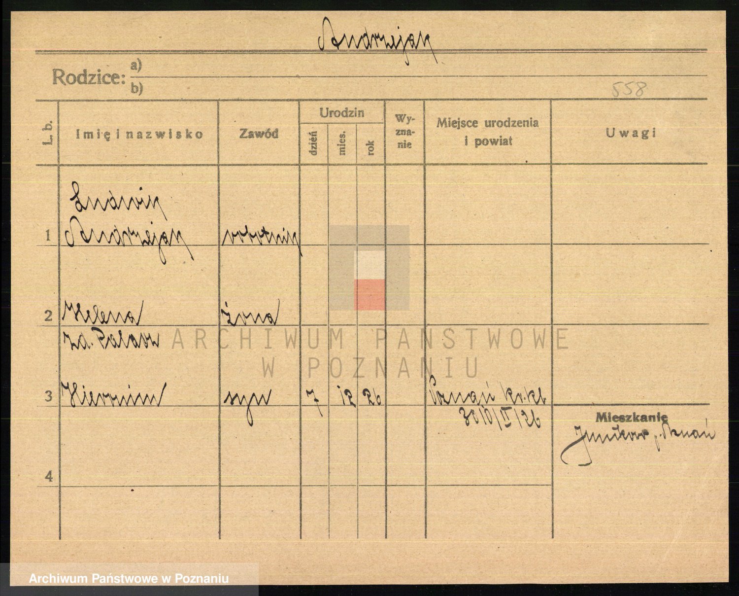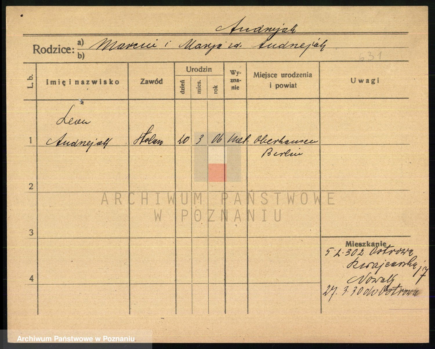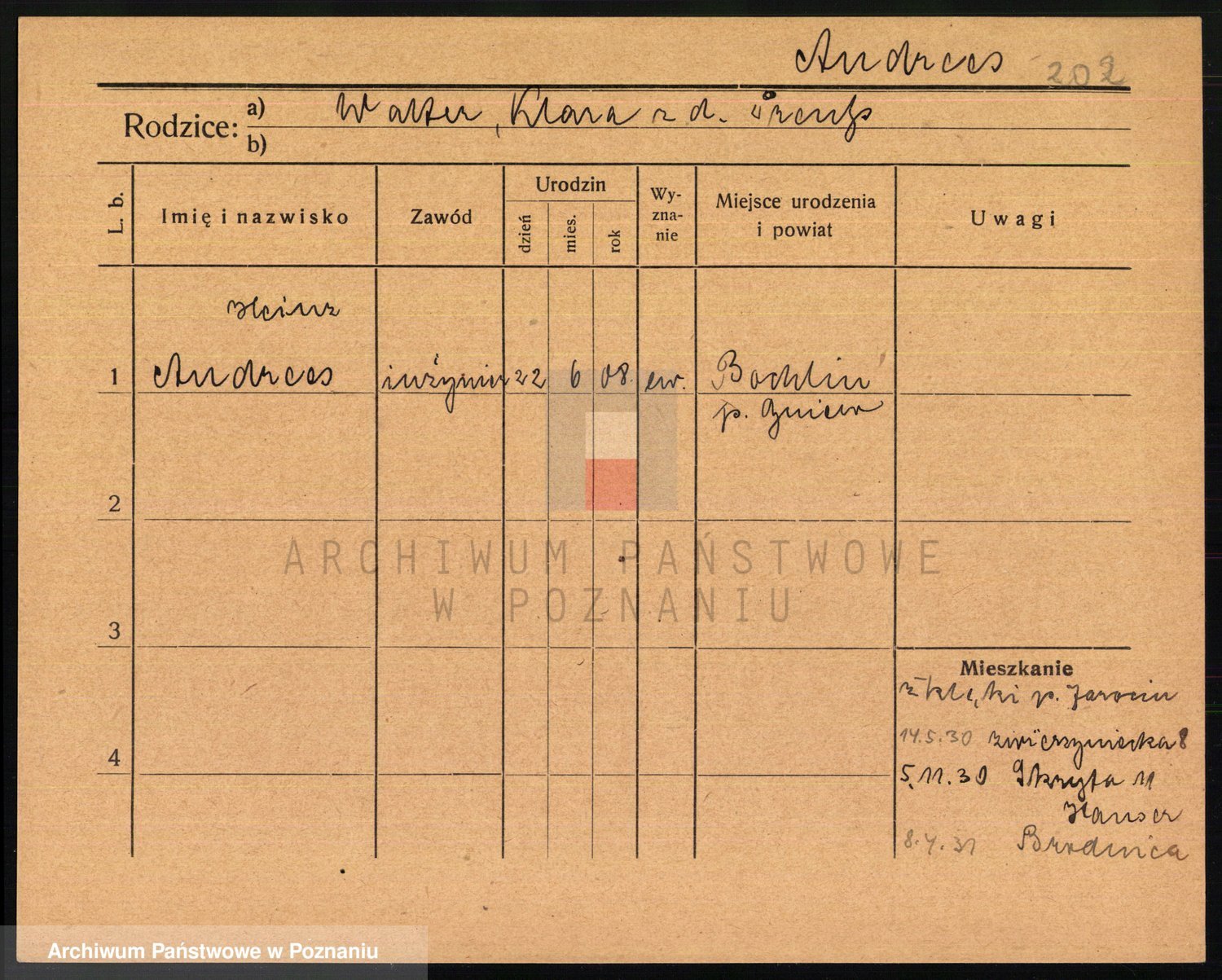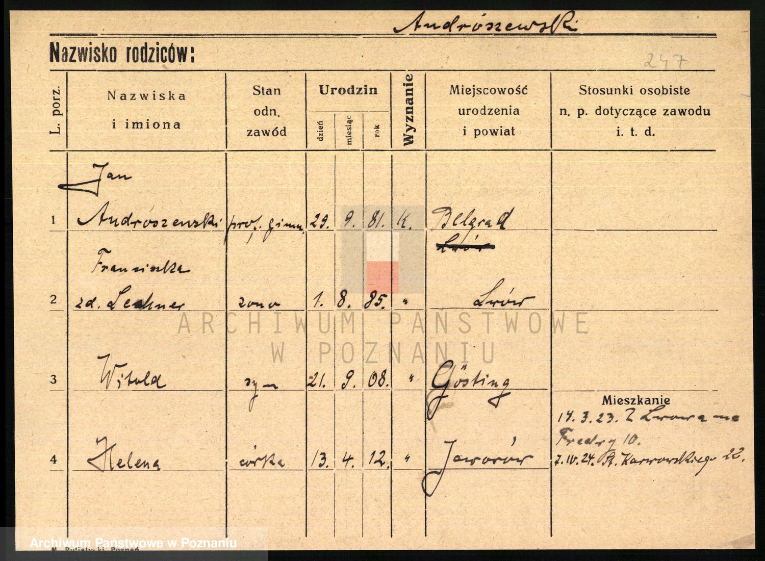 Podgląd karty osobowej dostępny jest po kliknięciu na nazwisko lub ikonkę karty. Można dokonywać powiększenia (ikony na górze) lub przechodzić między kolejnymi skanami (strzałki po bokach).