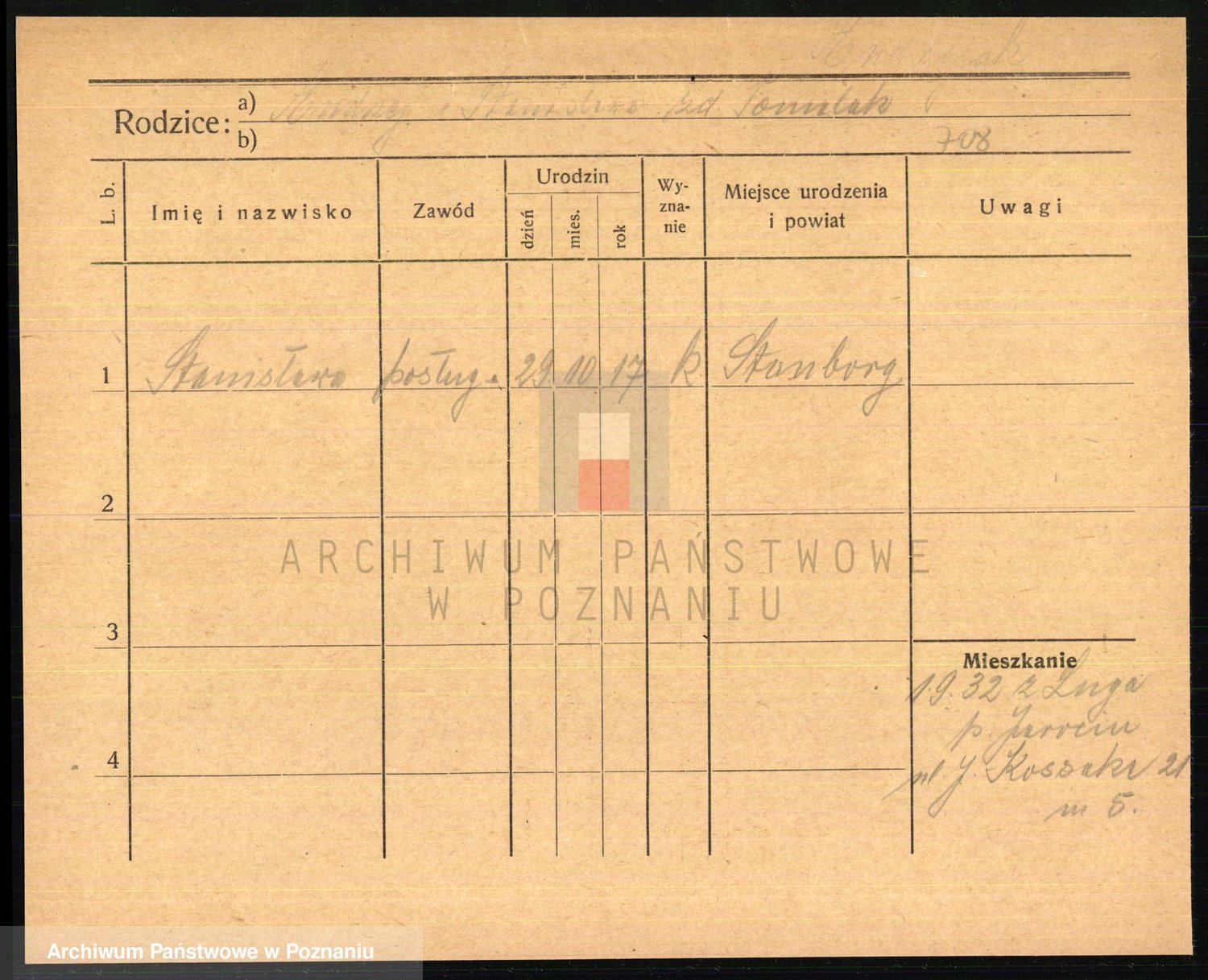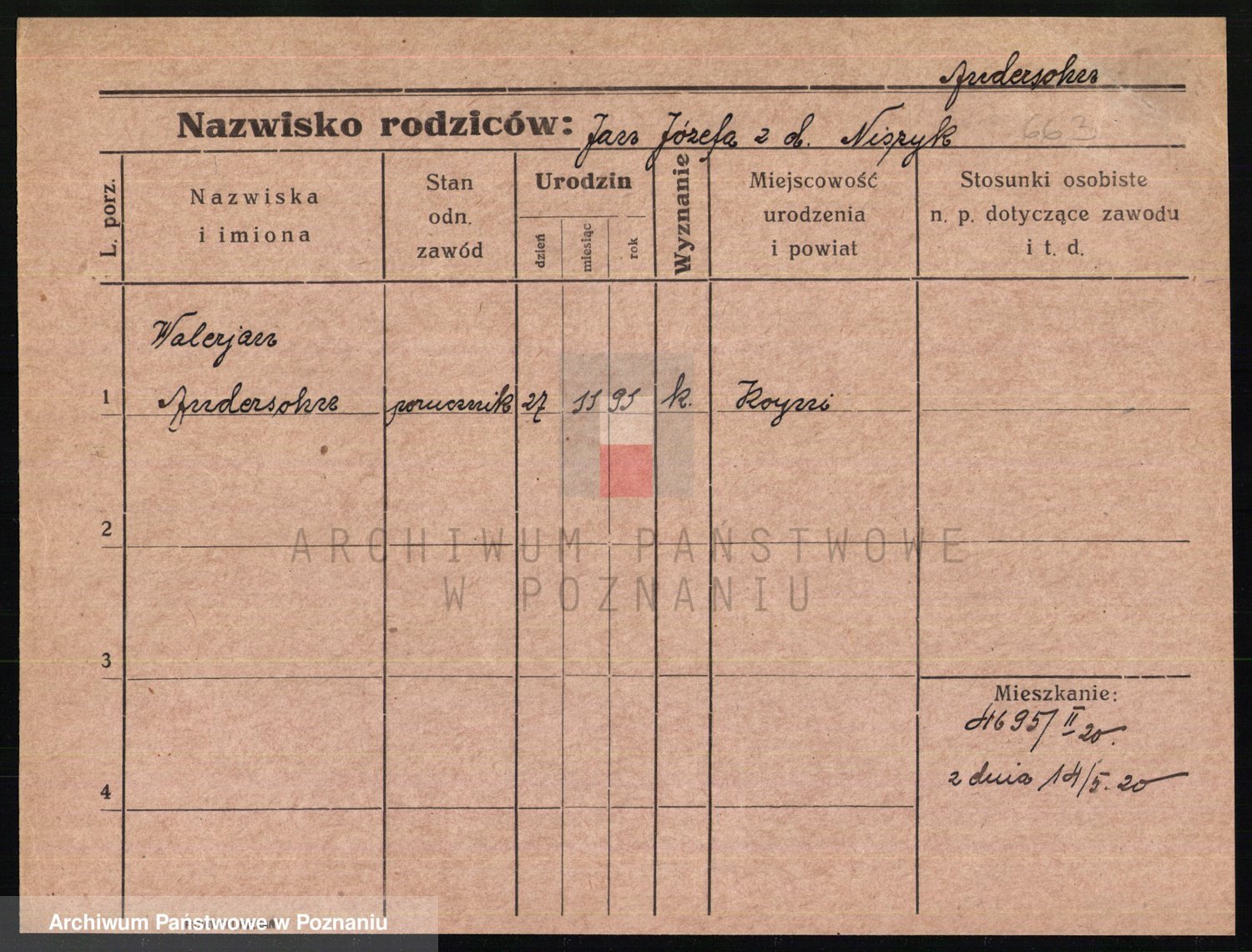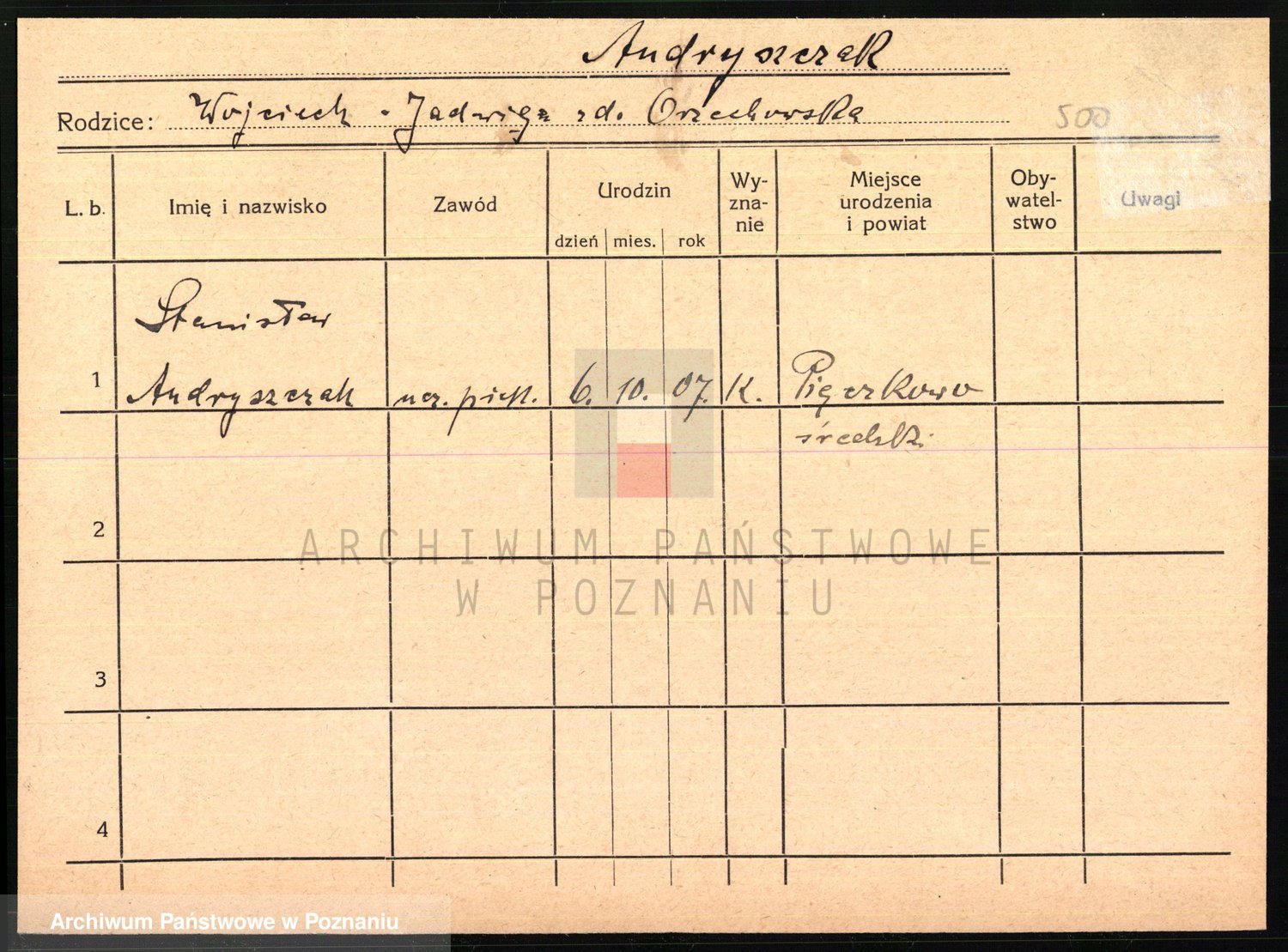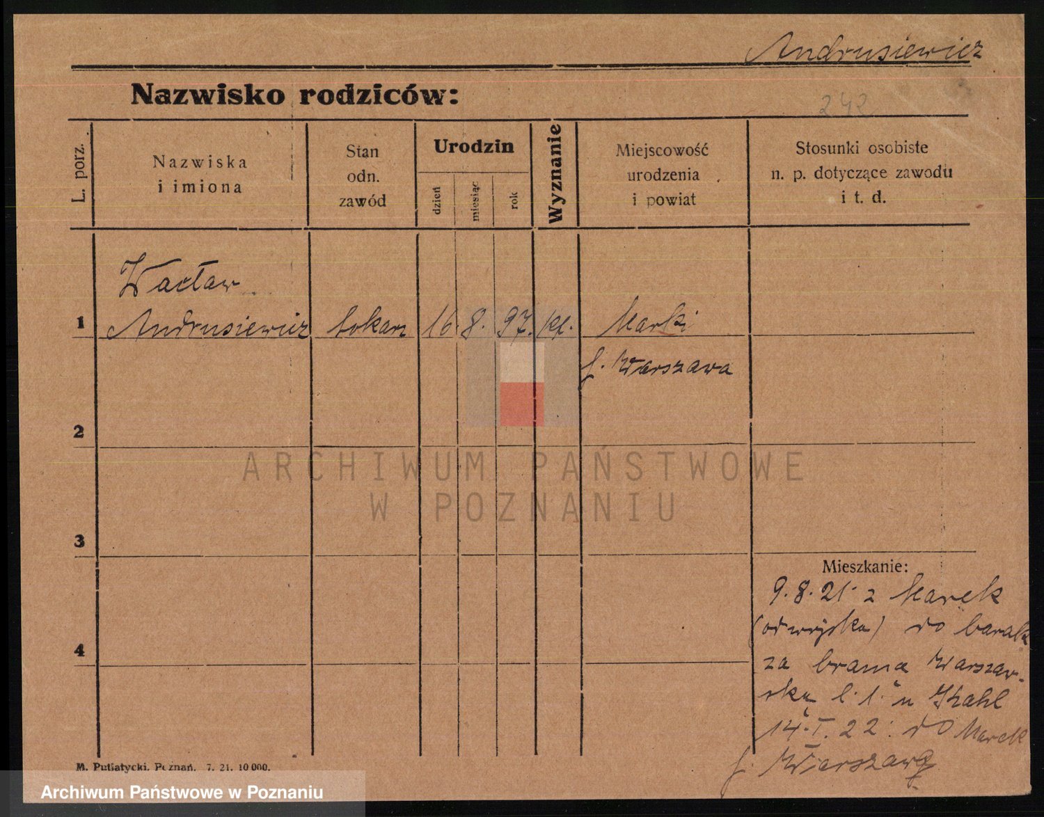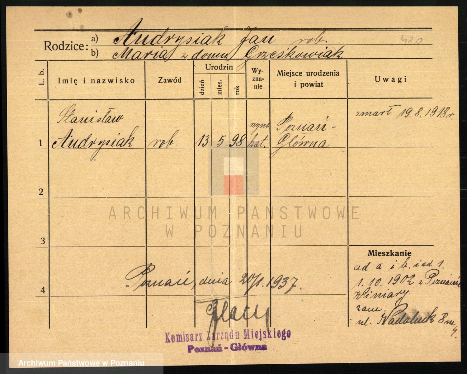 Podgląd karty osobowej dostępny jest po kliknięciu na nazwisko lub ikonkę karty. Można dokonywać powiększenia (ikony na górze) lub przechodzić między kolejnymi skanami (strzałki po bokach).