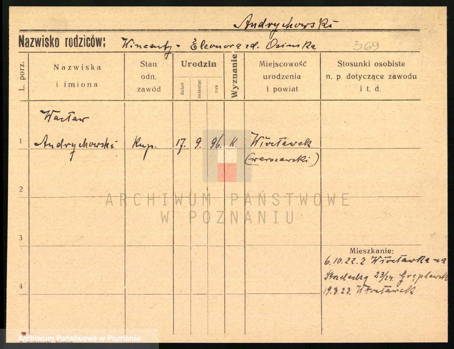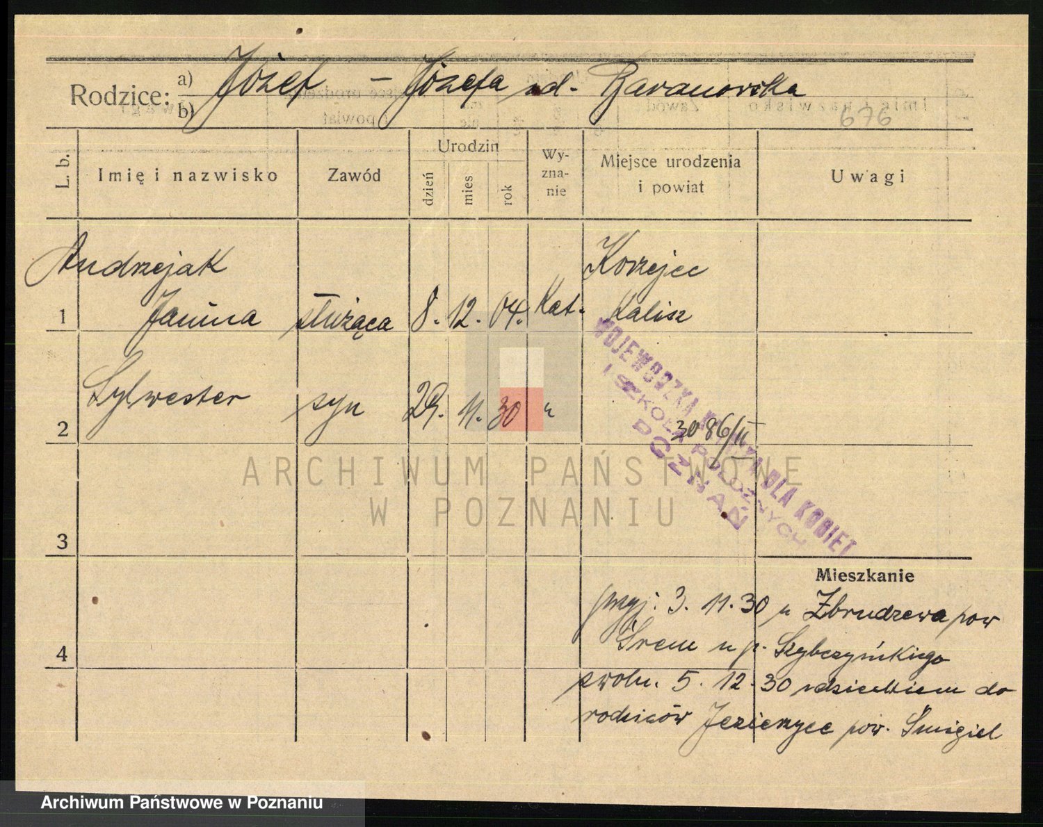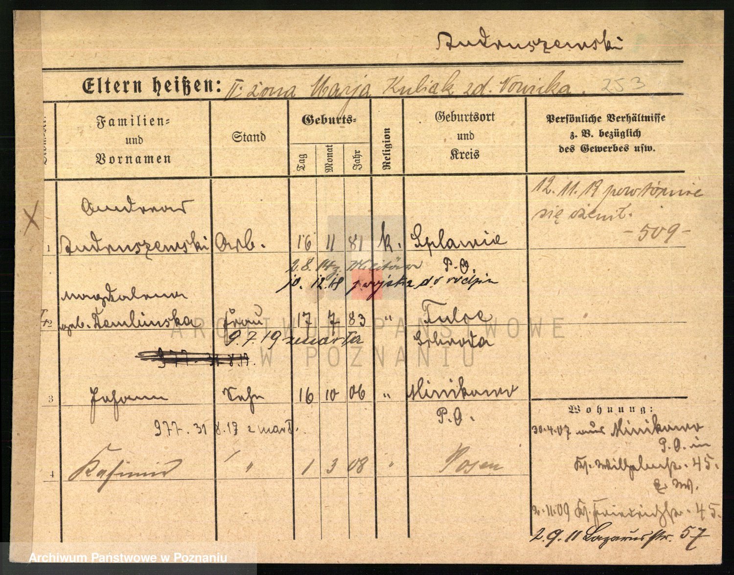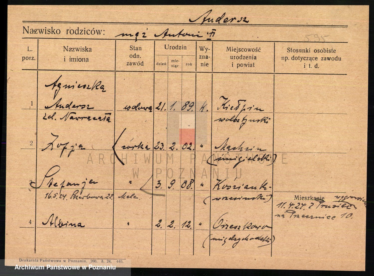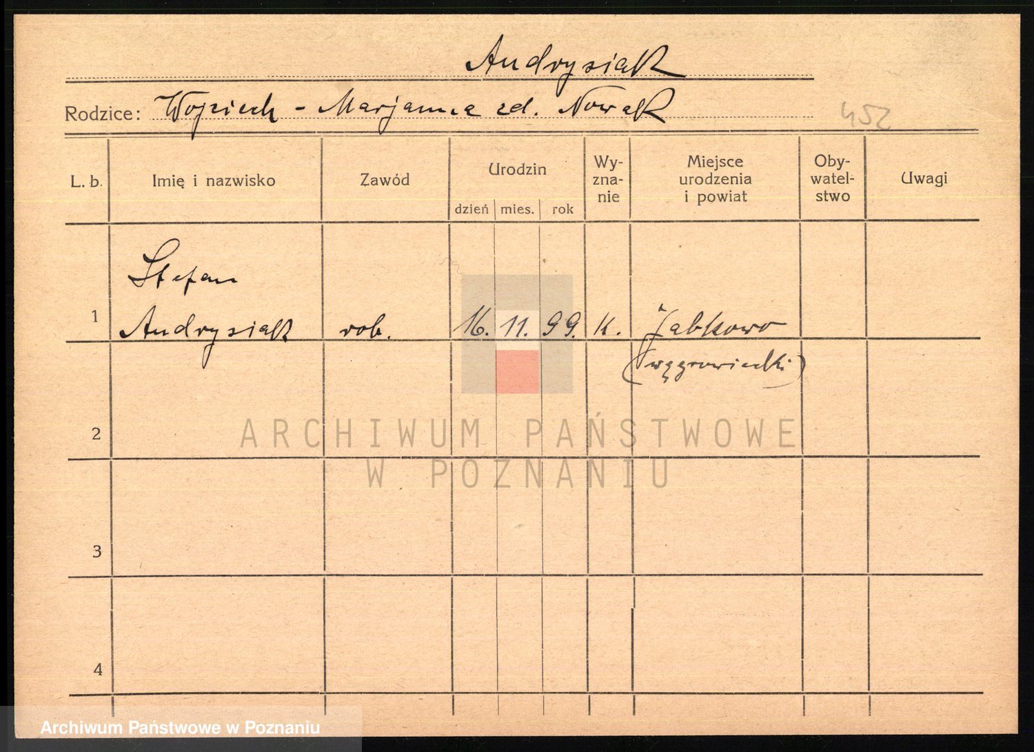 Podgląd karty osobowej dostępny jest po kliknięciu na nazwisko lub ikonkę karty. Można dokonywać powiększenia (ikony na górze) lub przechodzić między kolejnymi skanami (strzałki po bokach).