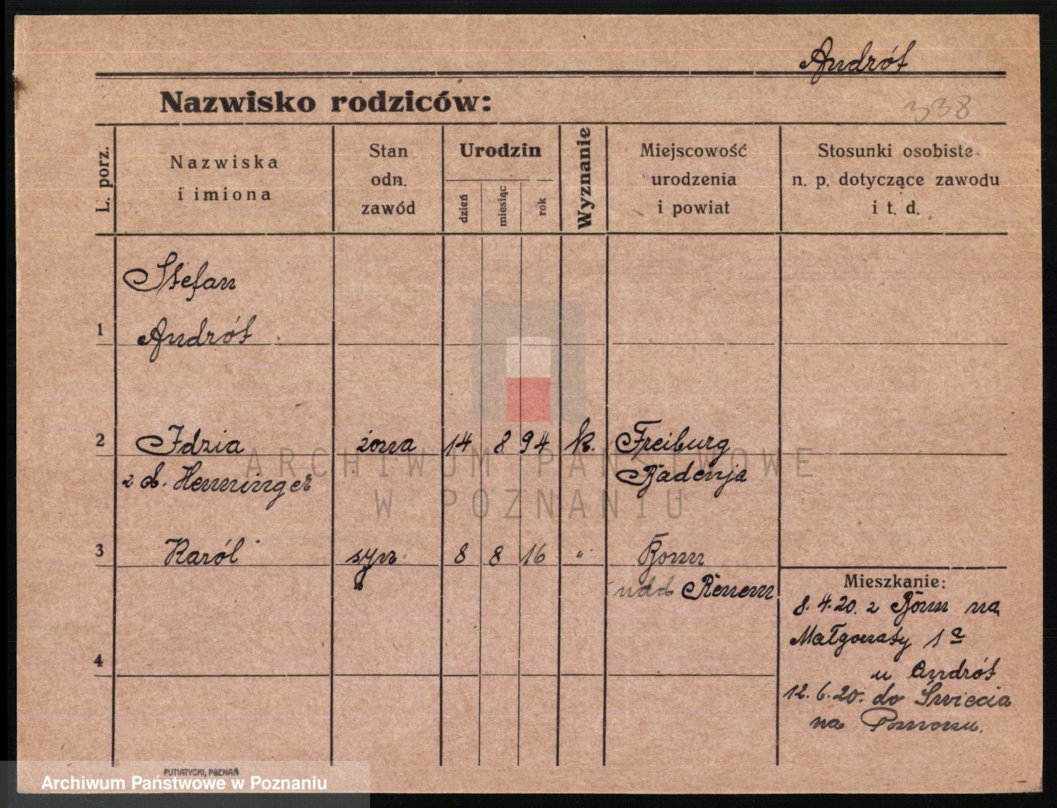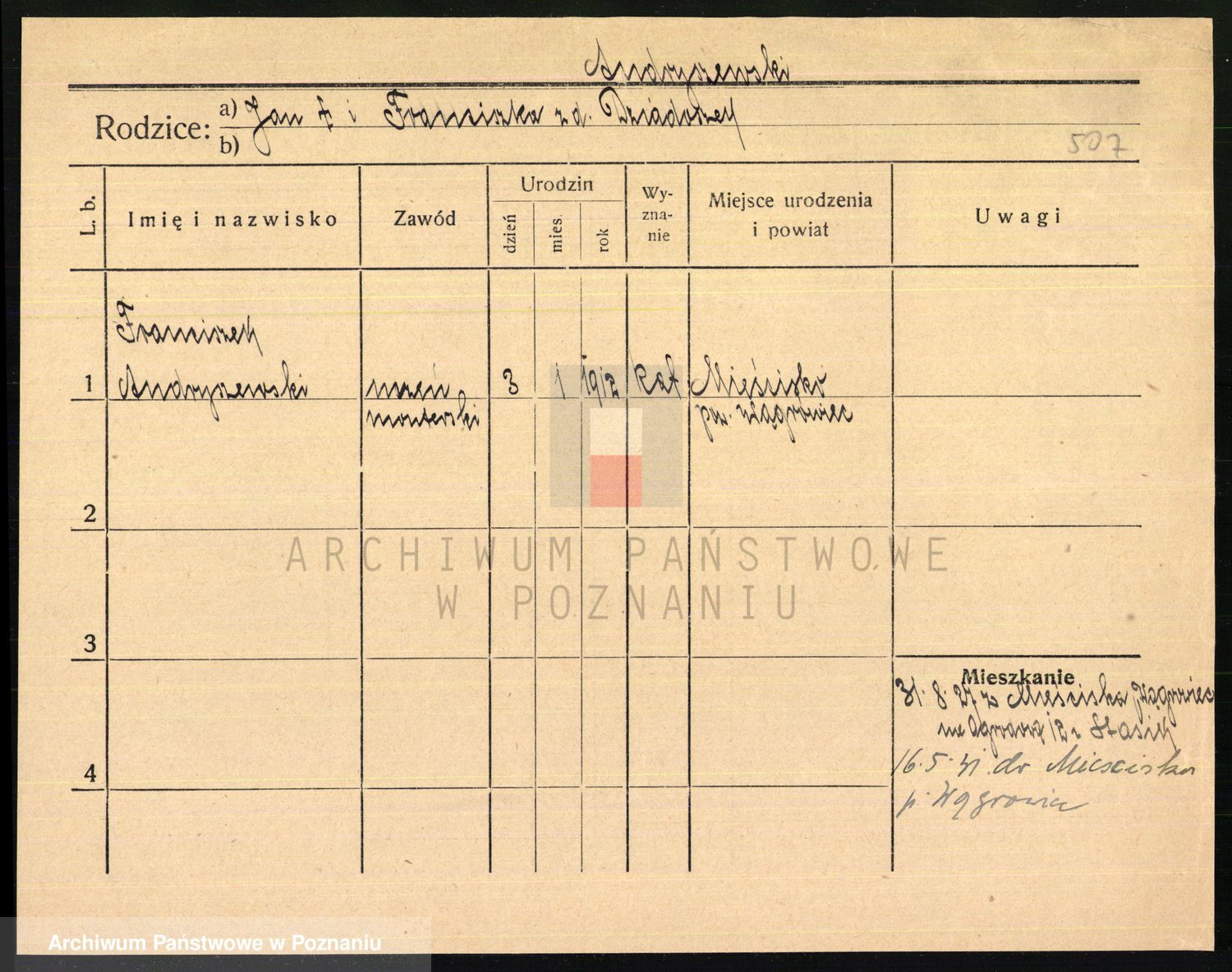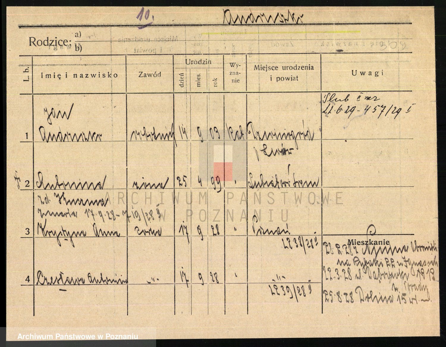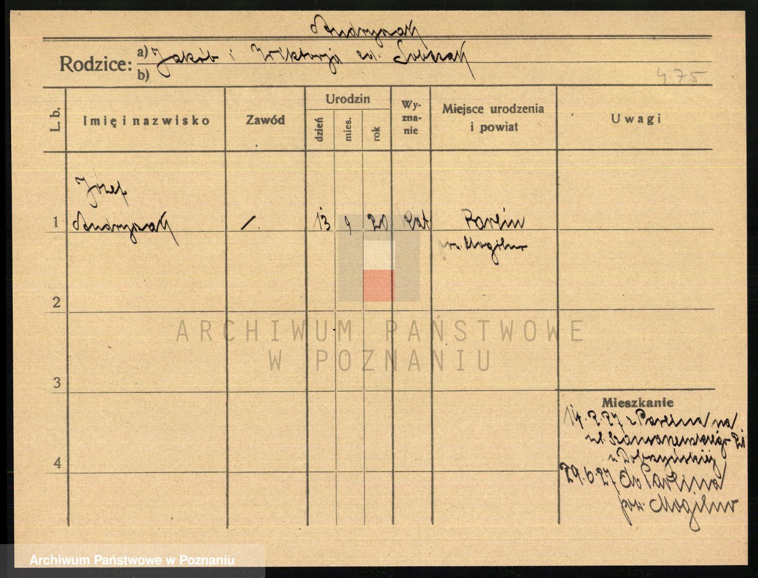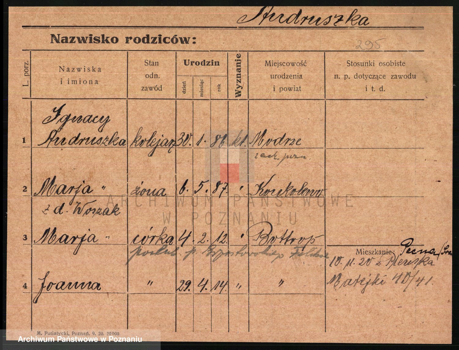 Podgląd karty osobowej dostępny jest po kliknięciu na nazwisko lub ikonkę karty. Można dokonywać powiększenia (ikony na górze) lub przechodzić między kolejnymi skanami (strzałki po bokach).