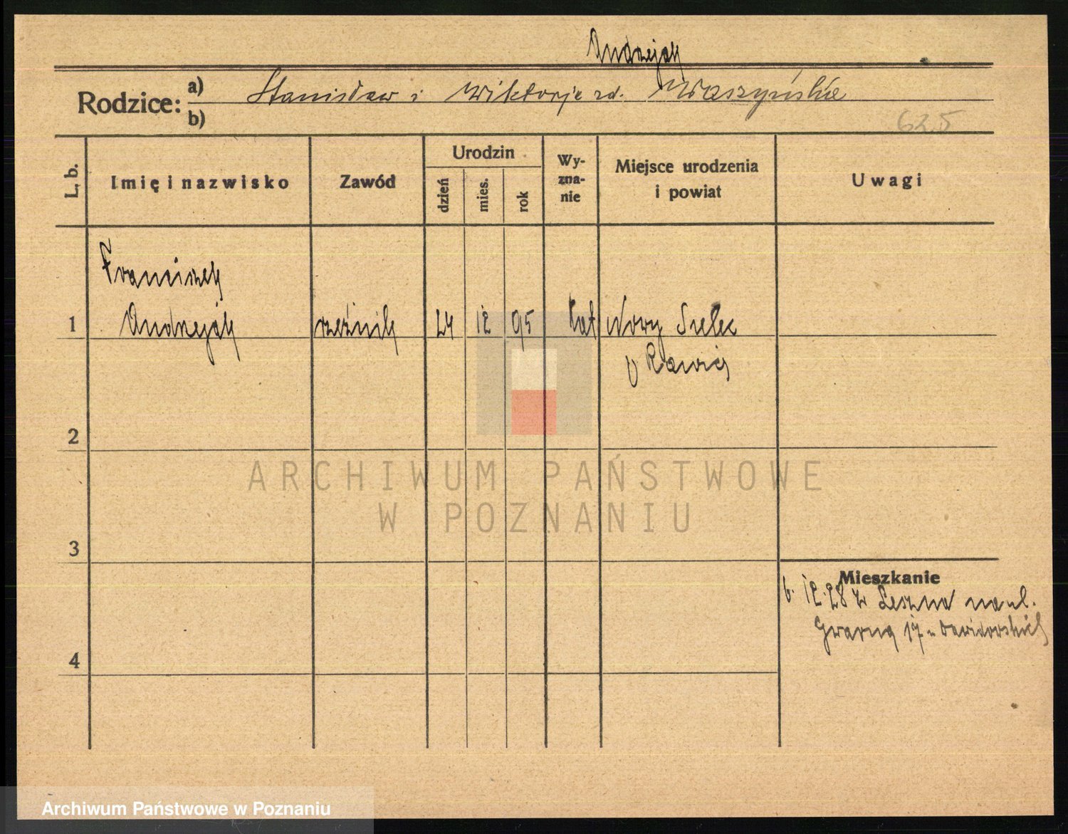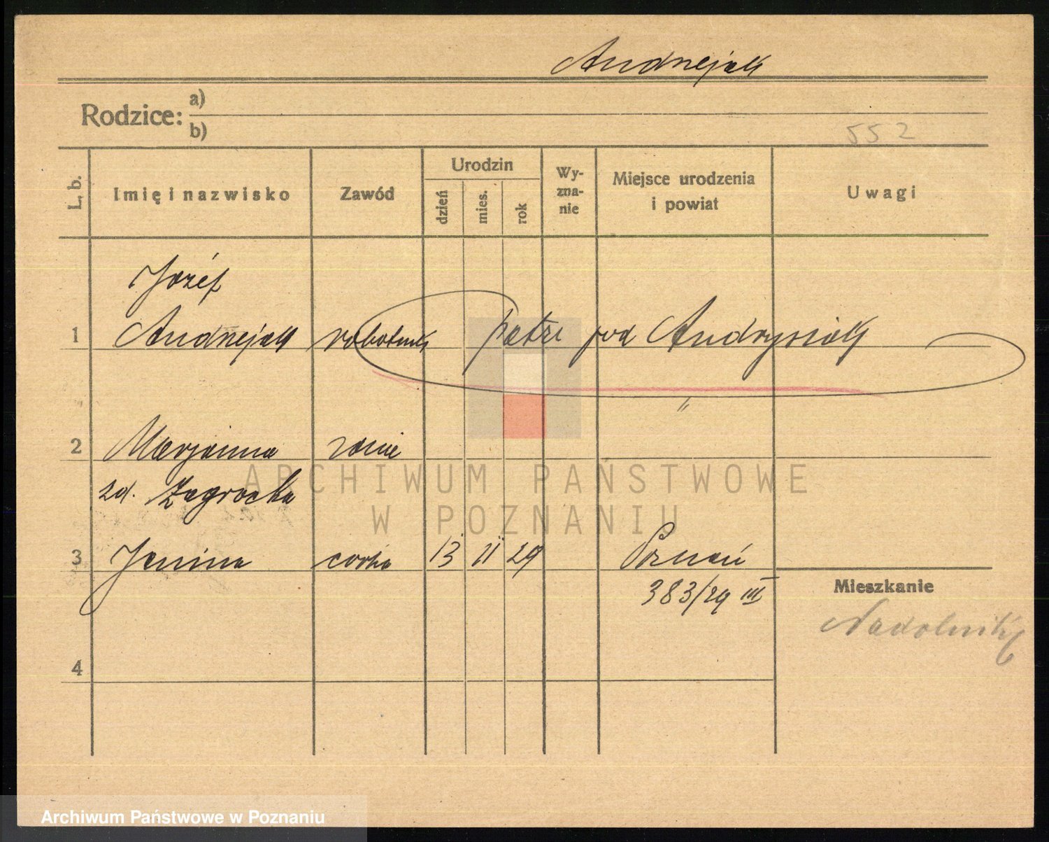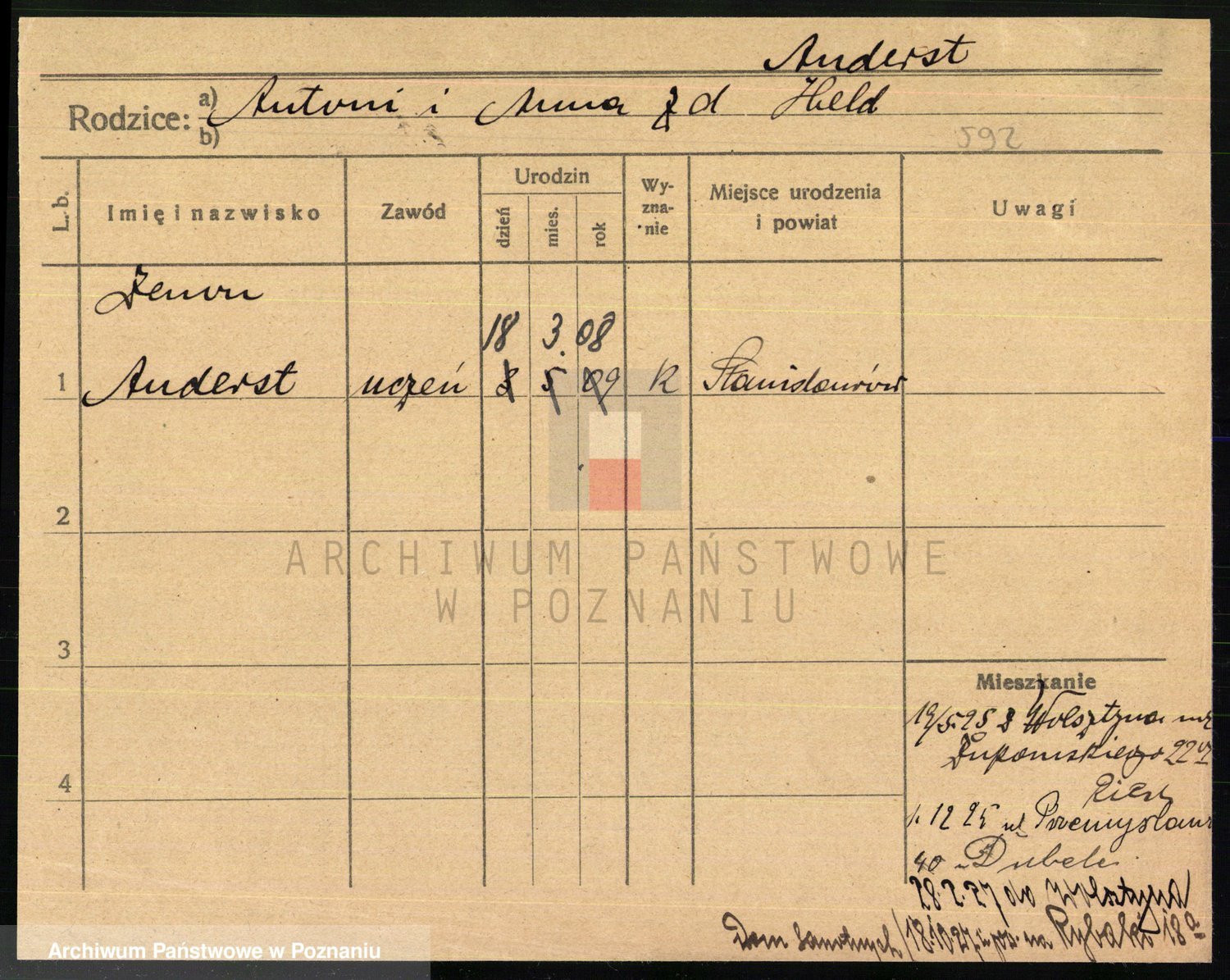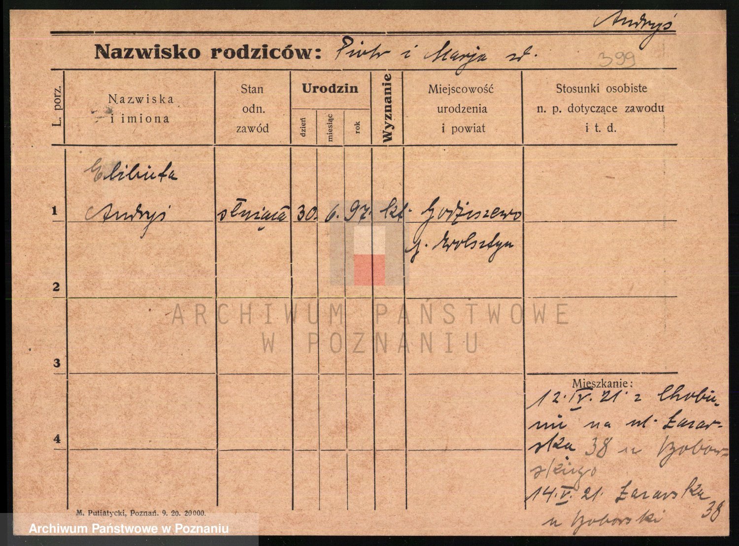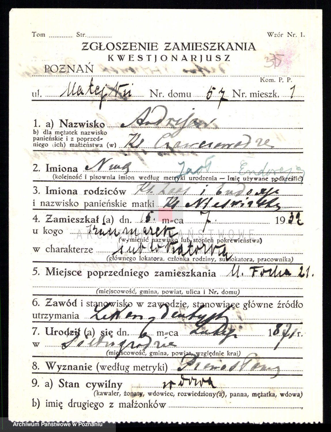 Podgląd karty osobowej dostępny jest po kliknięciu na nazwisko lub ikonkę karty. Można dokonywać powiększenia (ikony na górze) lub przechodzić między kolejnymi skanami (strzałki po bokach).