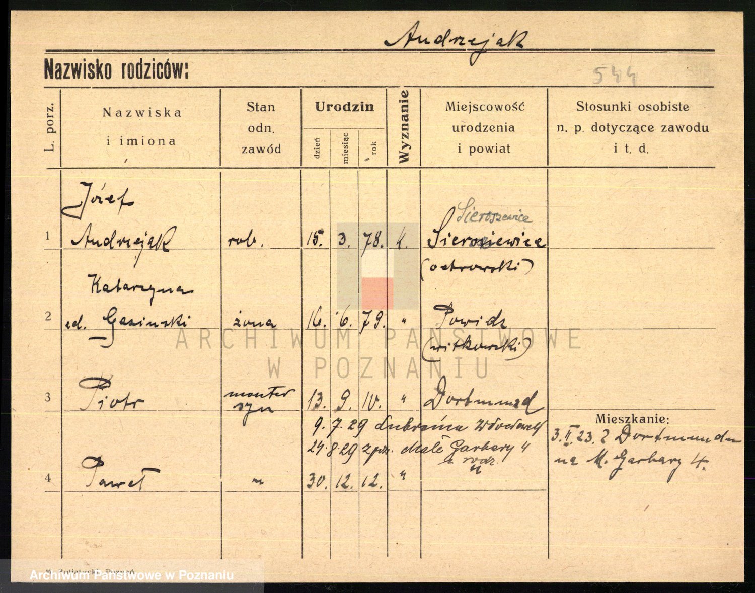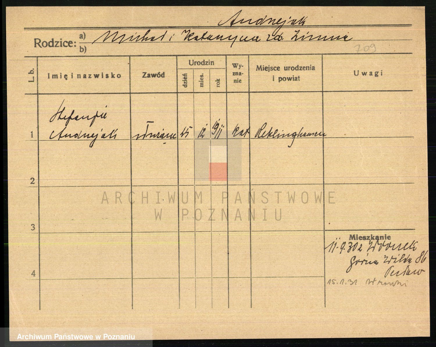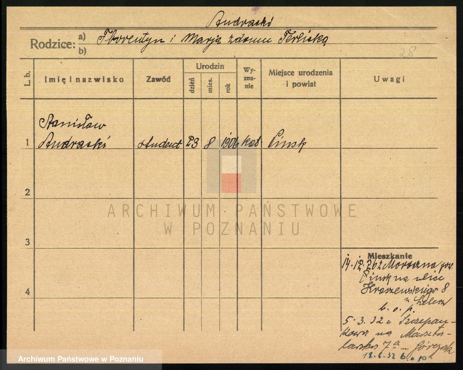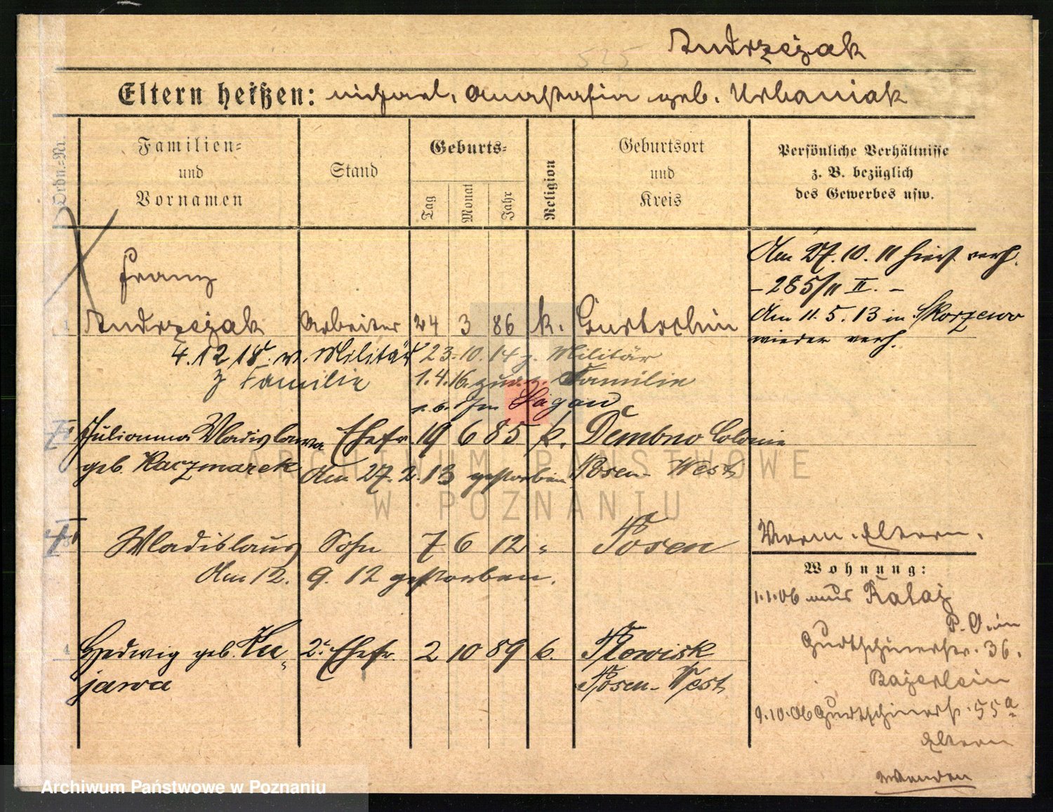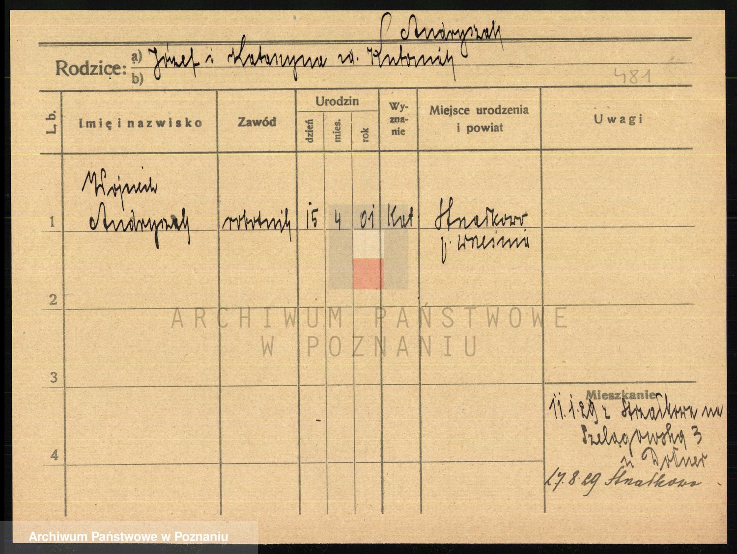 Podgląd karty osobowej dostępny jest po kliknięciu na nazwisko lub ikonkę karty. Można dokonywać powiększenia (ikony na górze) lub przechodzić między kolejnymi skanami (strzałki po bokach).