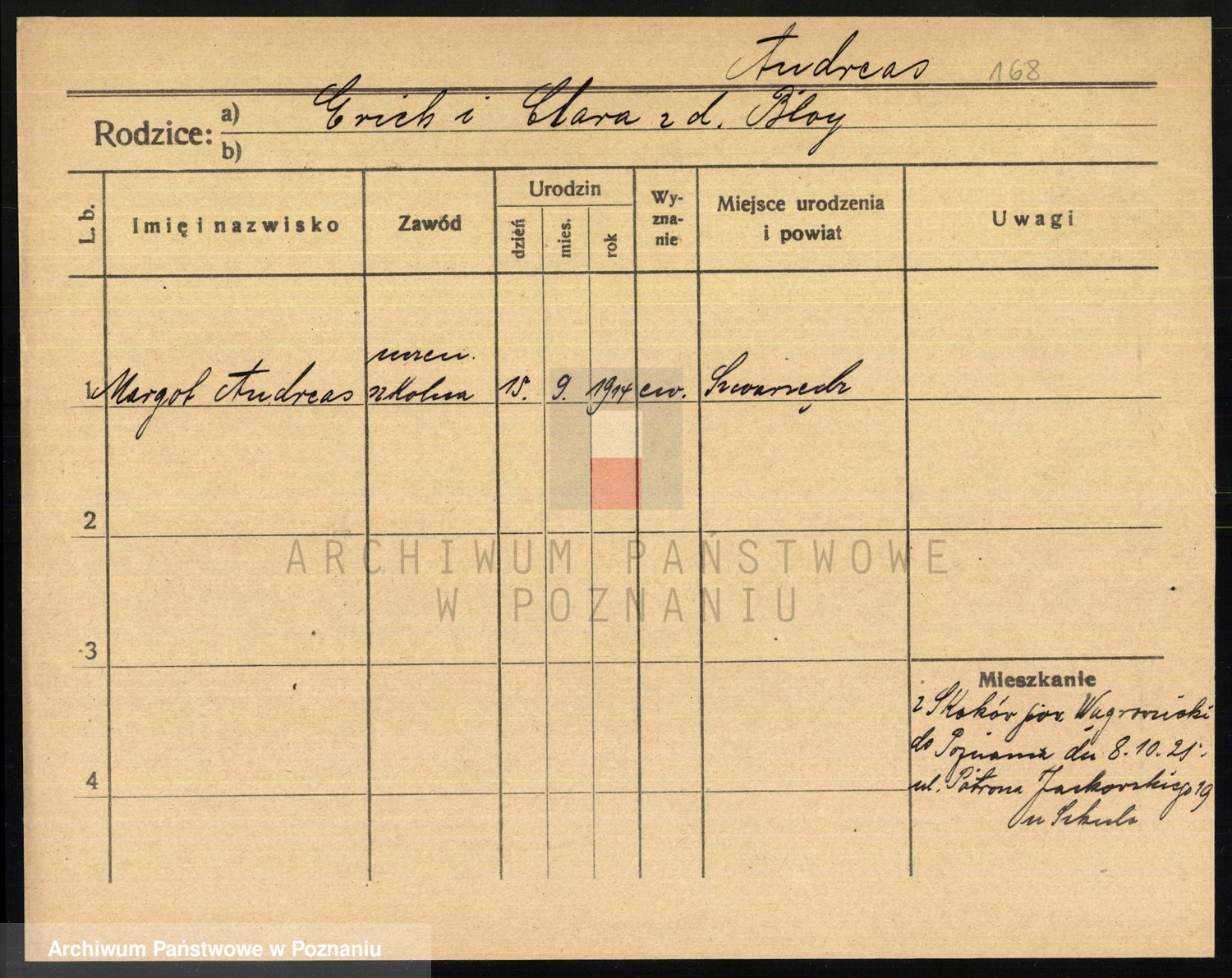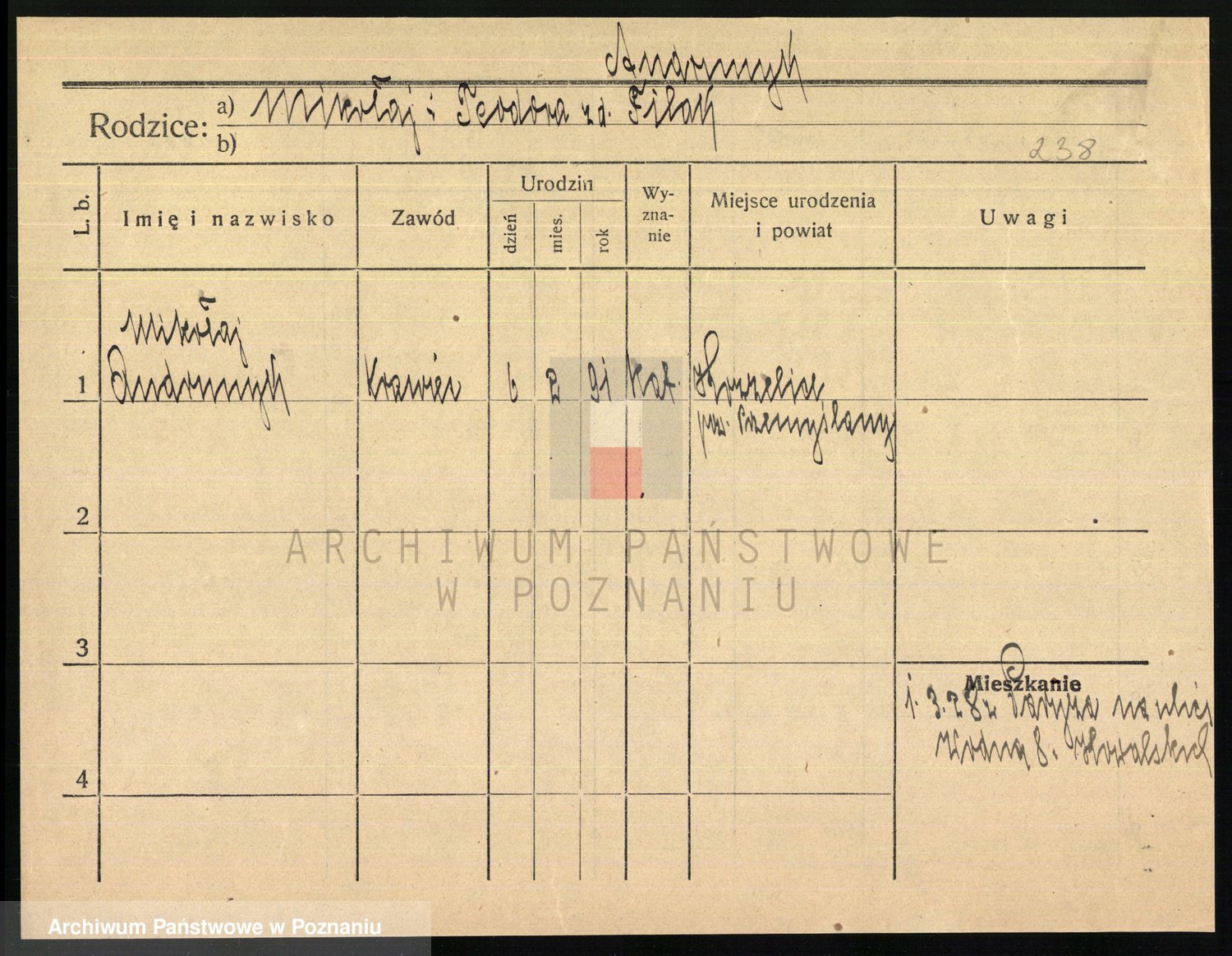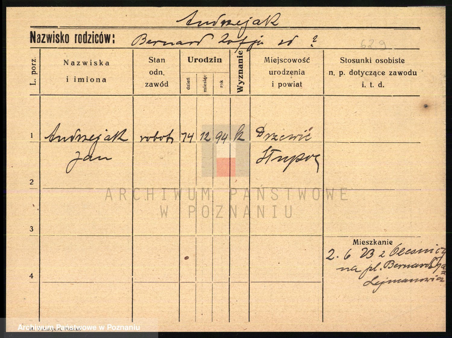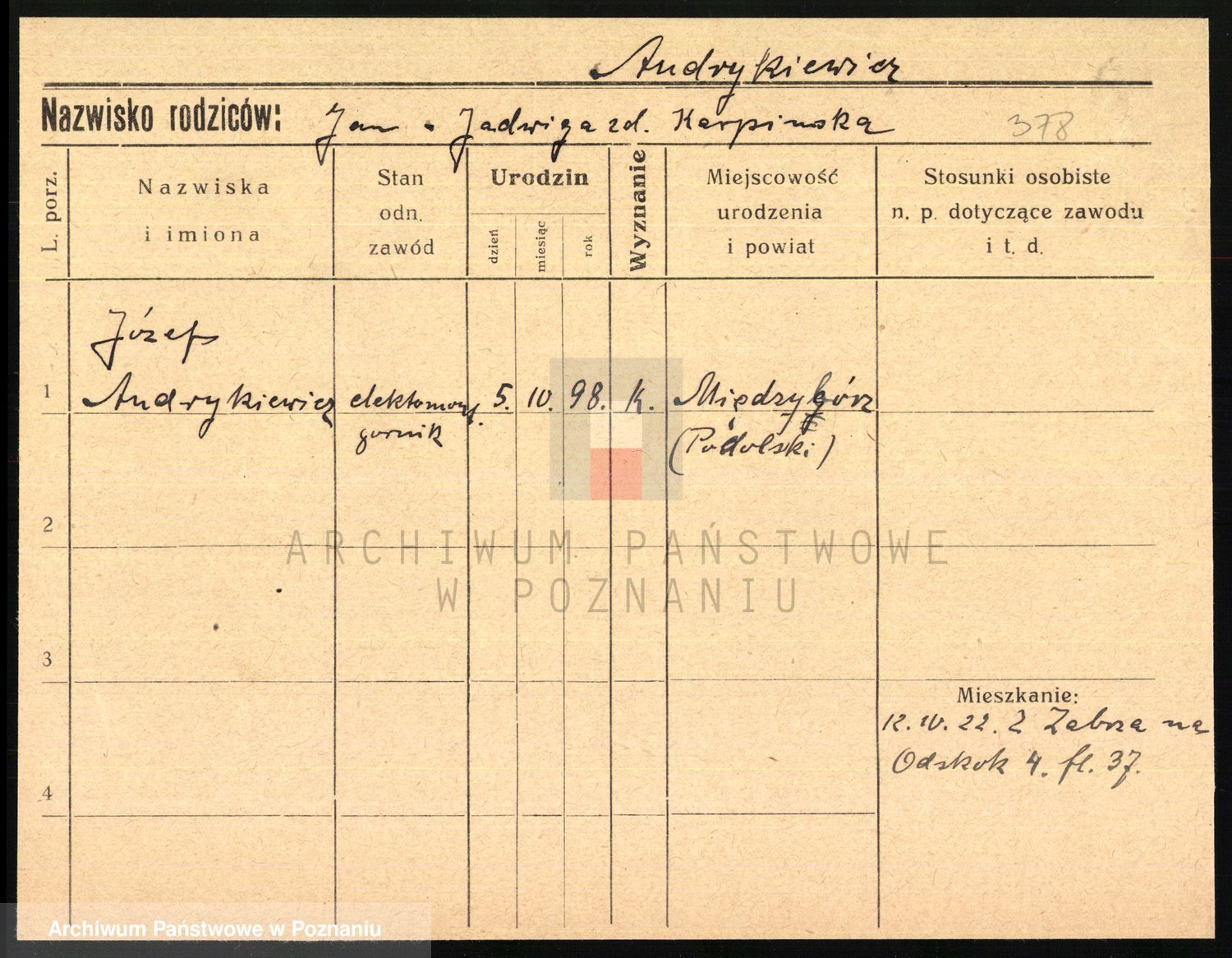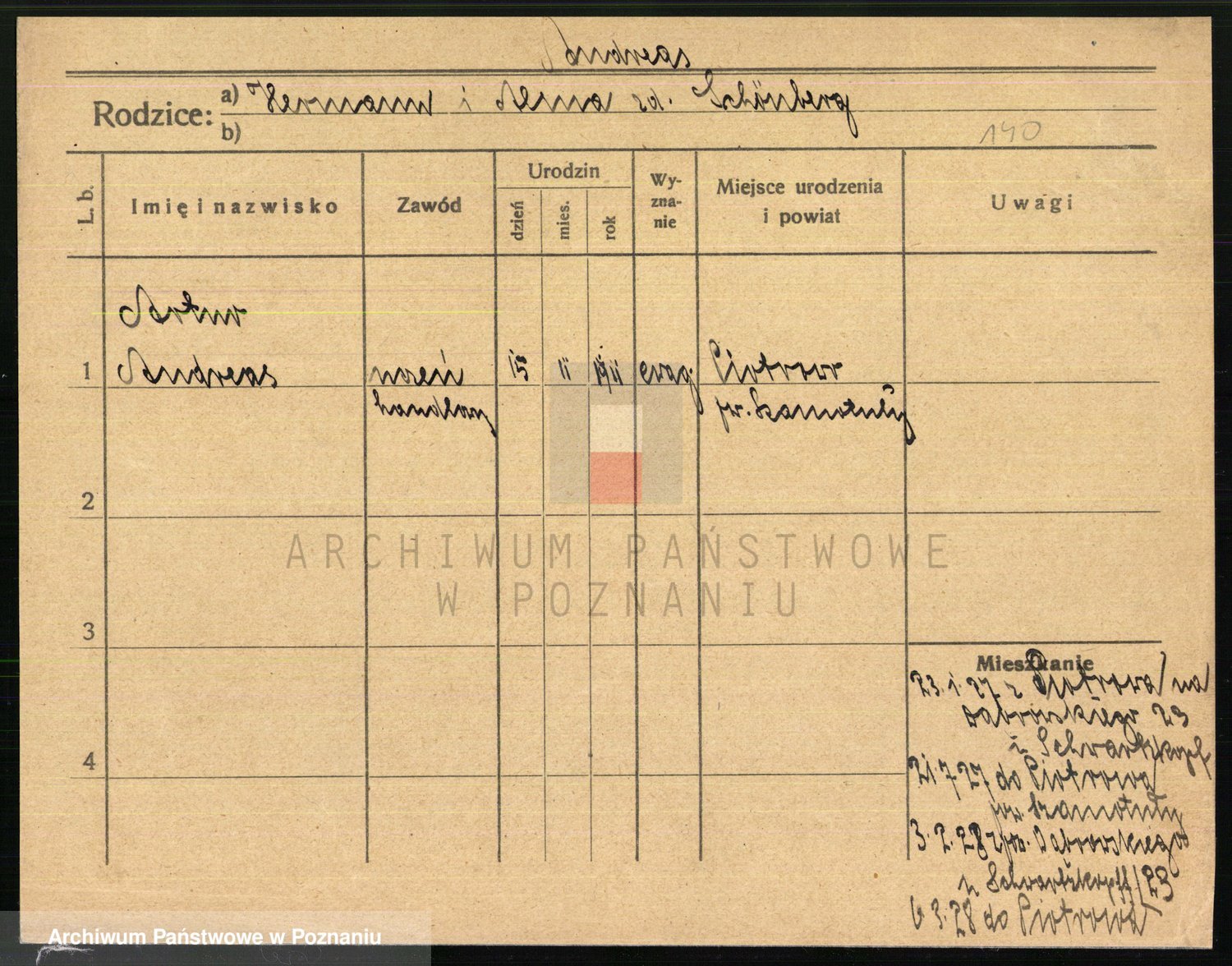Podgląd karty osobowej dostępny jest po kliknięciu na nazwisko lub ikonkę karty. Można dokonywać powiększenia (ikony na górze) lub przechodzić między kolejnymi skanami (strzałki po bokach).