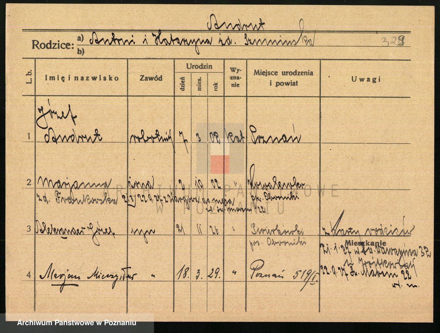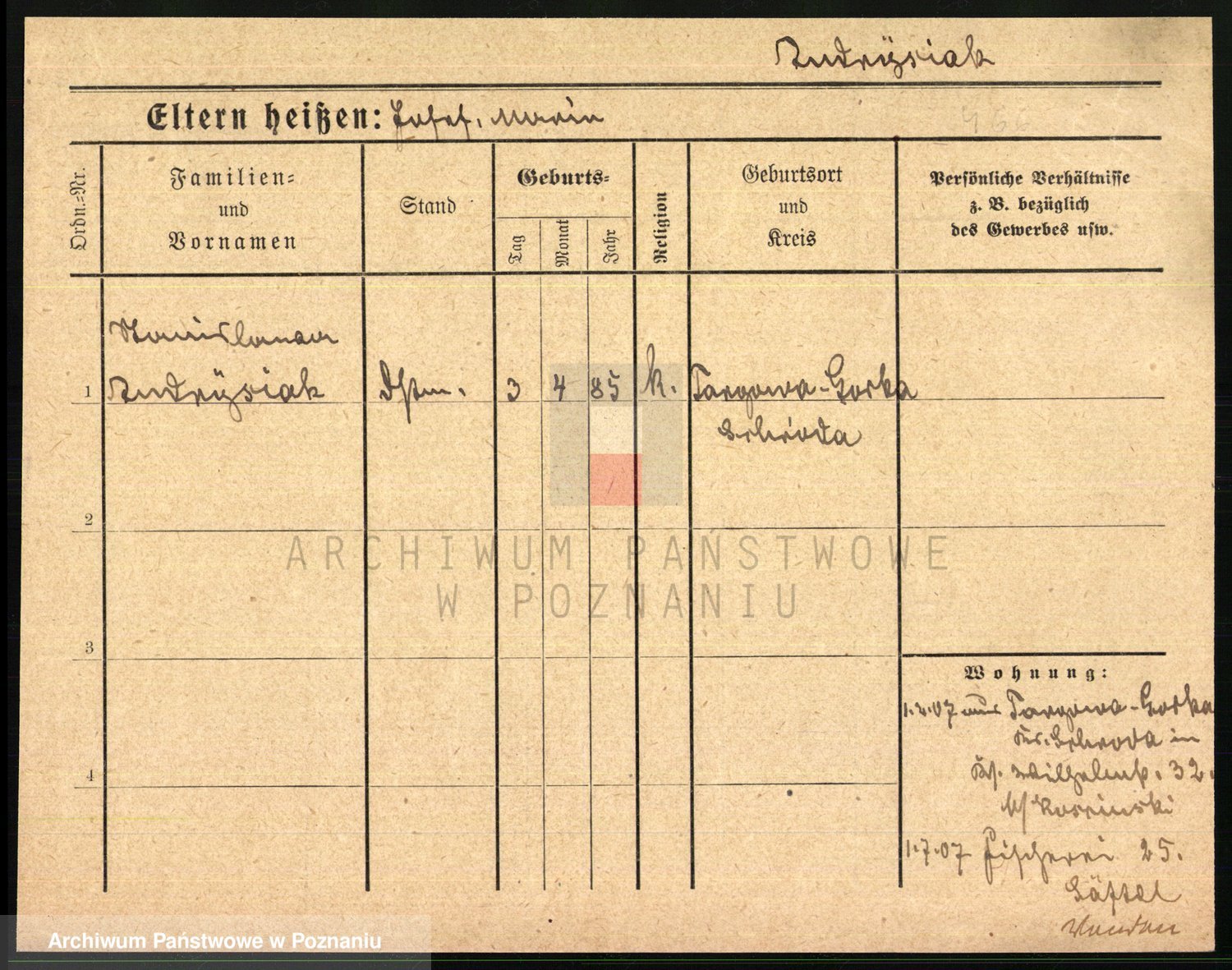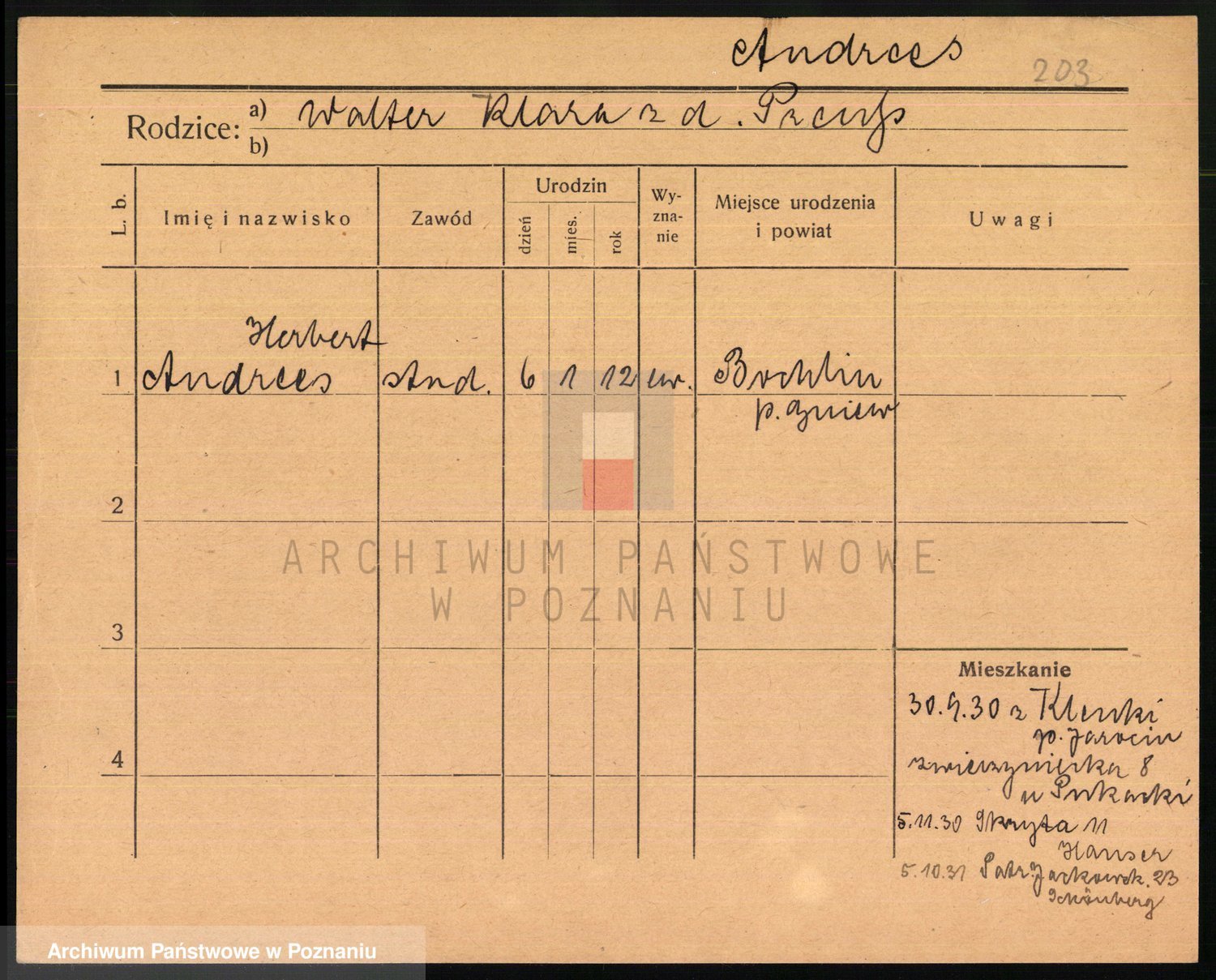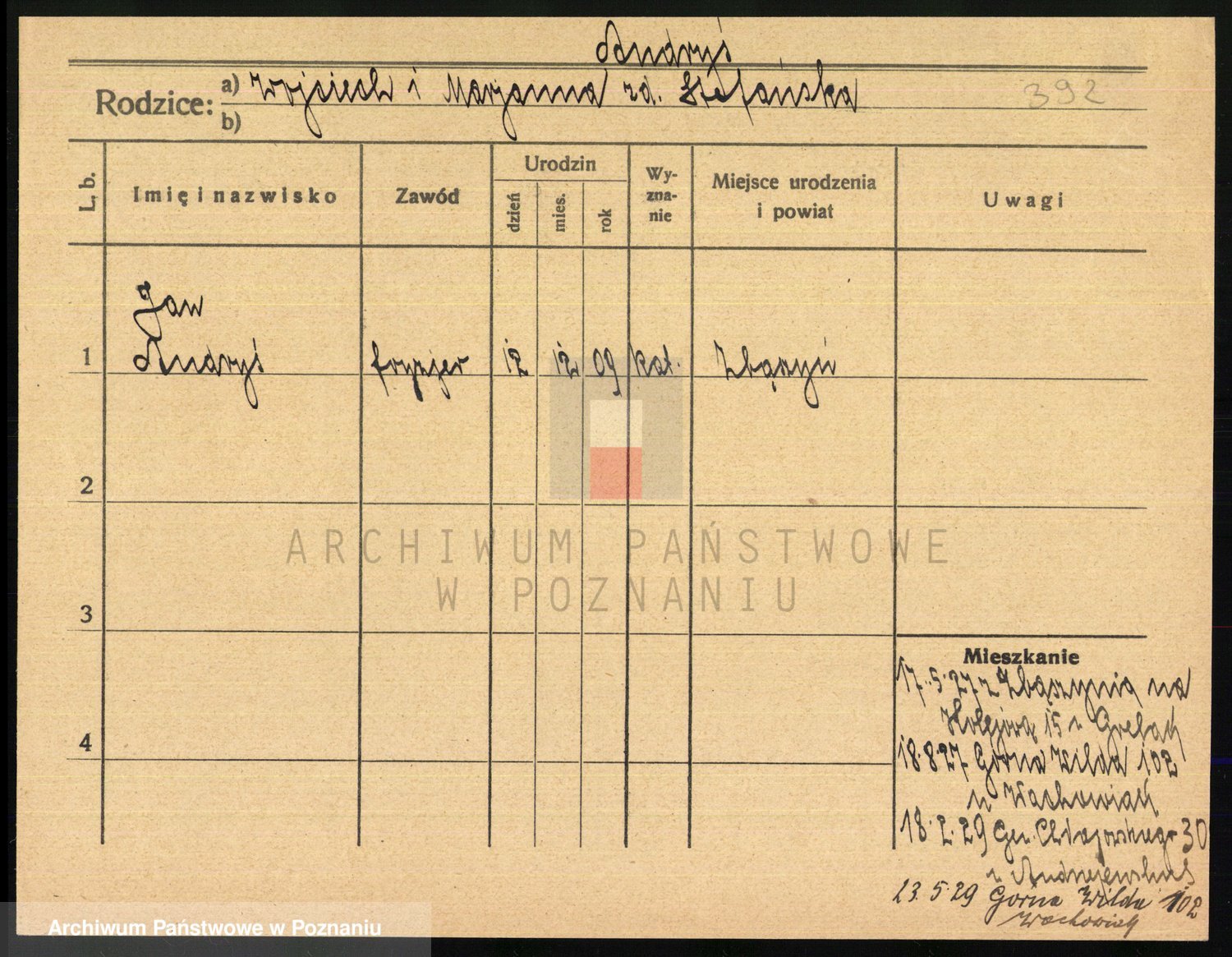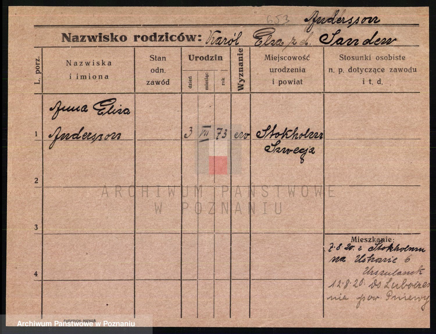 Podgląd karty osobowej dostępny jest po kliknięciu na nazwisko lub ikonkę karty. Można dokonywać powiększenia (ikony na górze) lub przechodzić między kolejnymi skanami (strzałki po bokach).