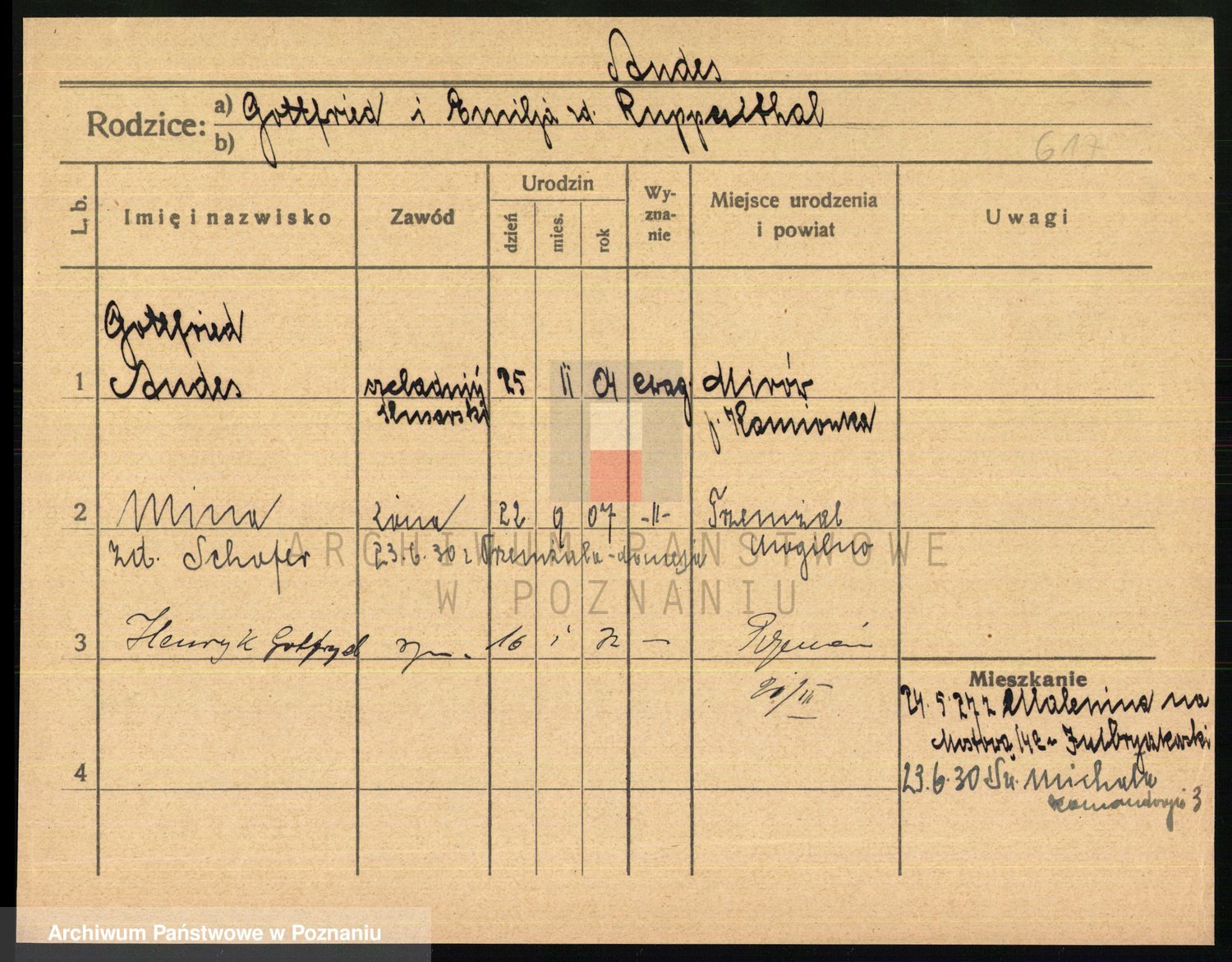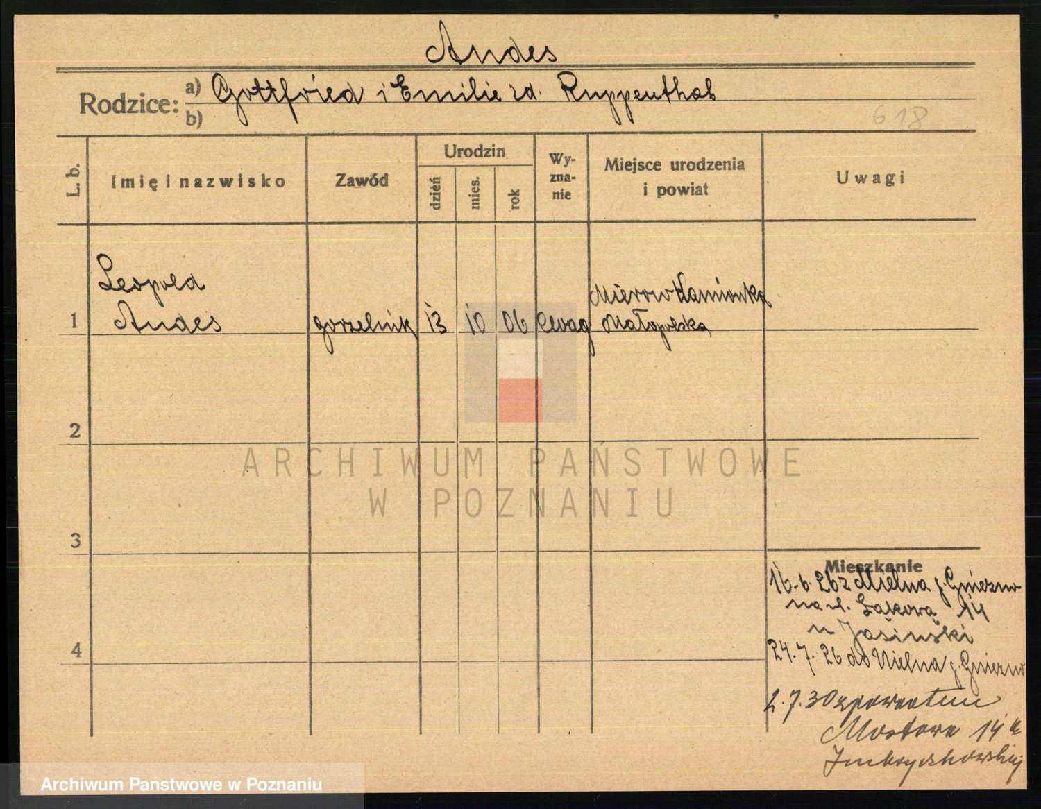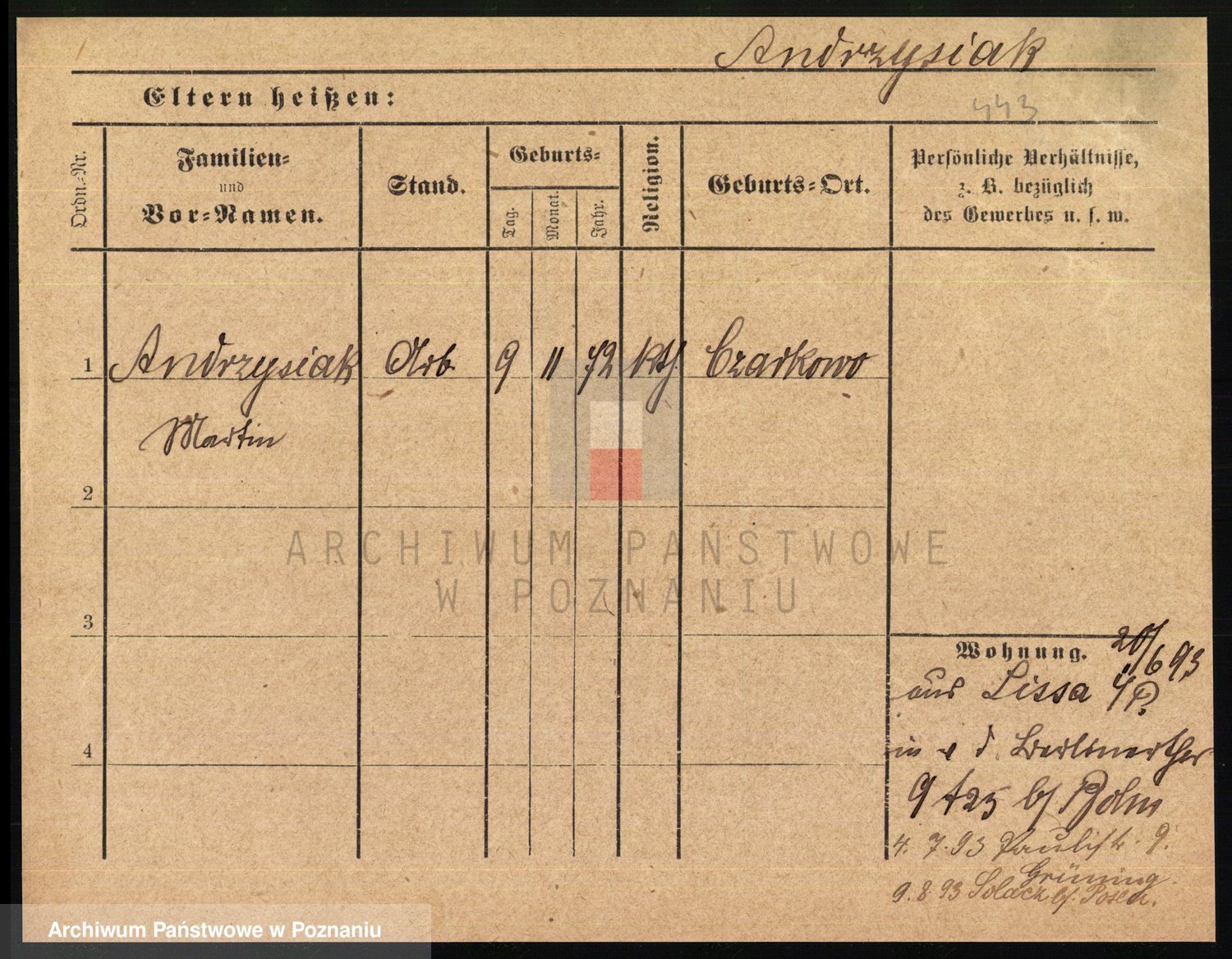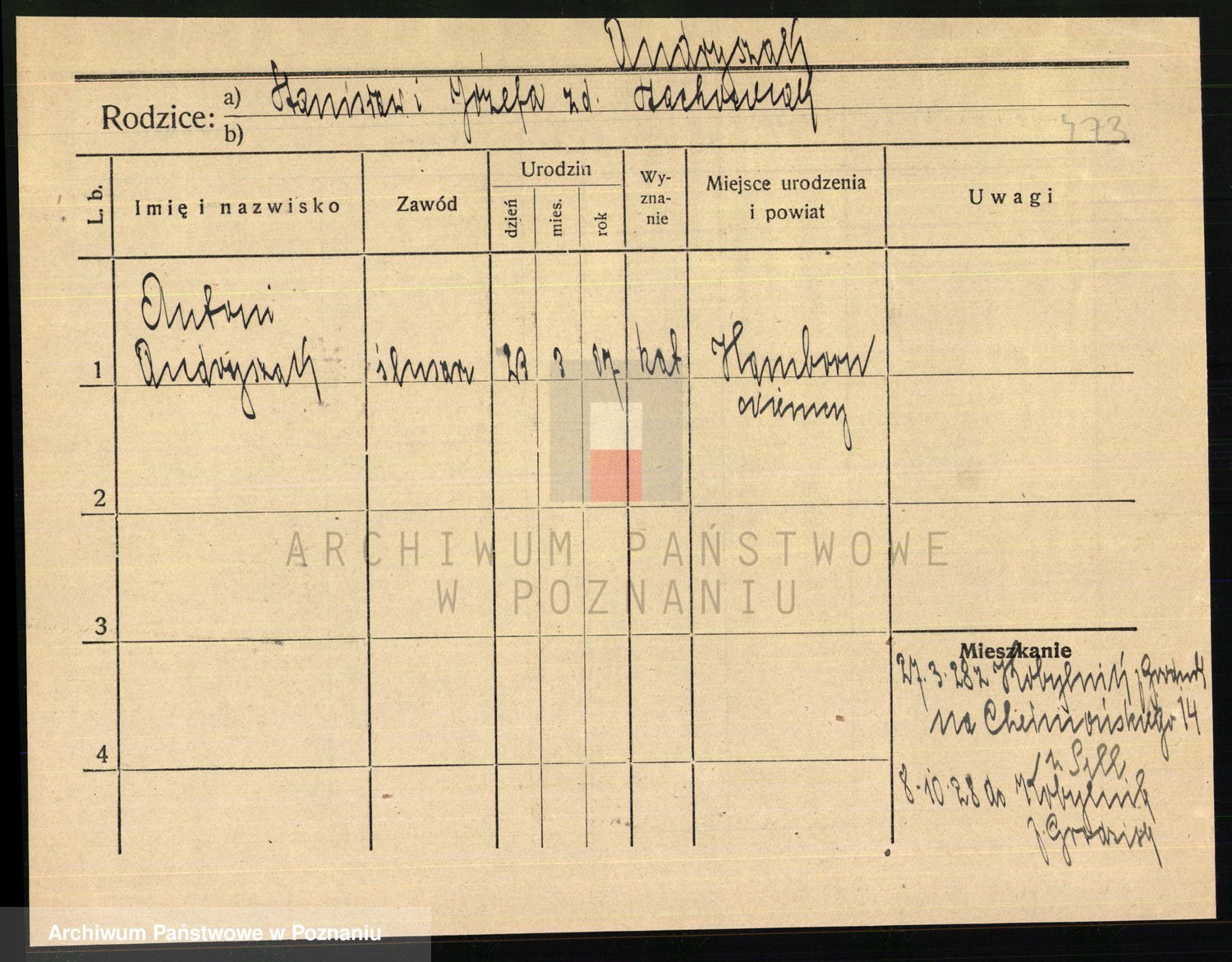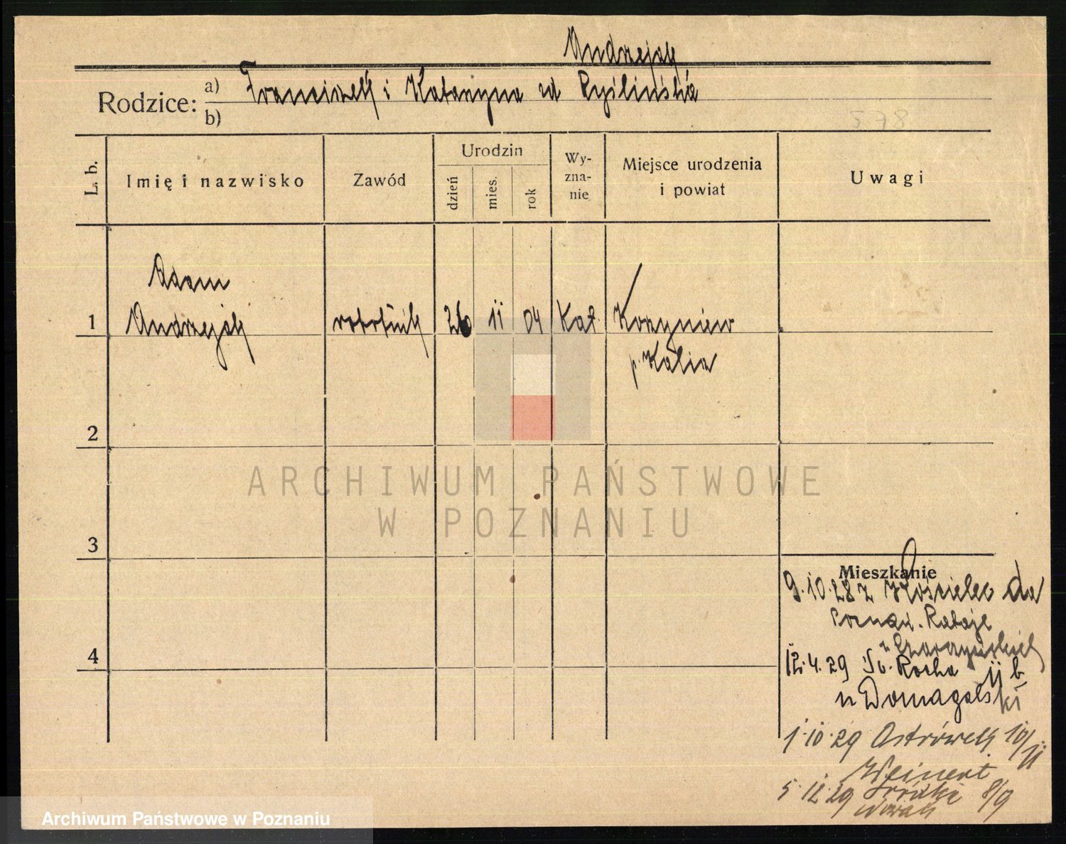 Podgląd karty osobowej dostępny jest po kliknięciu na nazwisko lub ikonkę karty. Można dokonywać powiększenia (ikony na górze) lub przechodzić między kolejnymi skanami (strzałki po bokach).