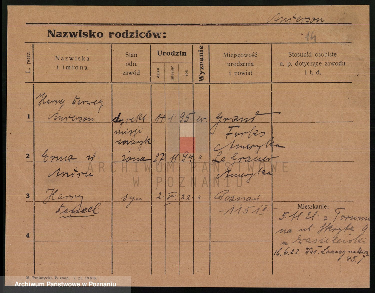 Anderson, Harry Derwey