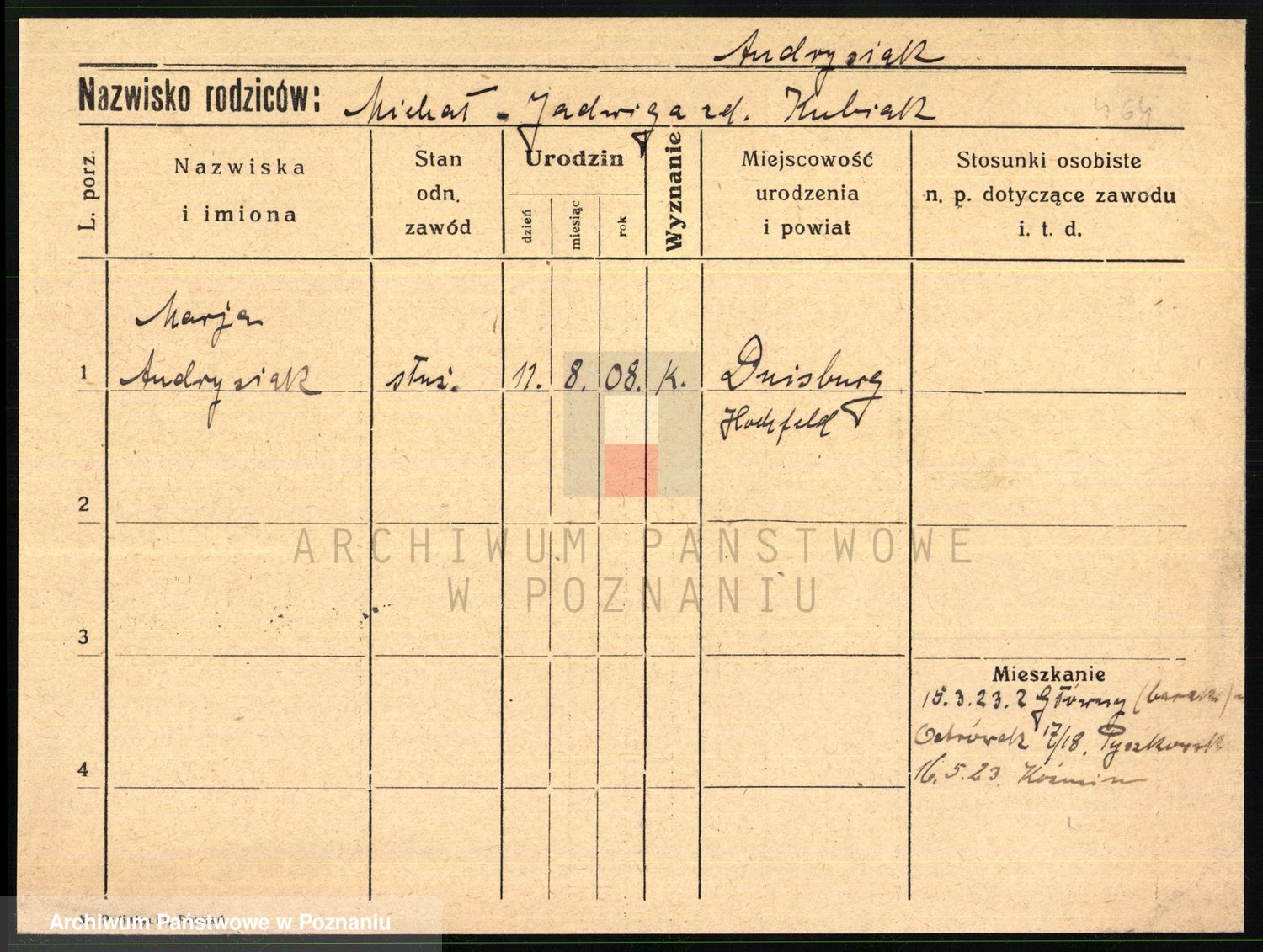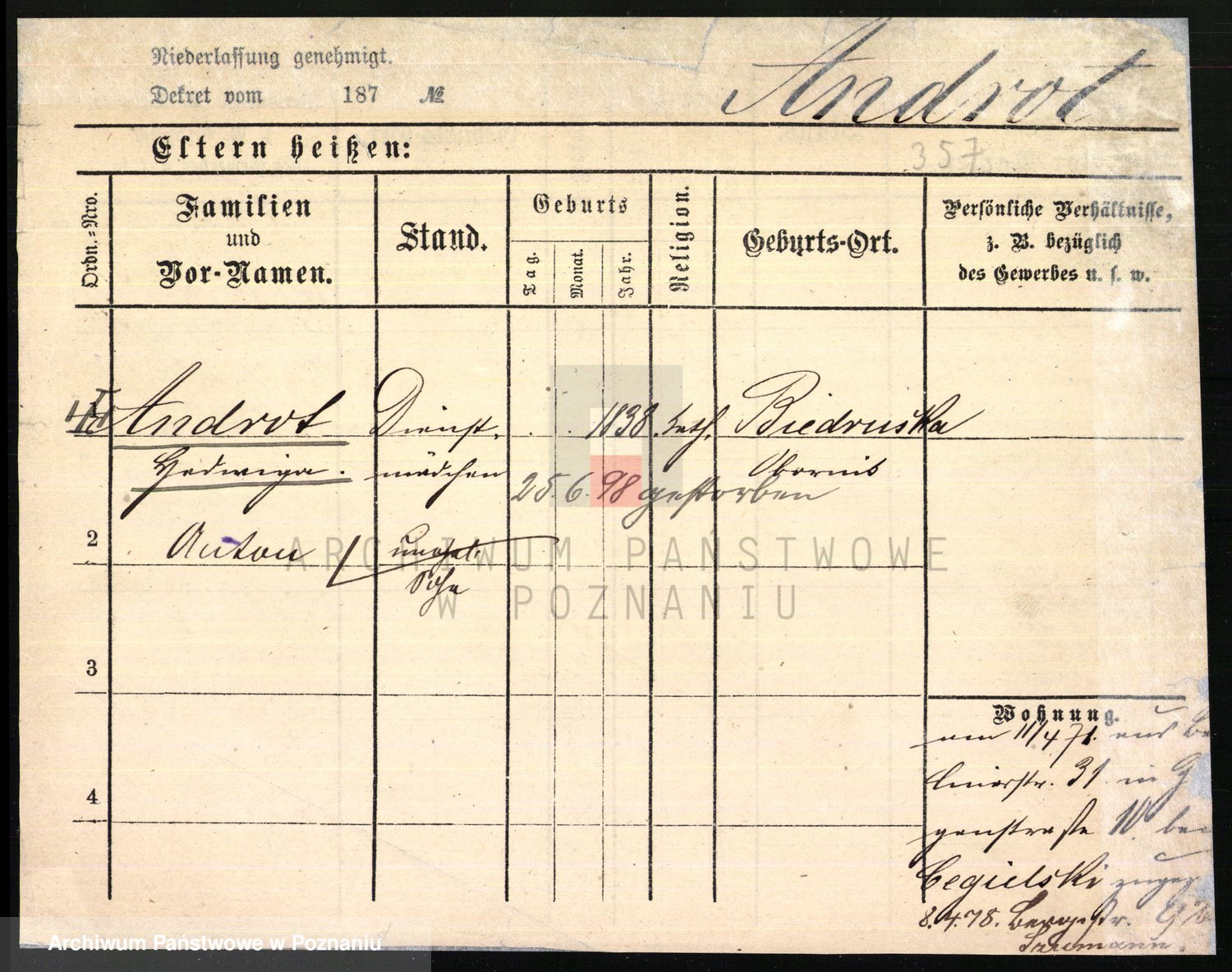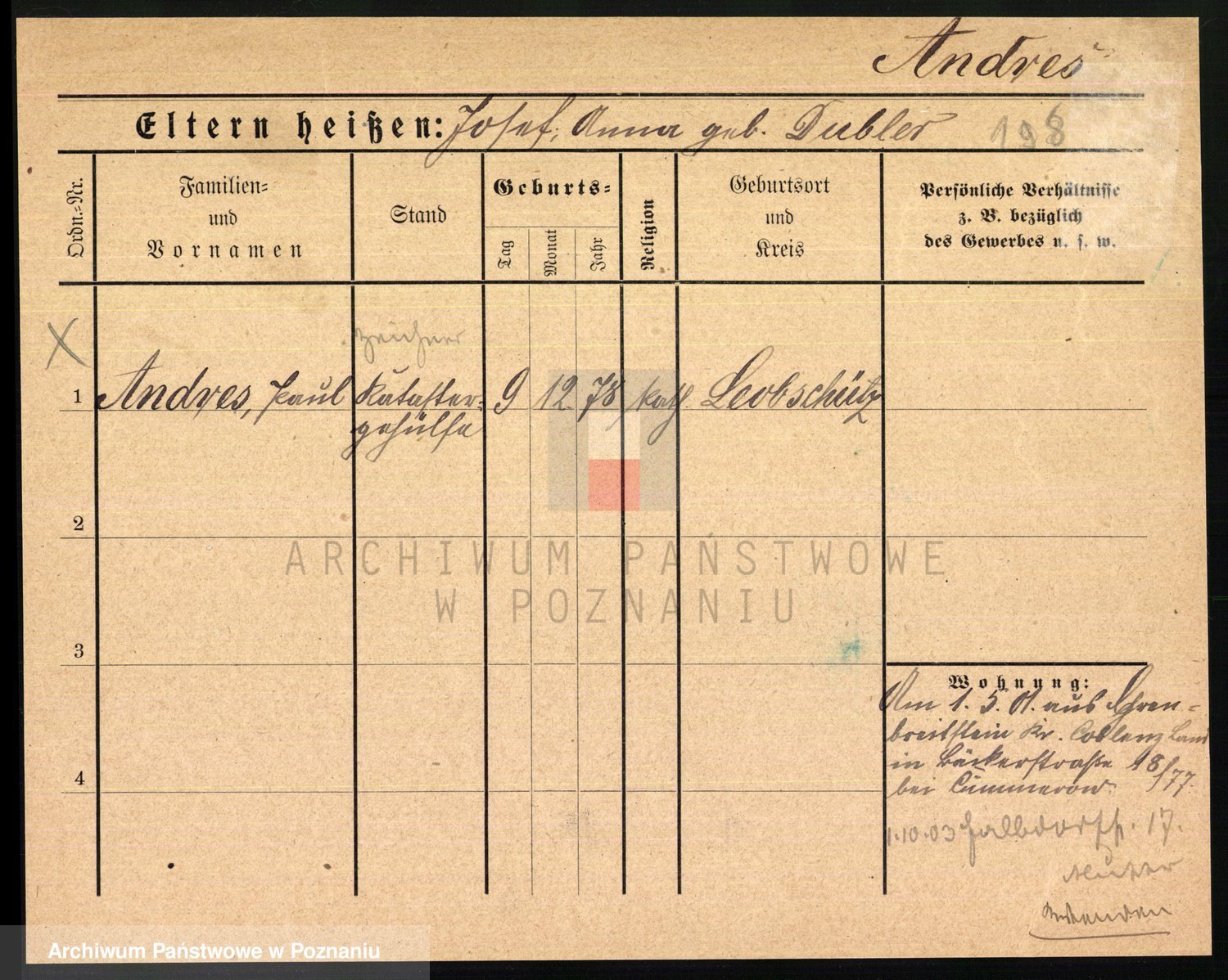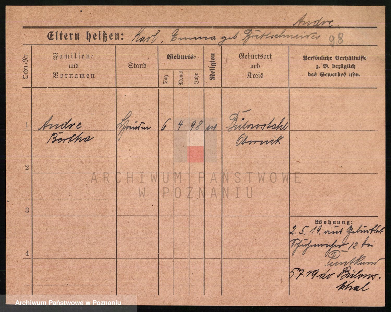 Andrascheck z d. Drewes 1 voto Konig, Anna Marie Johanna