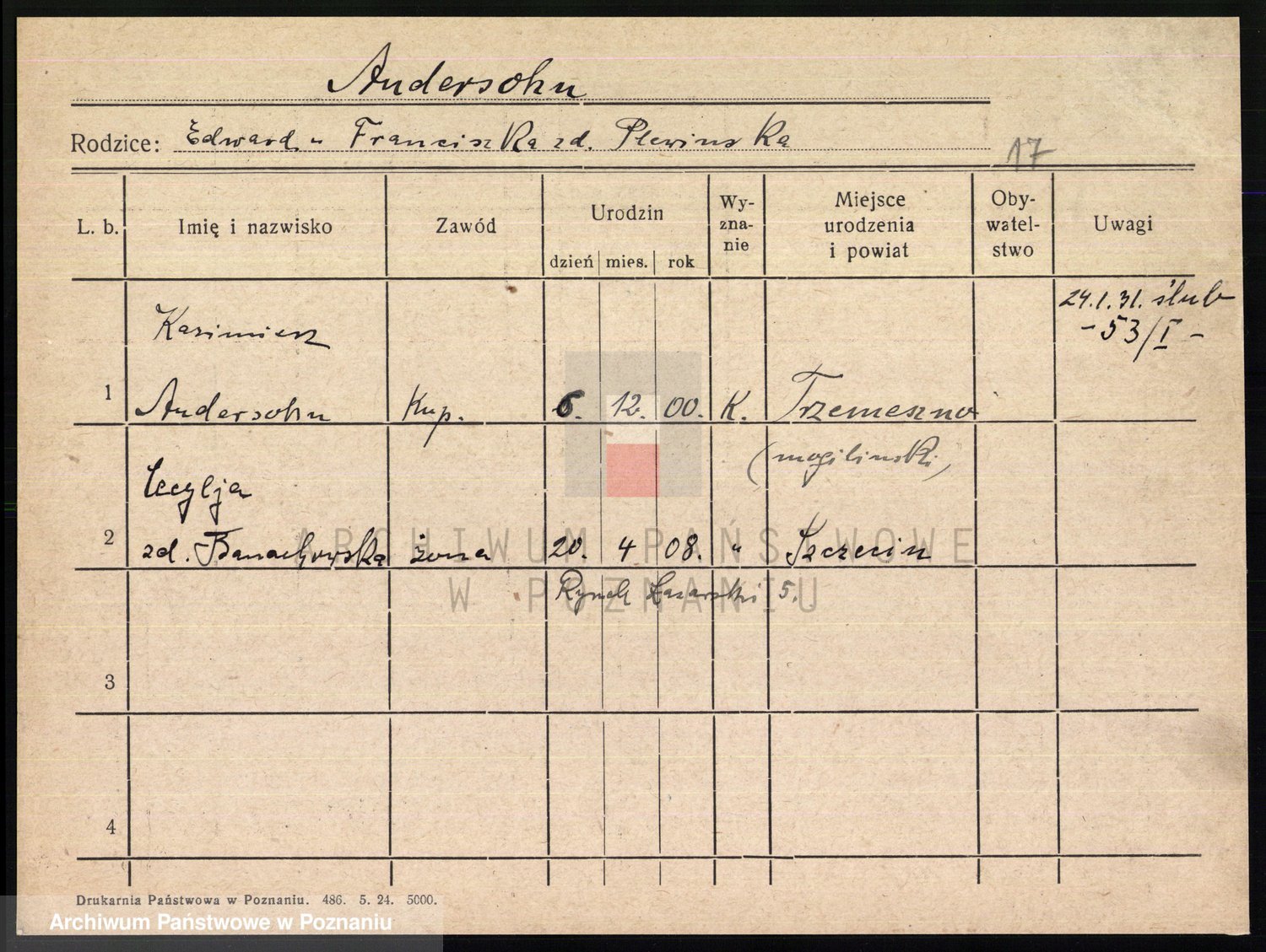 Andersohn z d. Banachowska, Cecylja