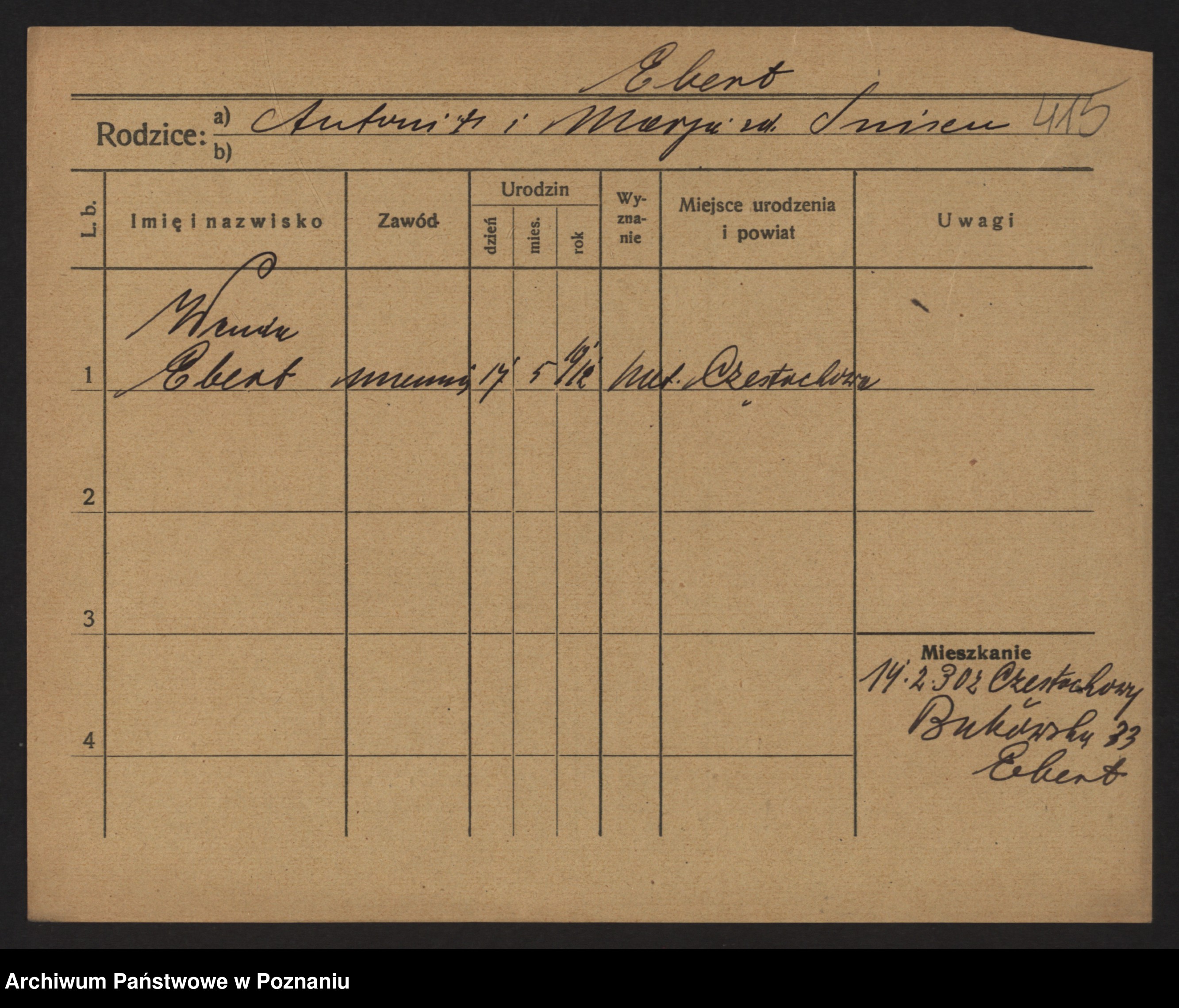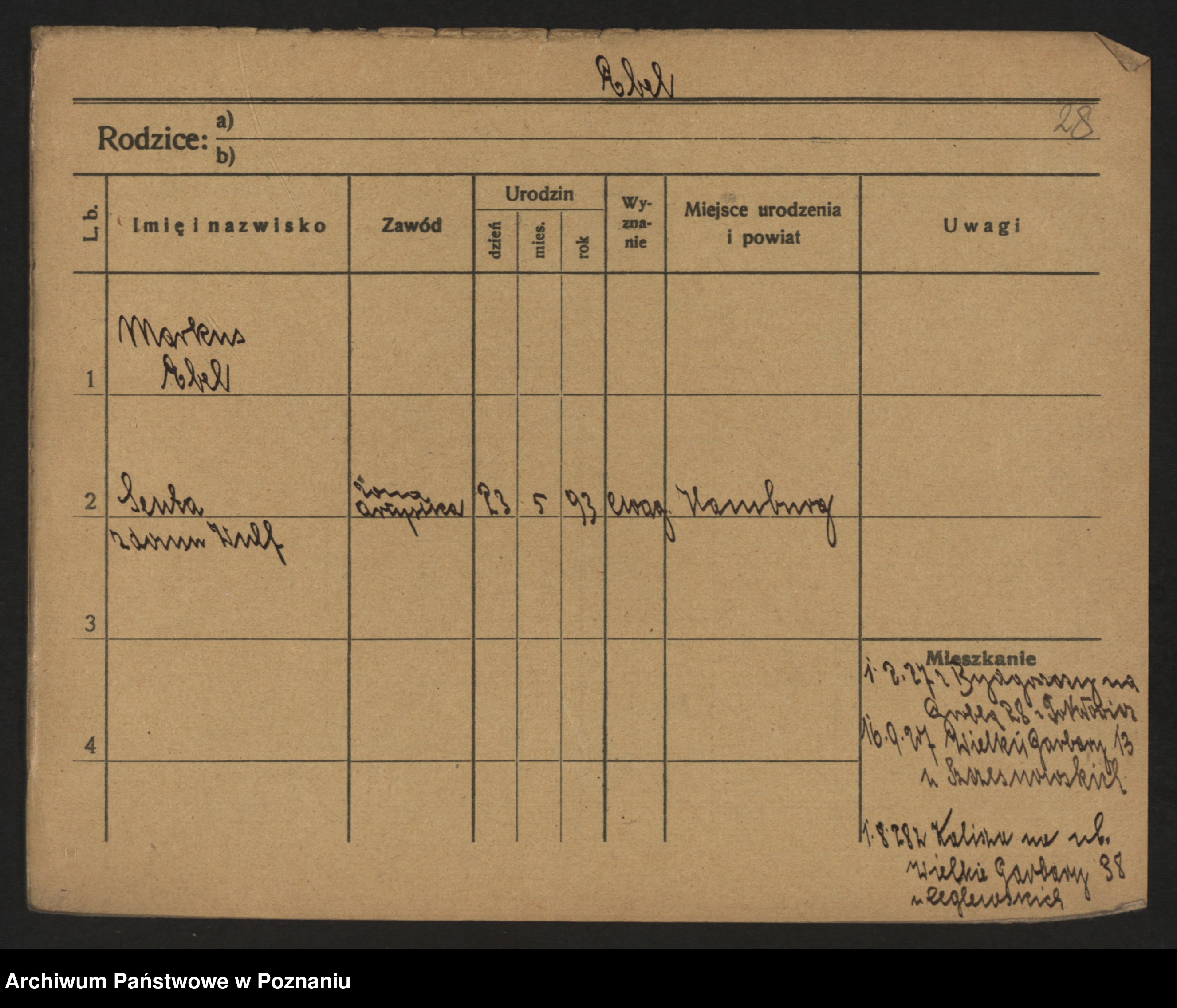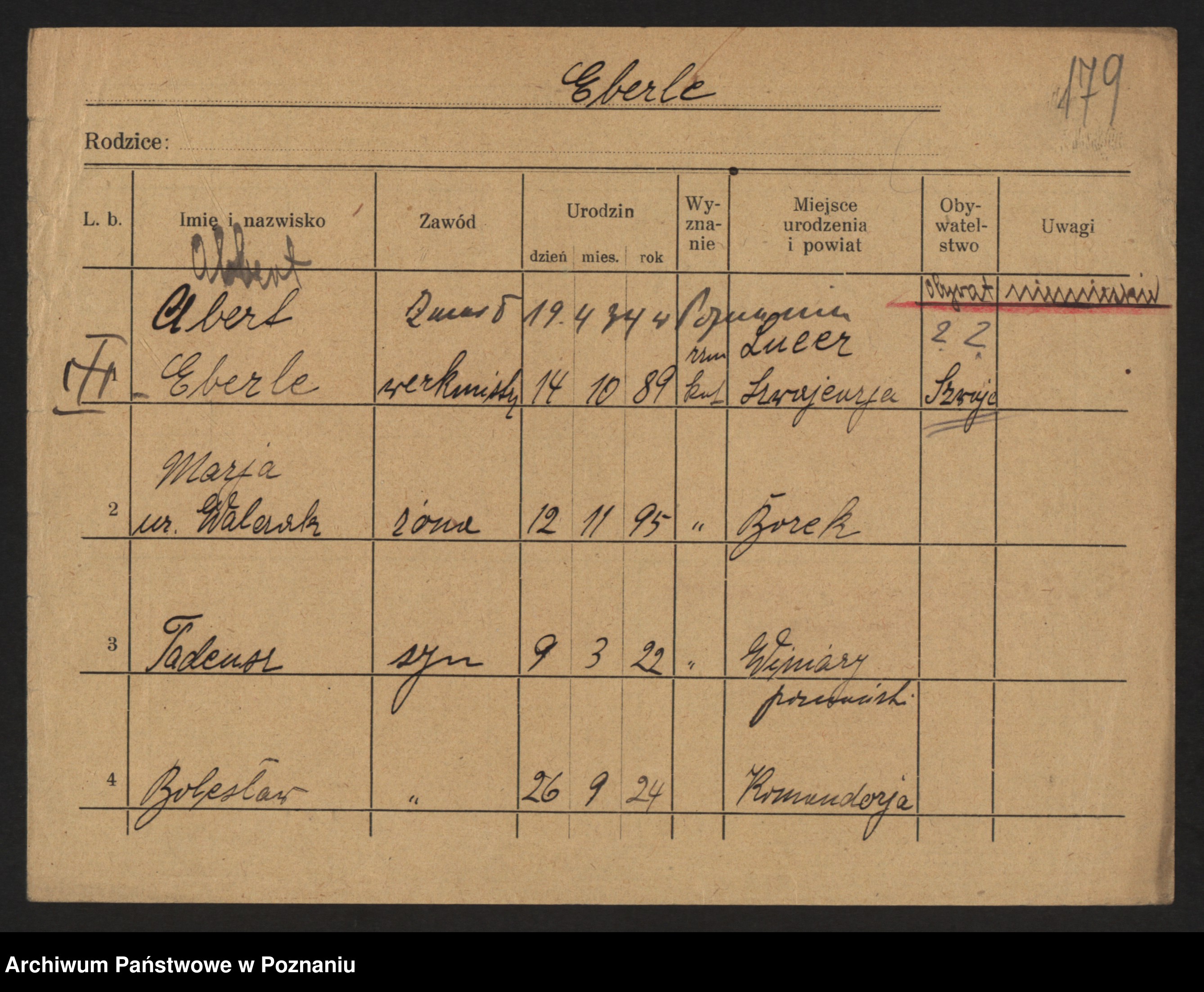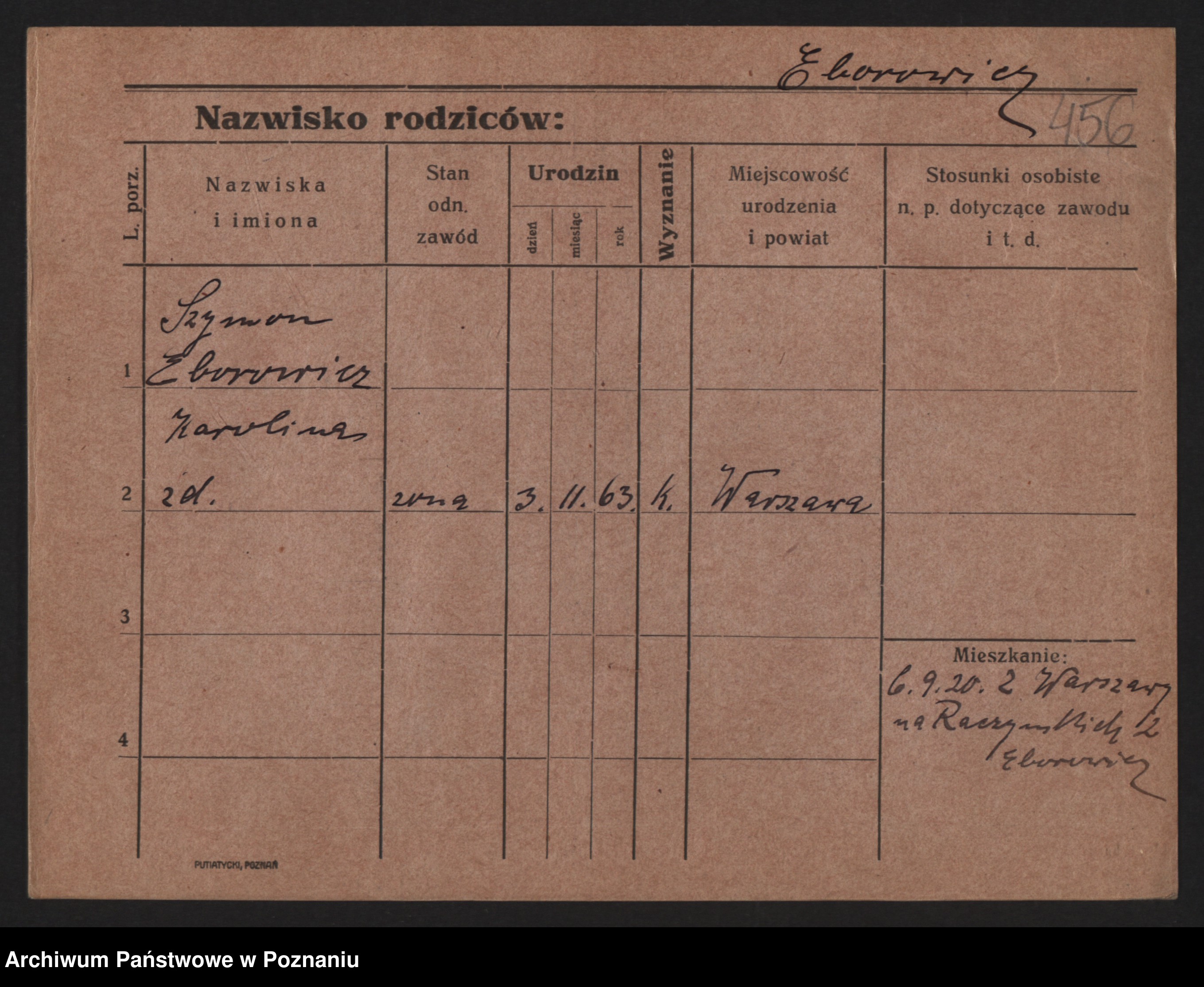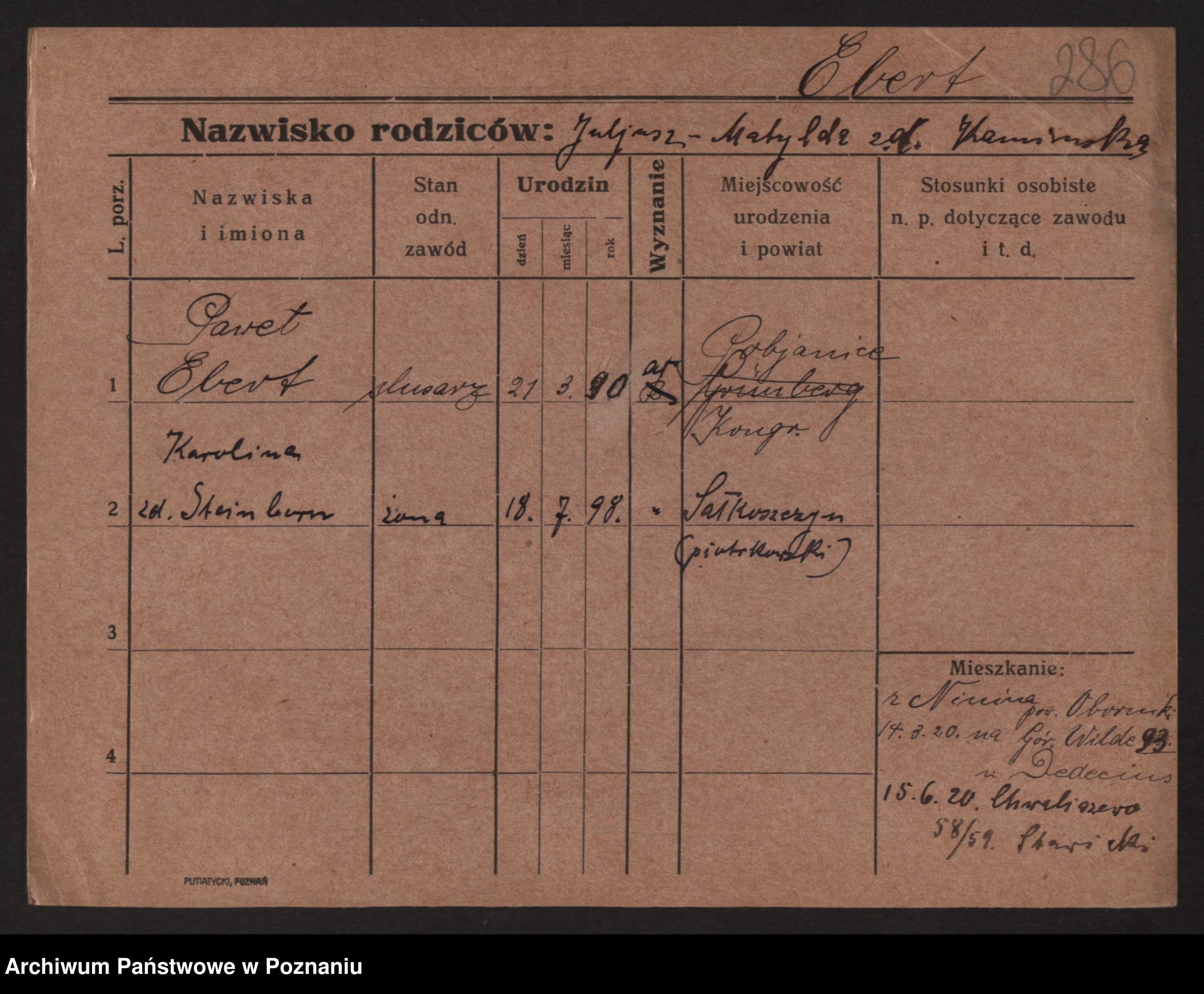 Podgląd karty osobowej dostępny jest po kliknięciu na nazwisko lub ikonkę karty. Można dokonywać powiększenia (ikony na górze) lub przechodzić między kolejnymi skanami (strzałki po bokach).