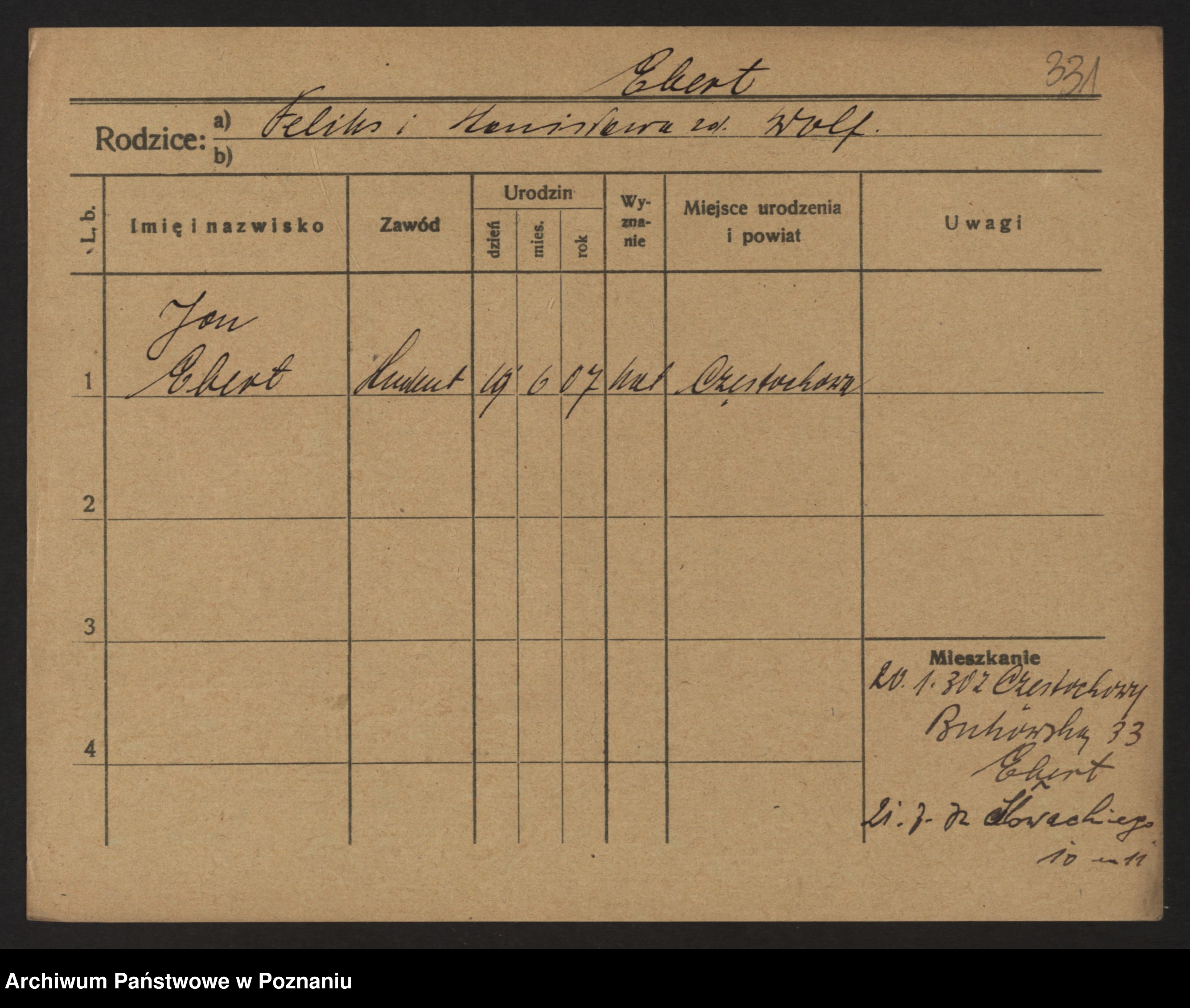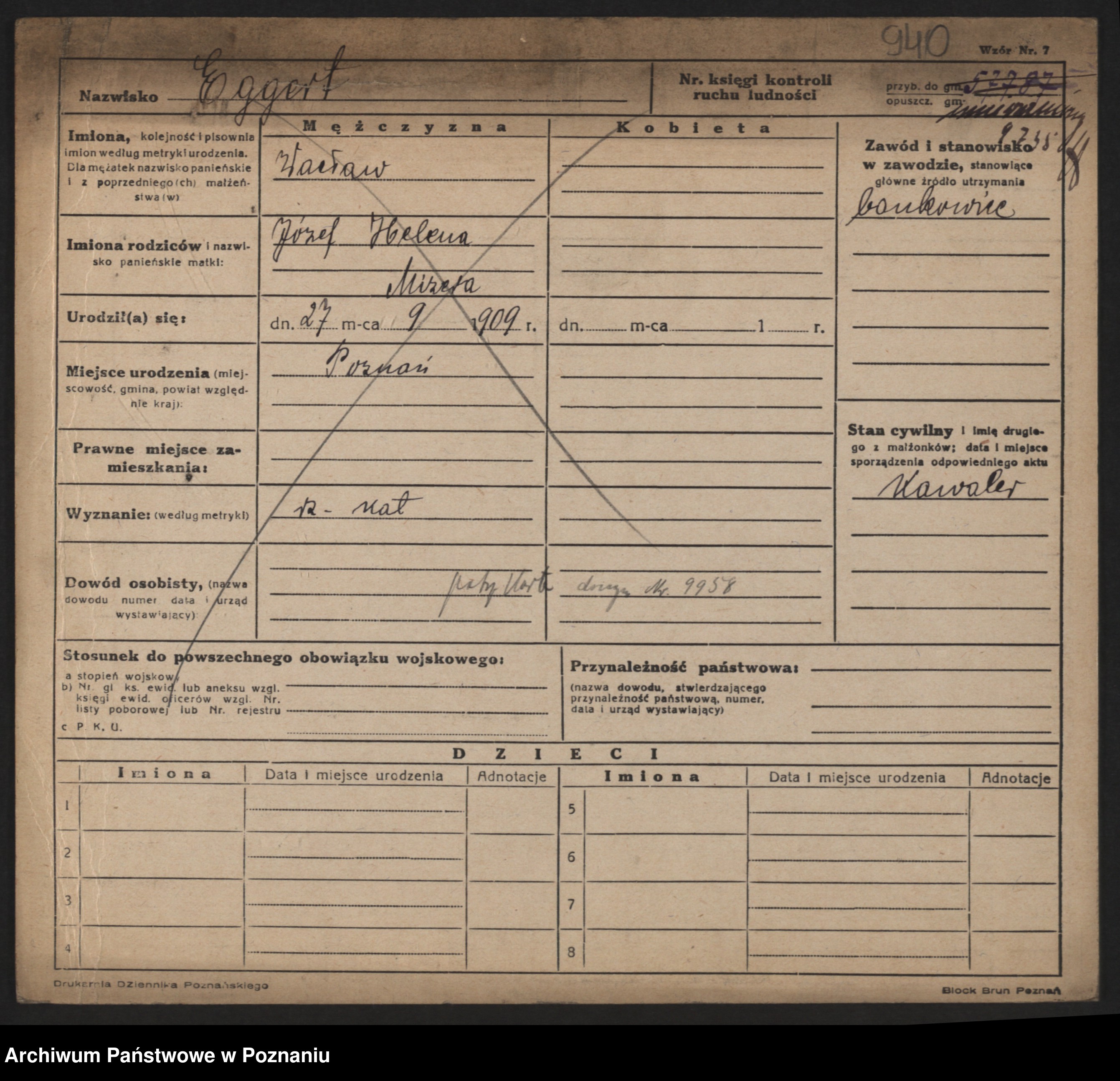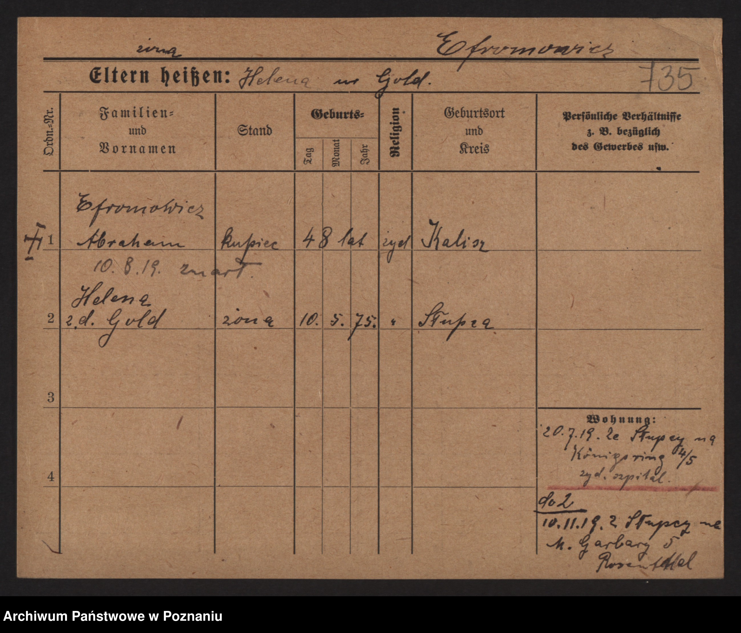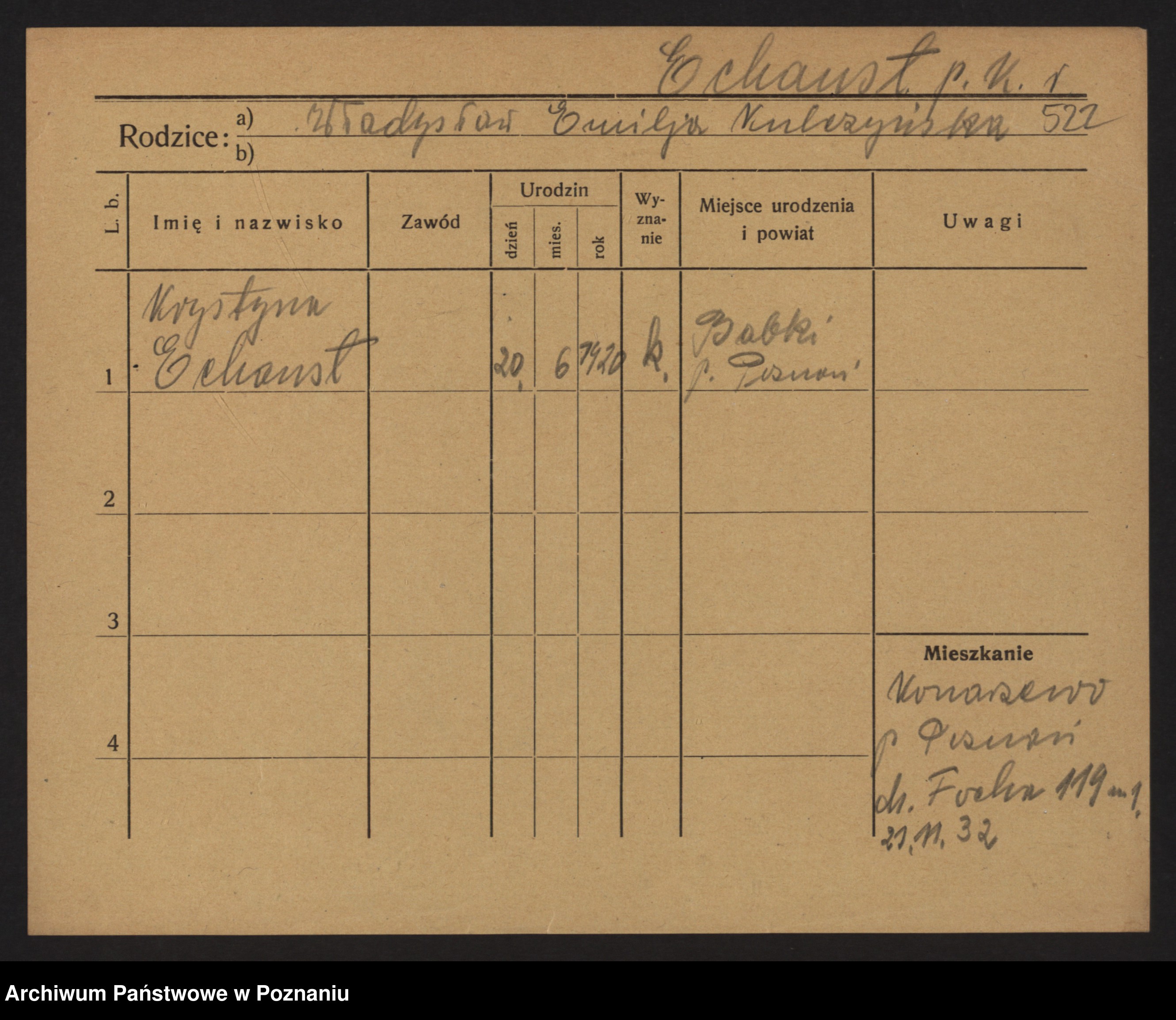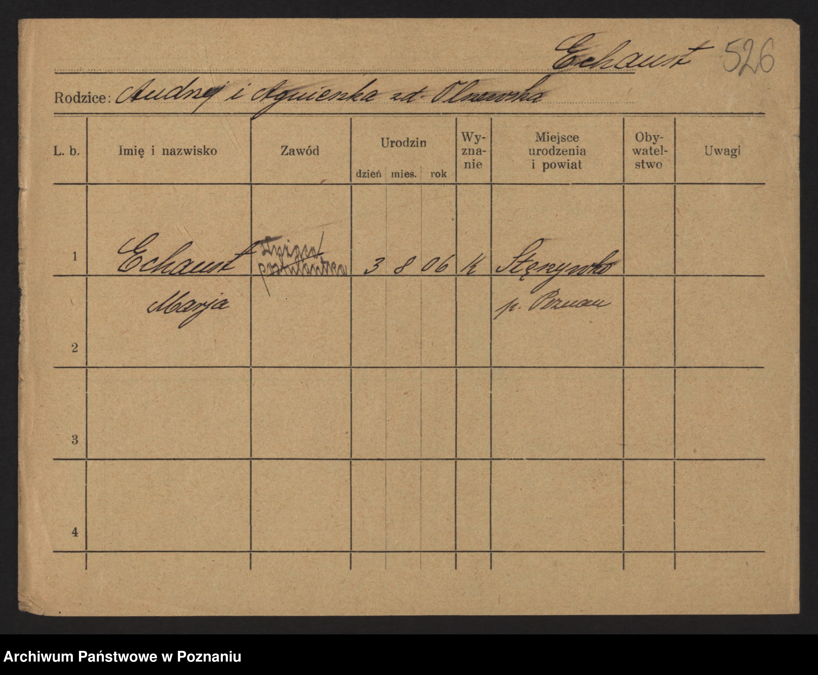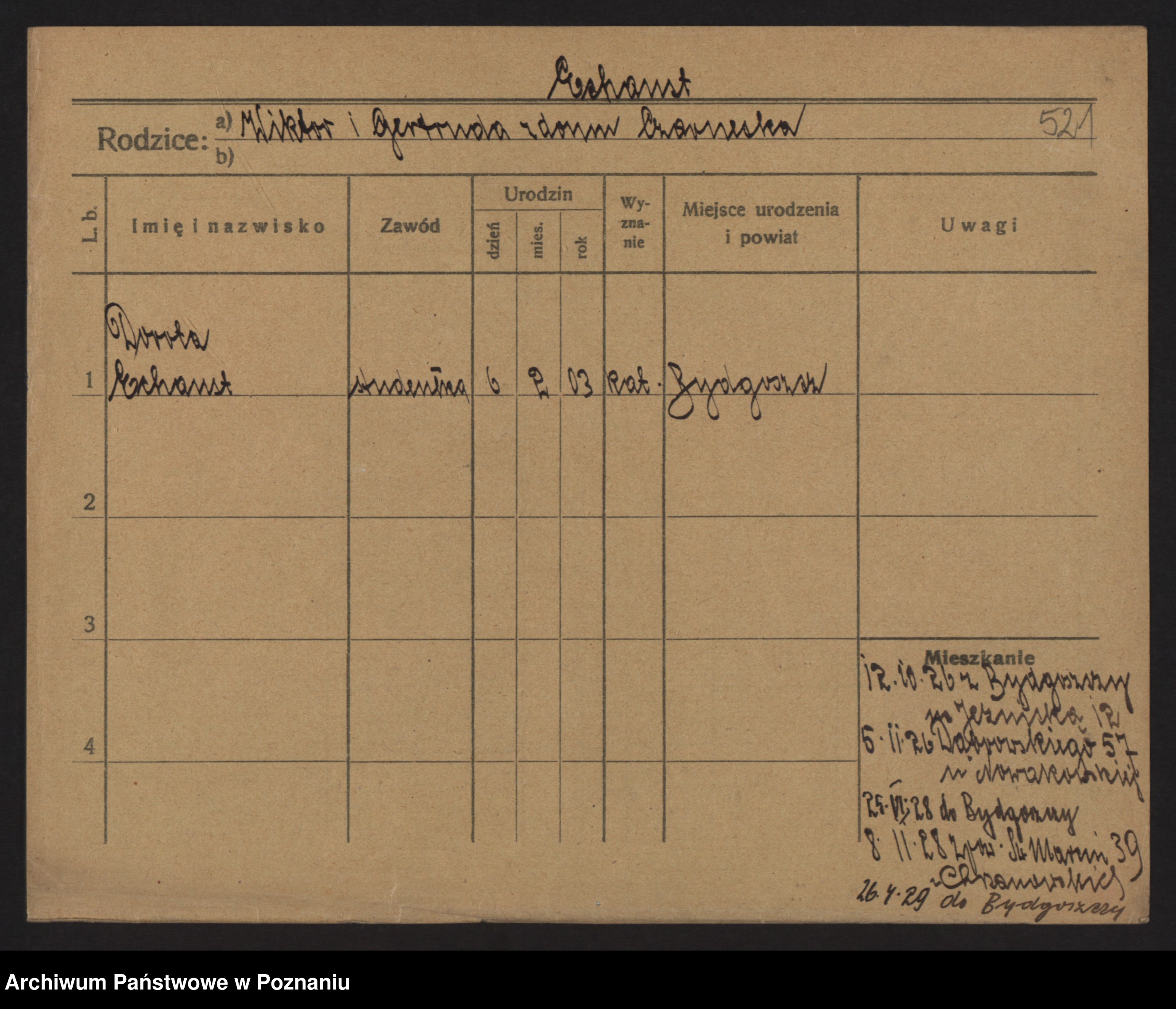Podgląd karty osobowej dostępny jest po kliknięciu na nazwisko lub ikonkę karty. Można dokonywać powiększenia (ikony na górze) lub przechodzić między kolejnymi skanami (strzałki po bokach).