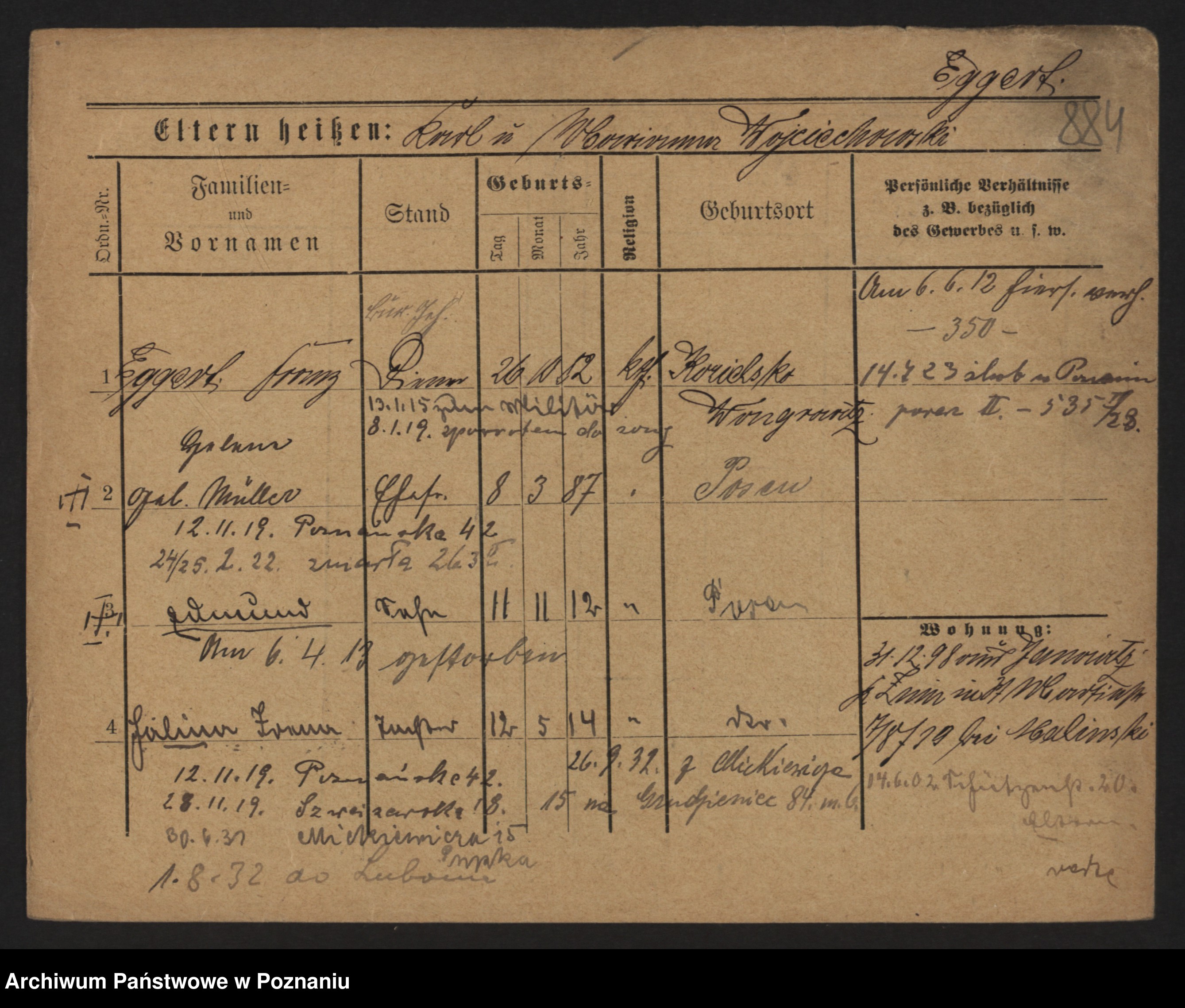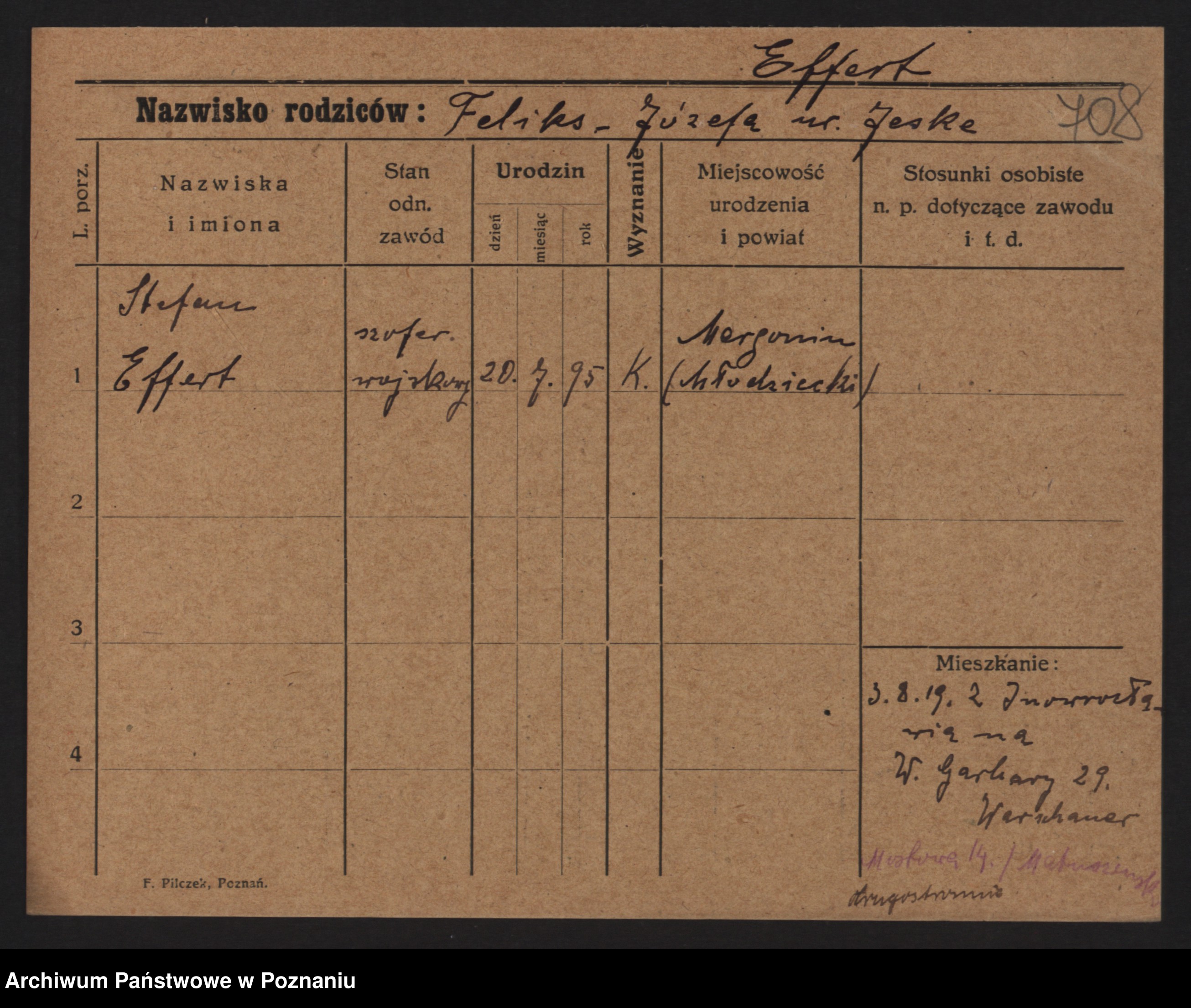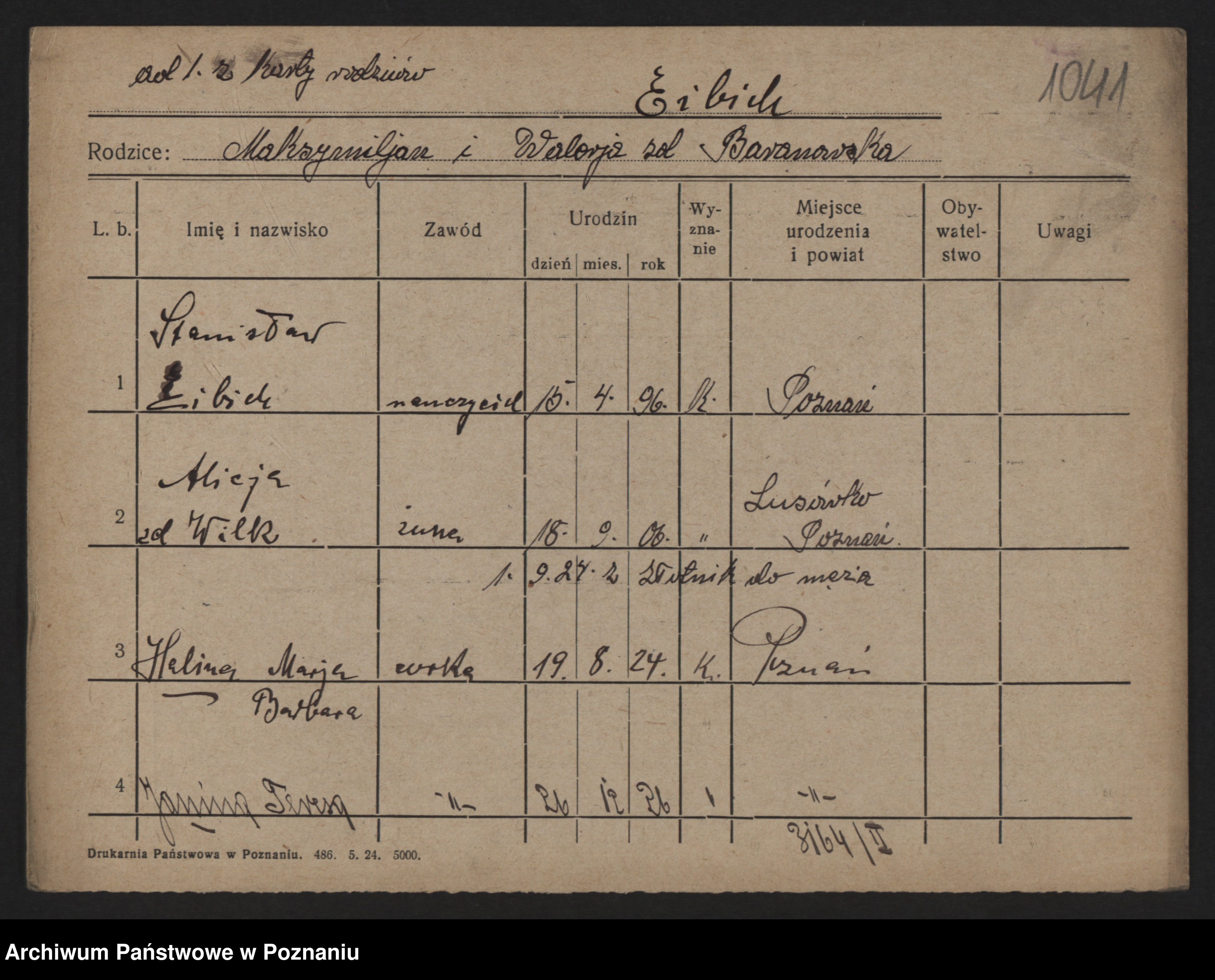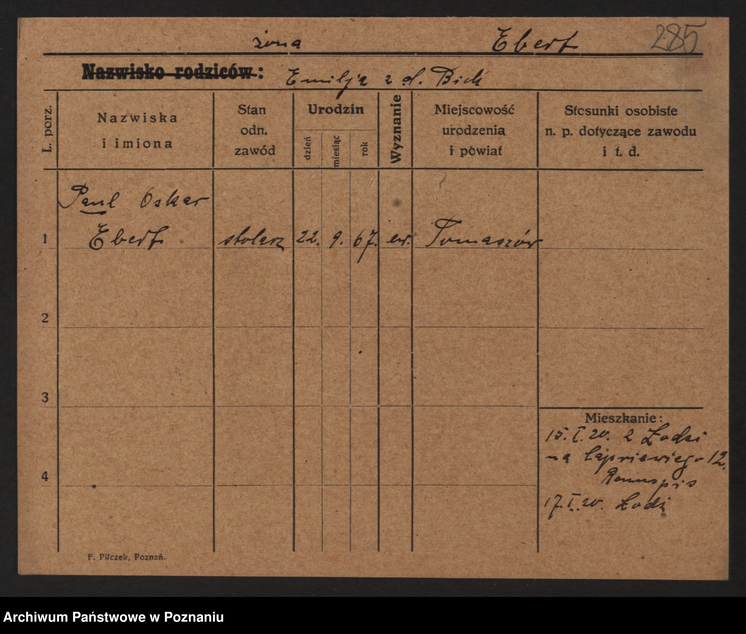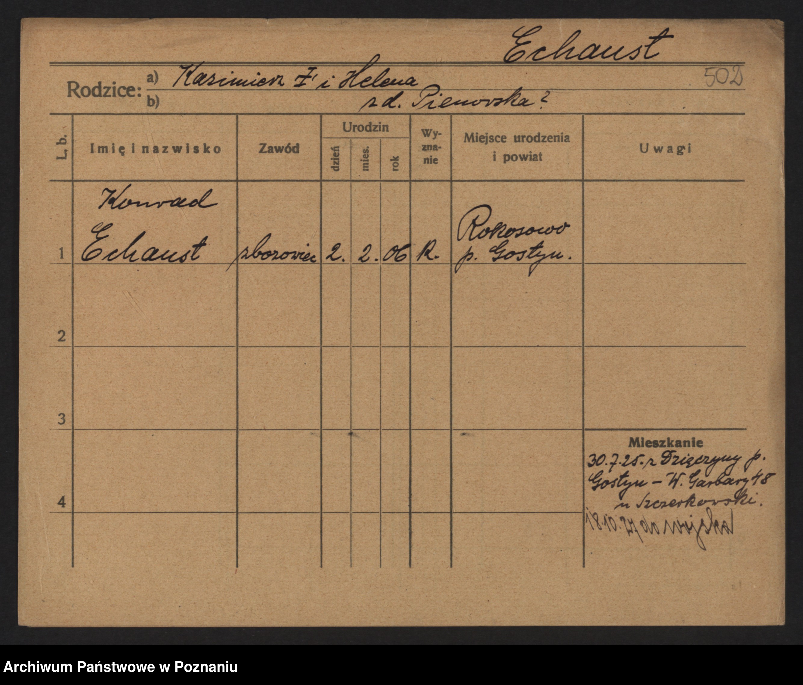 Podgląd karty osobowej dostępny jest po kliknięciu na nazwisko lub ikonkę karty. Można dokonywać powiększenia (ikony na górze) lub przechodzić między kolejnymi skanami (strzałki po bokach).