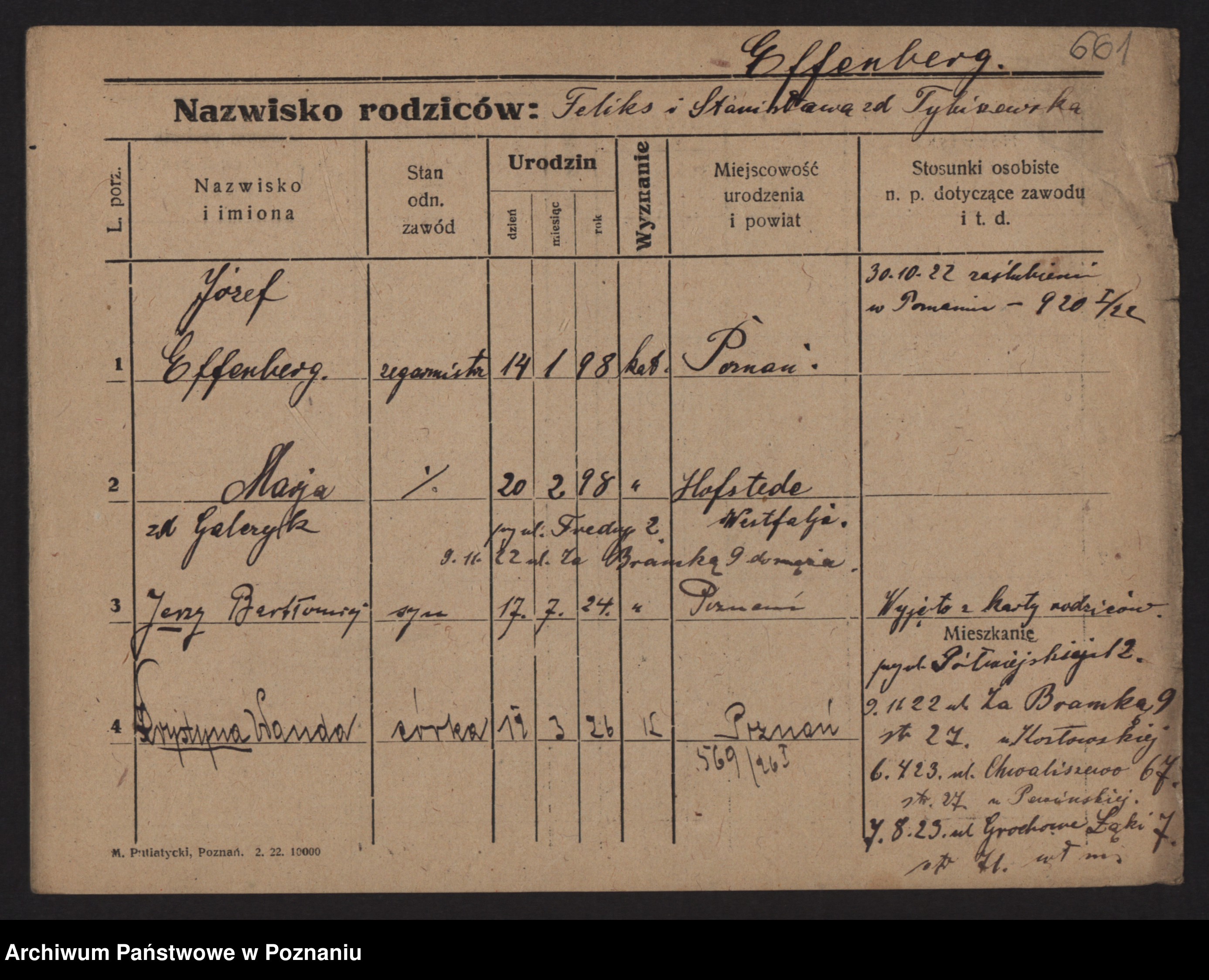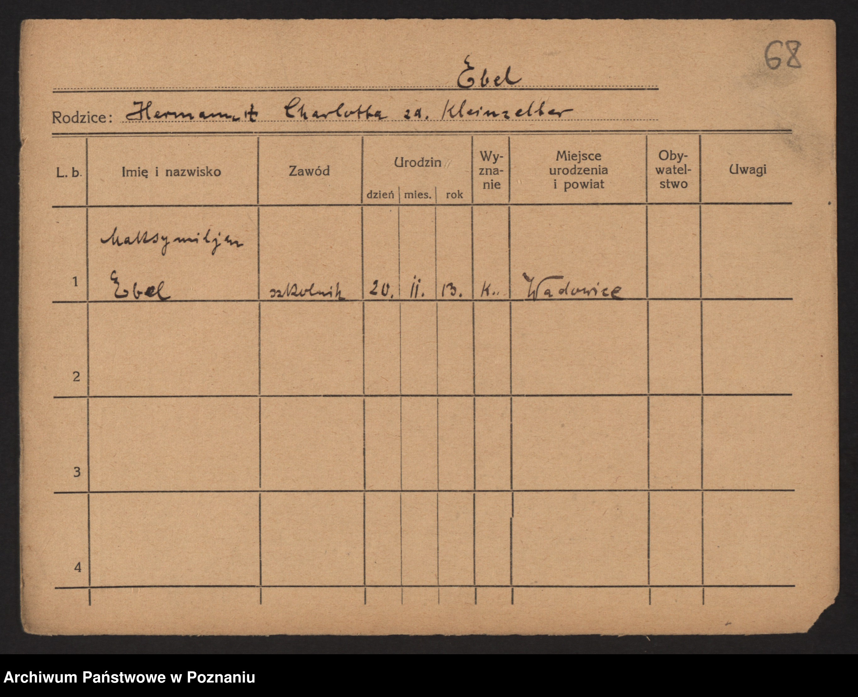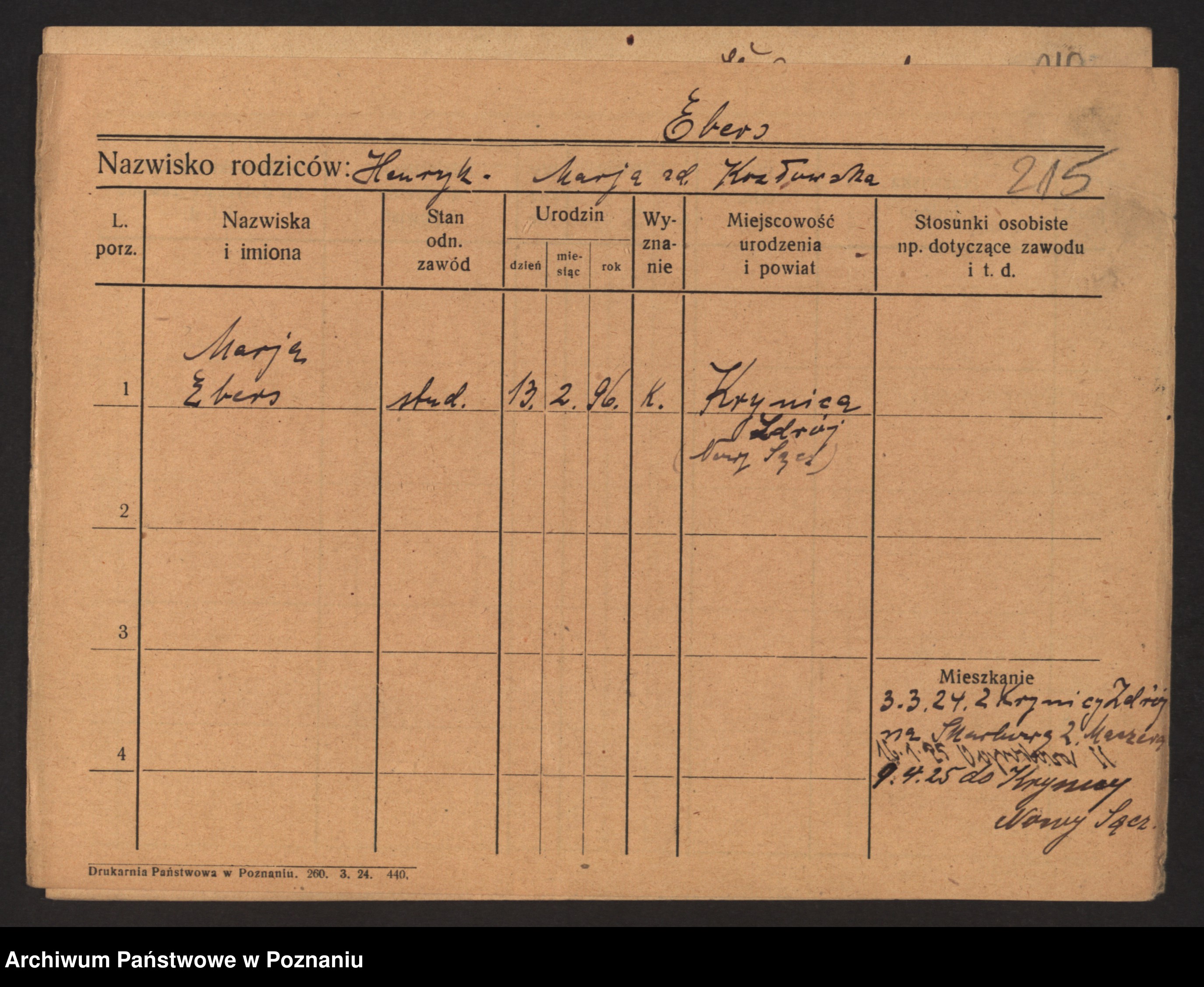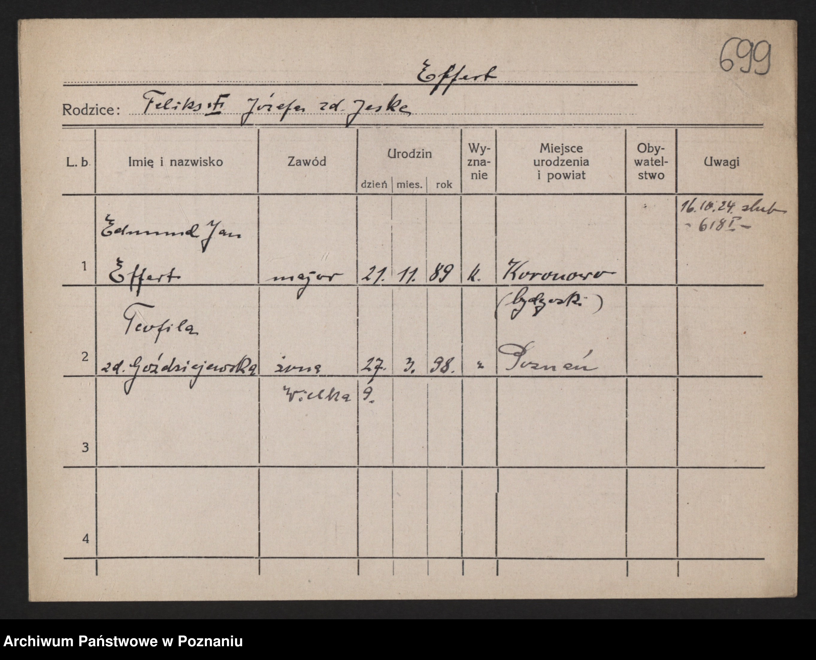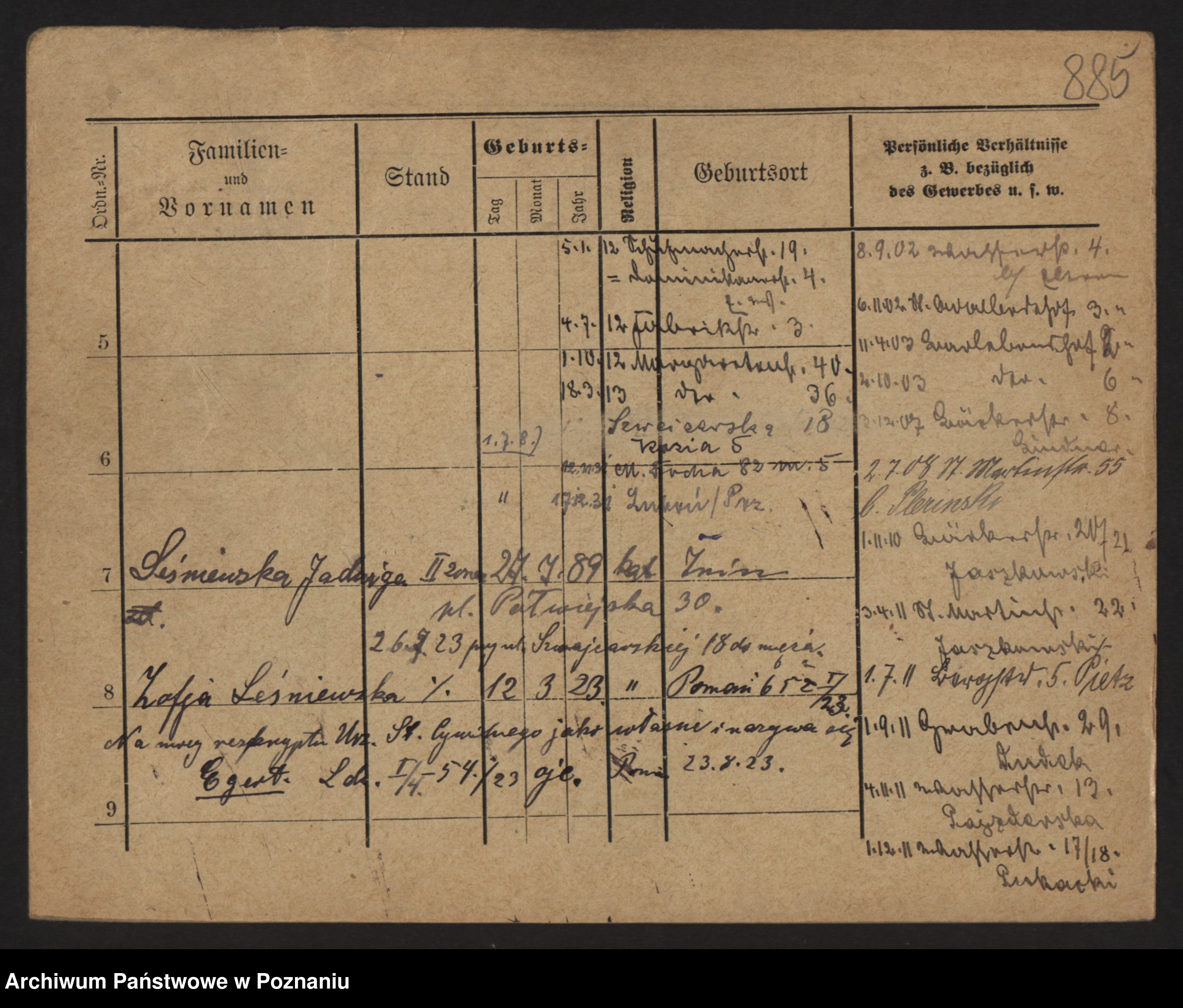 Podgląd karty osobowej dostępny jest po kliknięciu na nazwisko lub ikonkę karty. Można dokonywać powiększenia (ikony na górze) lub przechodzić między kolejnymi skanami (strzałki po bokach).