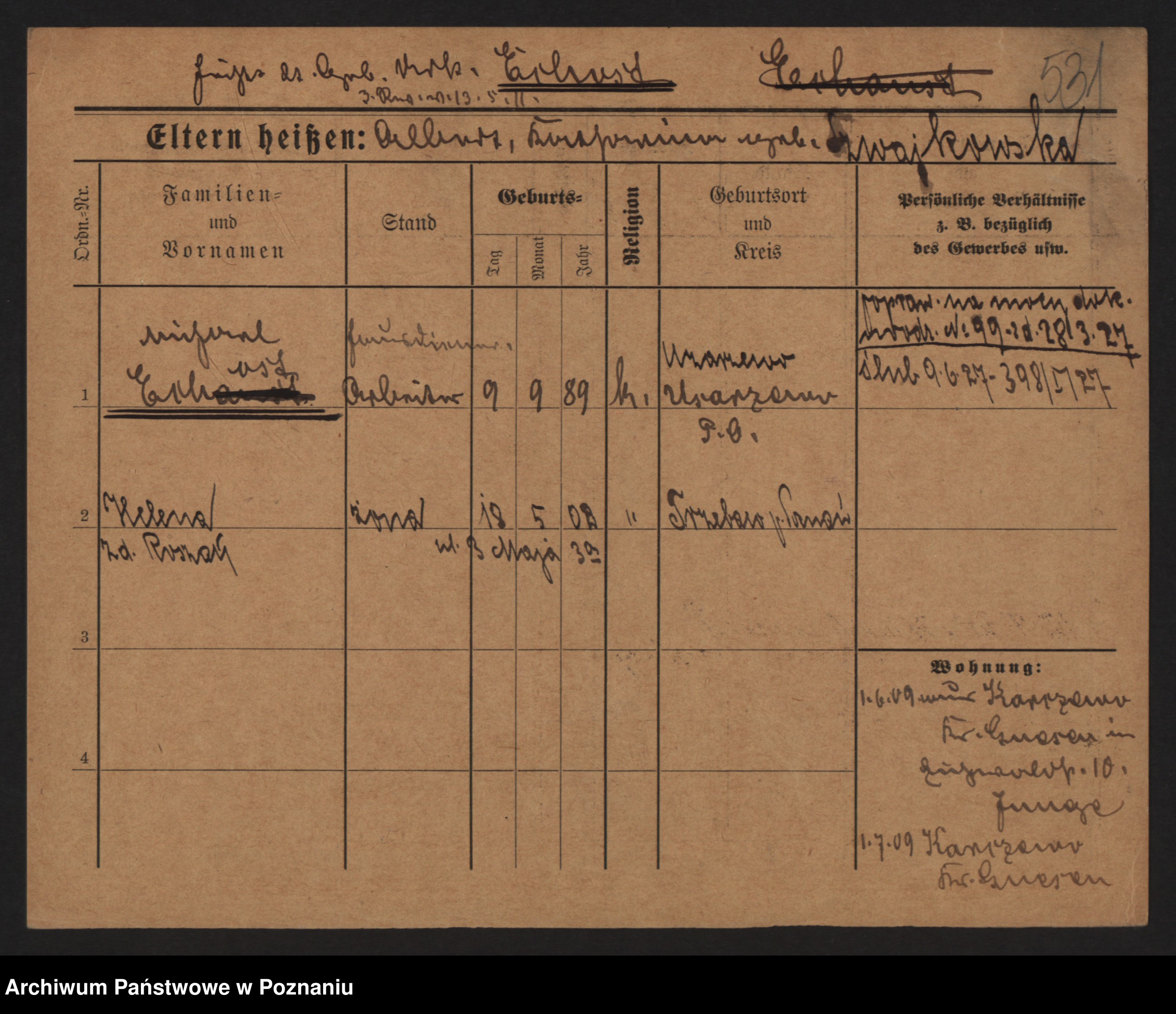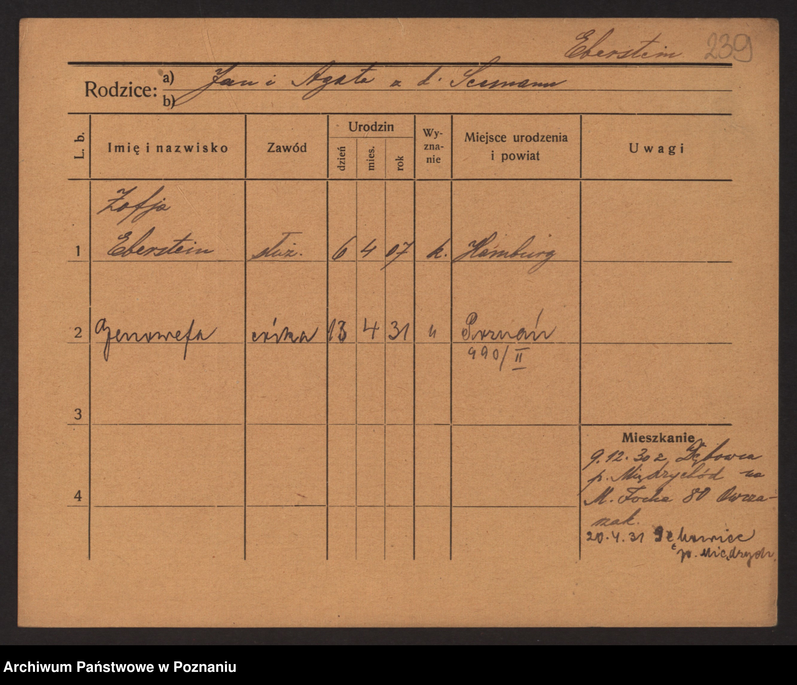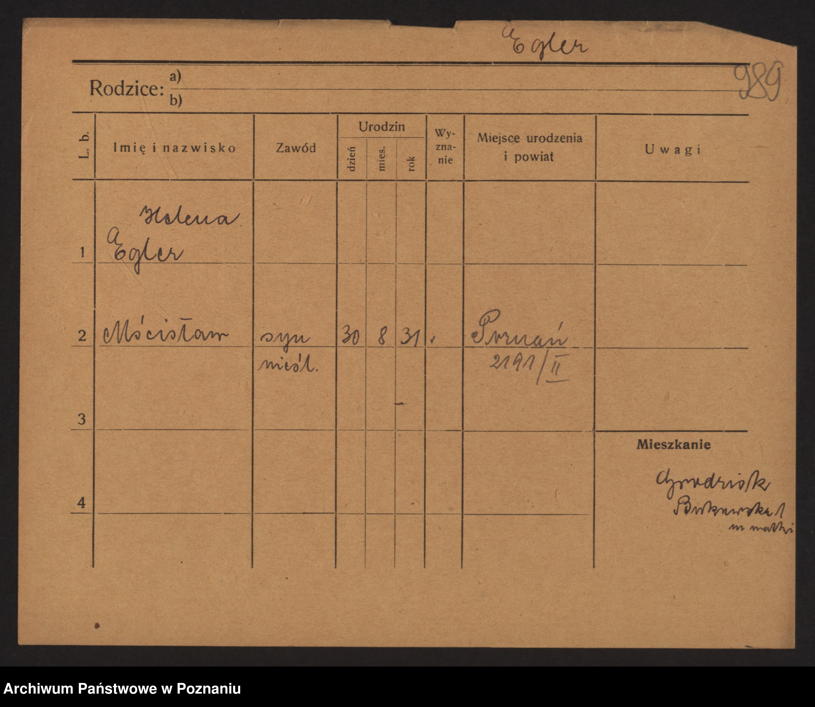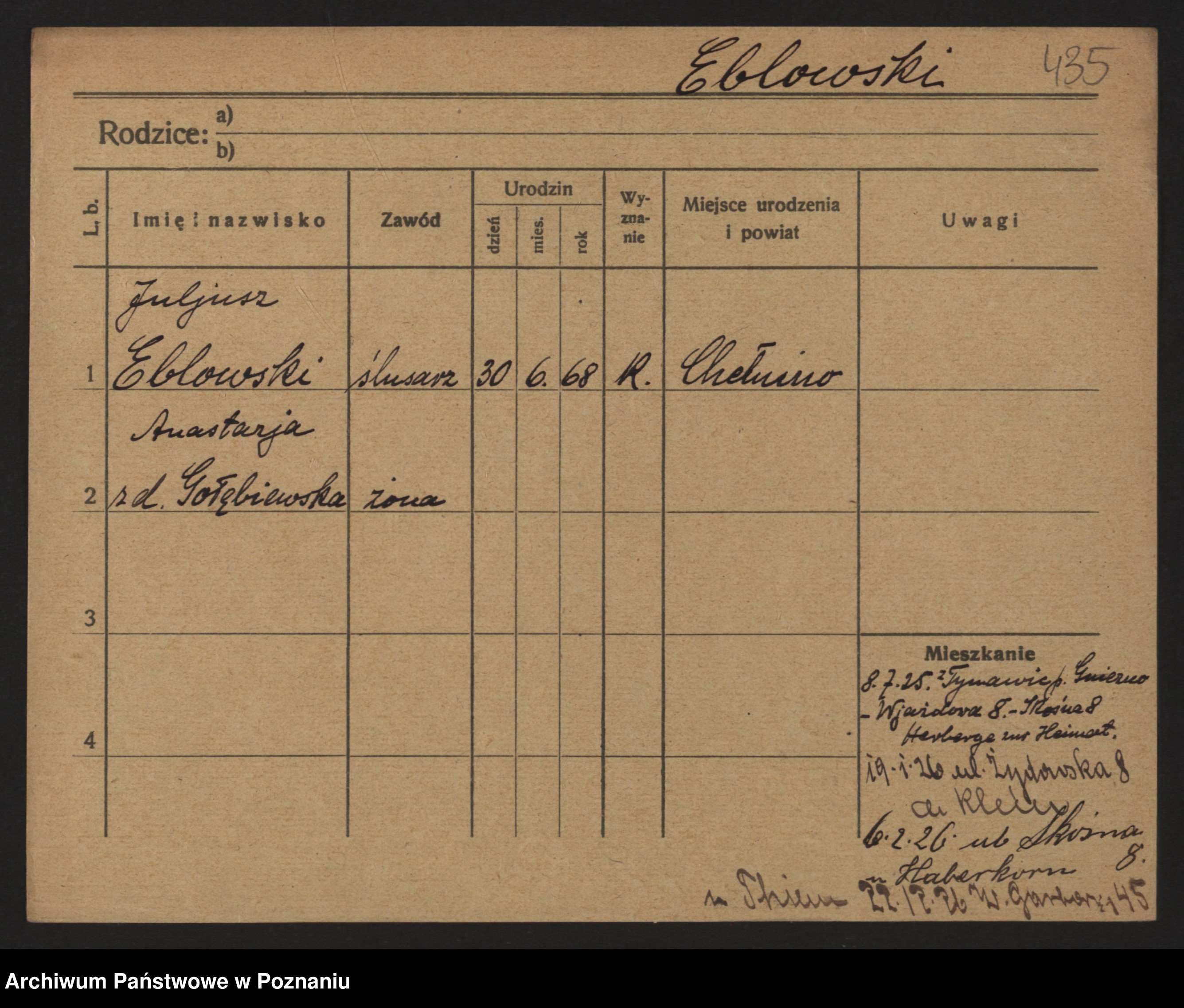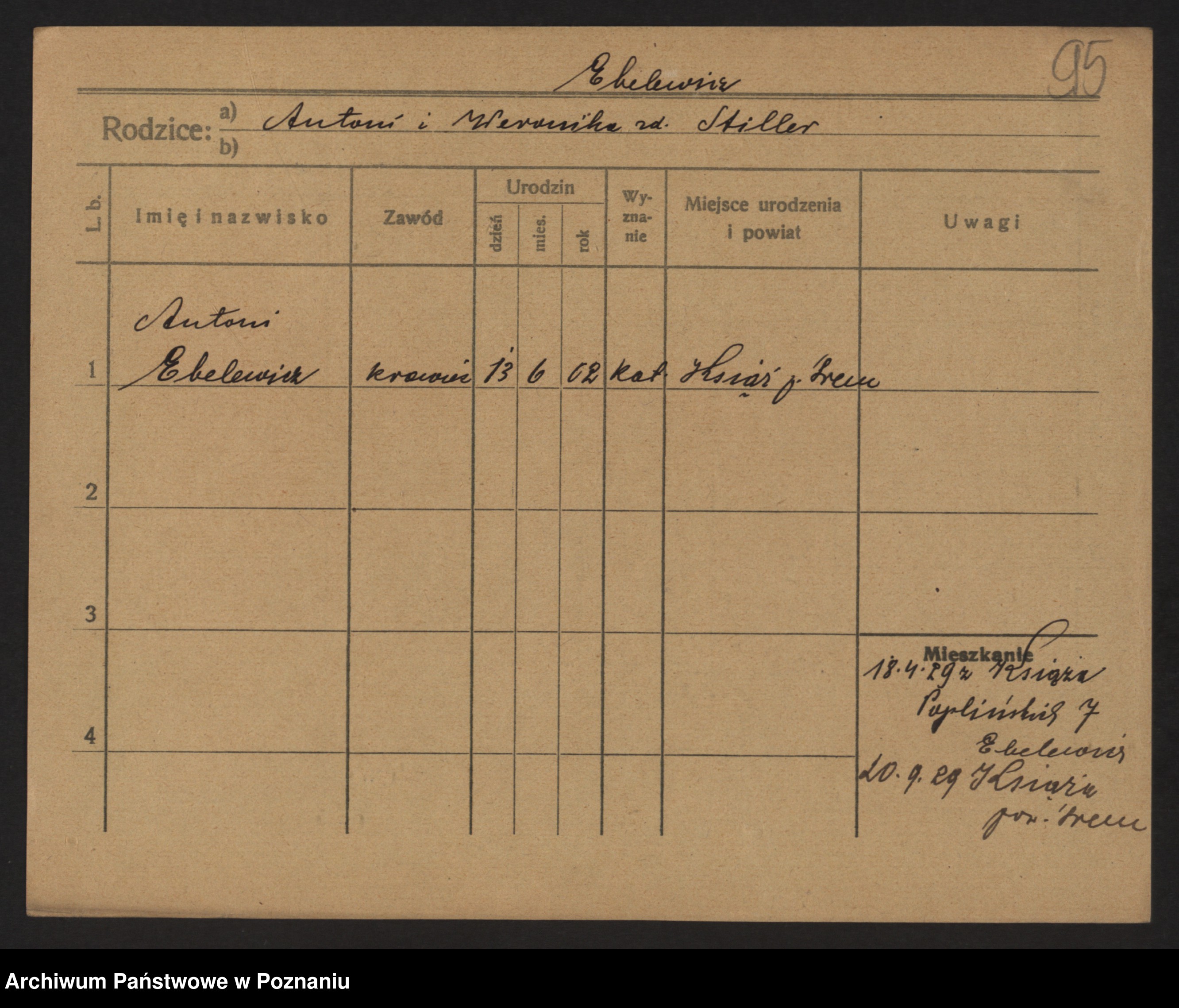 Podgląd karty osobowej dostępny jest po kliknięciu na nazwisko lub ikonkę karty. Można dokonywać powiększenia (ikony na górze) lub przechodzić między kolejnymi skanami (strzałki po bokach).