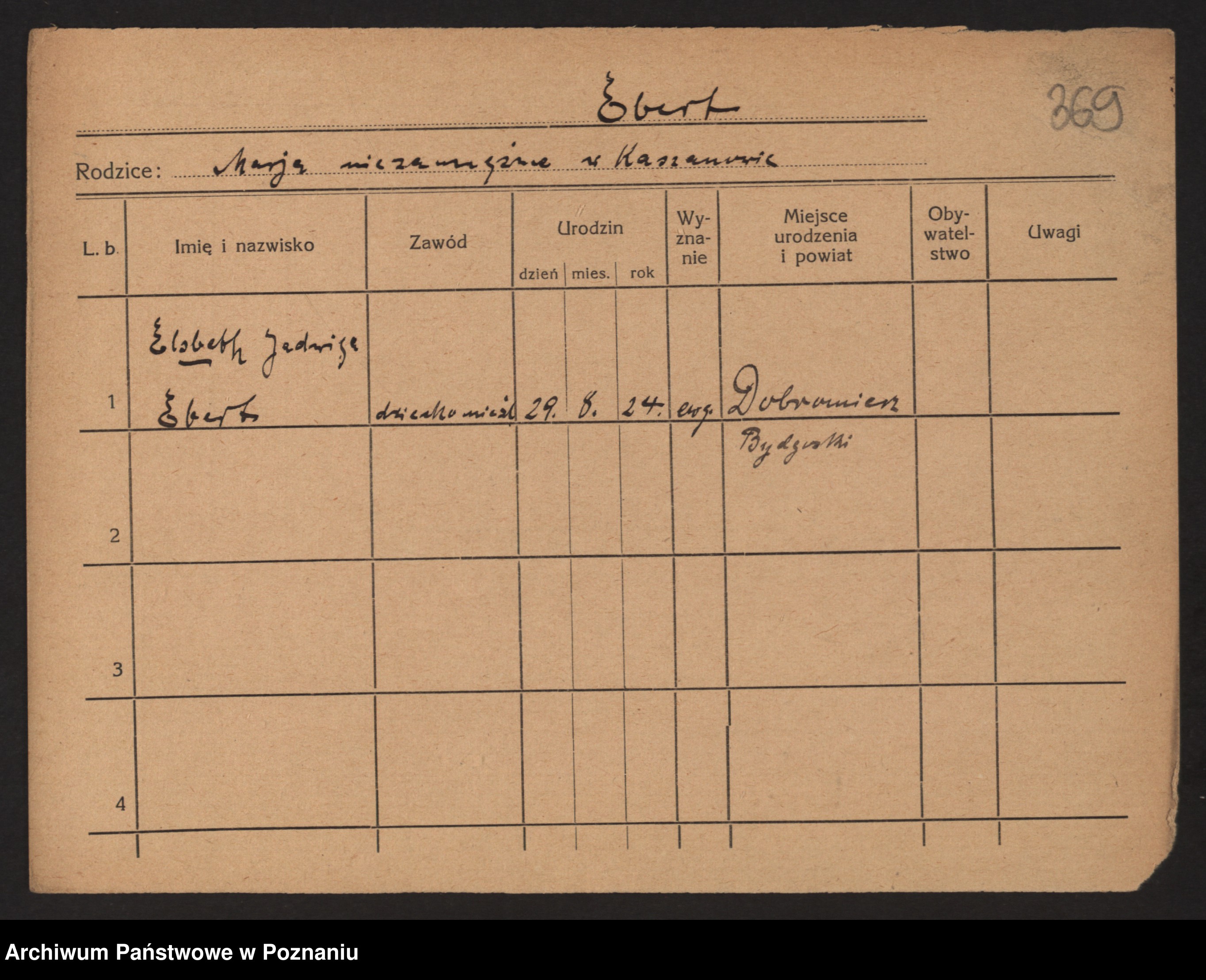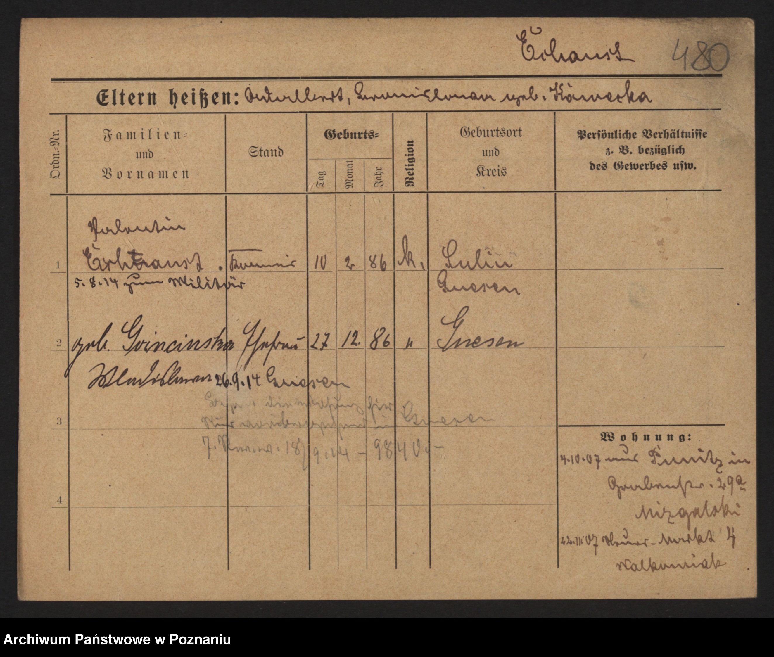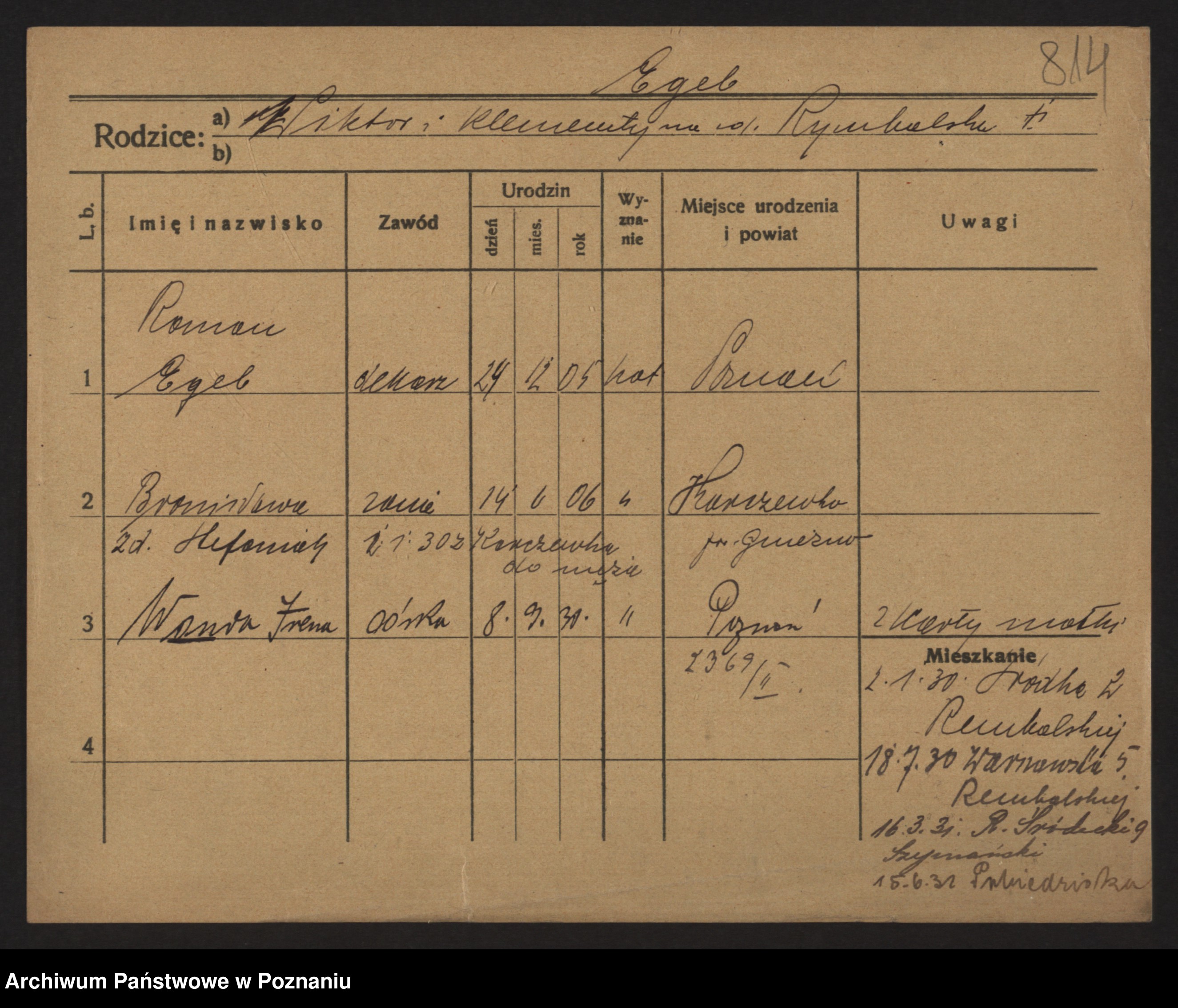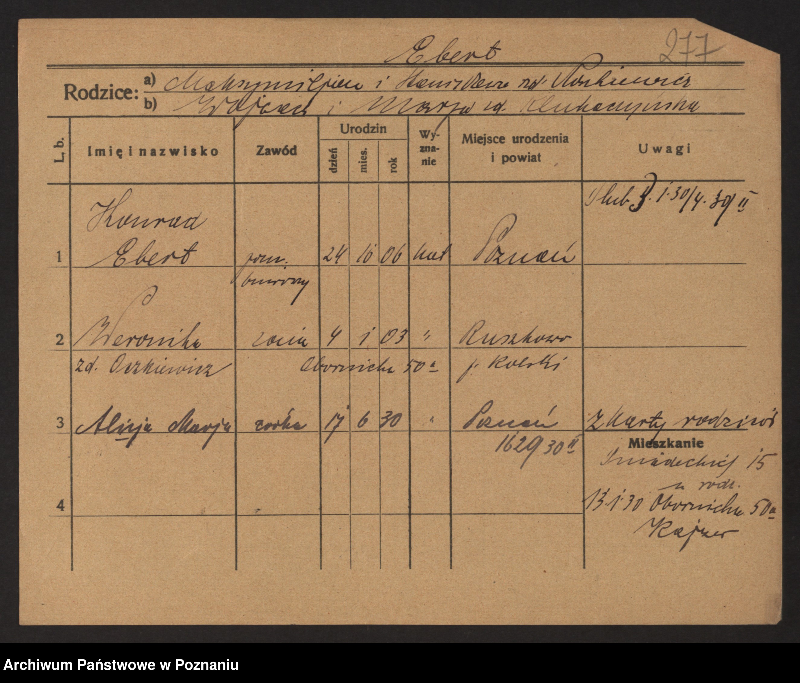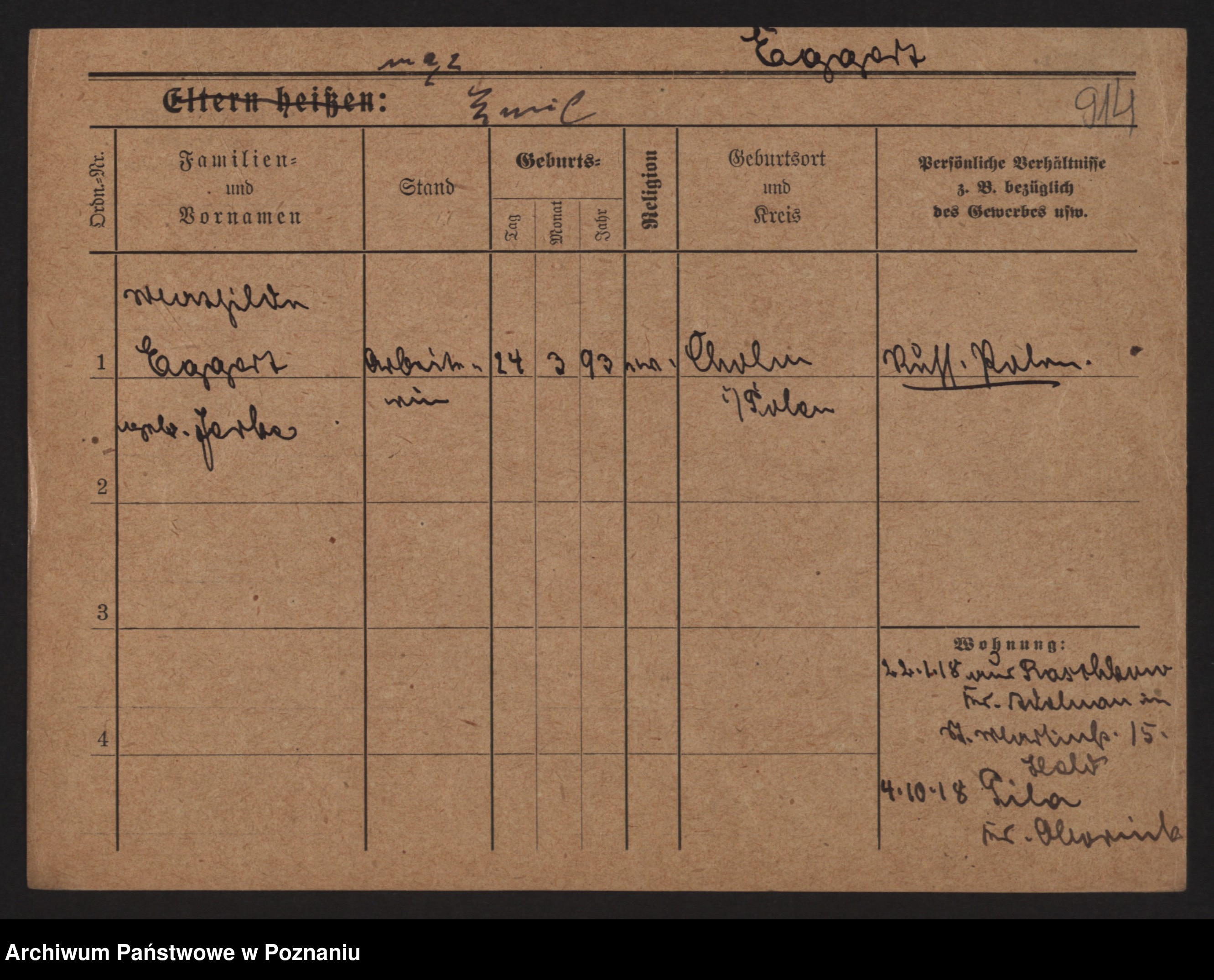 Podgląd karty osobowej dostępny jest po kliknięciu na nazwisko lub ikonkę karty. Można dokonywać powiększenia (ikony na górze) lub przechodzić między kolejnymi skanami (strzałki po bokach).