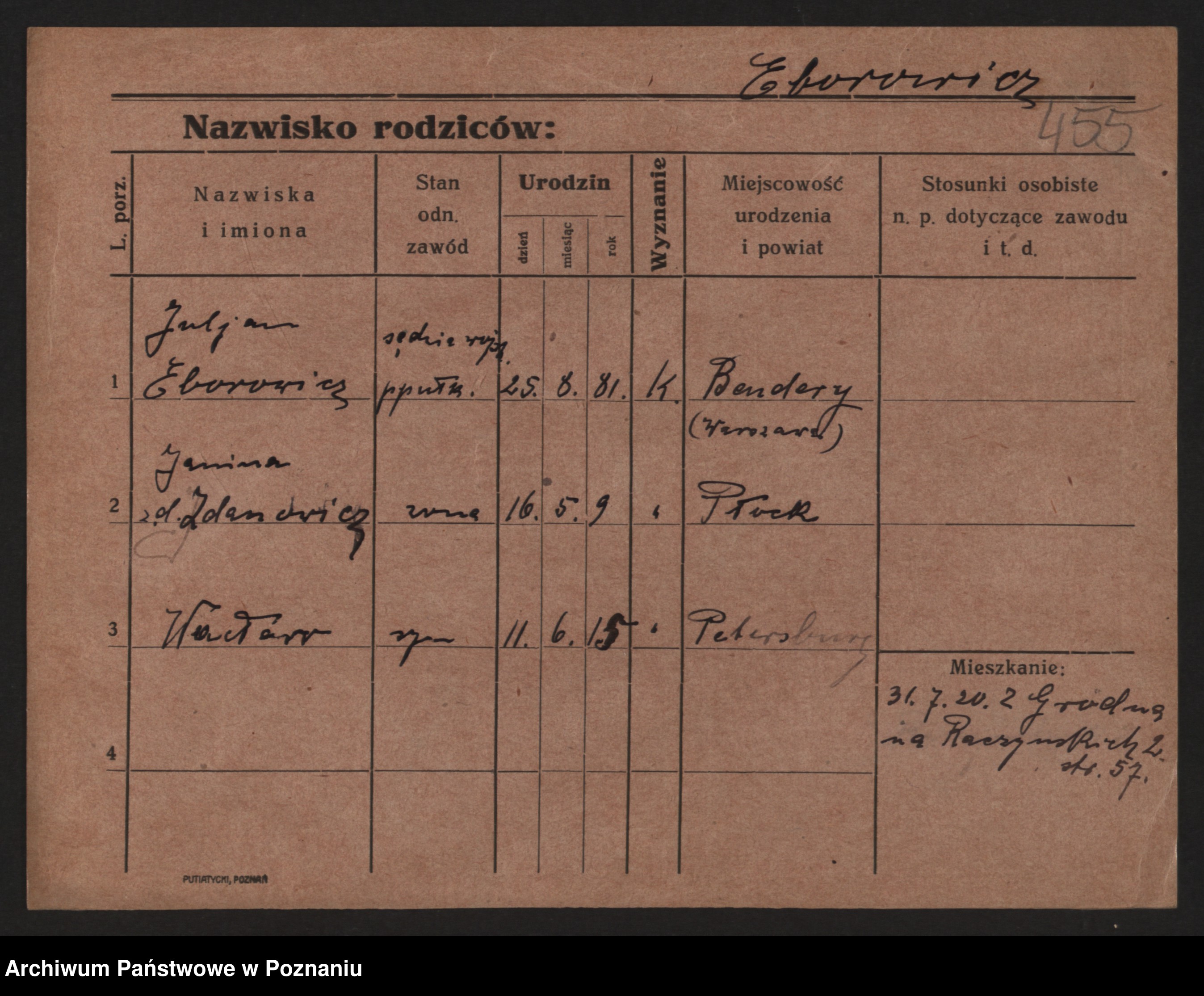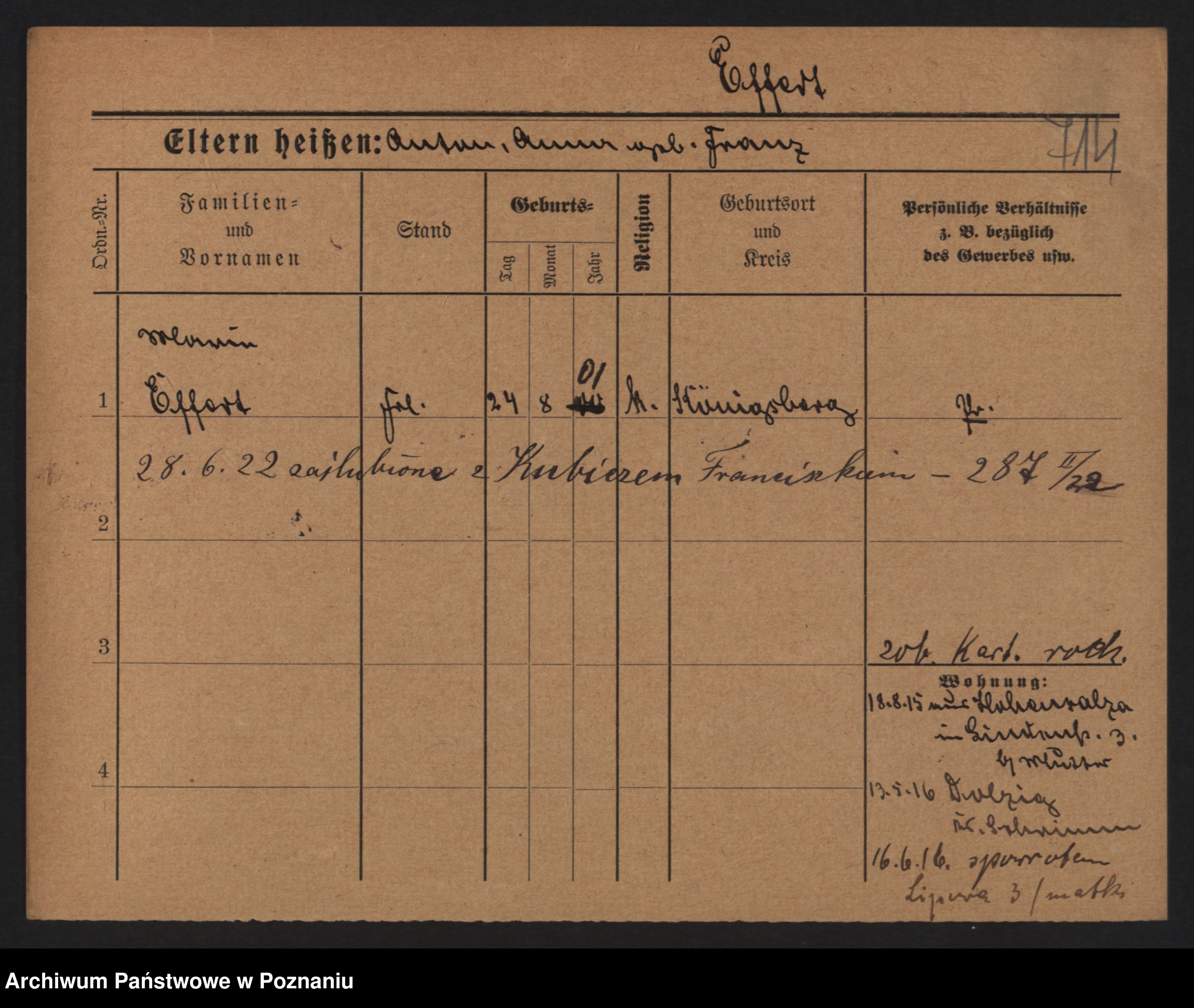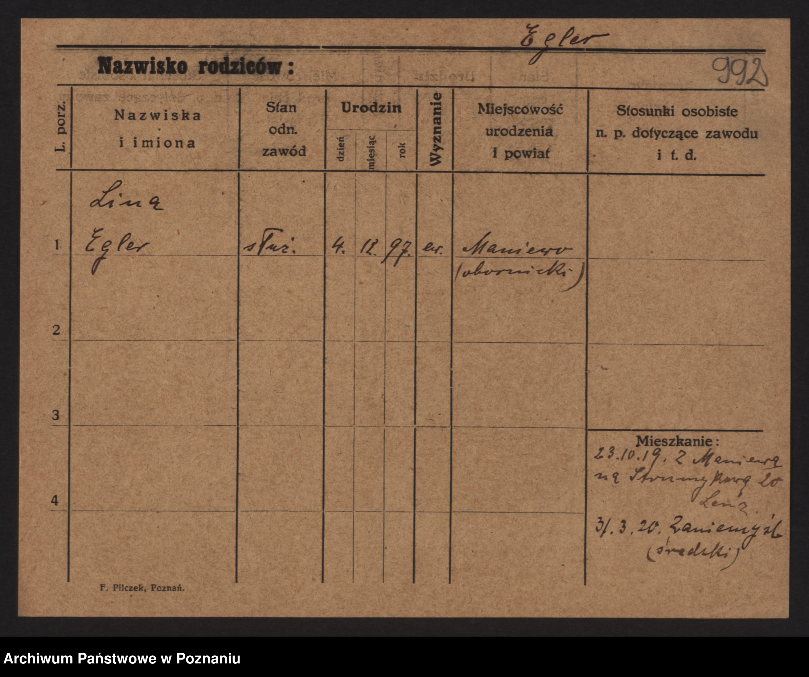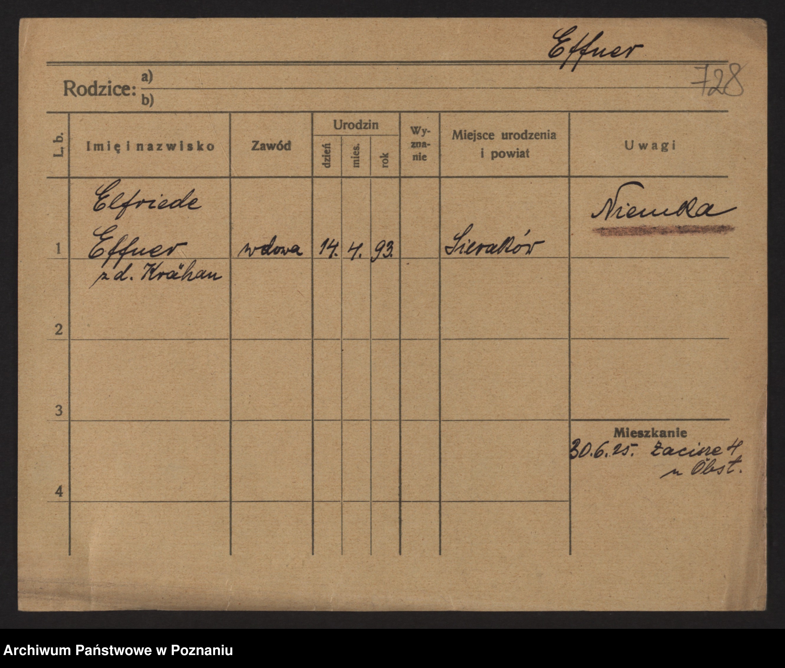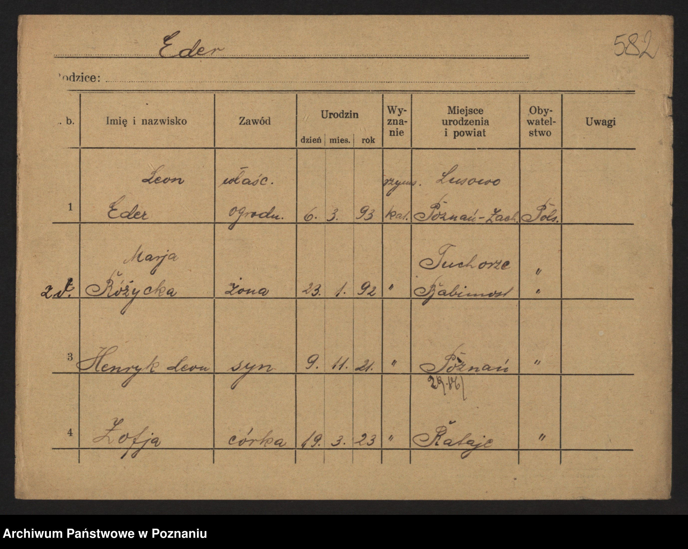 Podgląd karty osobowej dostępny jest po kliknięciu na nazwisko lub ikonkę karty. Można dokonywać powiększenia (ikony na górze) lub przechodzić między kolejnymi skanami (strzałki po bokach).