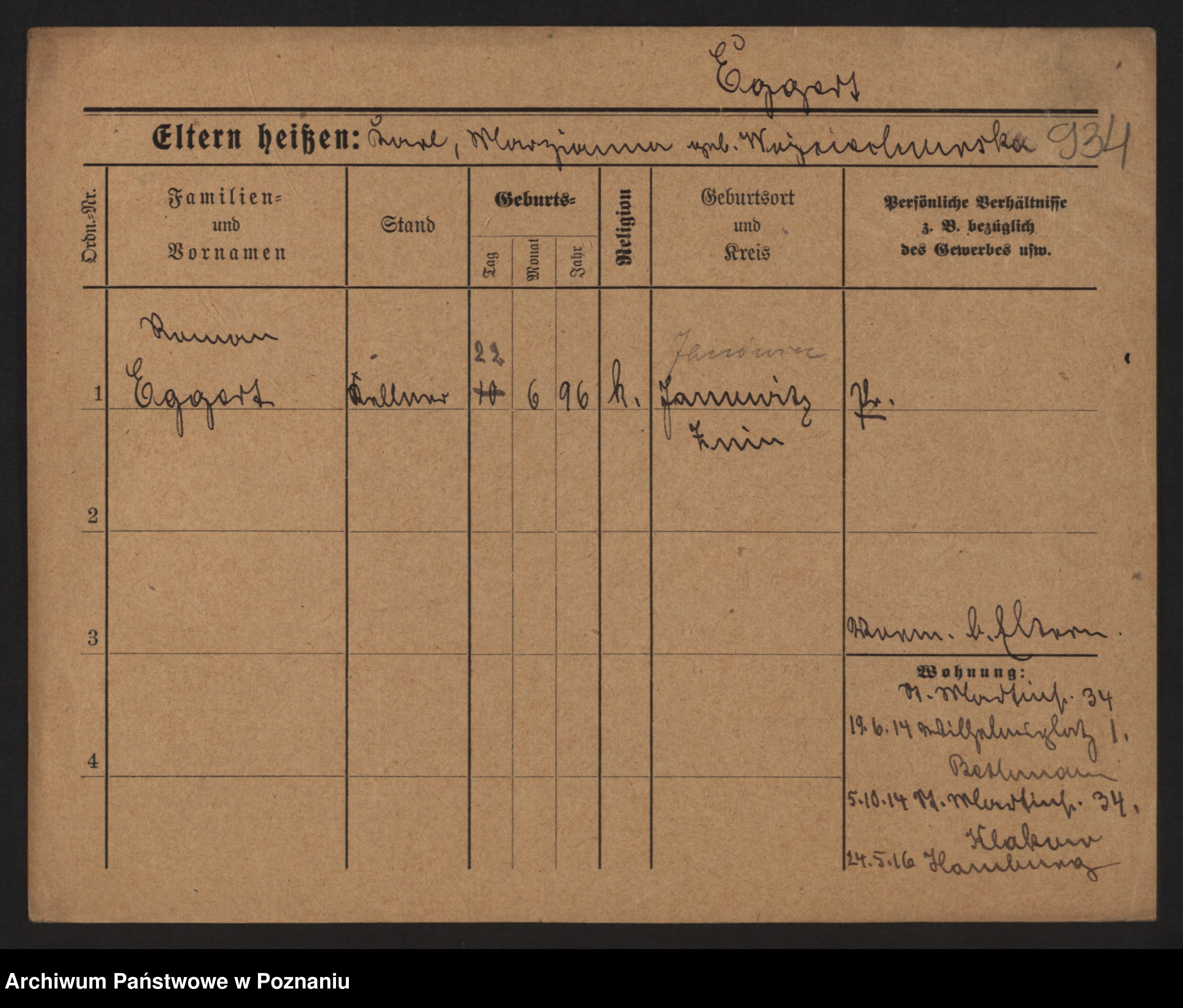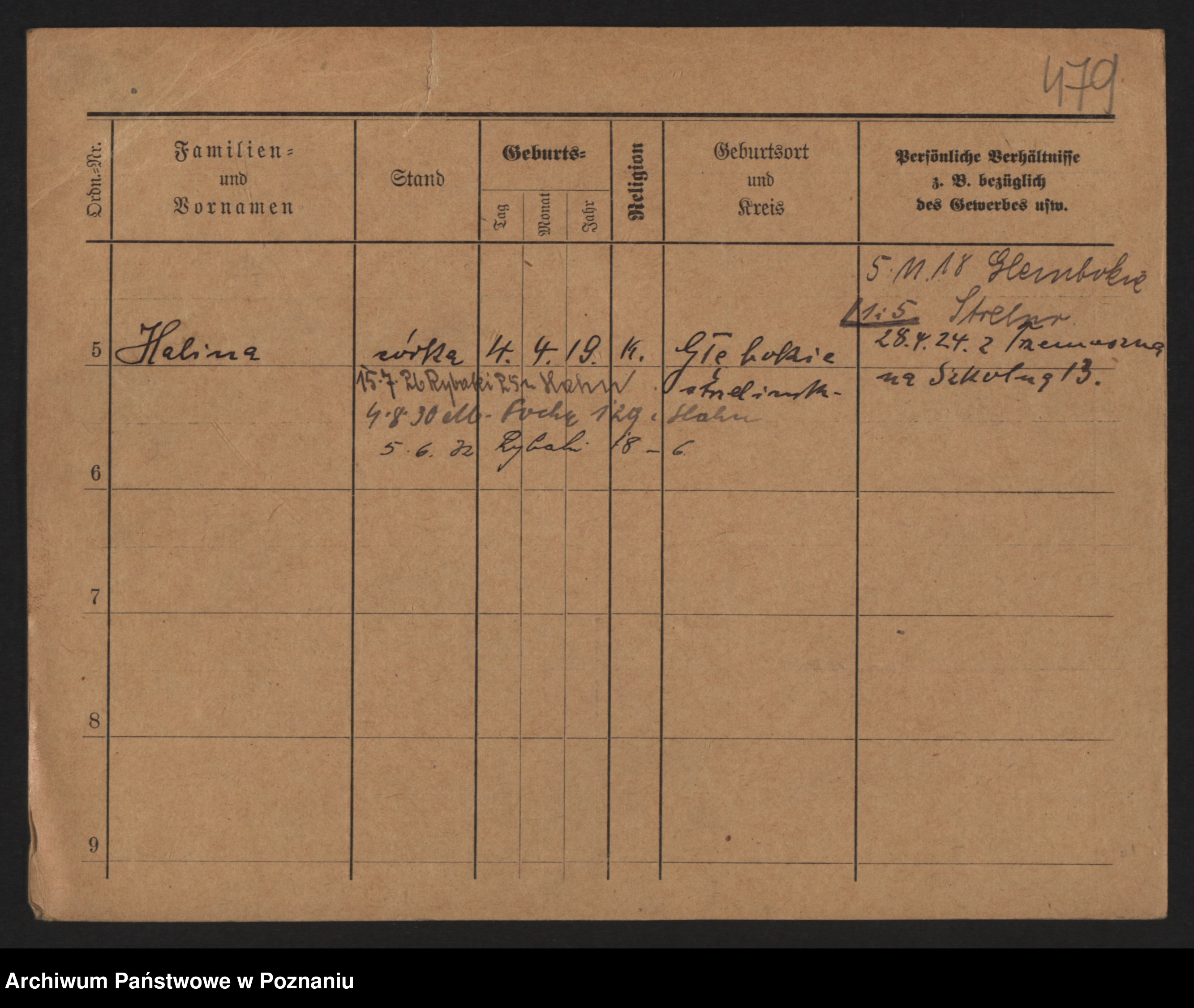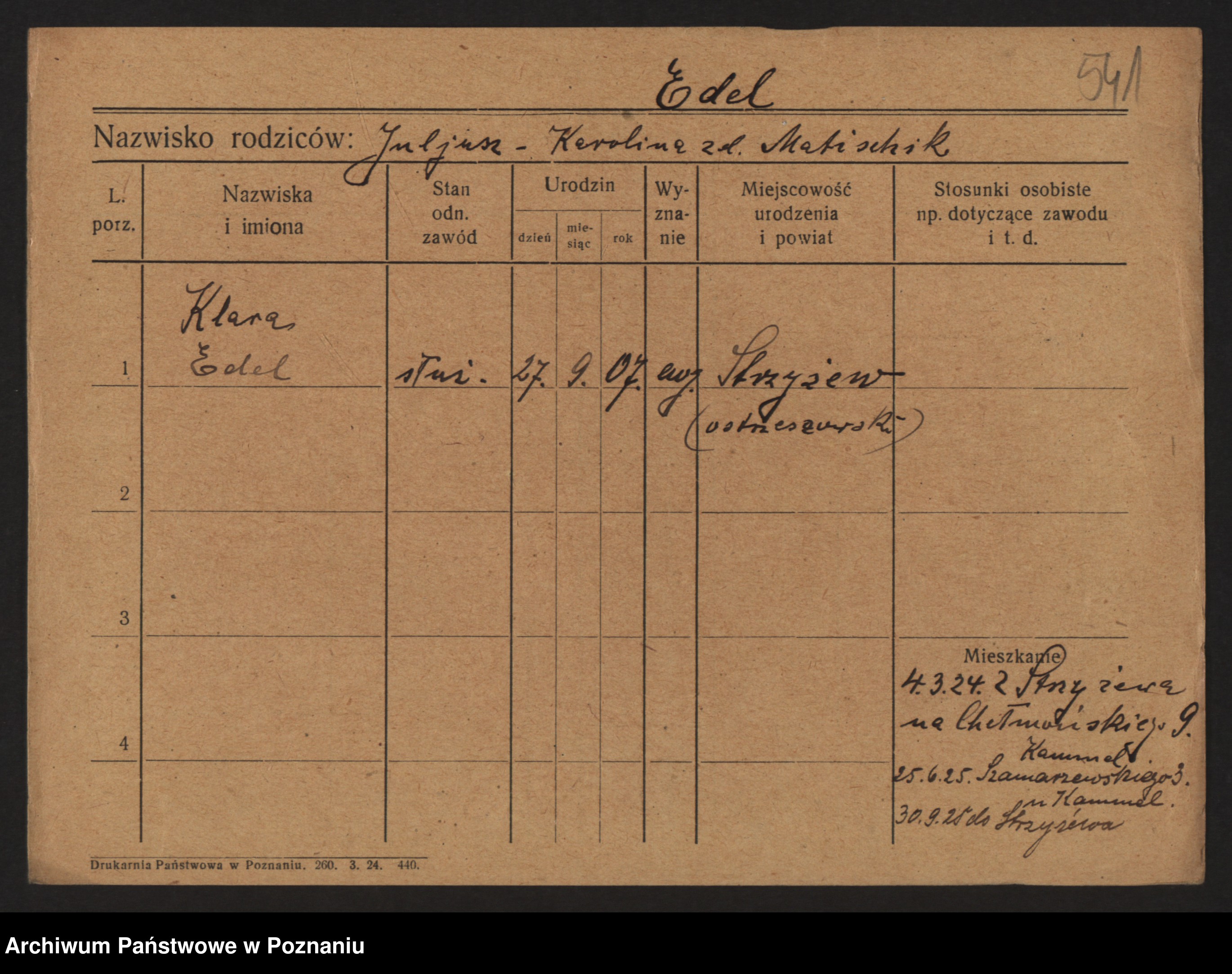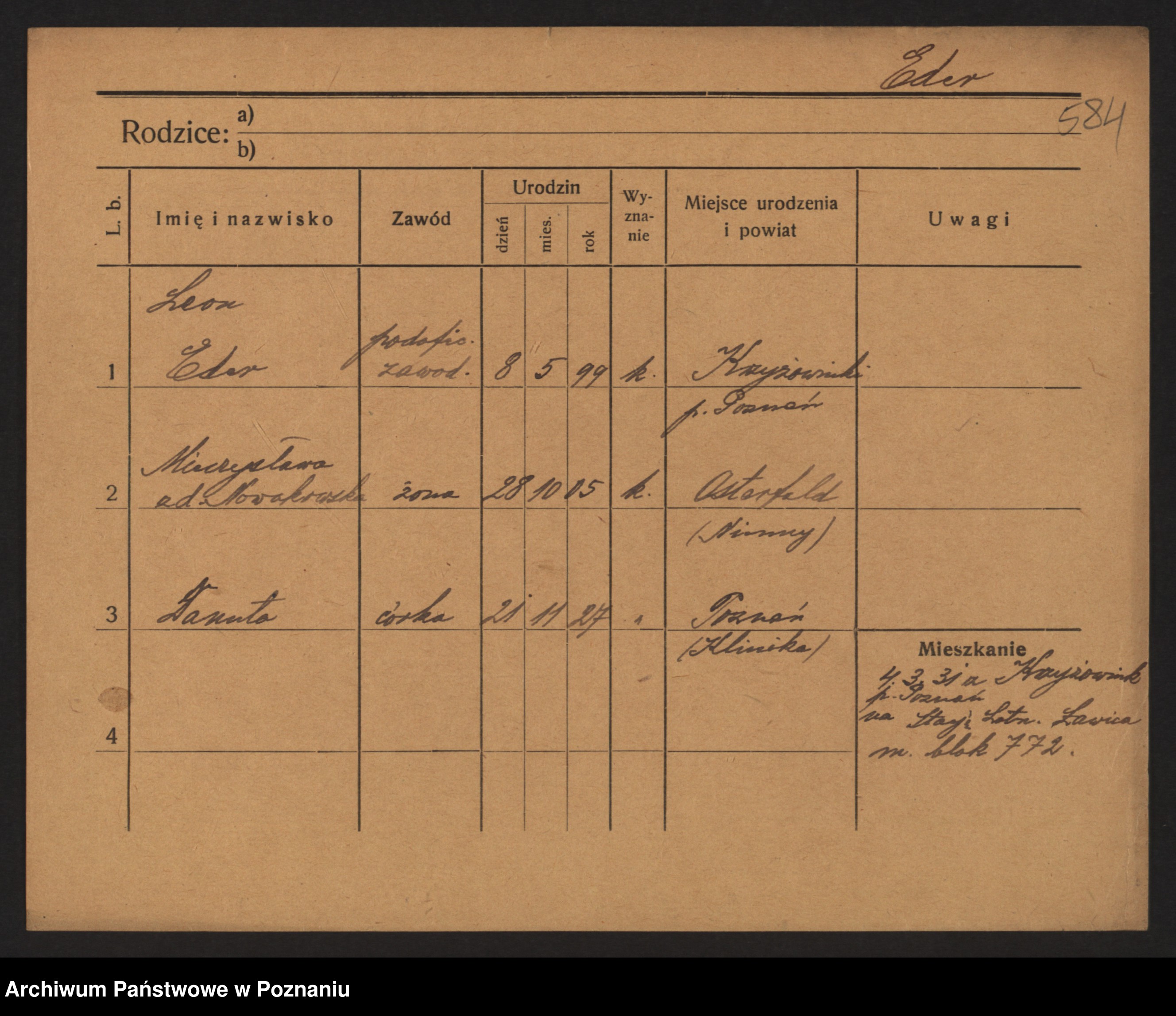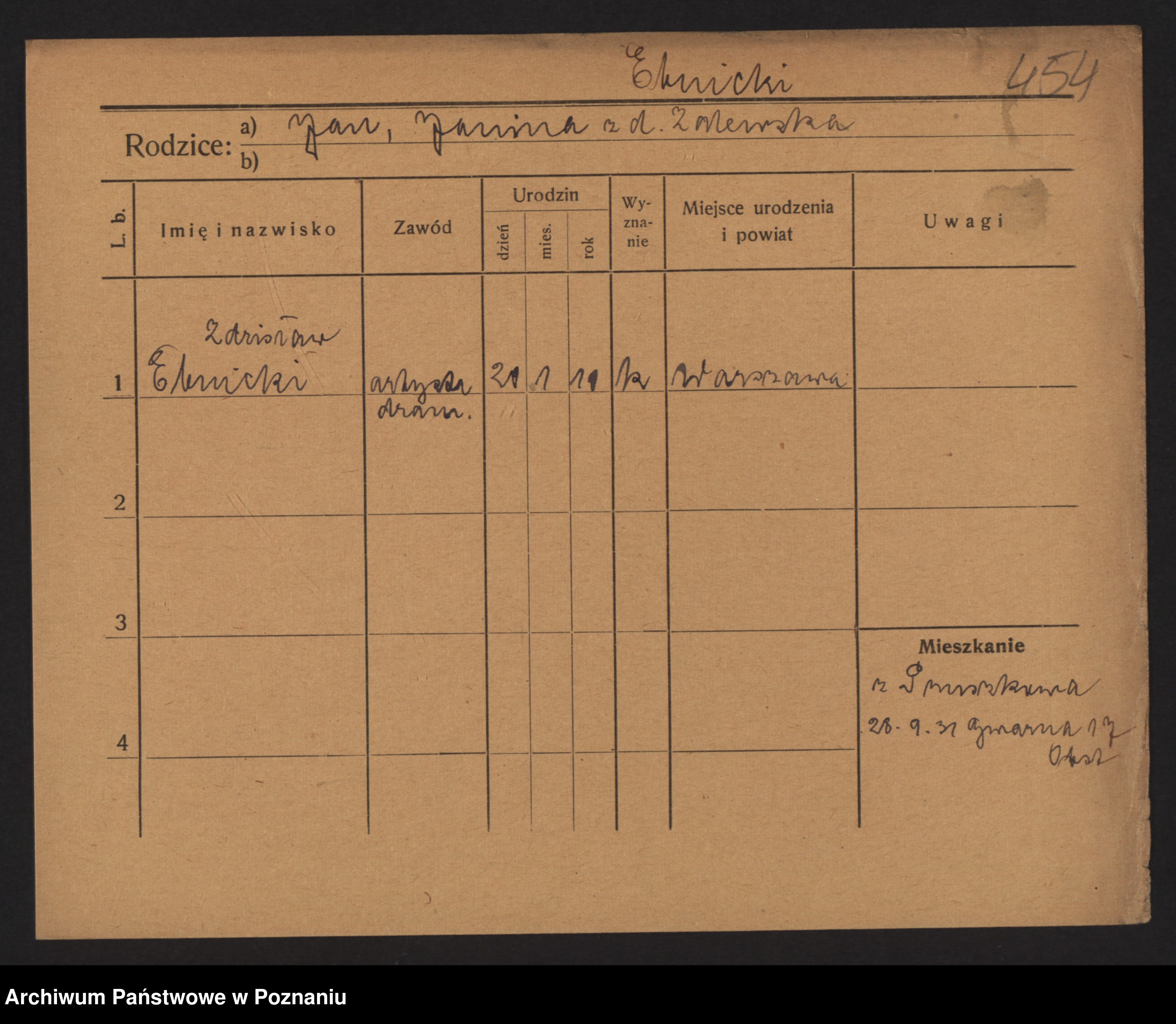 Podgląd karty osobowej dostępny jest po kliknięciu na nazwisko lub ikonkę karty. Można dokonywać powiększenia (ikony na górze) lub przechodzić między kolejnymi skanami (strzałki po bokach).