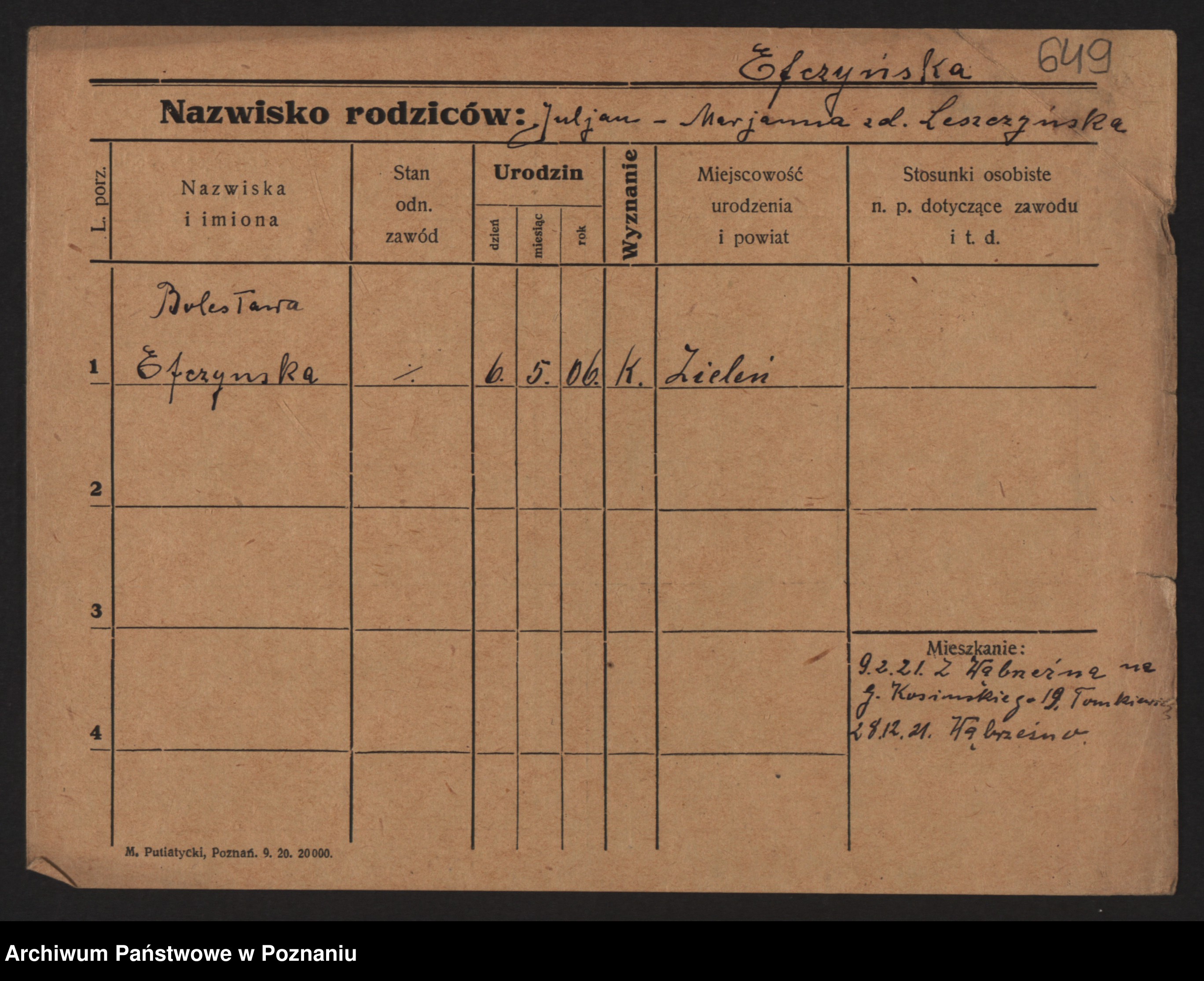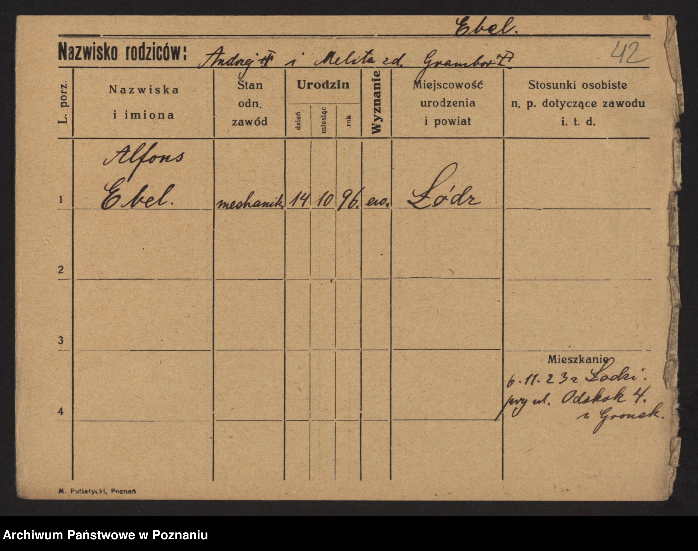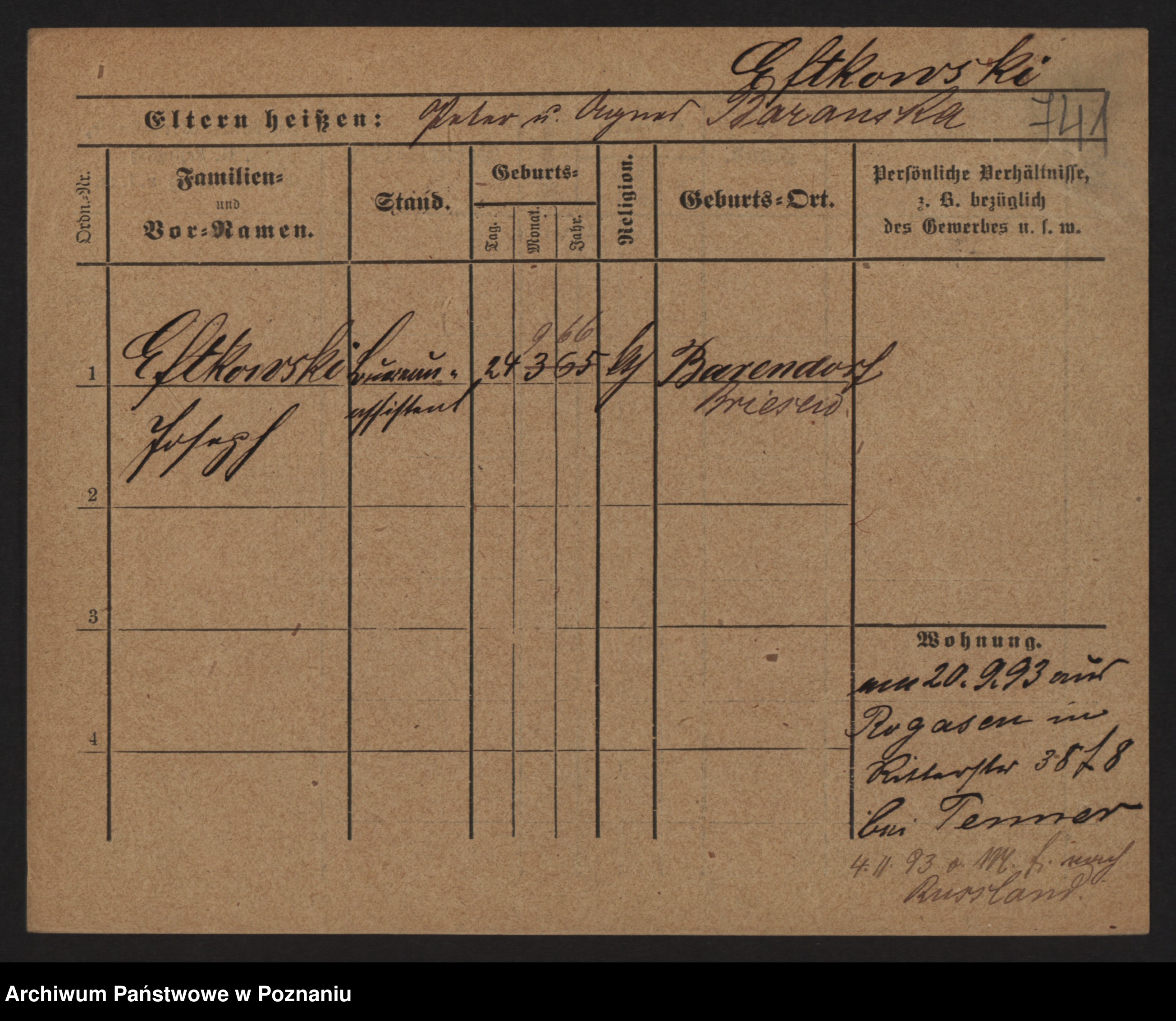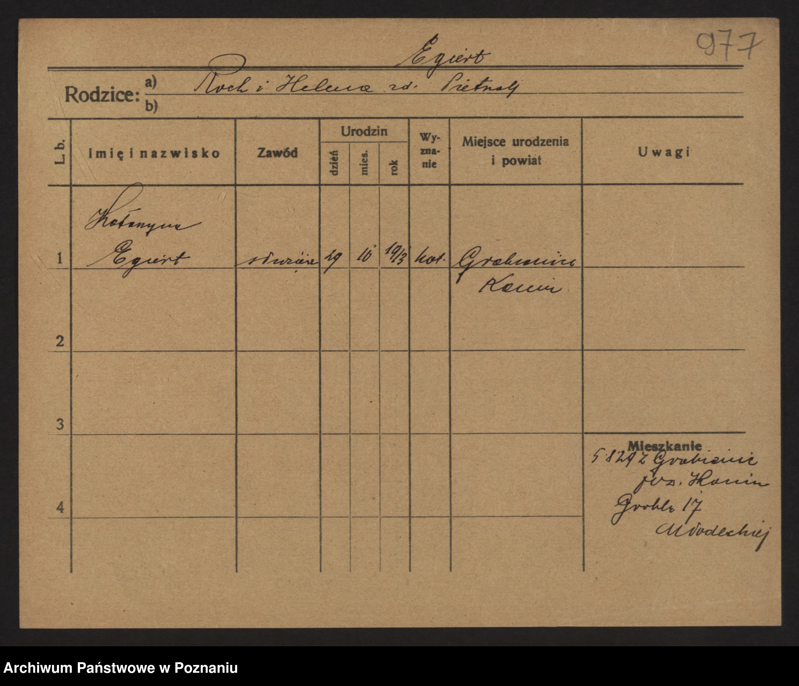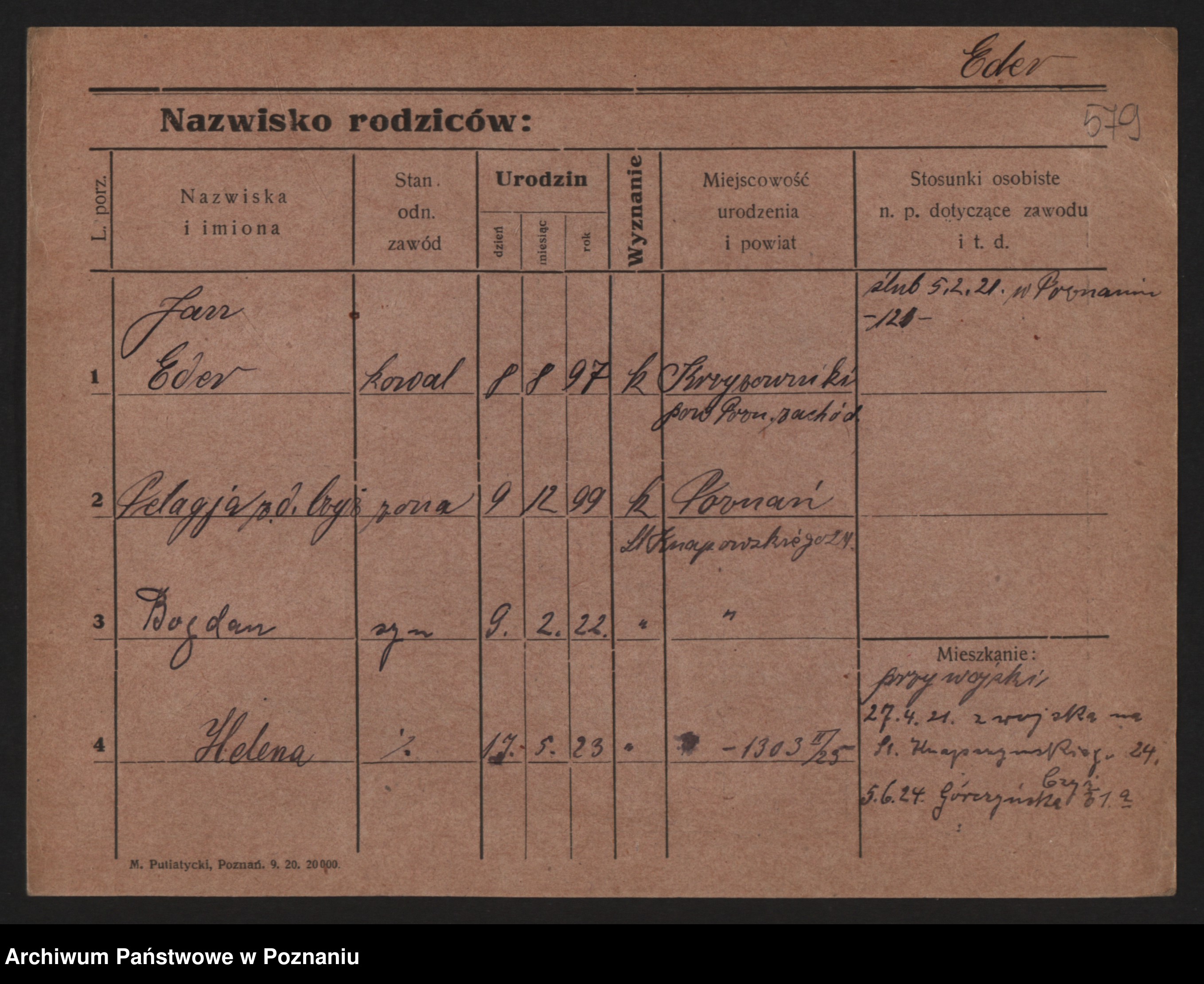 Podgląd karty osobowej dostępny jest po kliknięciu na nazwisko lub ikonkę karty. Można dokonywać powiększenia (ikony na górze) lub przechodzić między kolejnymi skanami (strzałki po bokach).