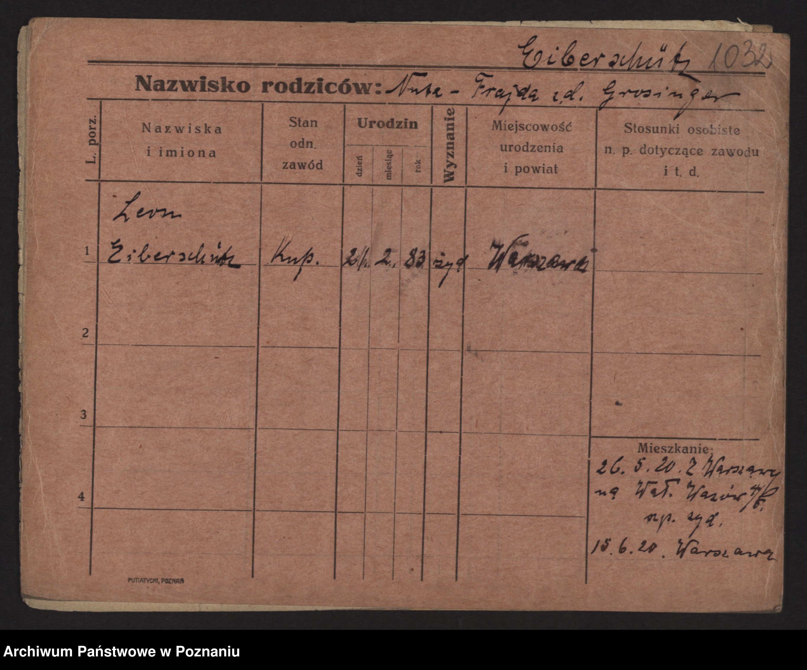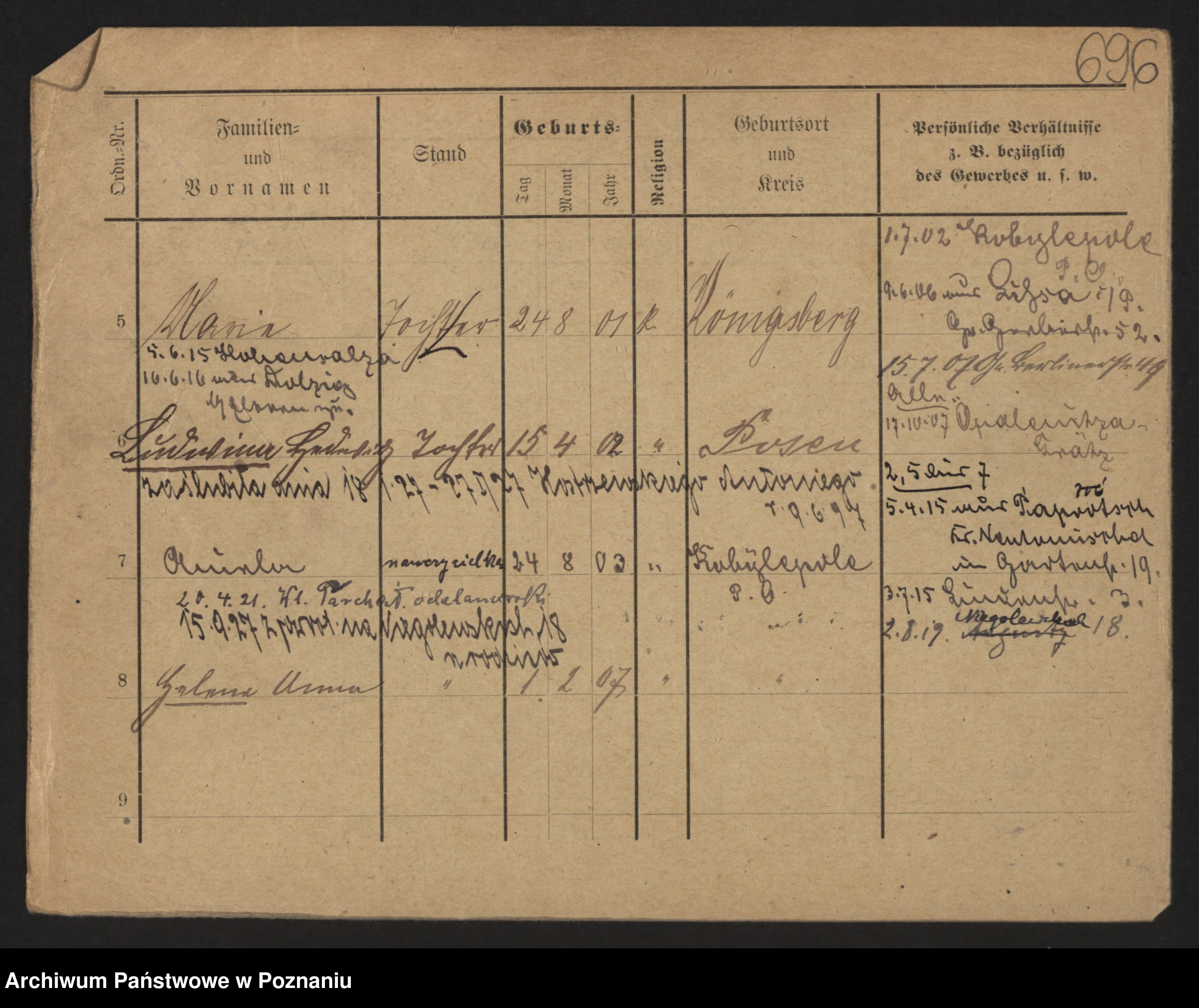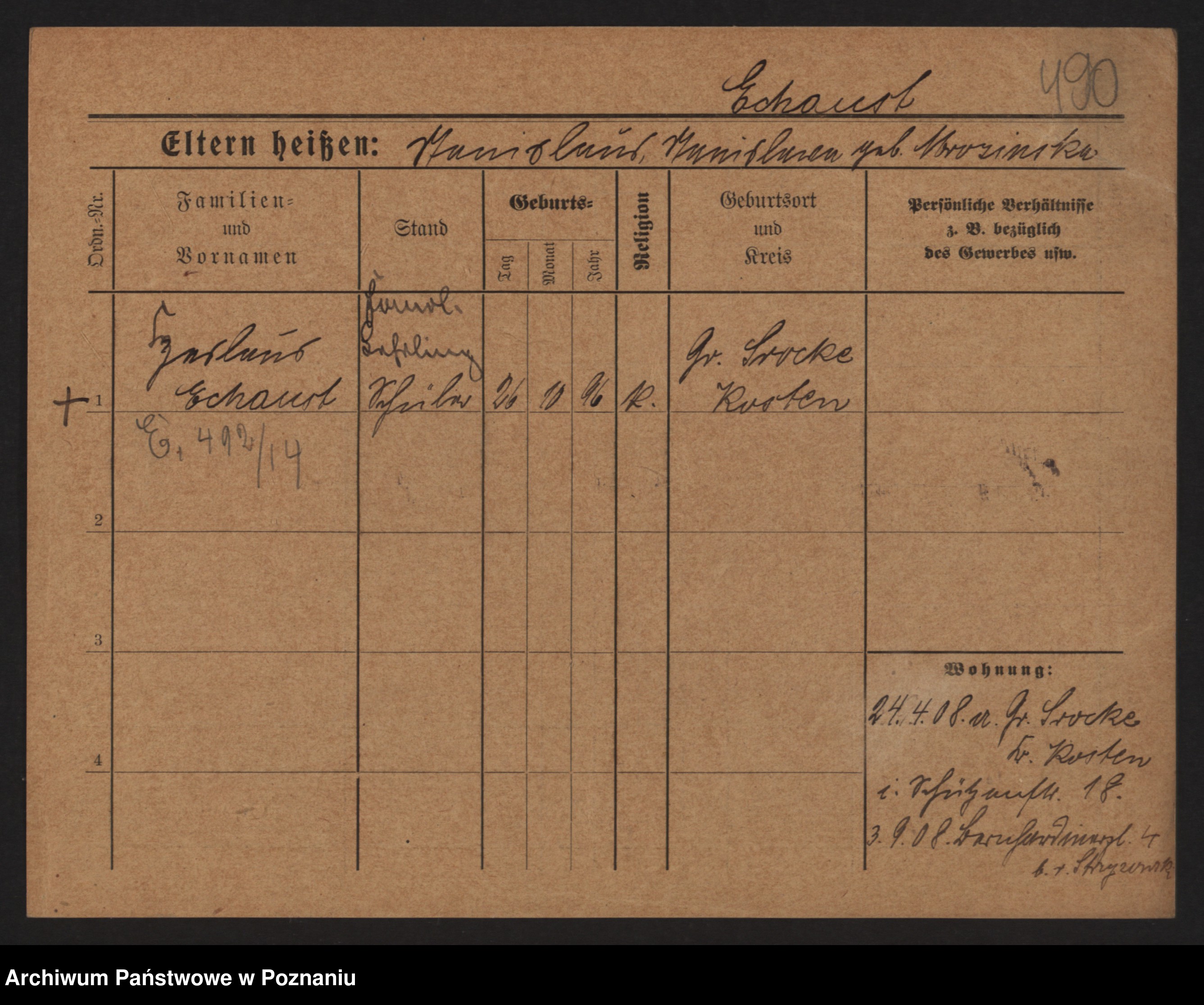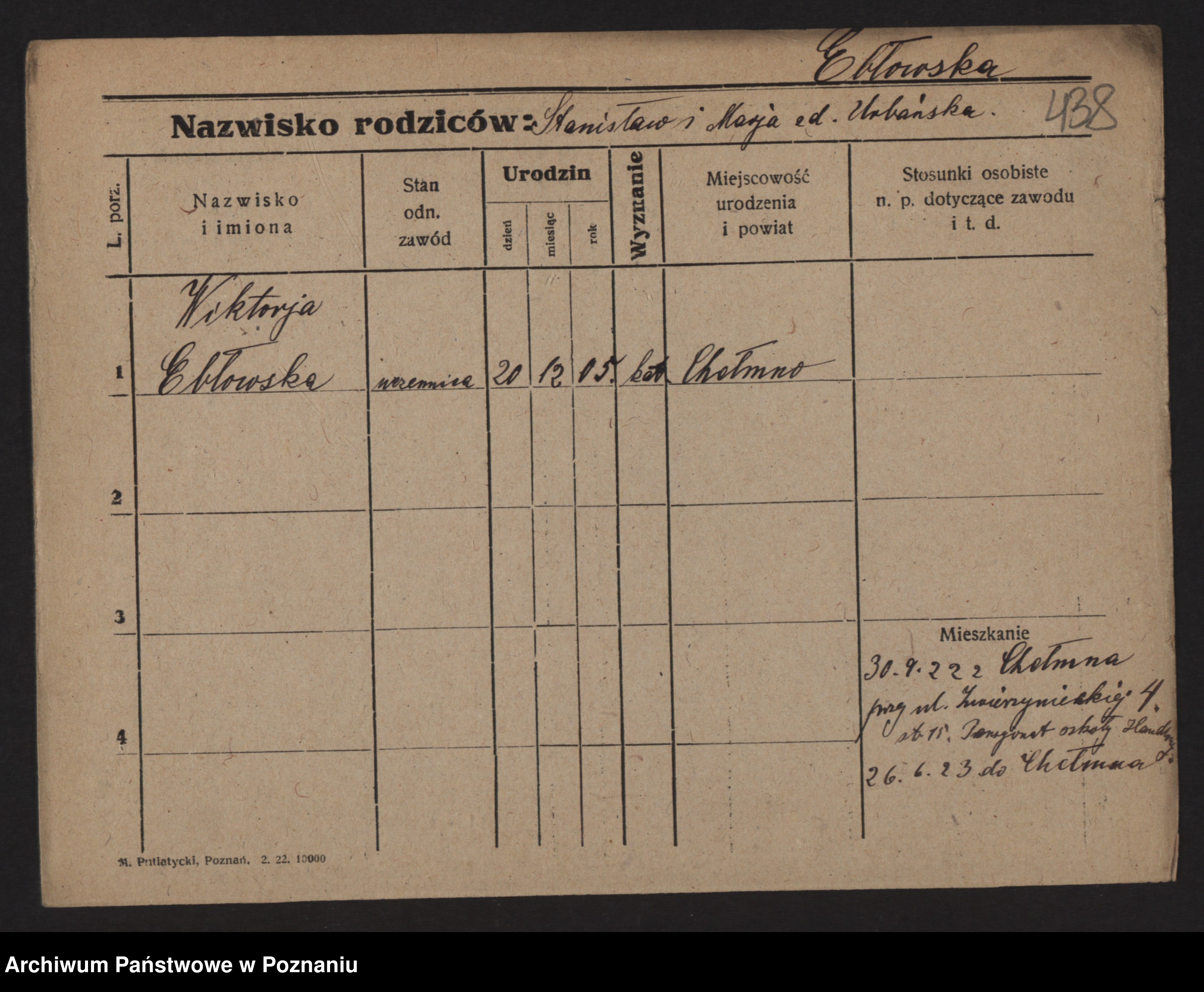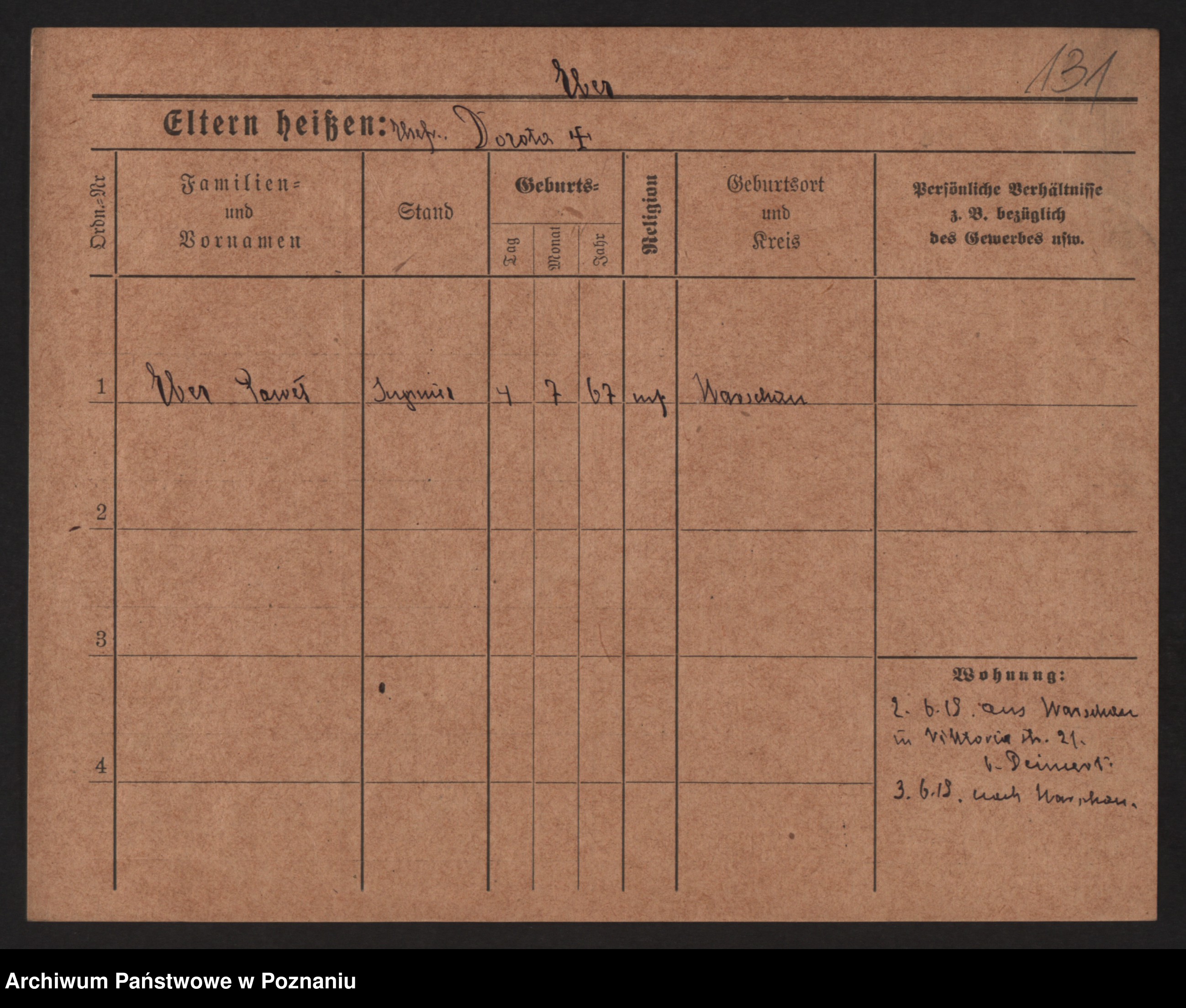 Podgląd karty osobowej dostępny jest po kliknięciu na nazwisko lub ikonkę karty. Można dokonywać powiększenia (ikony na górze) lub przechodzić między kolejnymi skanami (strzałki po bokach).