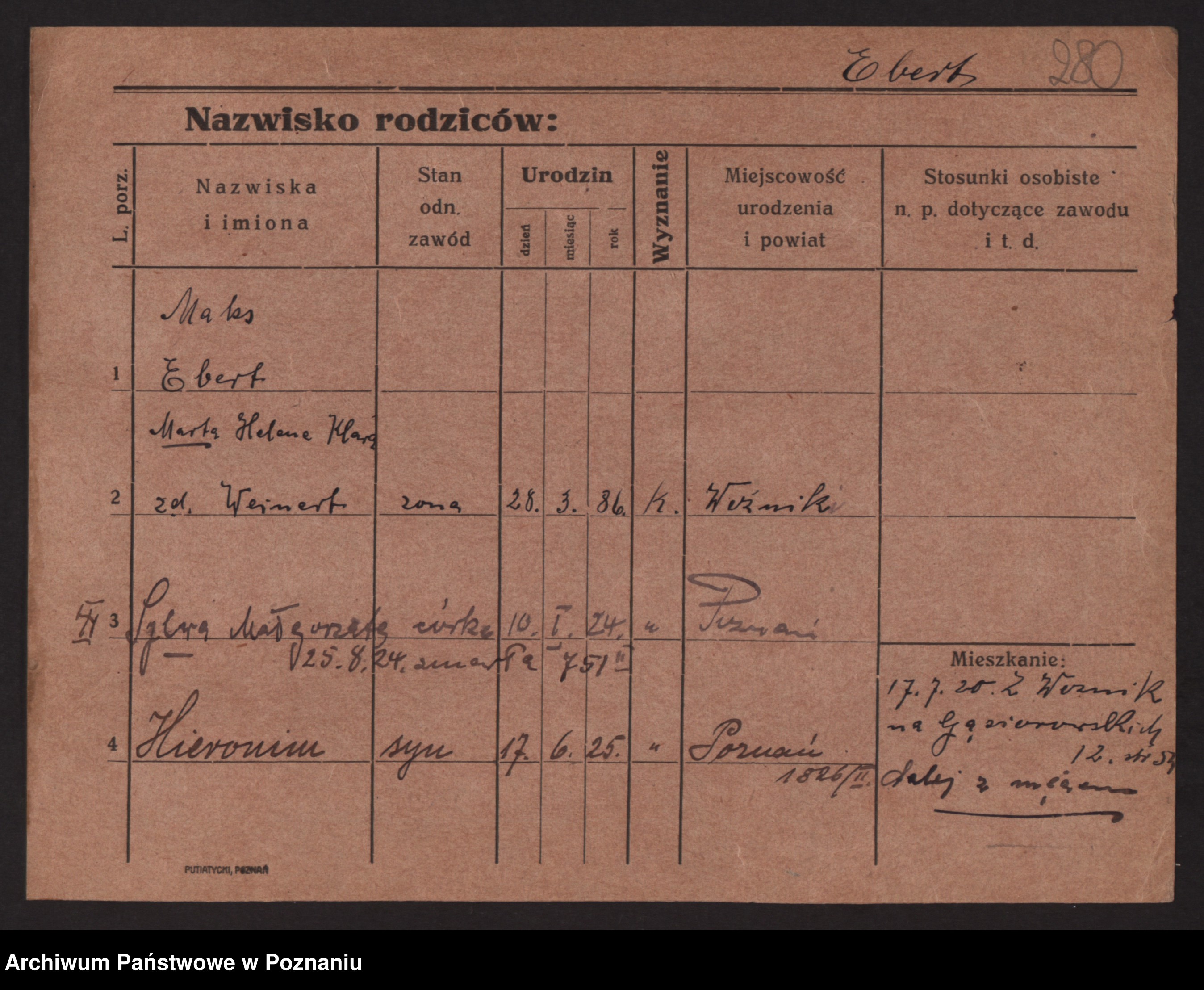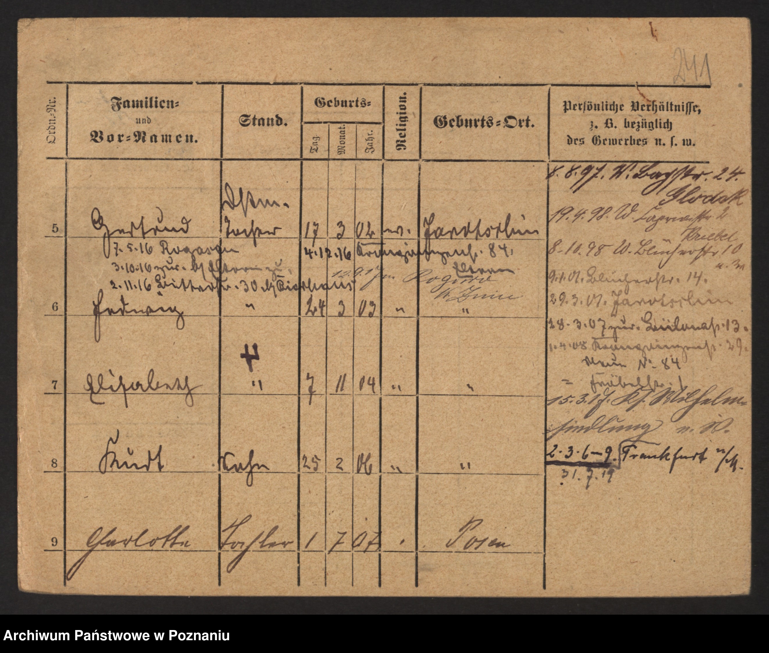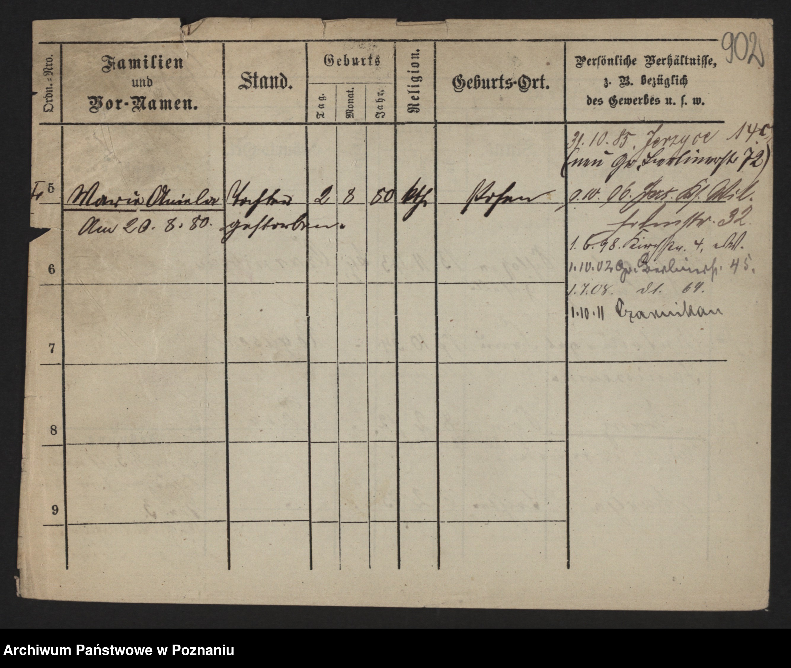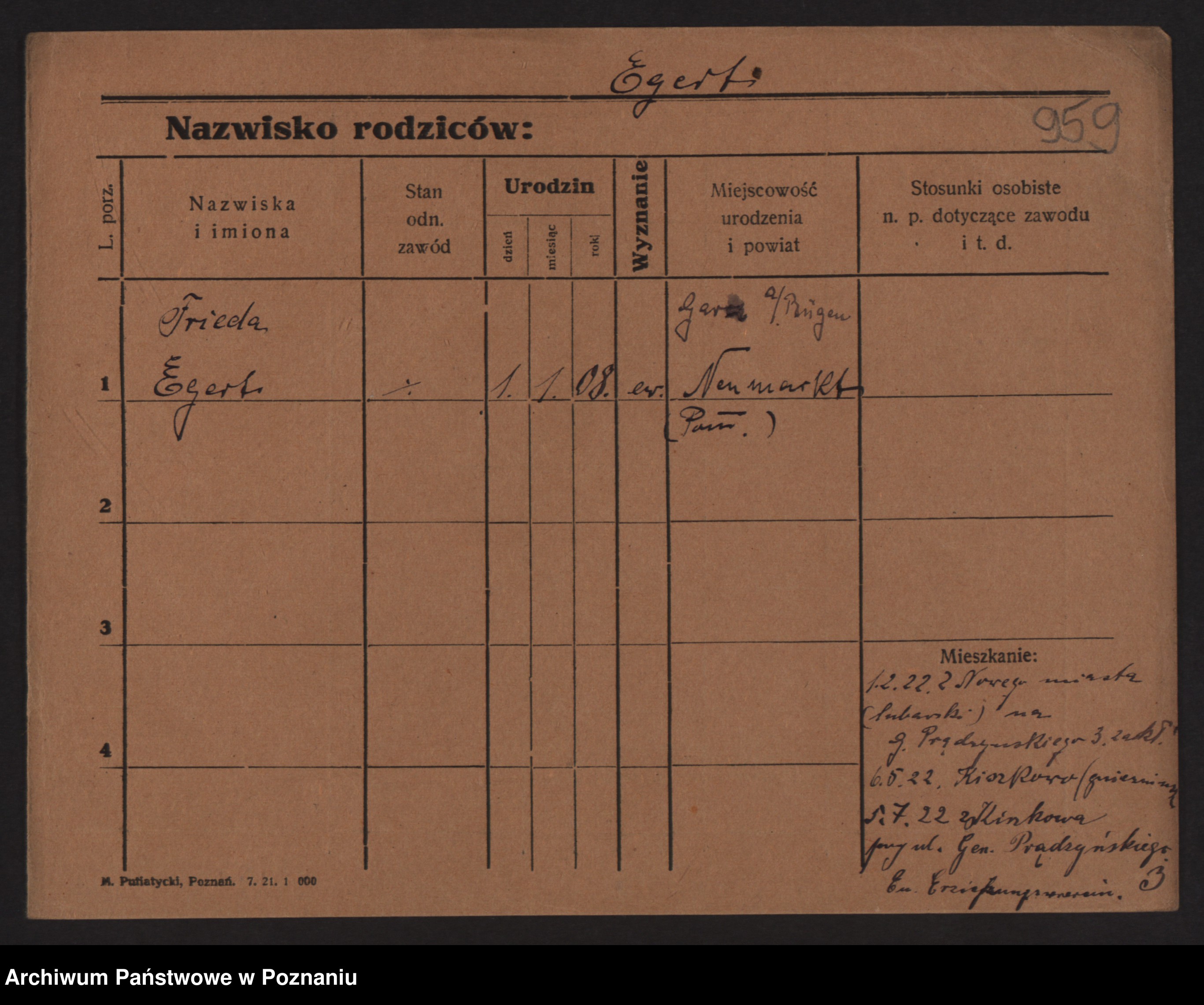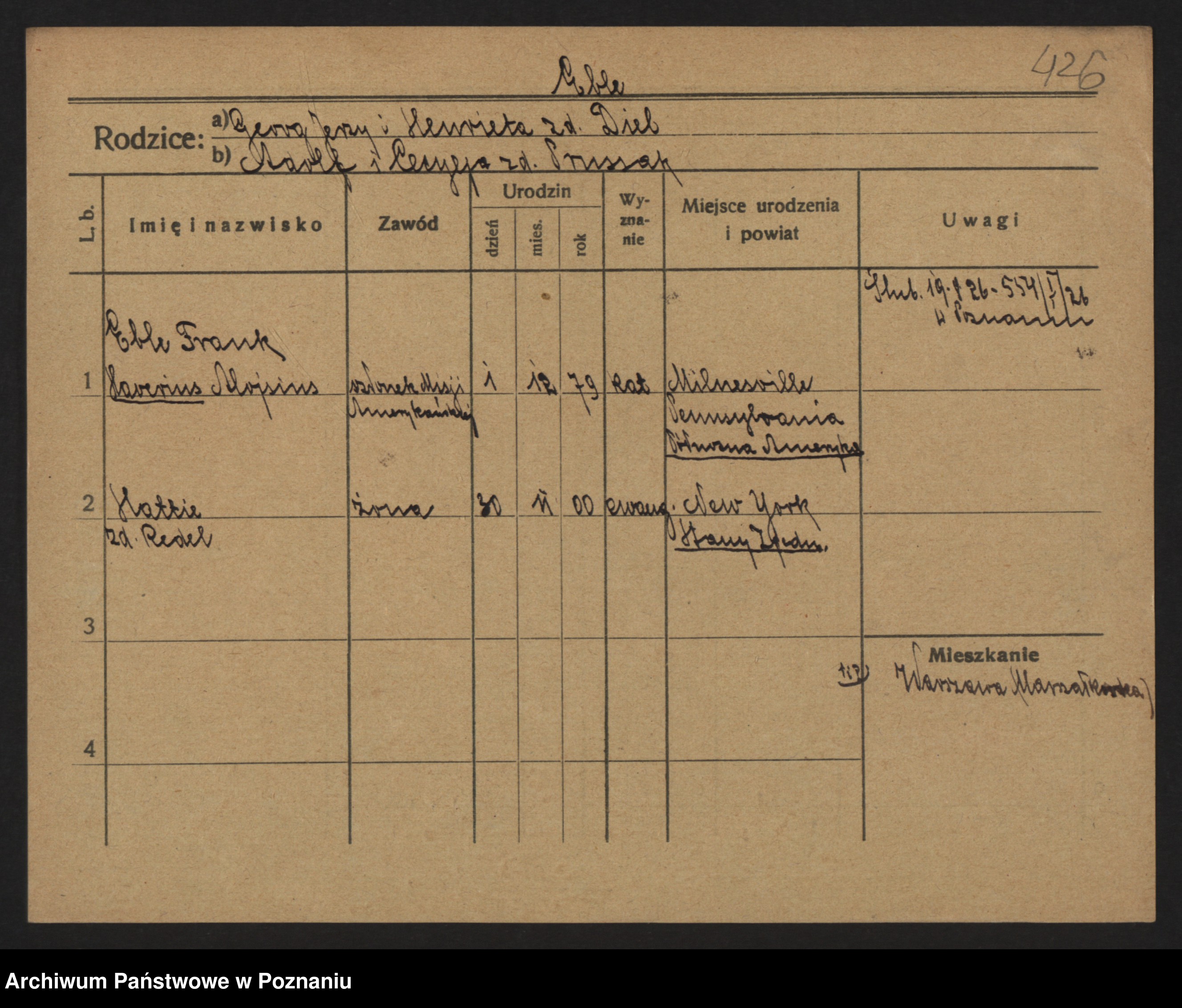 Podgląd karty osobowej dostępny jest po kliknięciu na nazwisko lub ikonkę karty. Można dokonywać powiększenia (ikony na górze) lub przechodzić między kolejnymi skanami (strzałki po bokach).