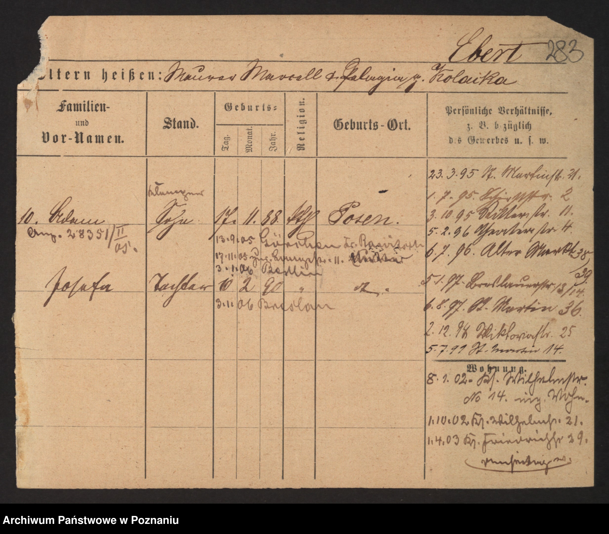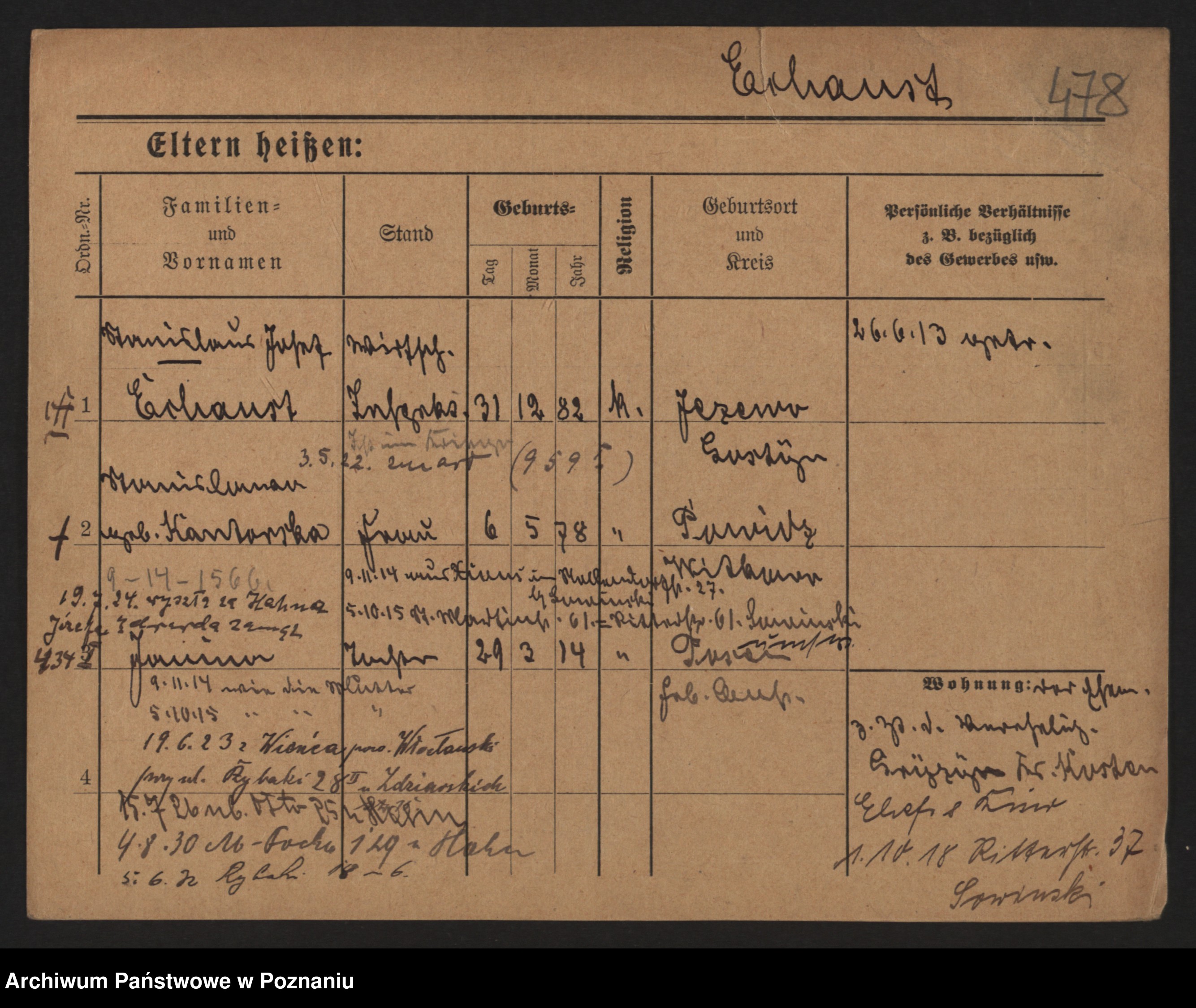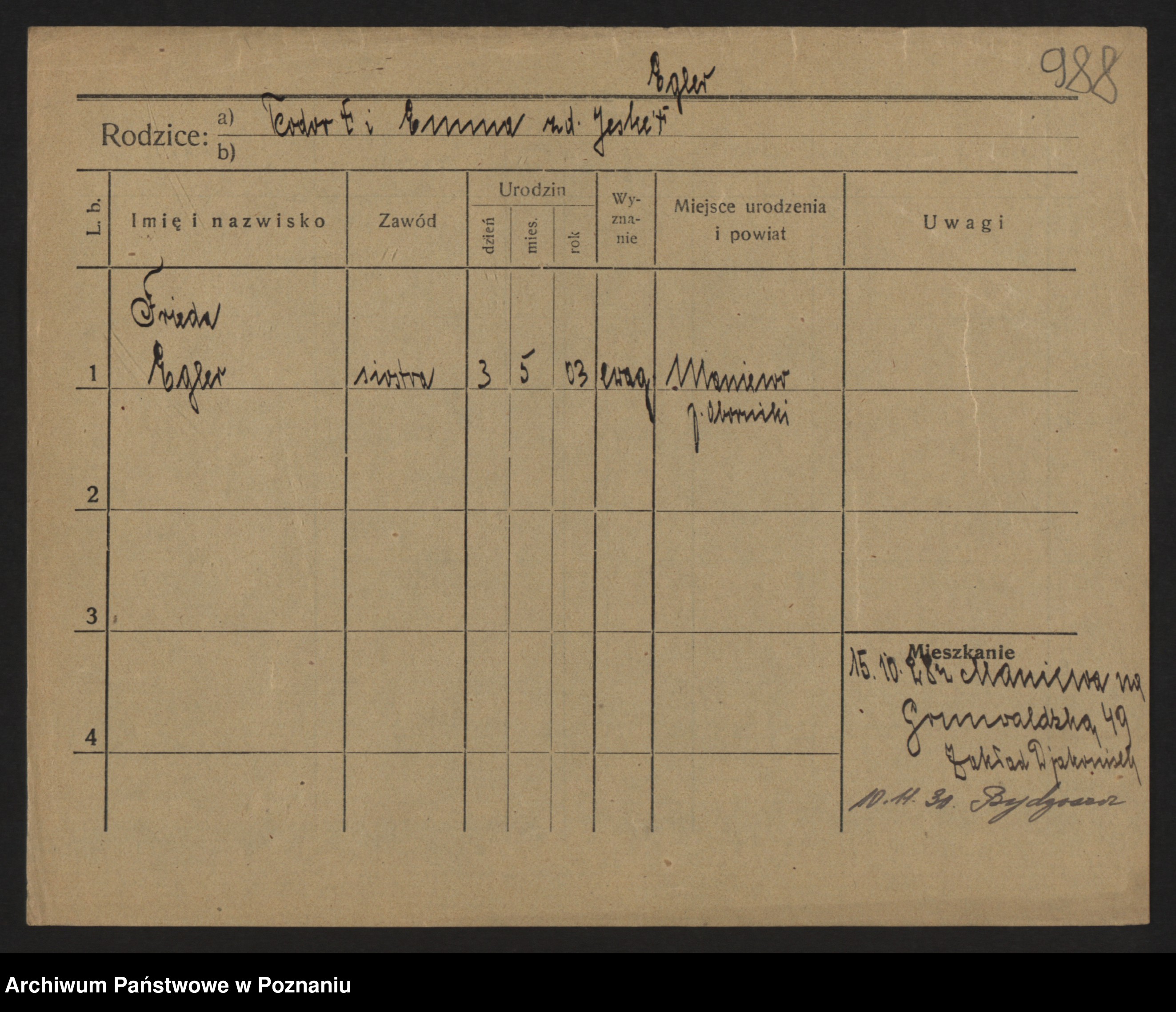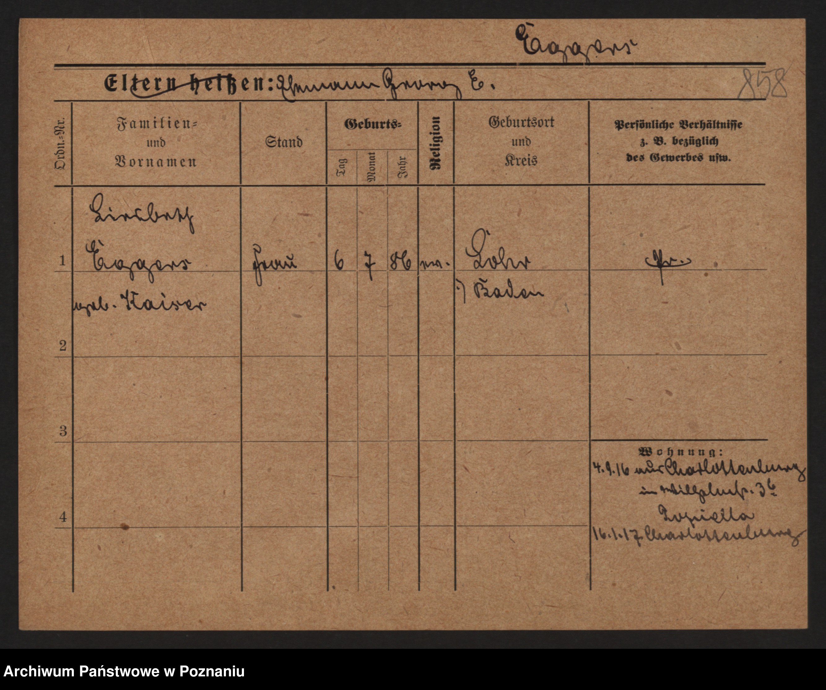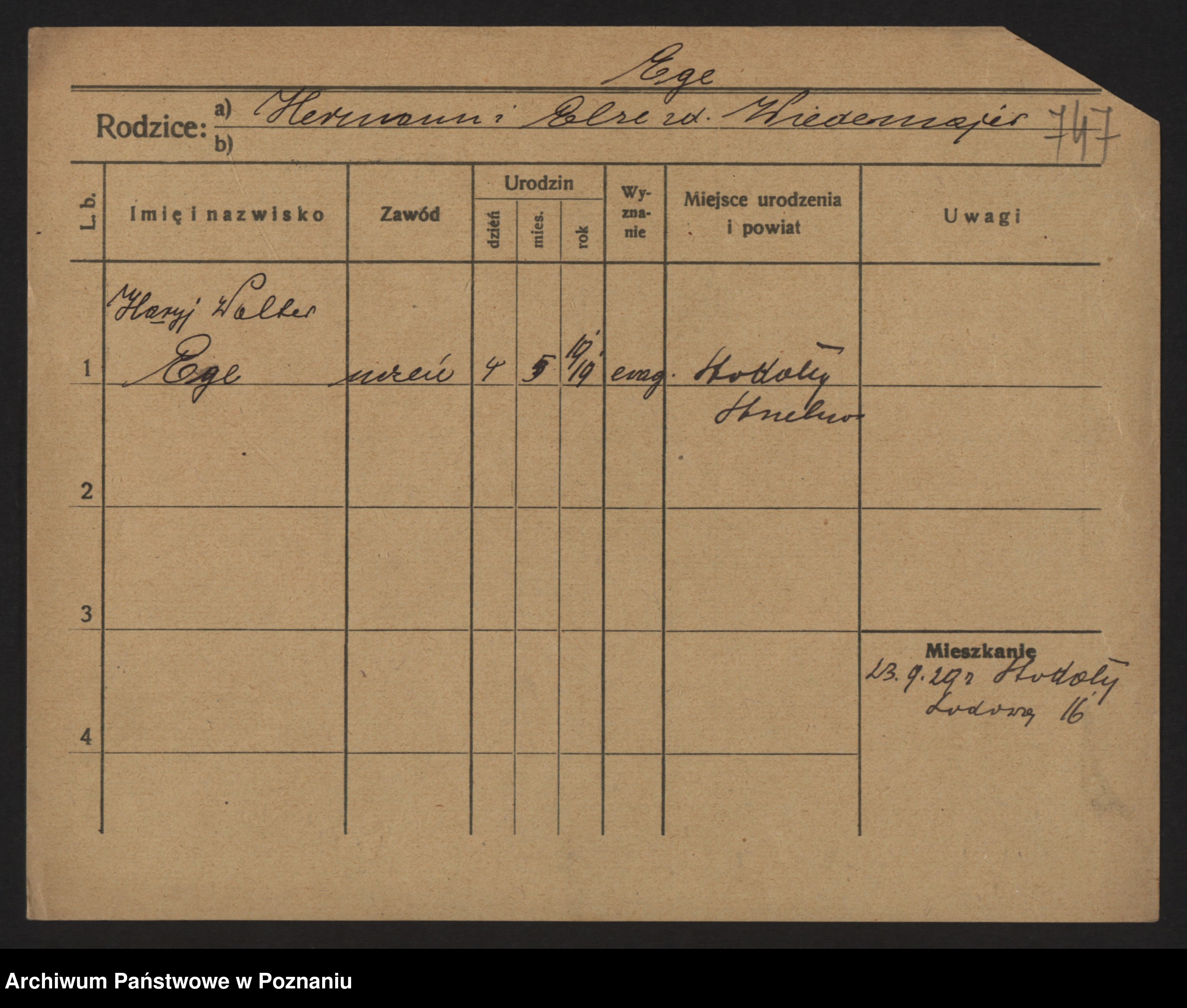 Podgląd karty osobowej dostępny jest po kliknięciu na nazwisko lub ikonkę karty. Można dokonywać powiększenia (ikony na górze) lub przechodzić między kolejnymi skanami (strzałki po bokach).