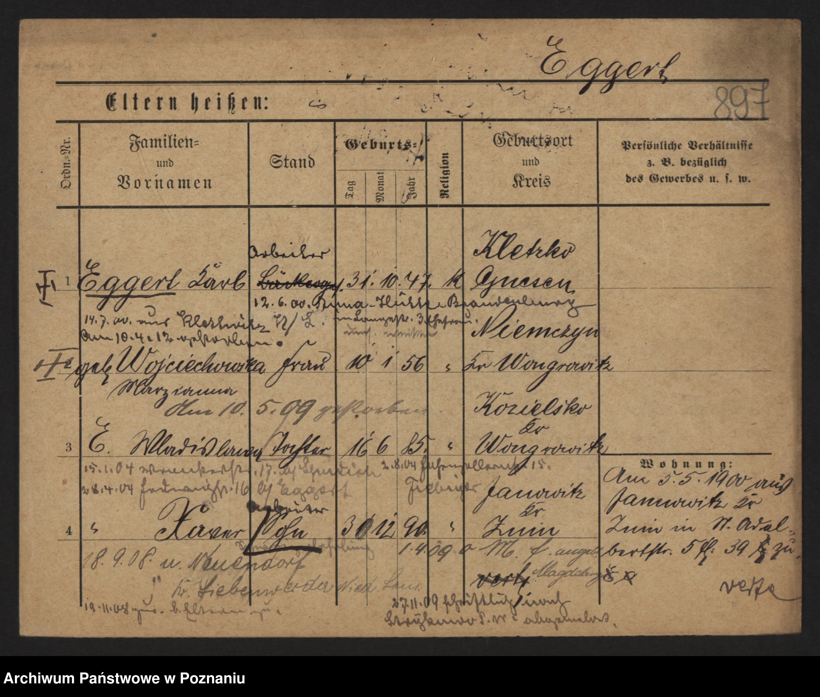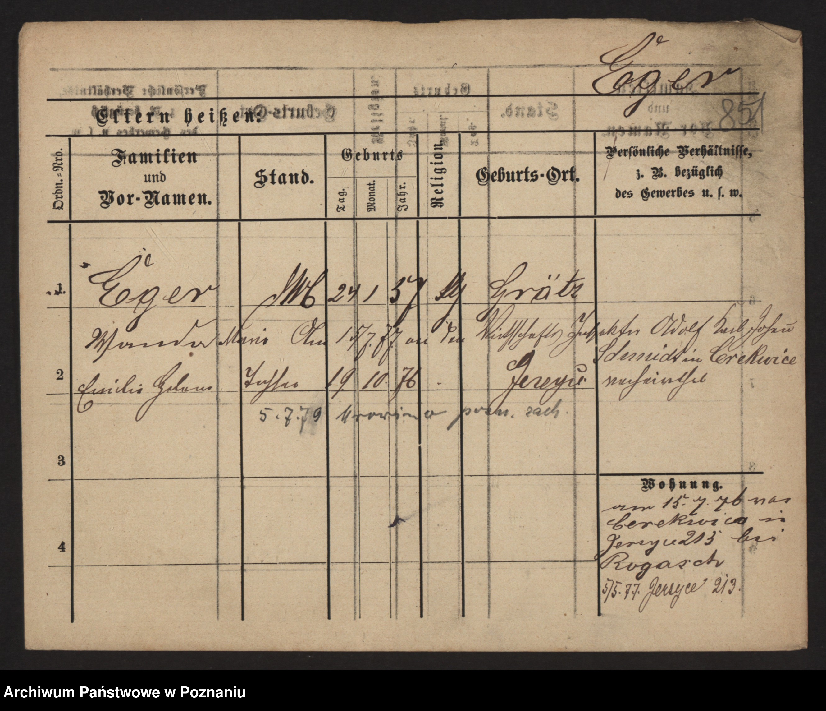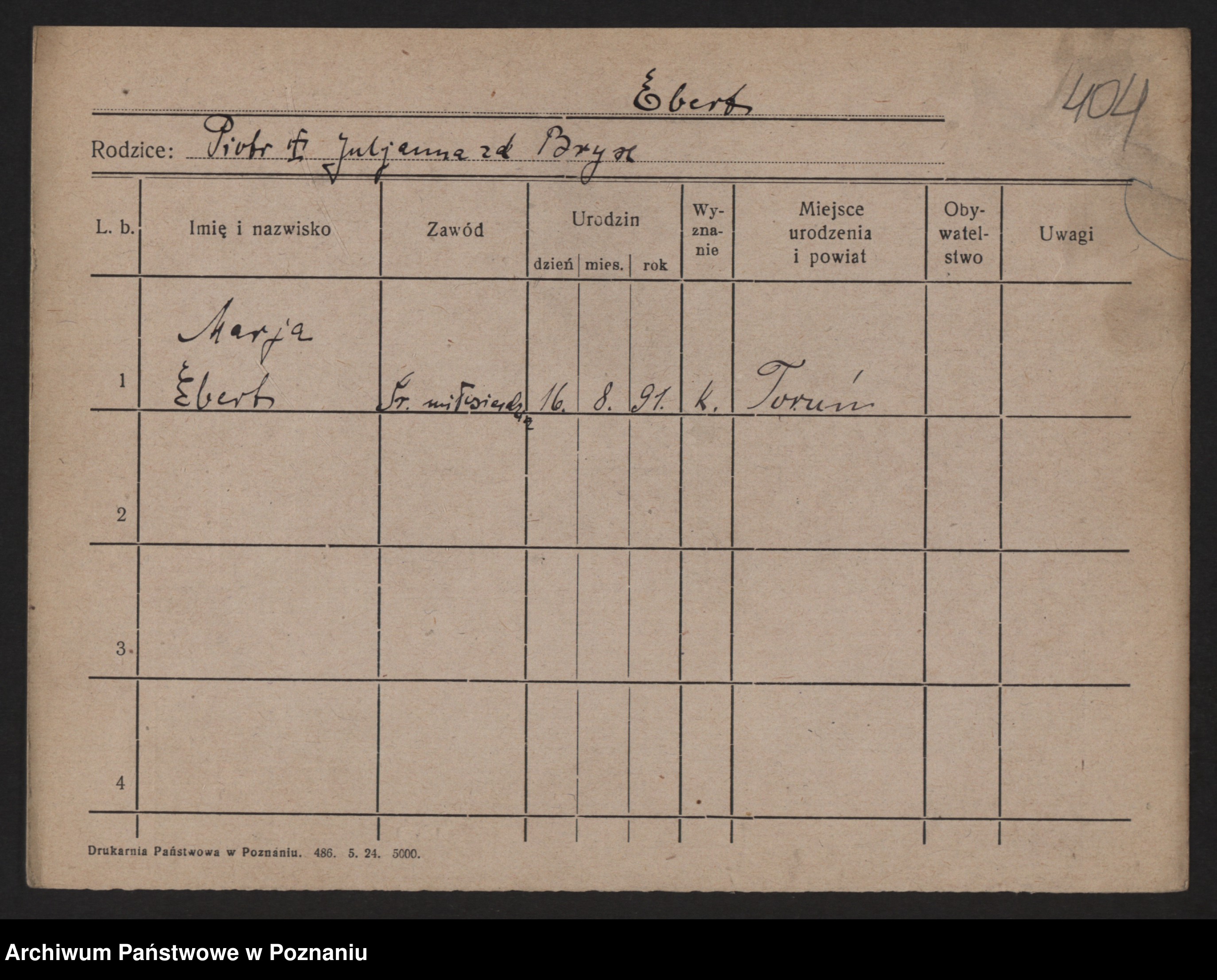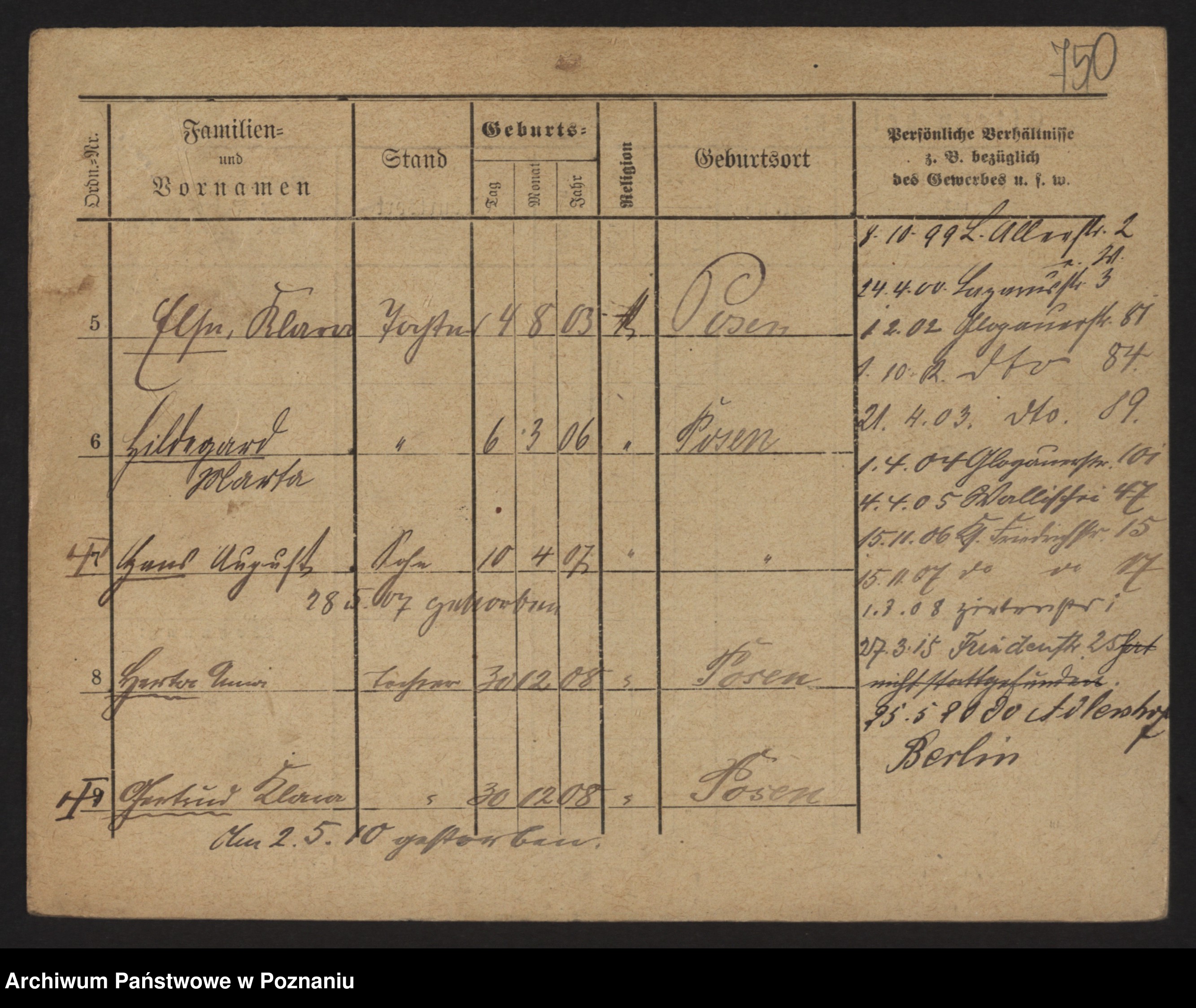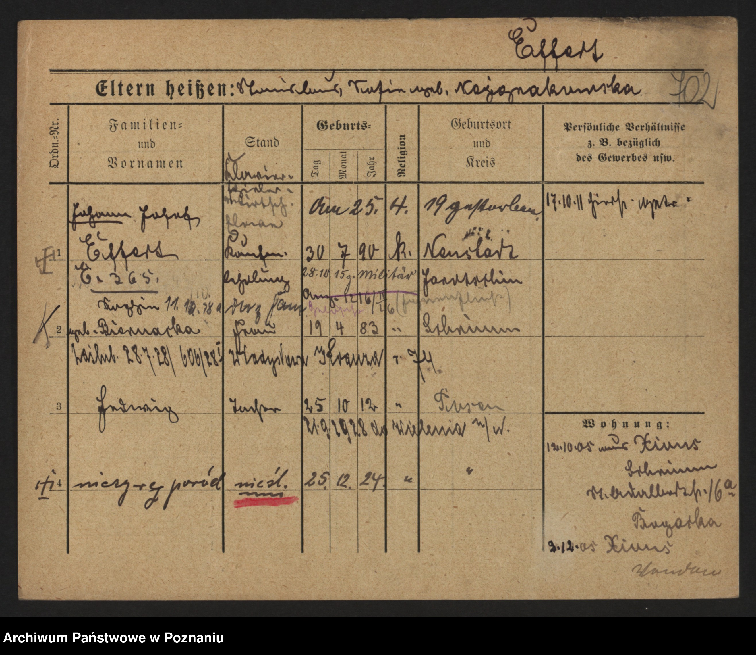Podgląd karty osobowej dostępny jest po kliknięciu na nazwisko lub ikonkę karty. Można dokonywać powiększenia (ikony na górze) lub przechodzić między kolejnymi skanami (strzałki po bokach).