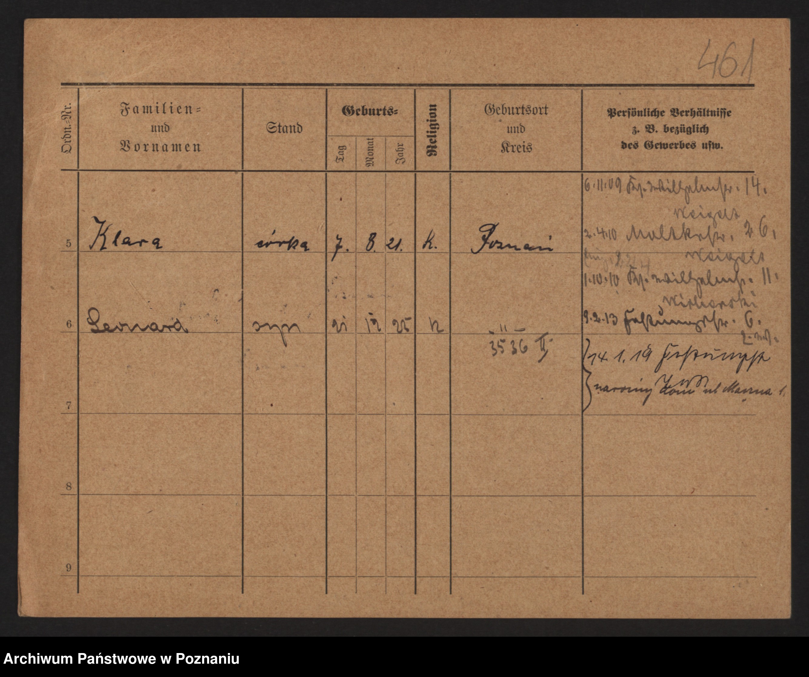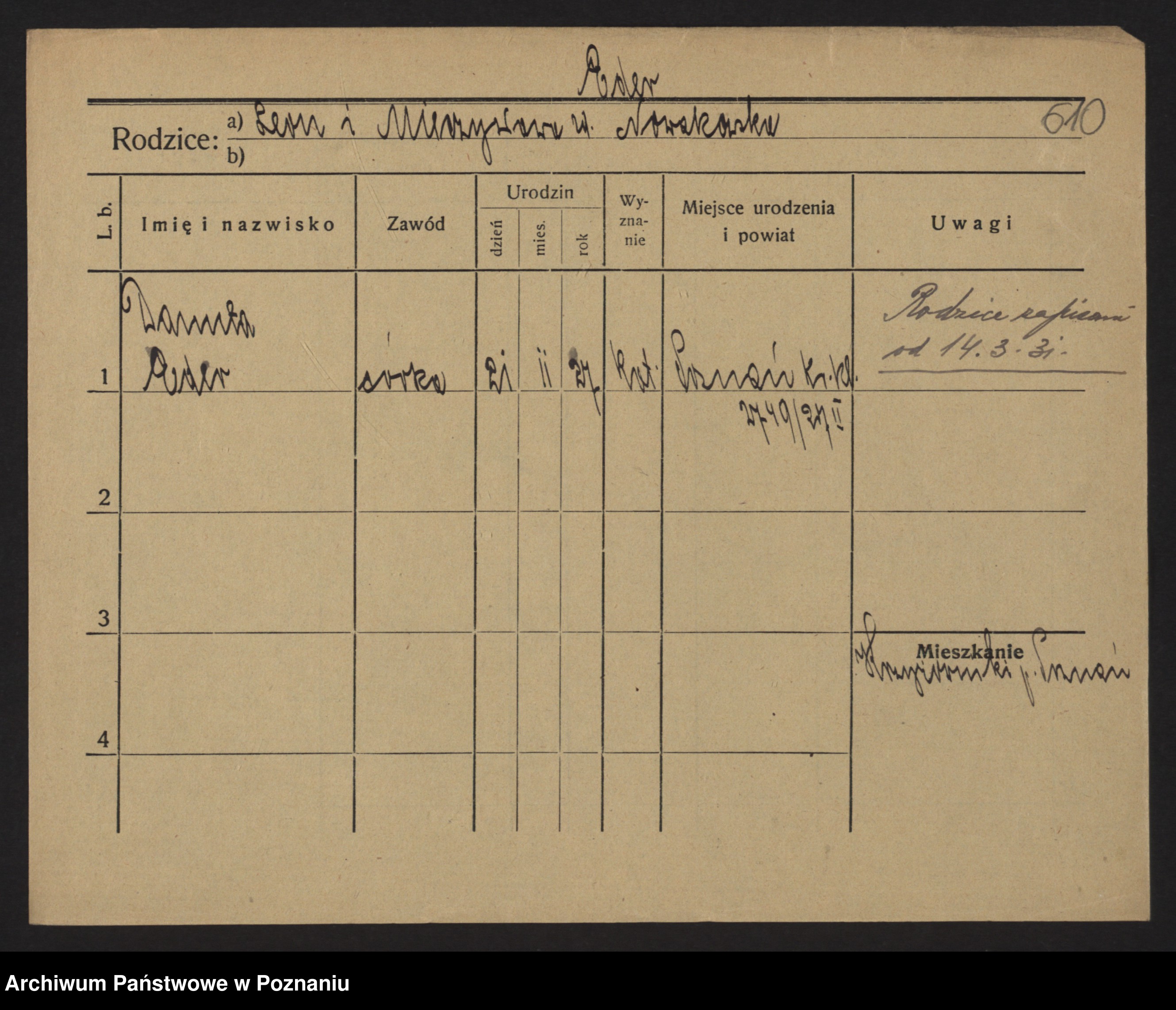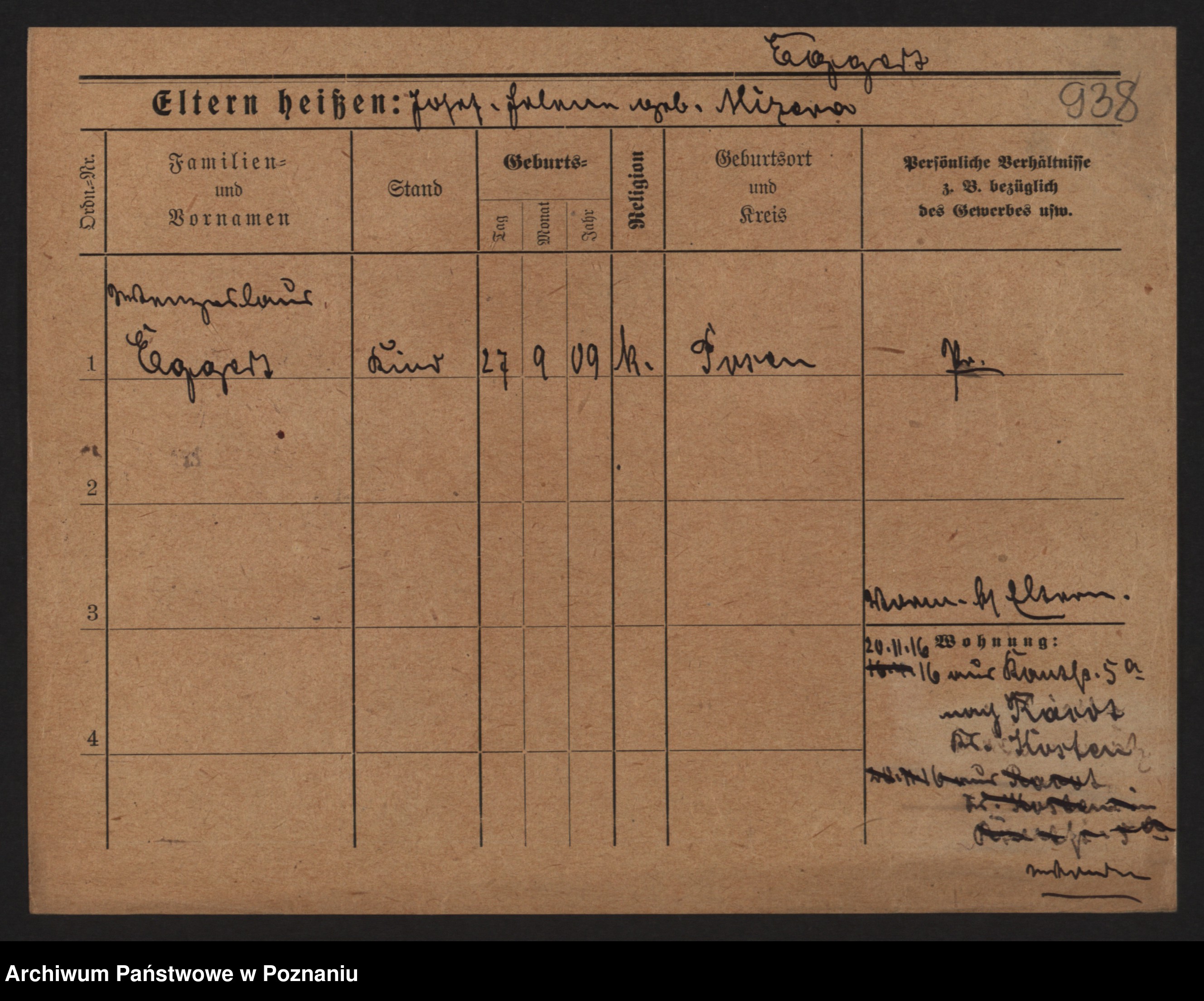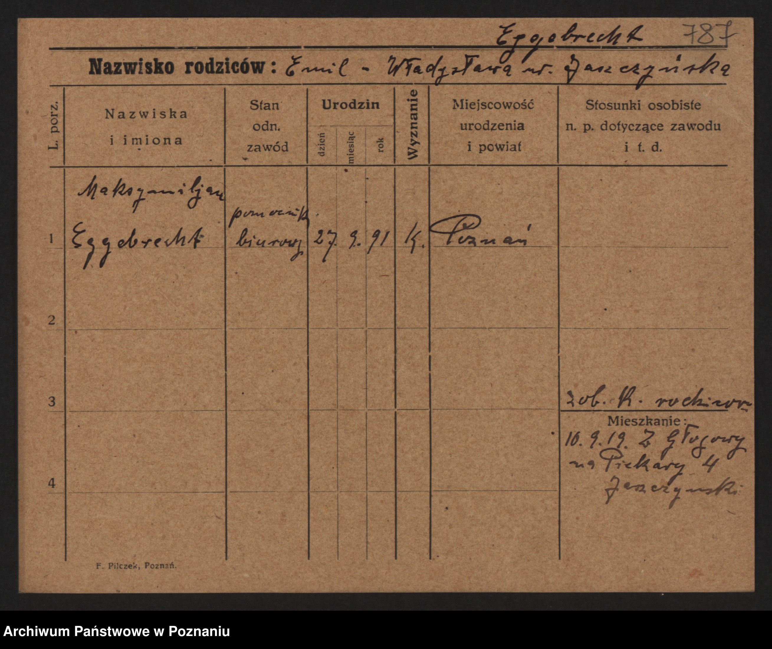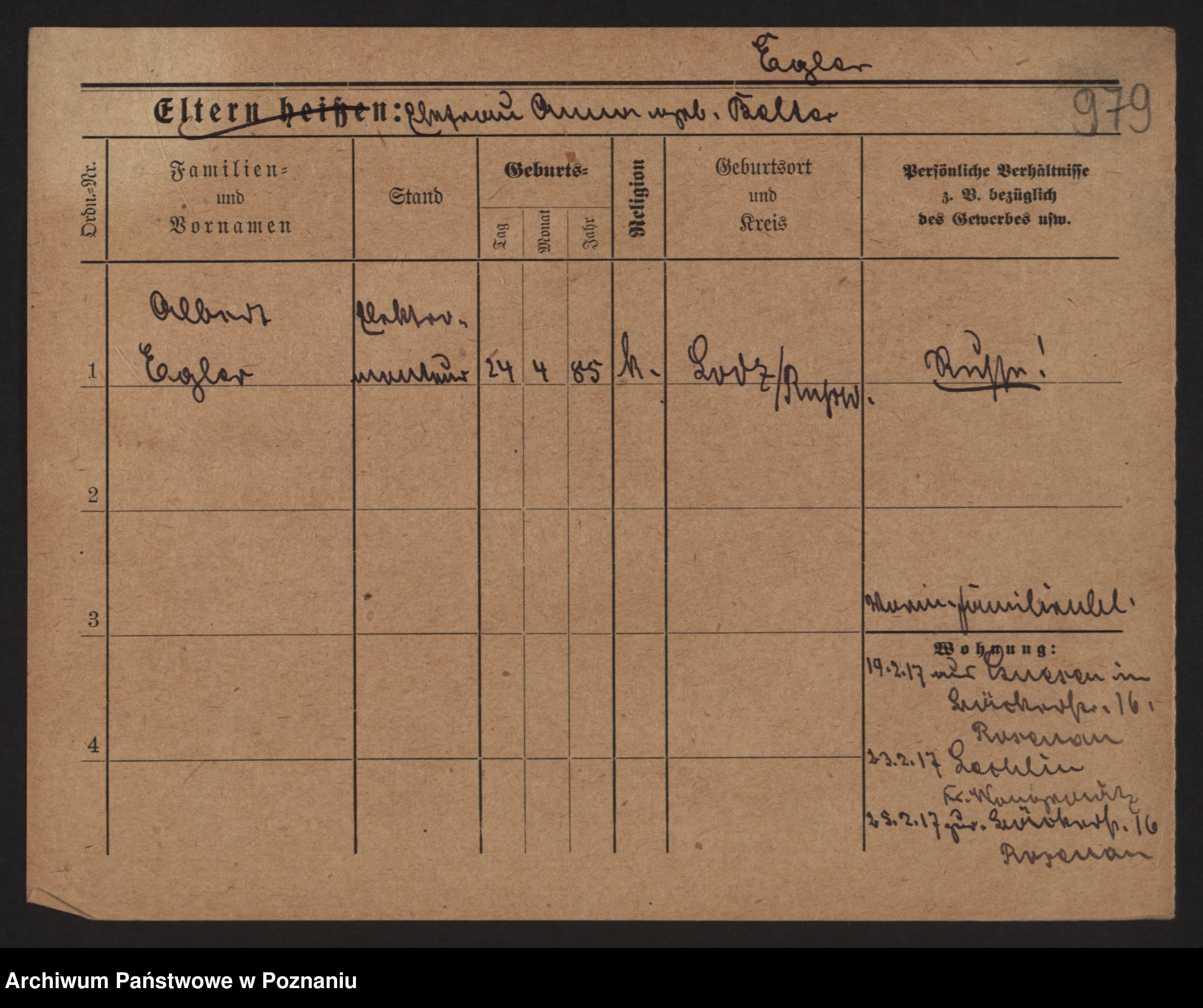 Podgląd karty osobowej dostępny jest po kliknięciu na nazwisko lub ikonkę karty. Można dokonywać powiększenia (ikony na górze) lub przechodzić między kolejnymi skanami (strzałki po bokach).