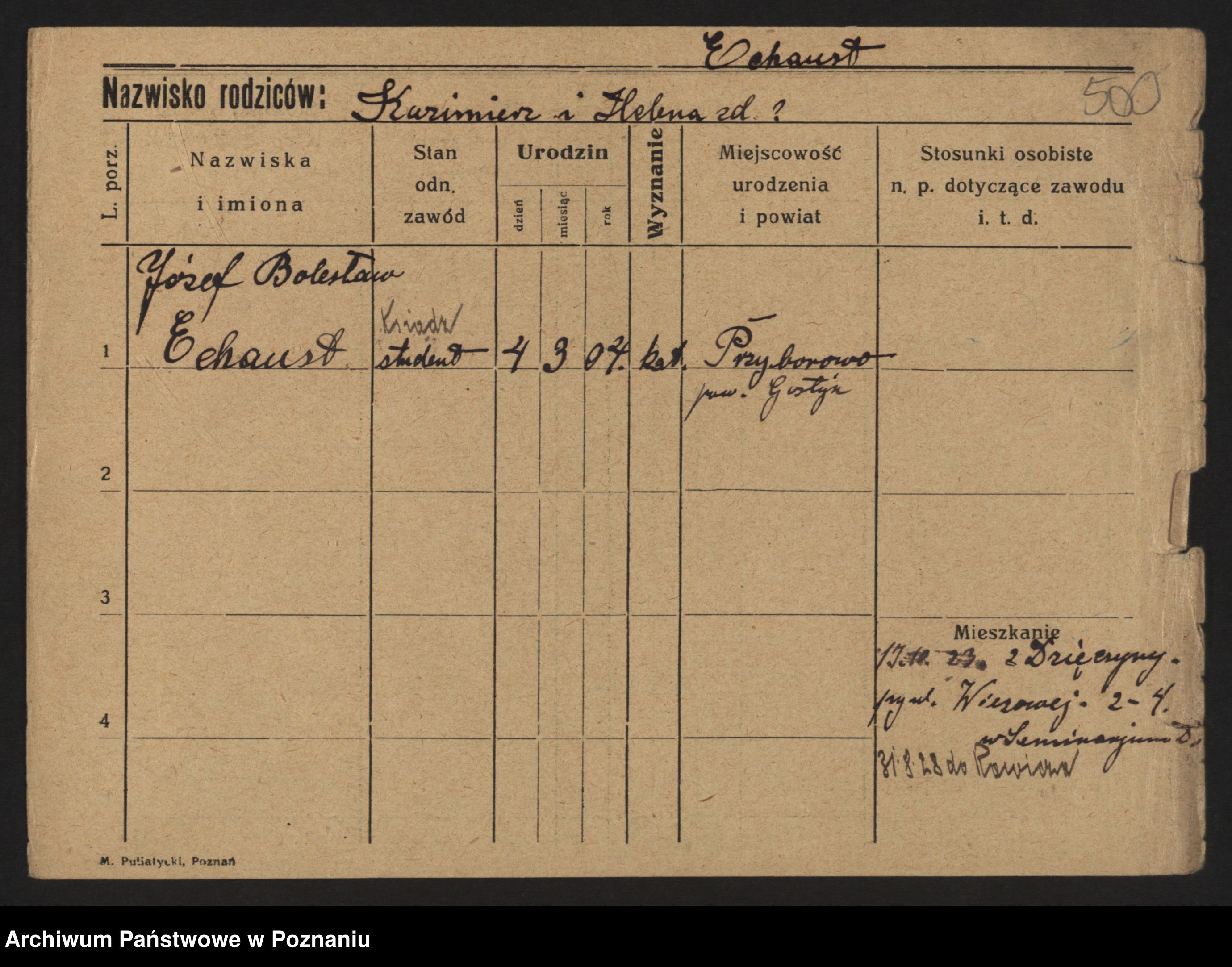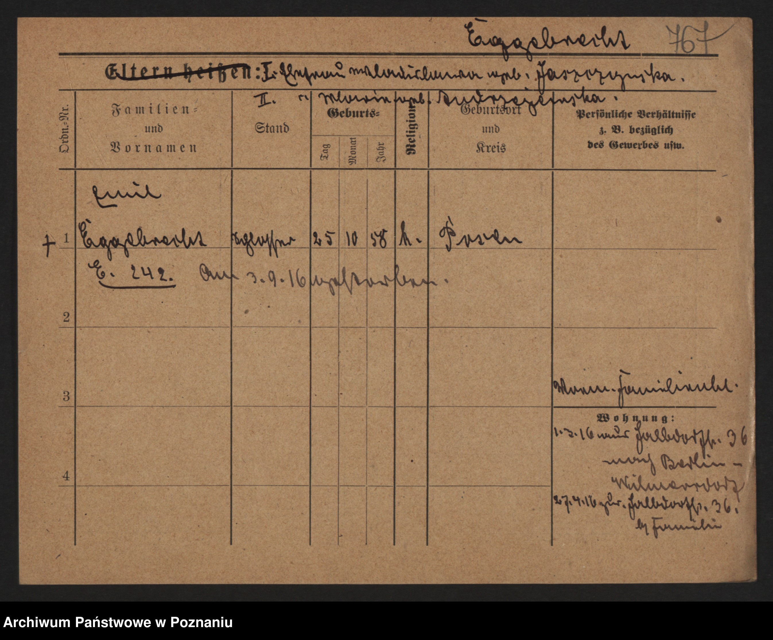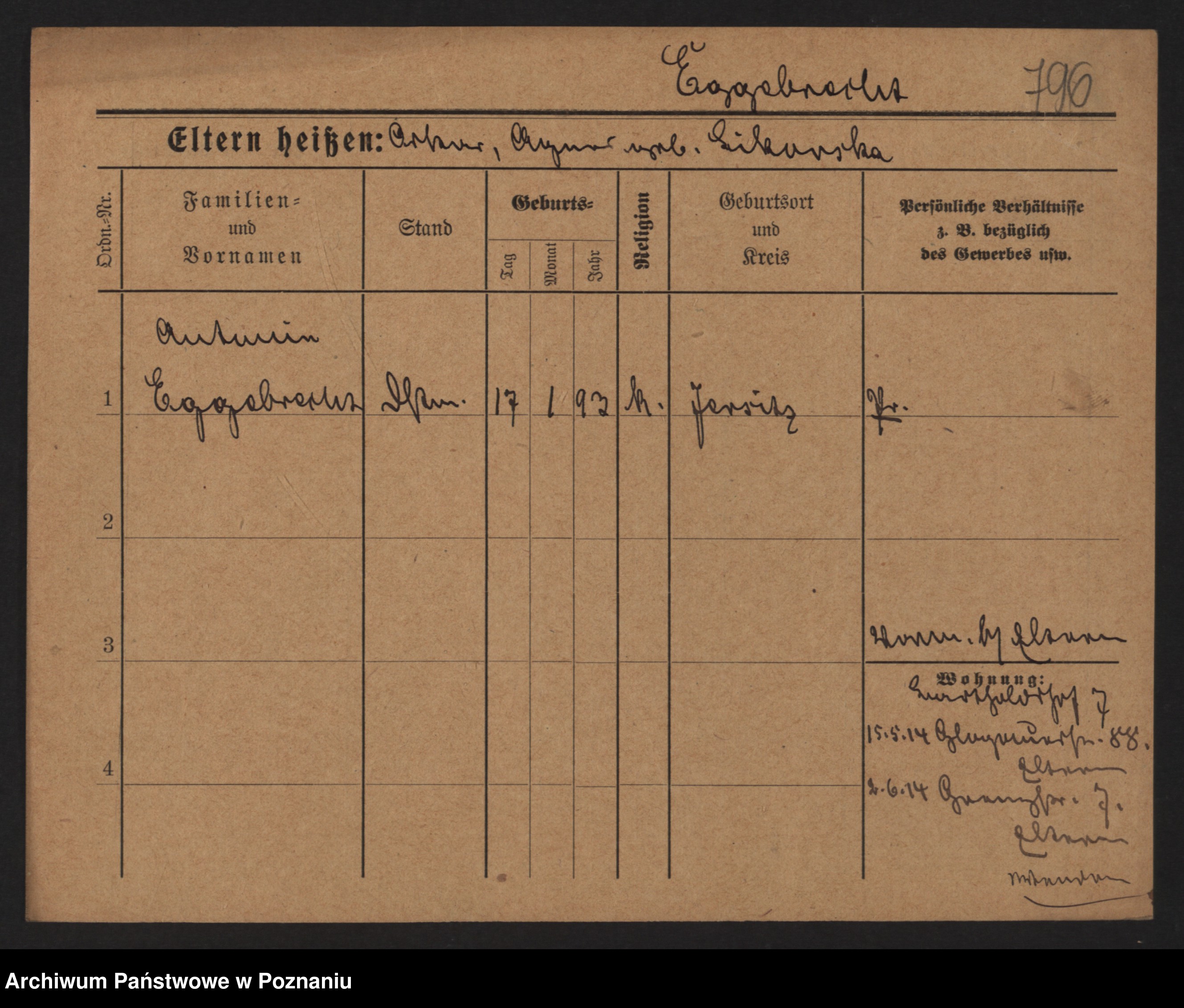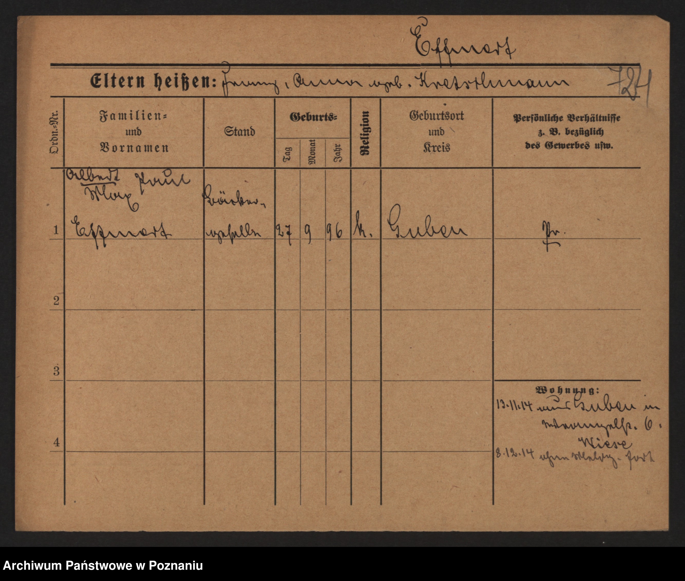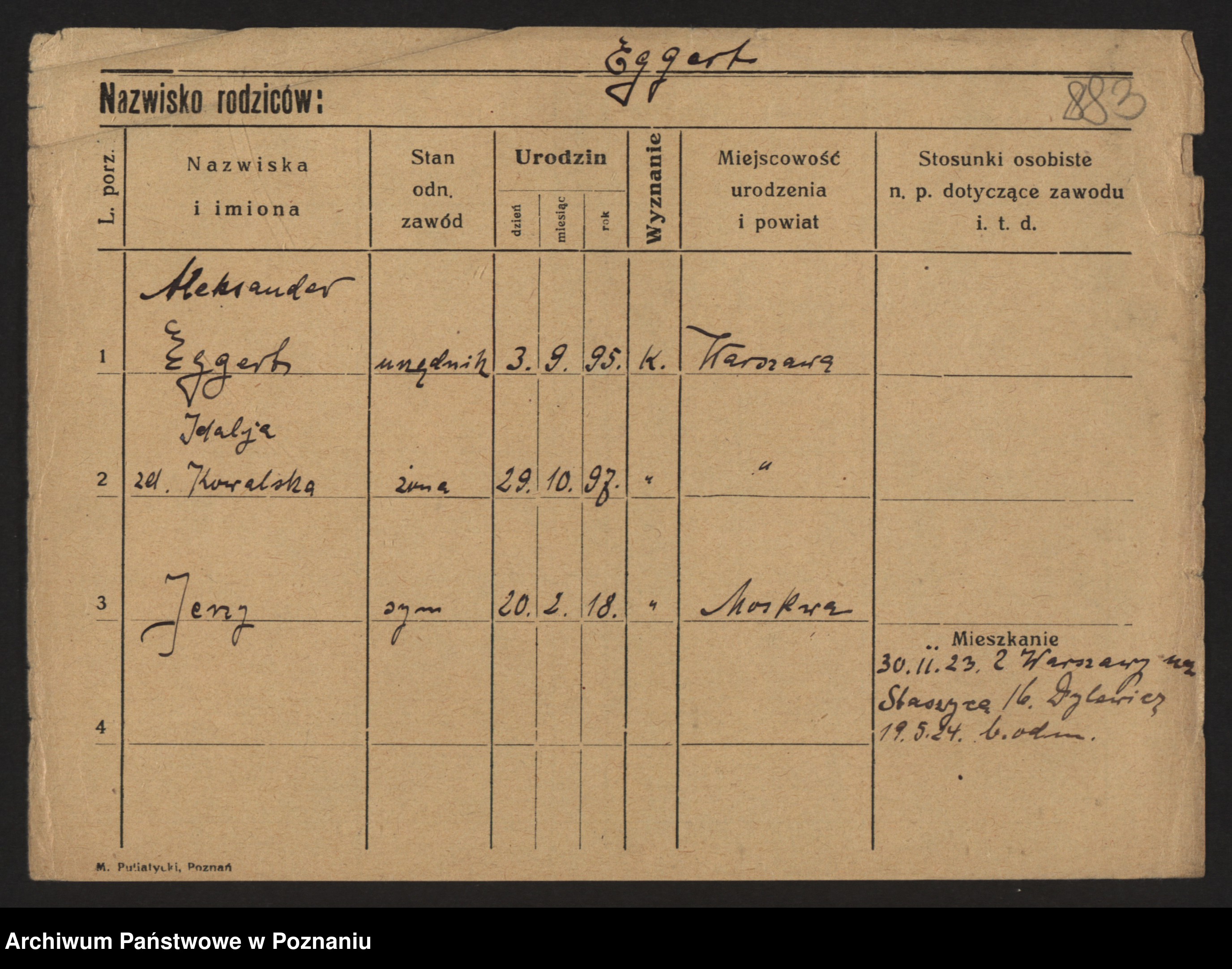 Podgląd karty osobowej dostępny jest po kliknięciu na nazwisko lub ikonkę karty. Można dokonywać powiększenia (ikony na górze) lub przechodzić między kolejnymi skanami (strzałki po bokach).