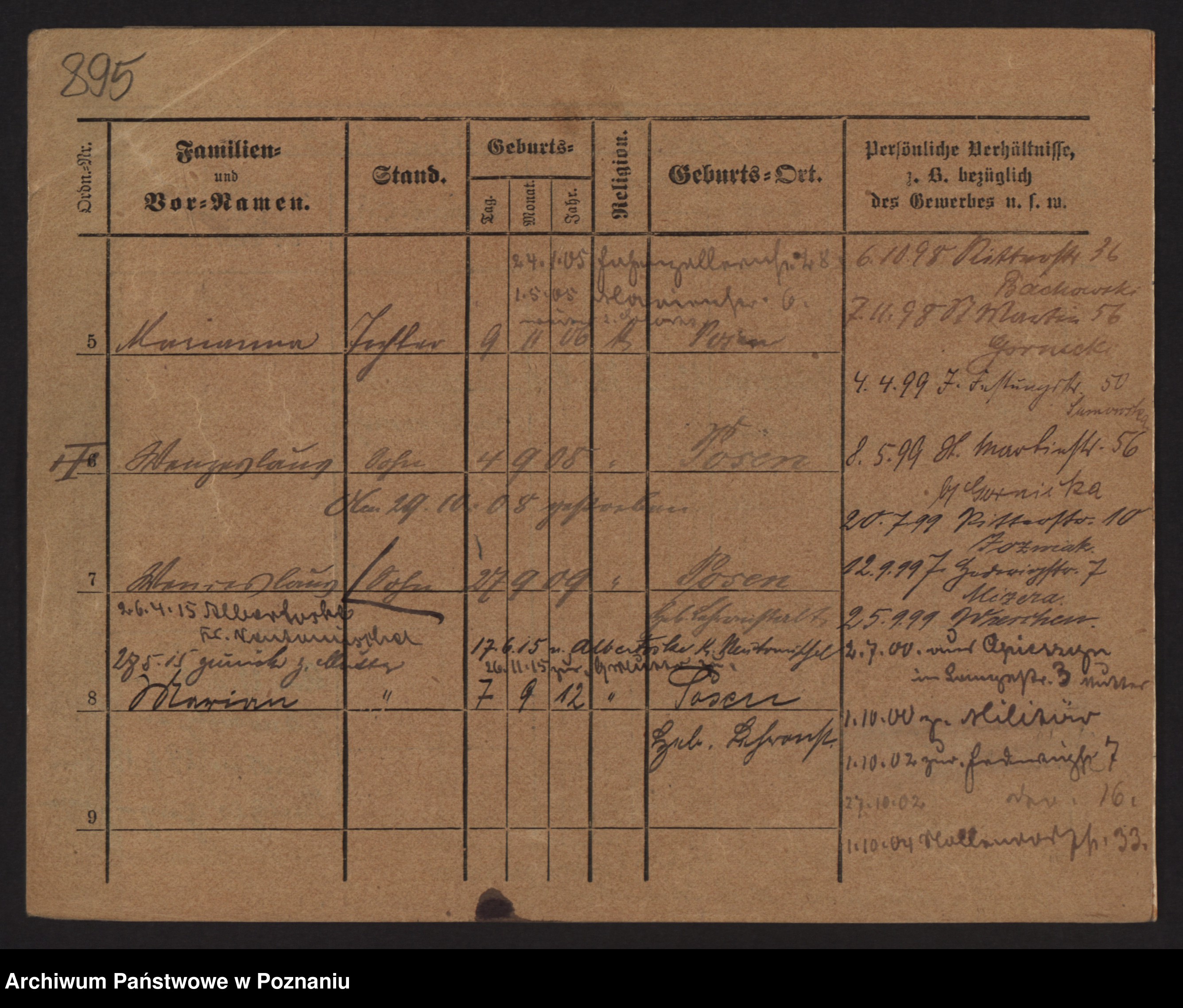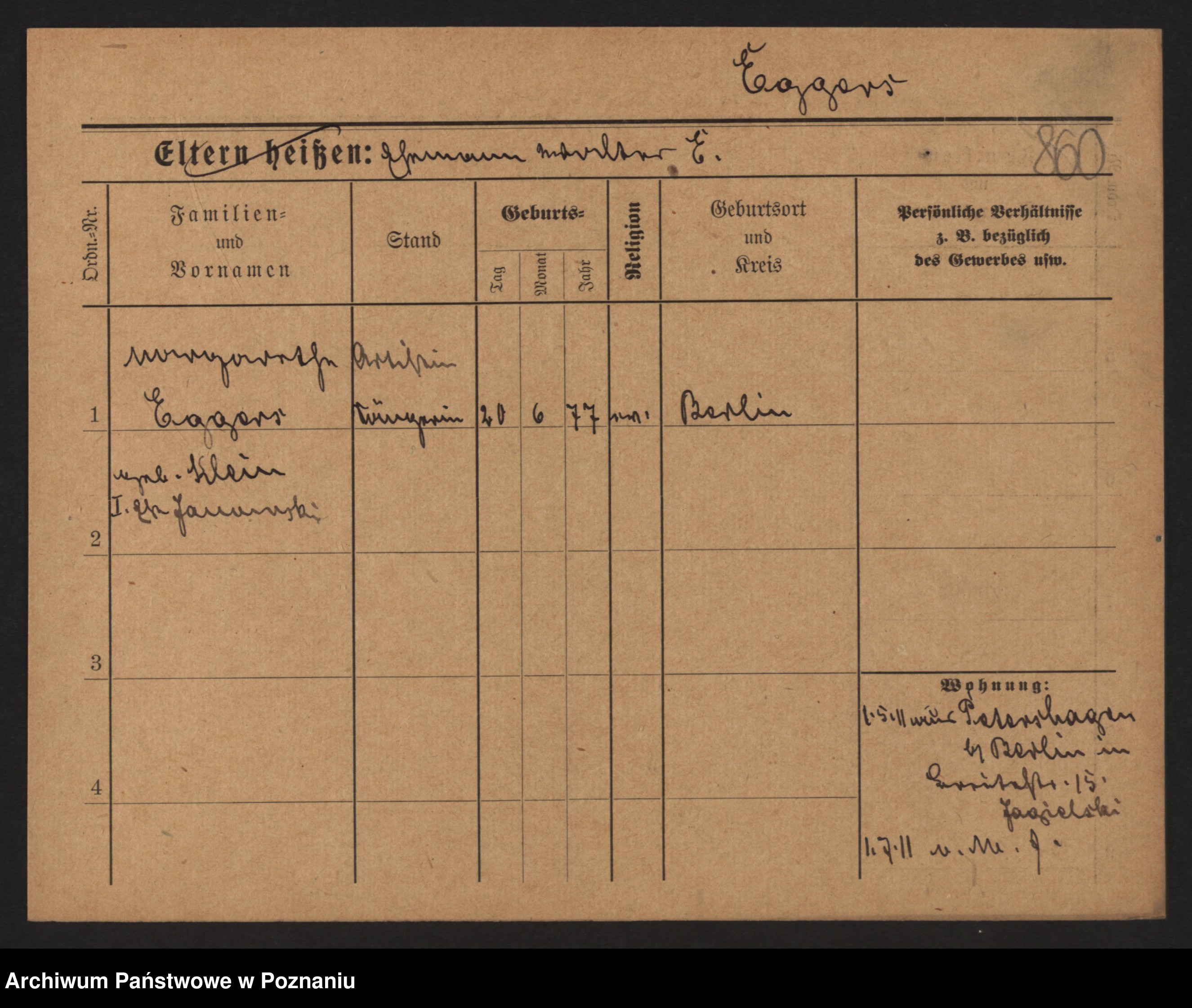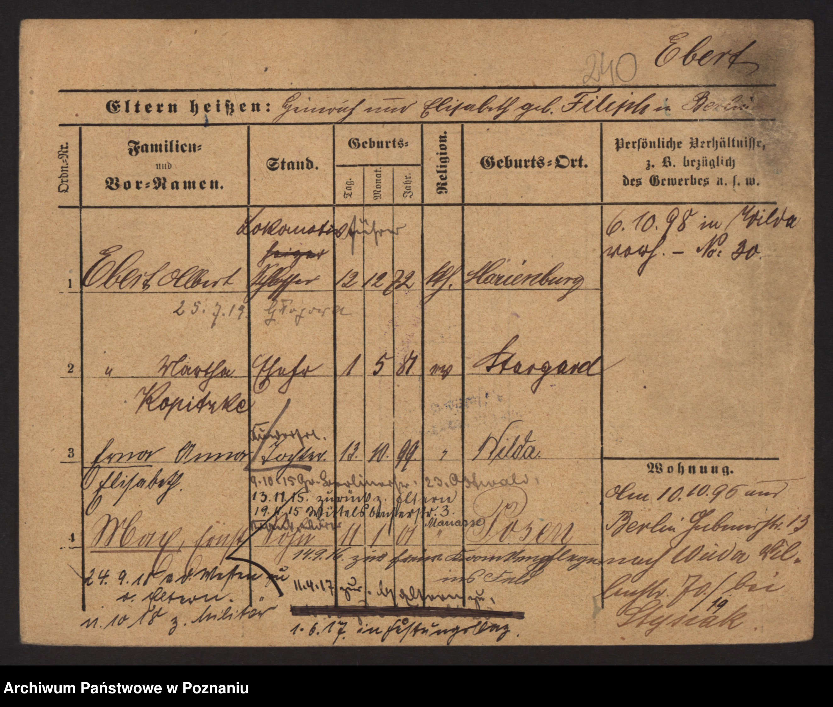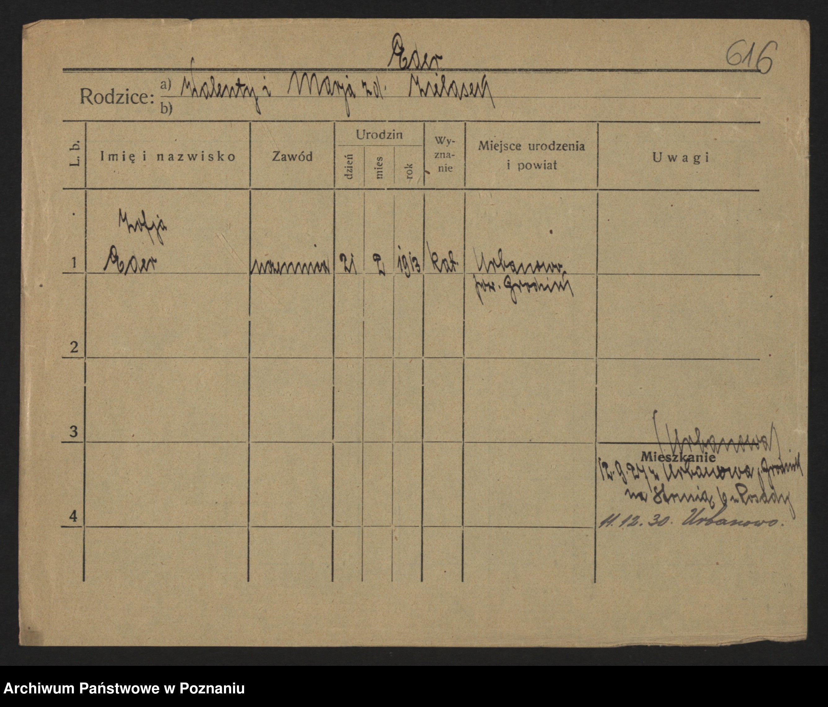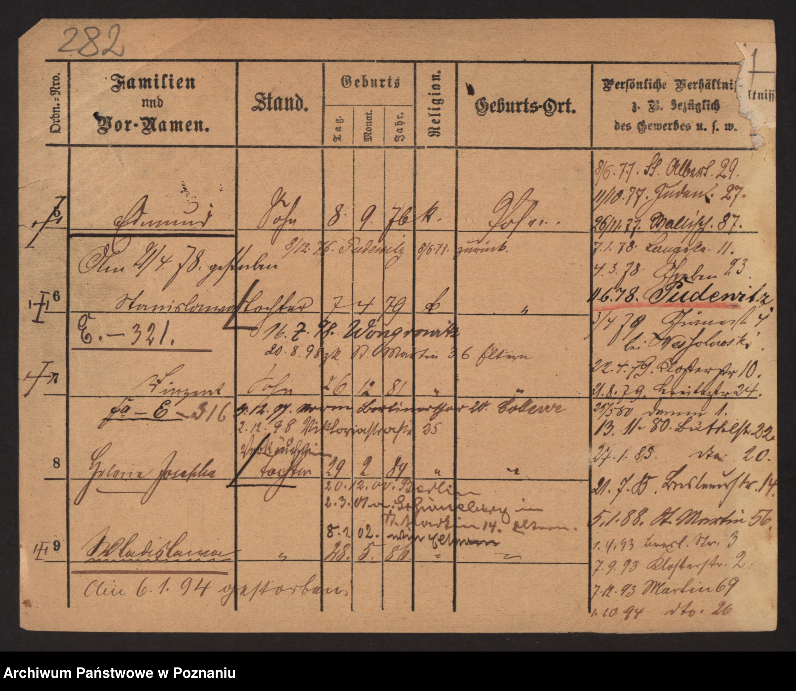 Podgląd karty osobowej dostępny jest po kliknięciu na nazwisko lub ikonkę karty. Można dokonywać powiększenia (ikony na górze) lub przechodzić między kolejnymi skanami (strzałki po bokach).