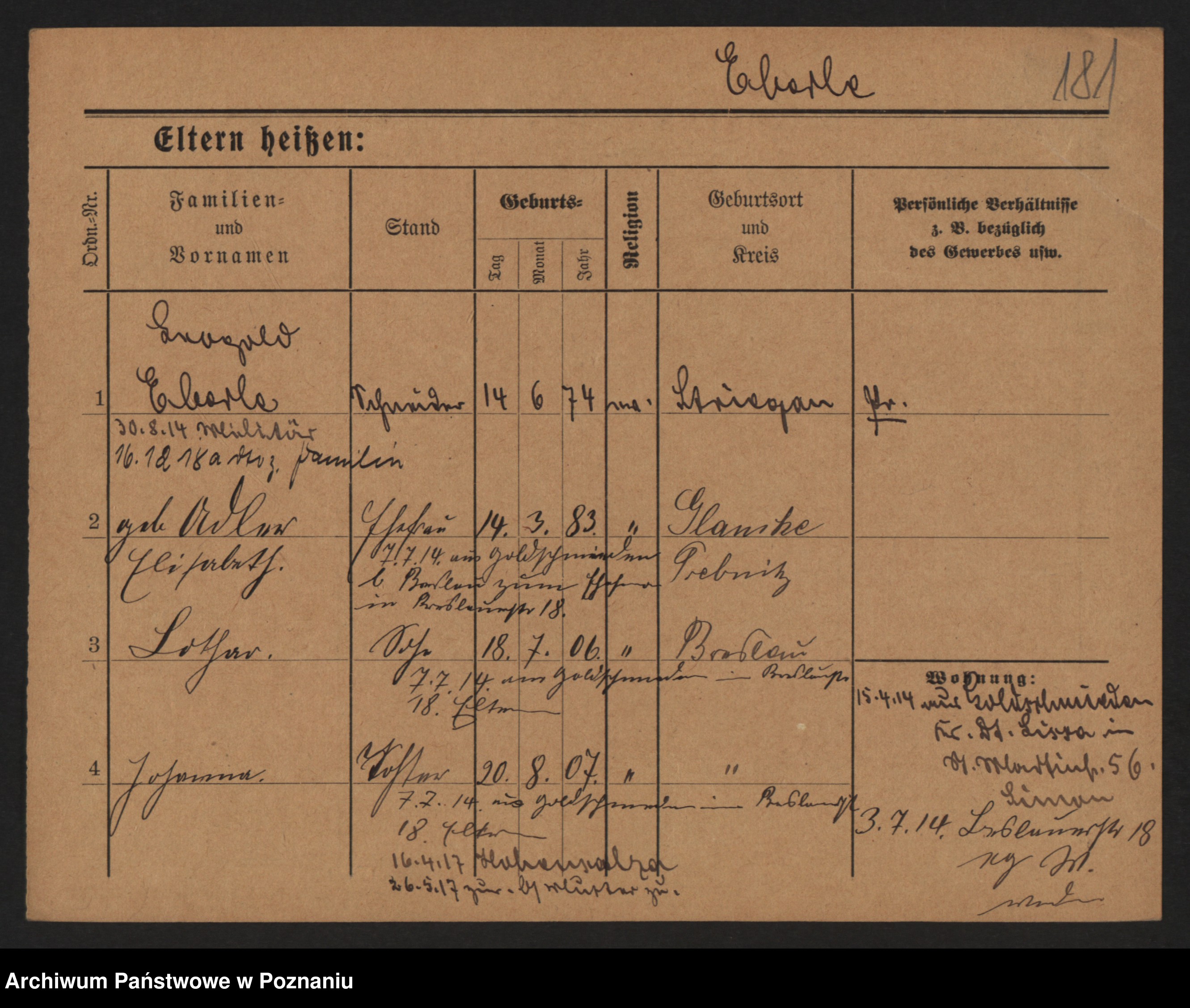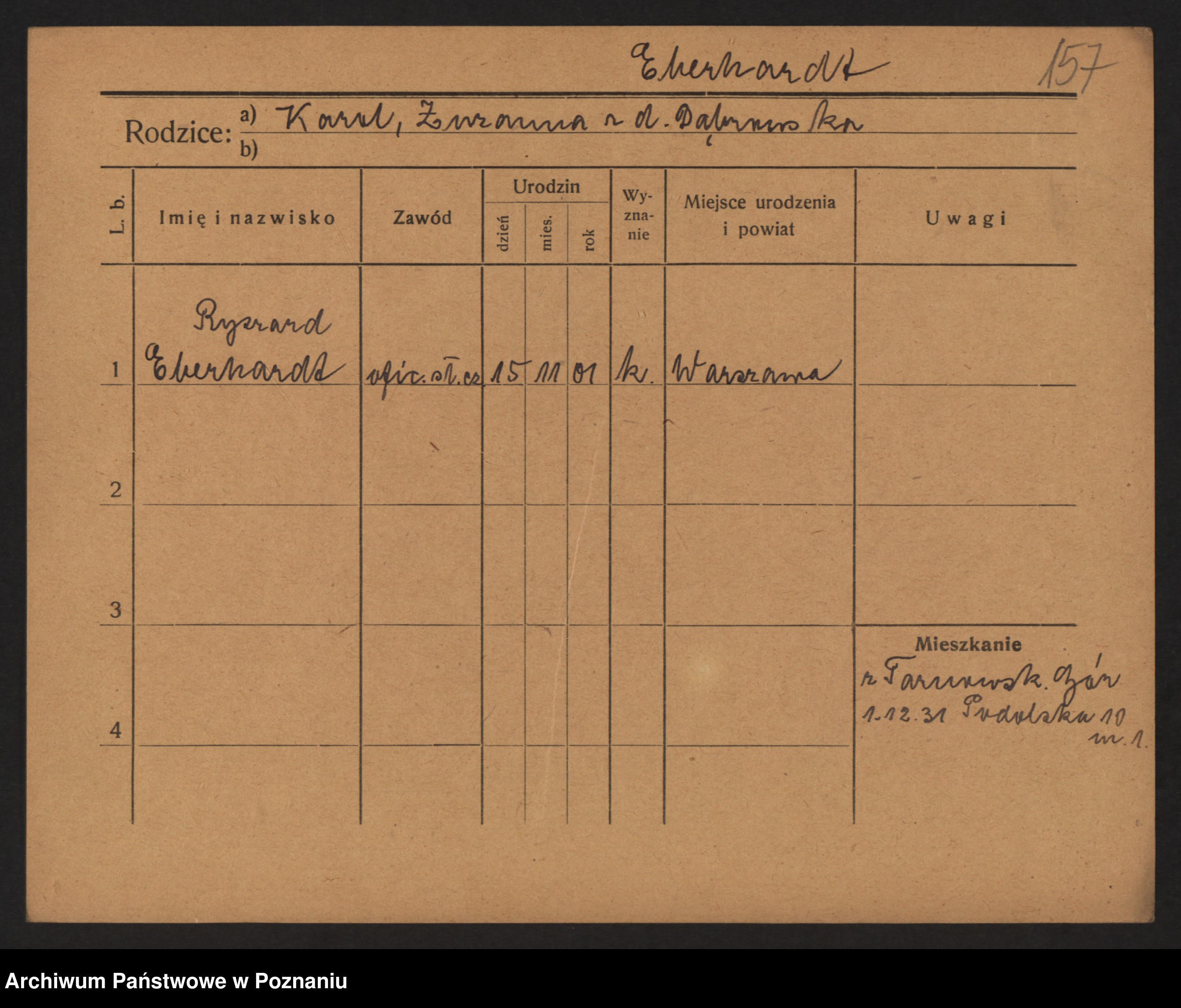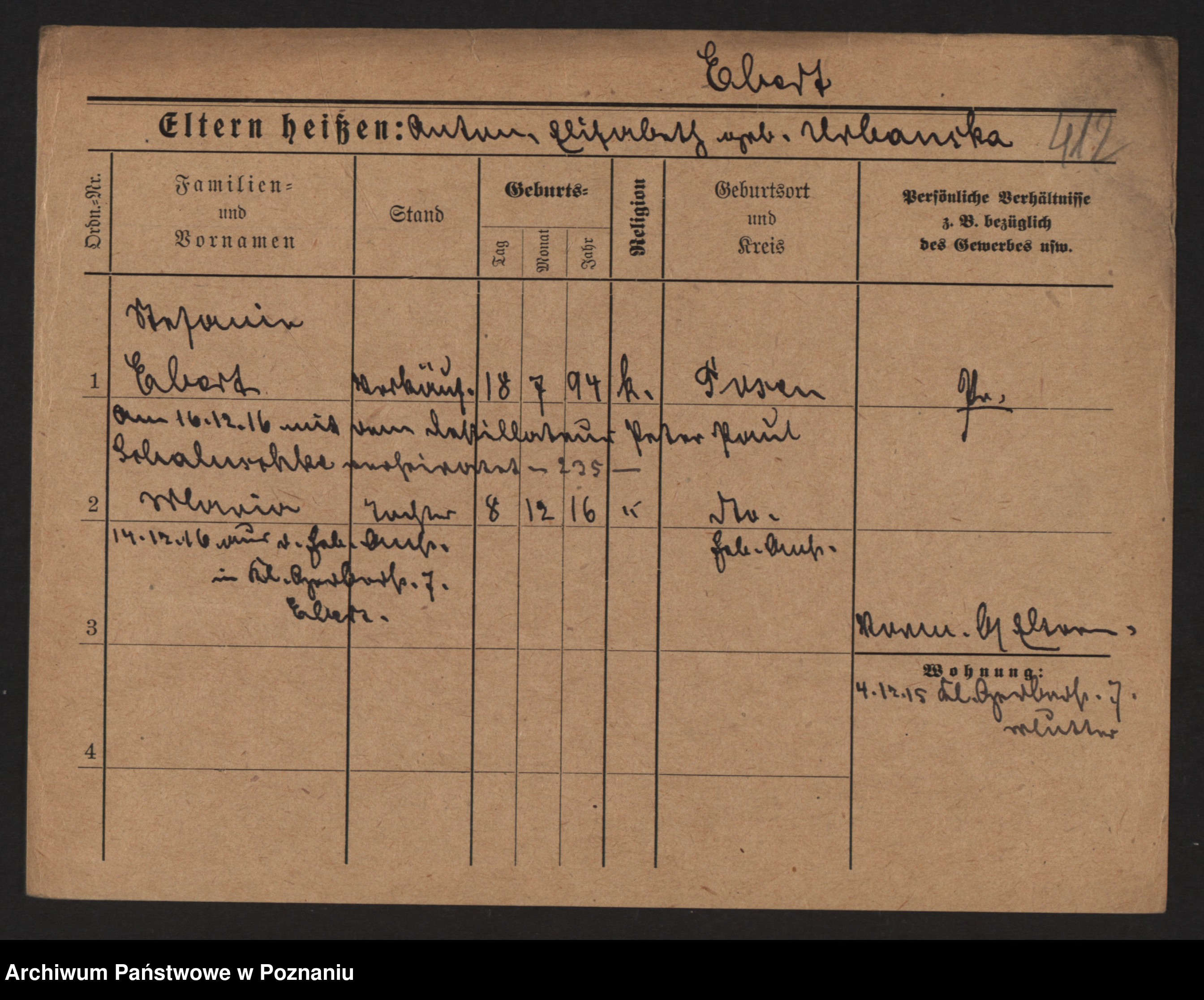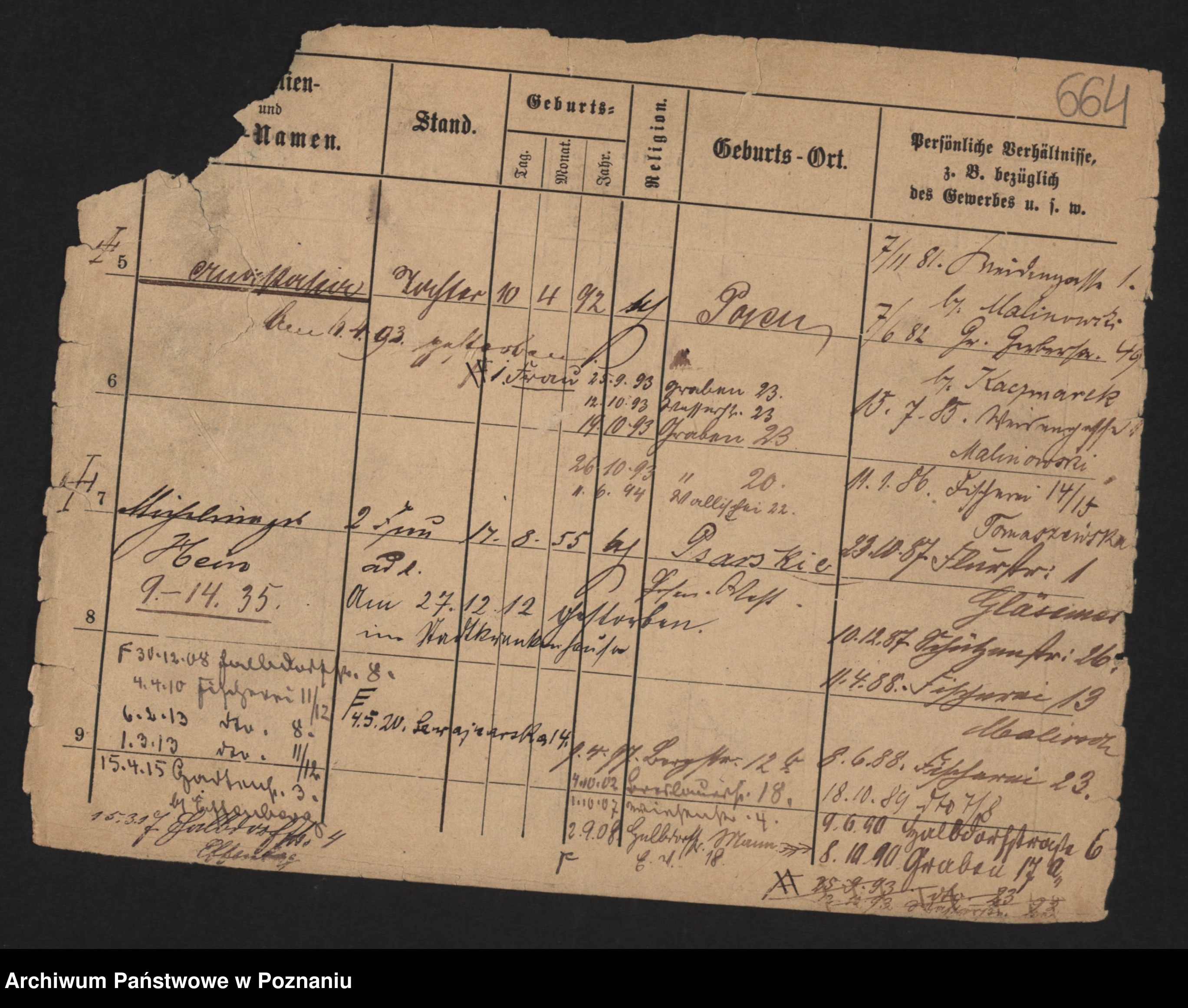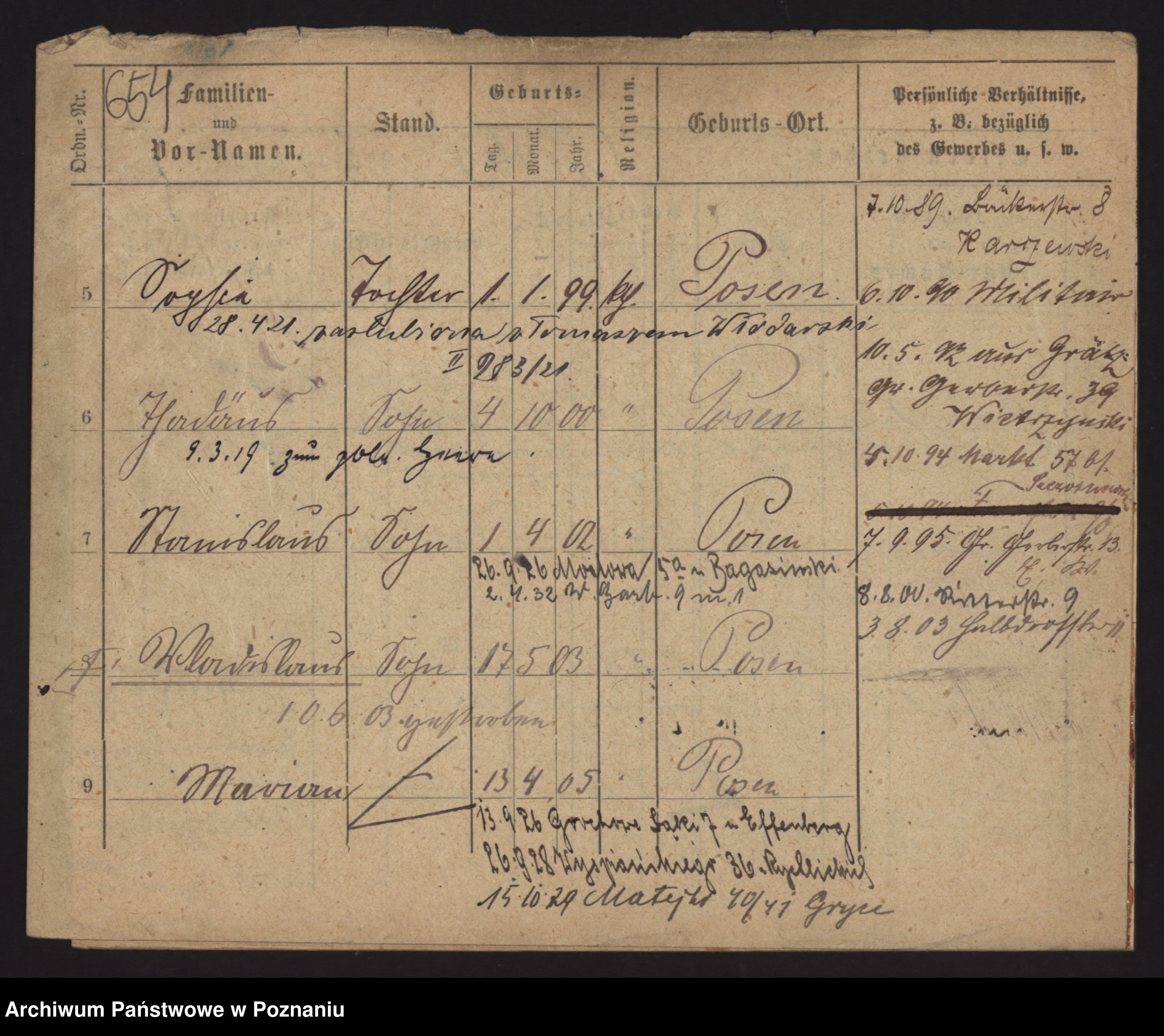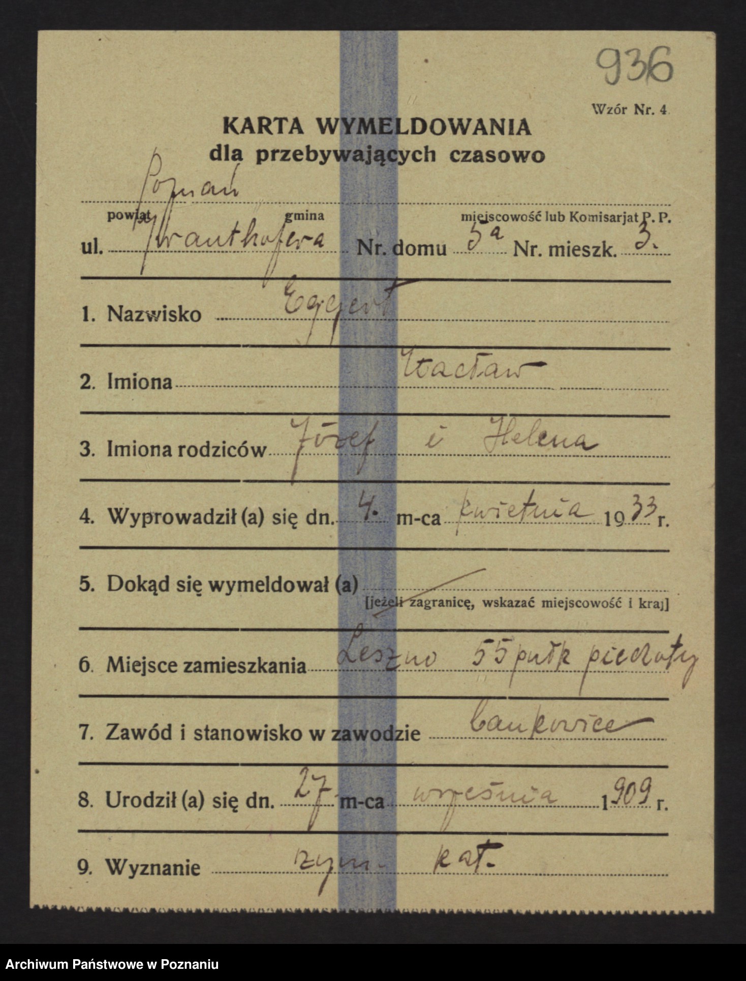 Podgląd karty osobowej dostępny jest po kliknięciu na nazwisko lub ikonkę karty. Można dokonywać powiększenia (ikony na górze) lub przechodzić między kolejnymi skanami (strzałki po bokach).