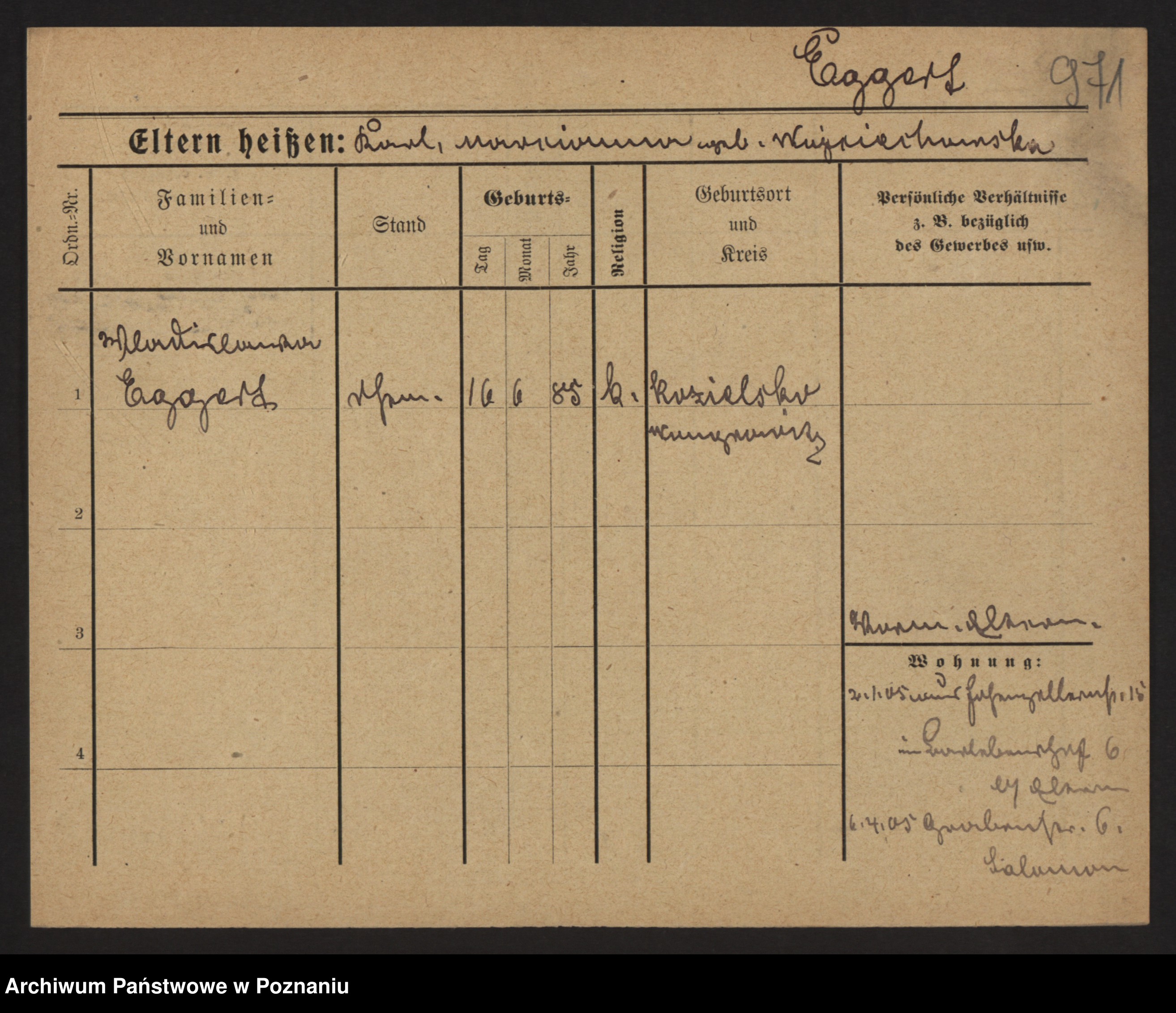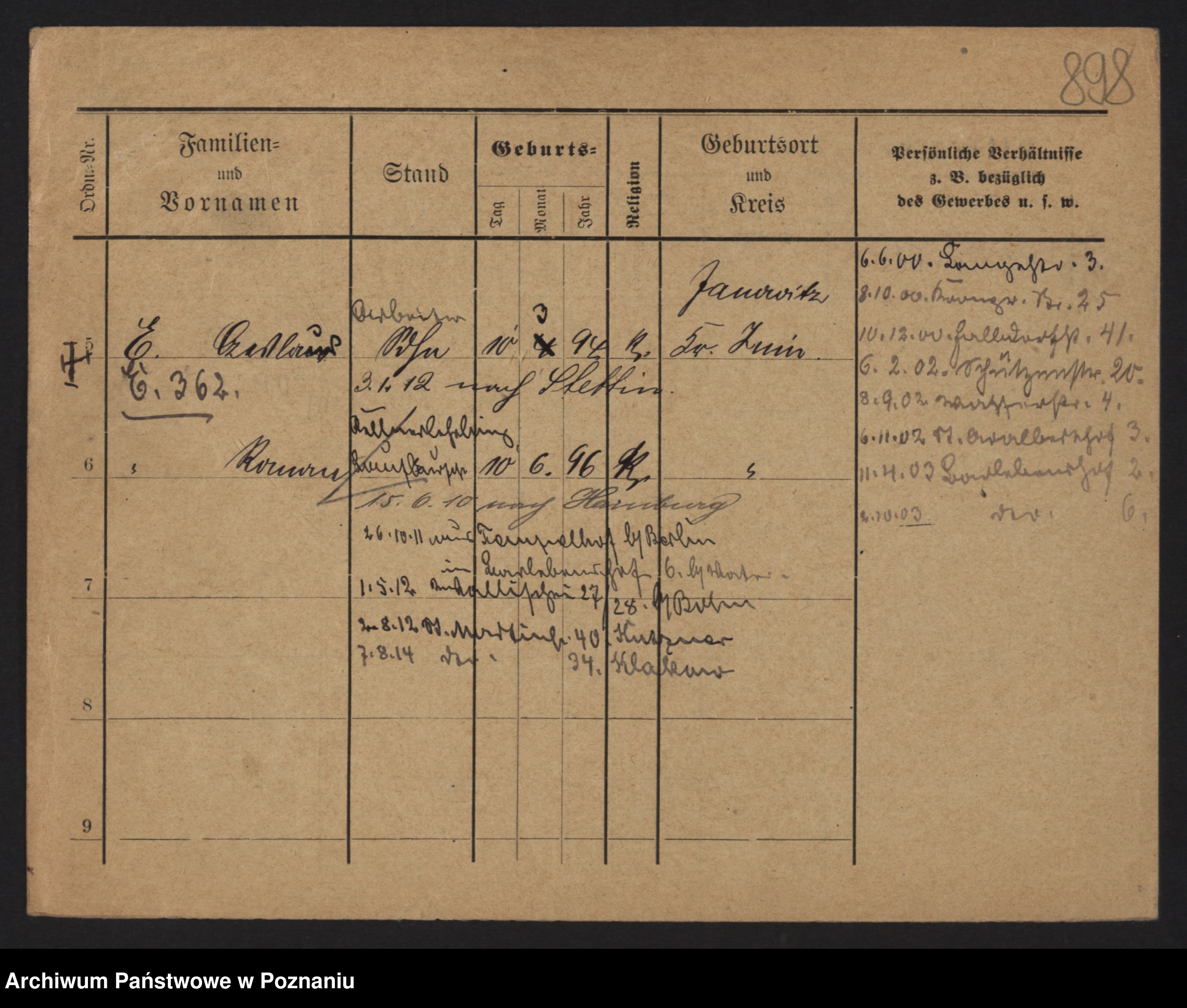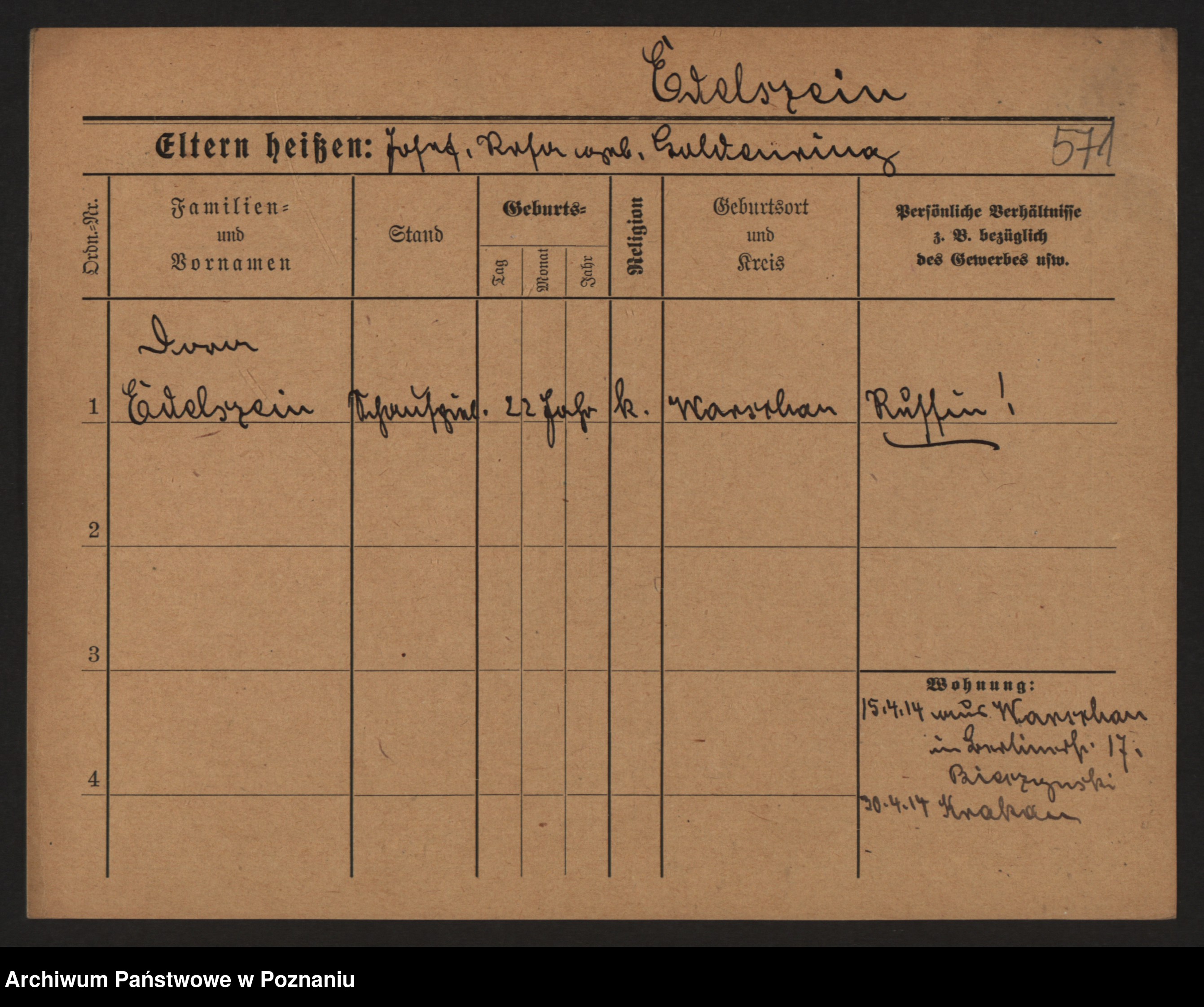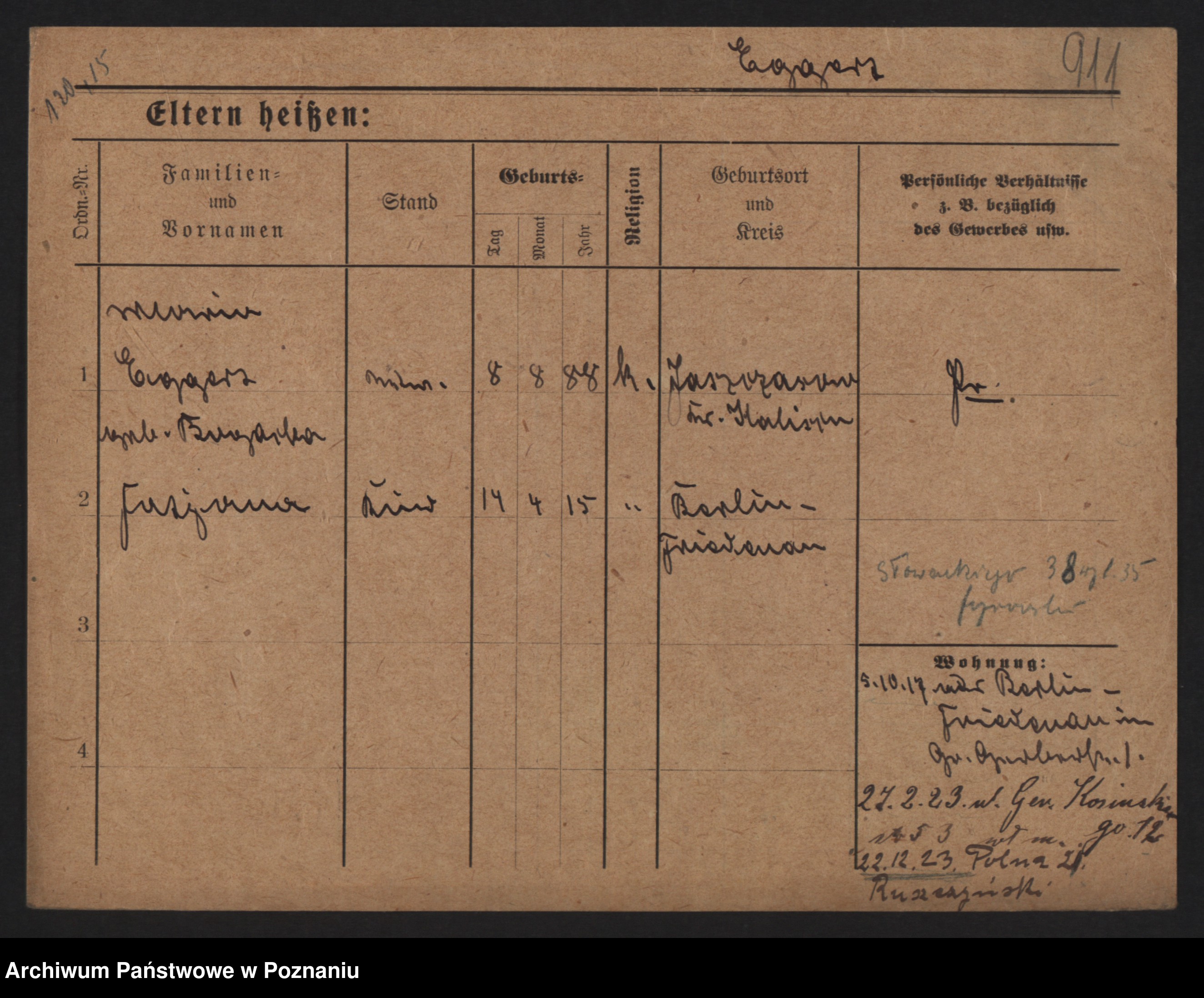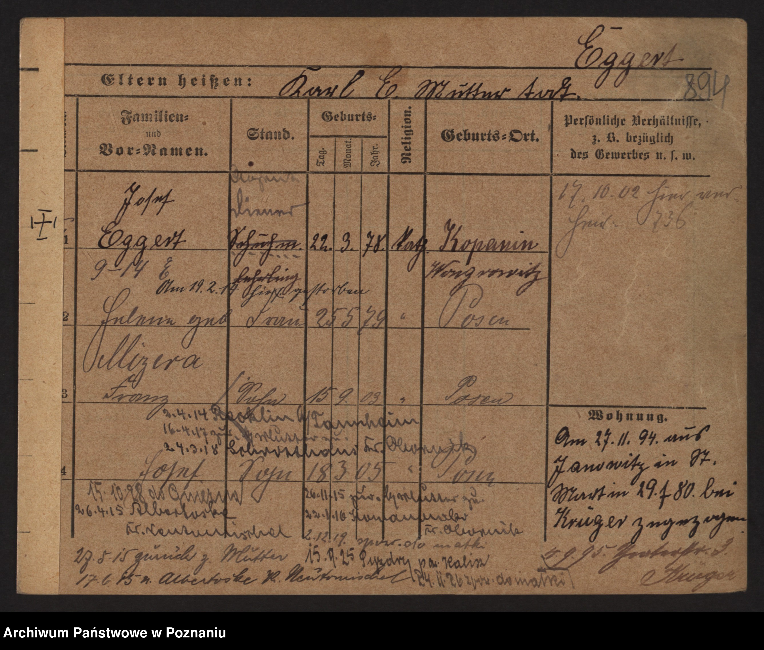 Podgląd karty osobowej dostępny jest po kliknięciu na nazwisko lub ikonkę karty. Można dokonywać powiększenia (ikony na górze) lub przechodzić między kolejnymi skanami (strzałki po bokach).