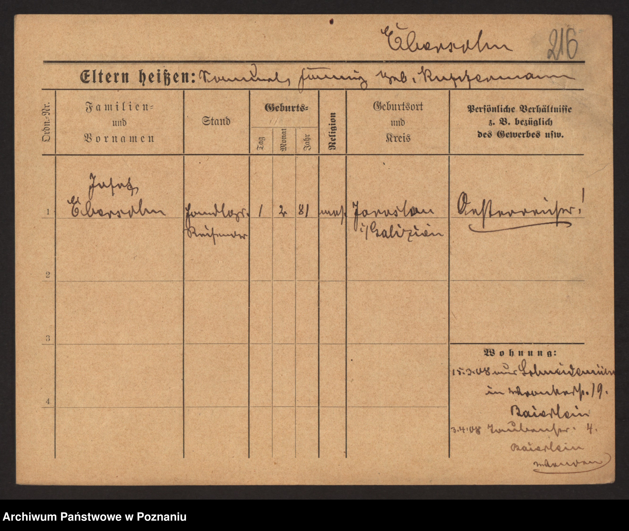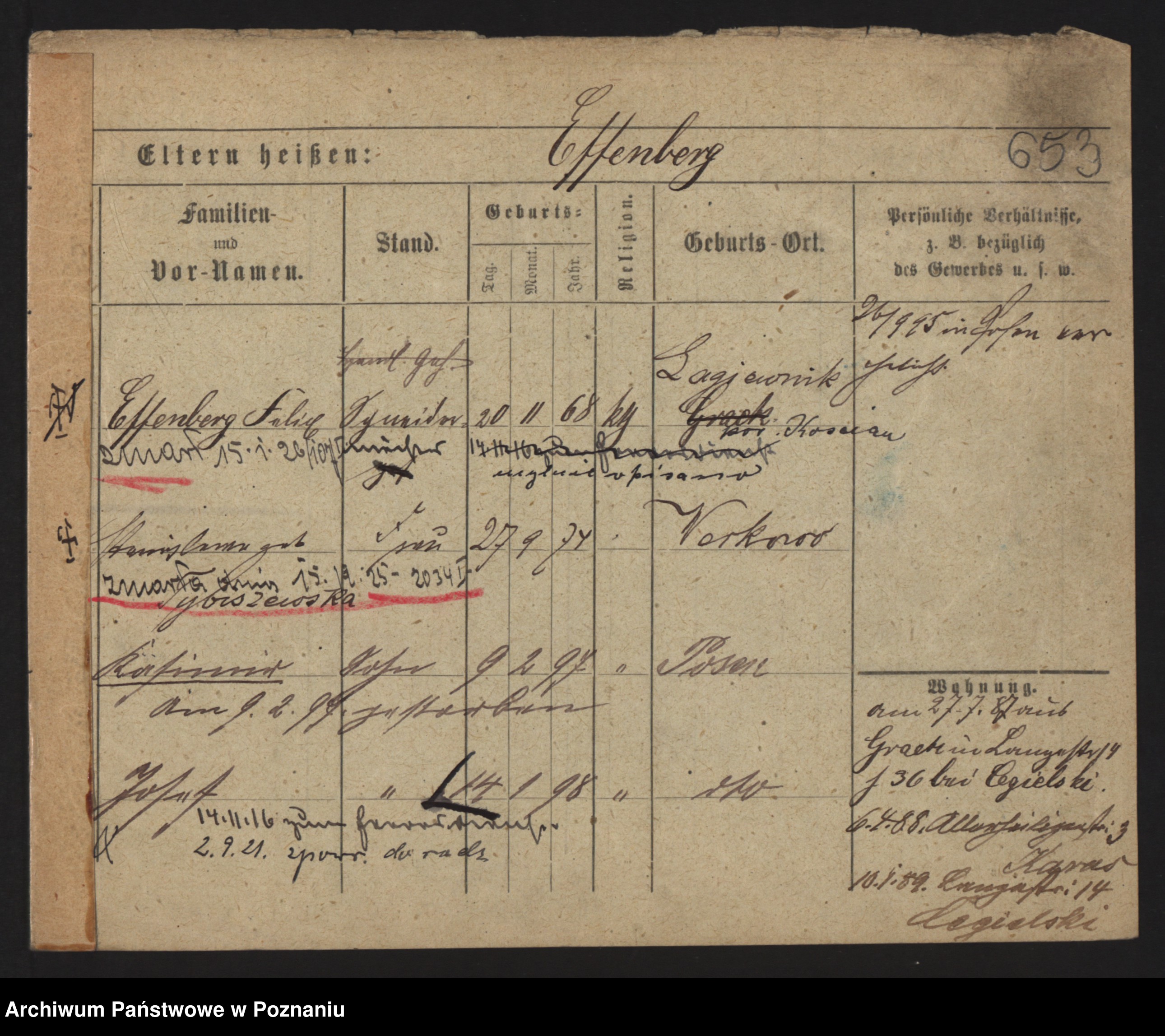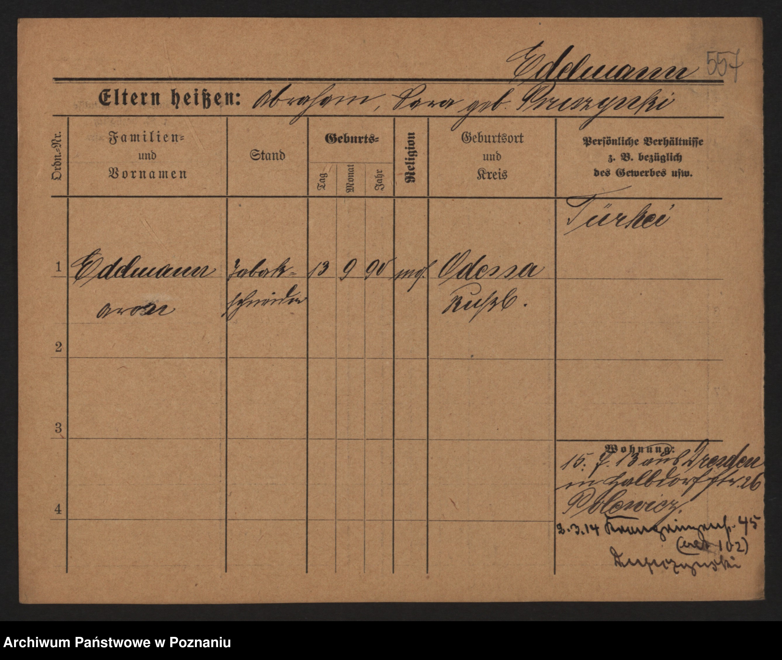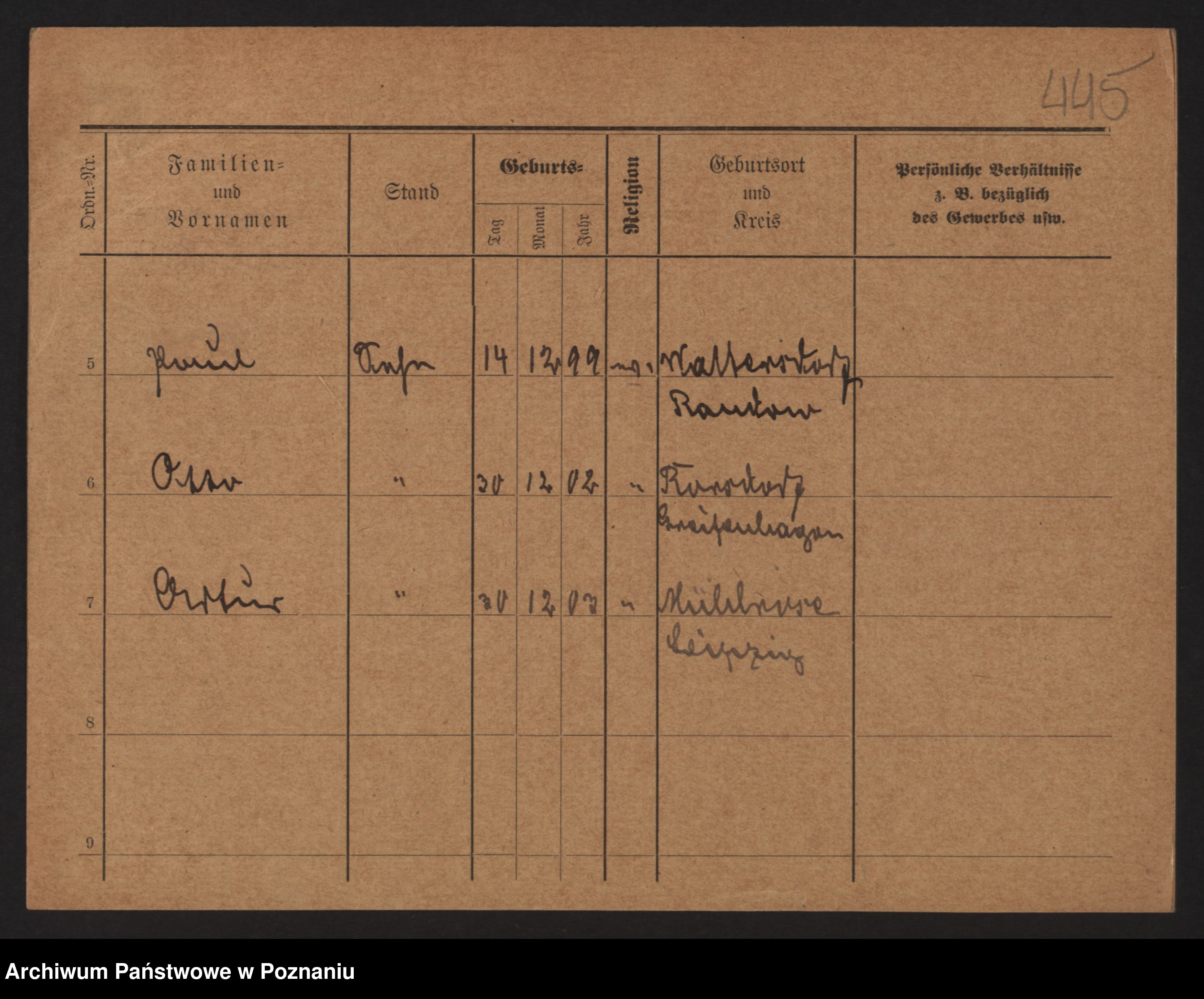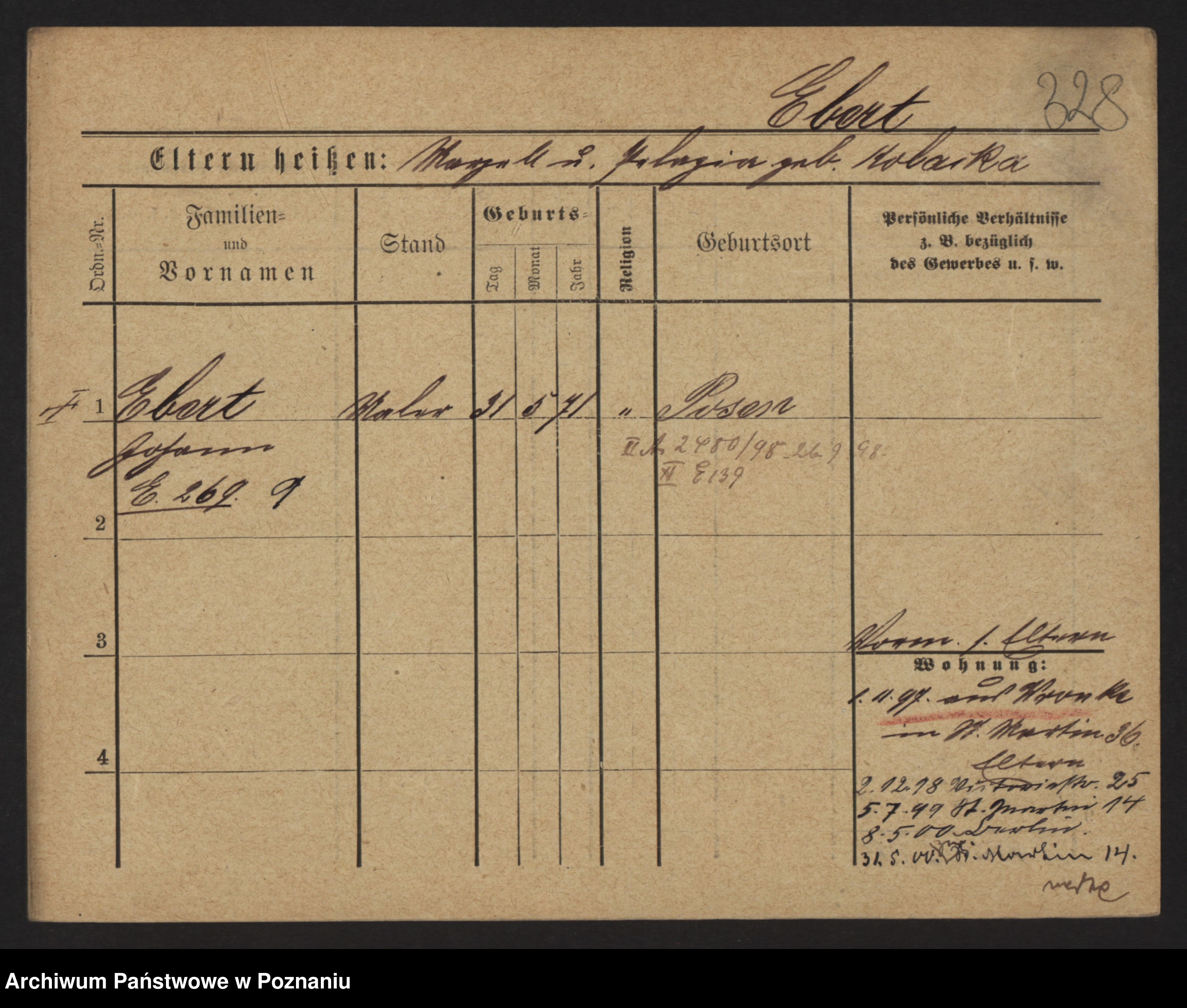 Podgląd karty osobowej dostępny jest po kliknięciu na nazwisko lub ikonkę karty. Można dokonywać powiększenia (ikony na górze) lub przechodzić między kolejnymi skanami (strzałki po bokach).
