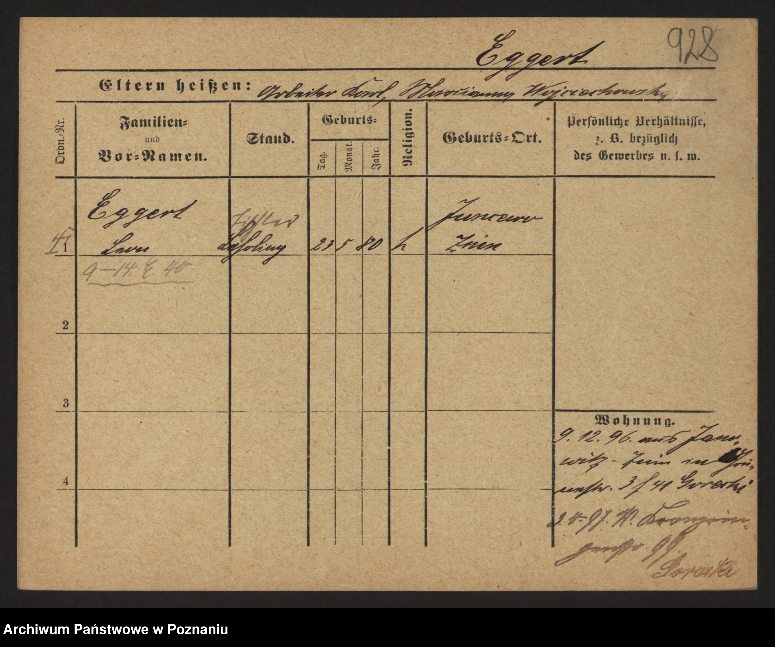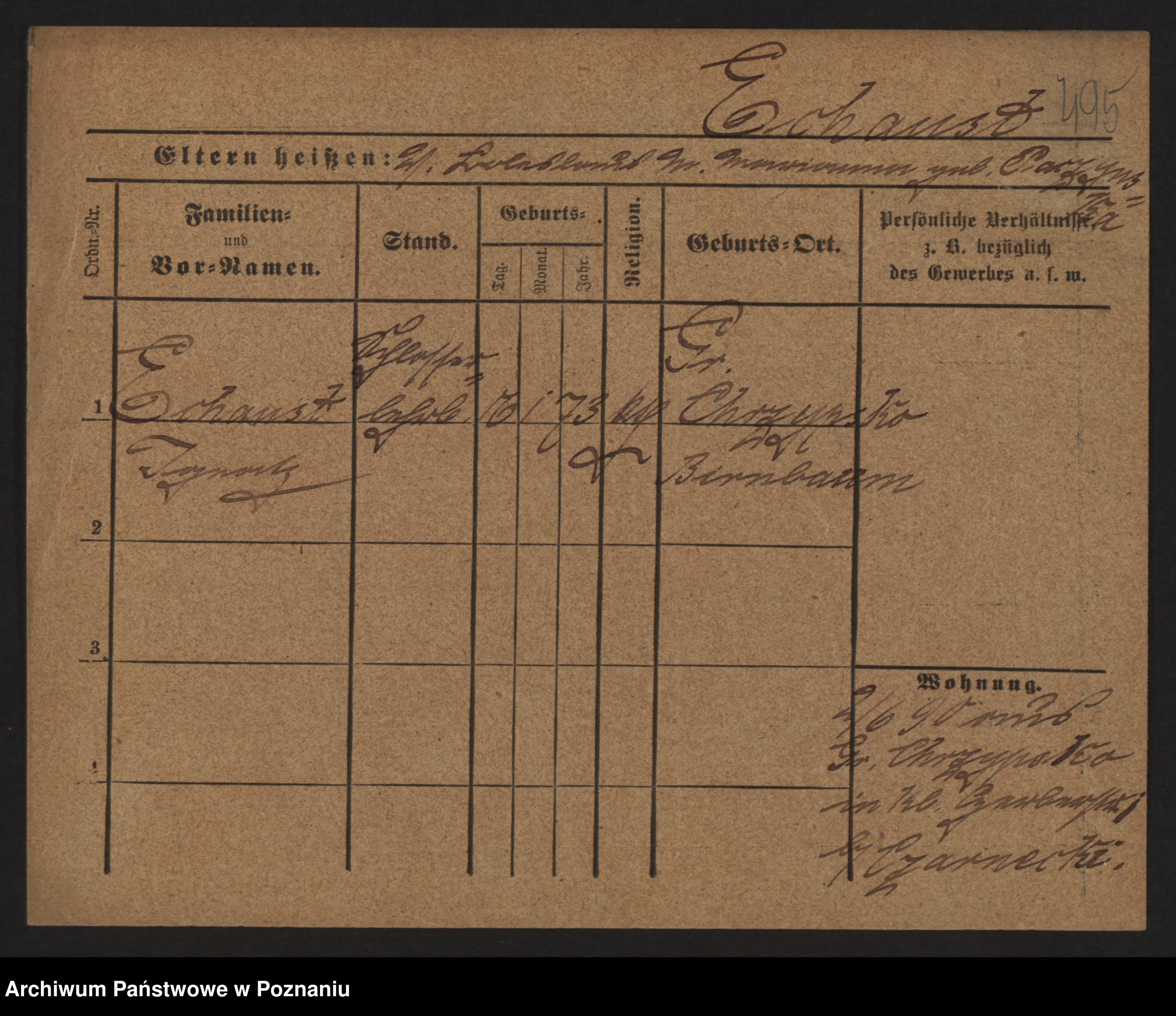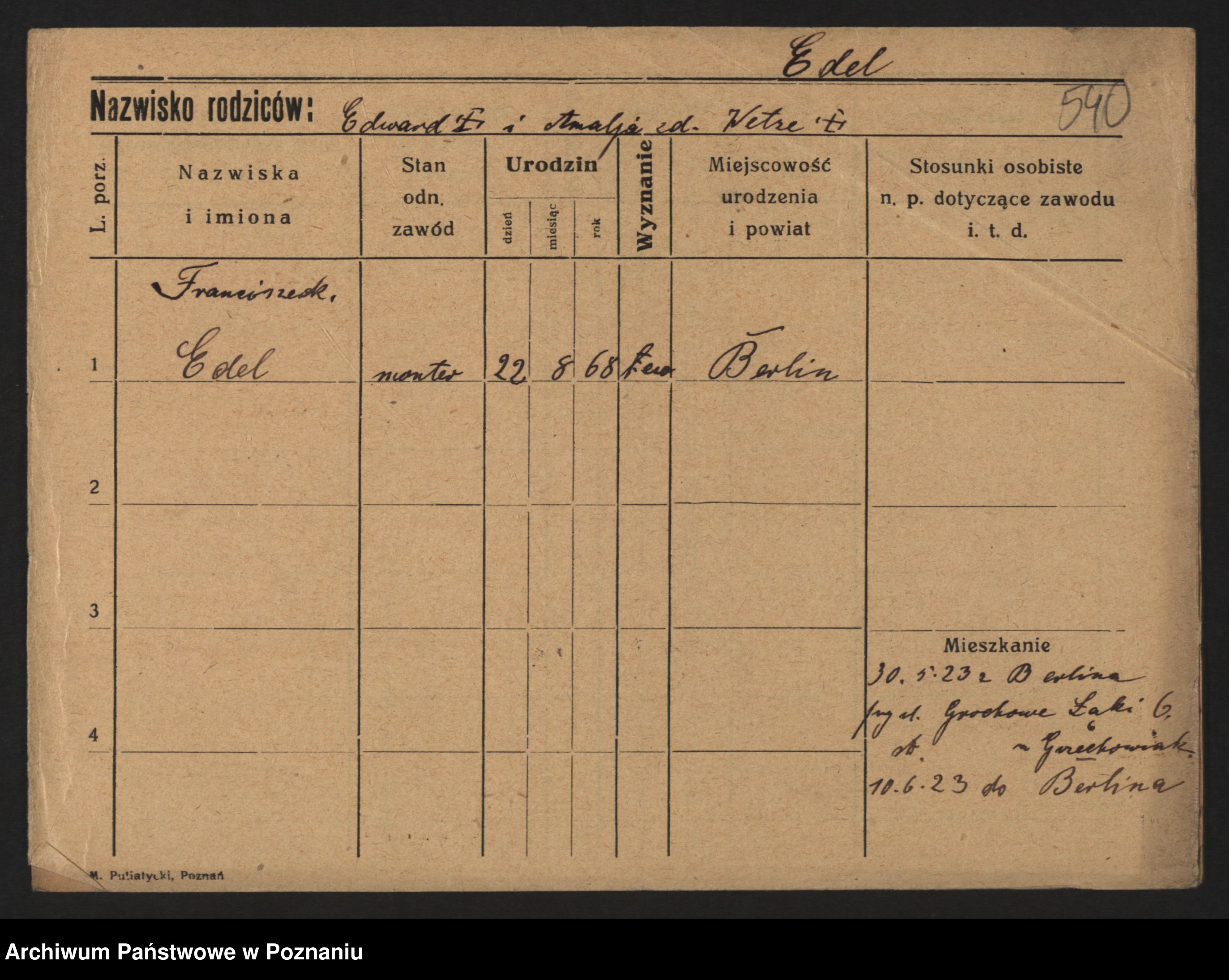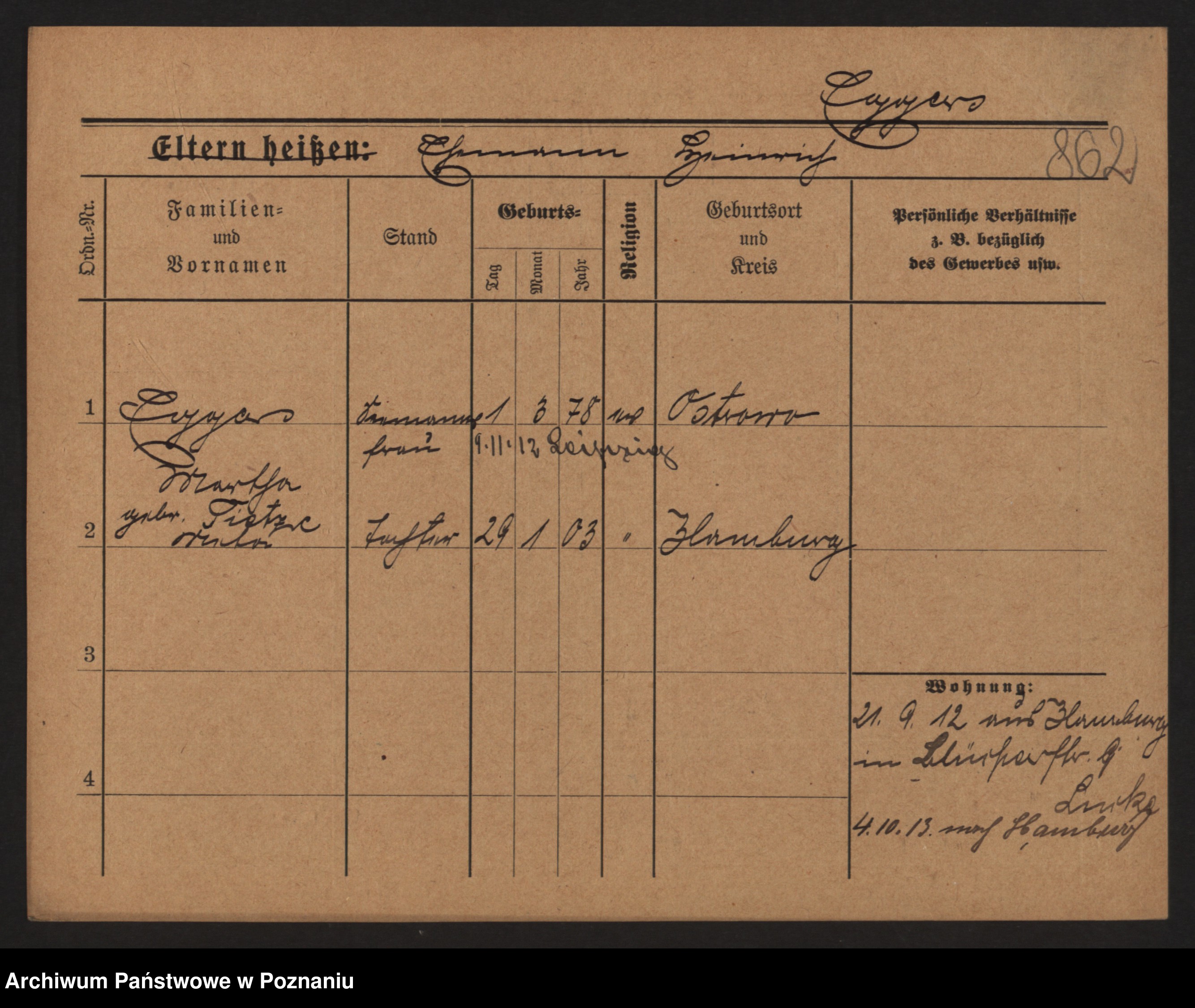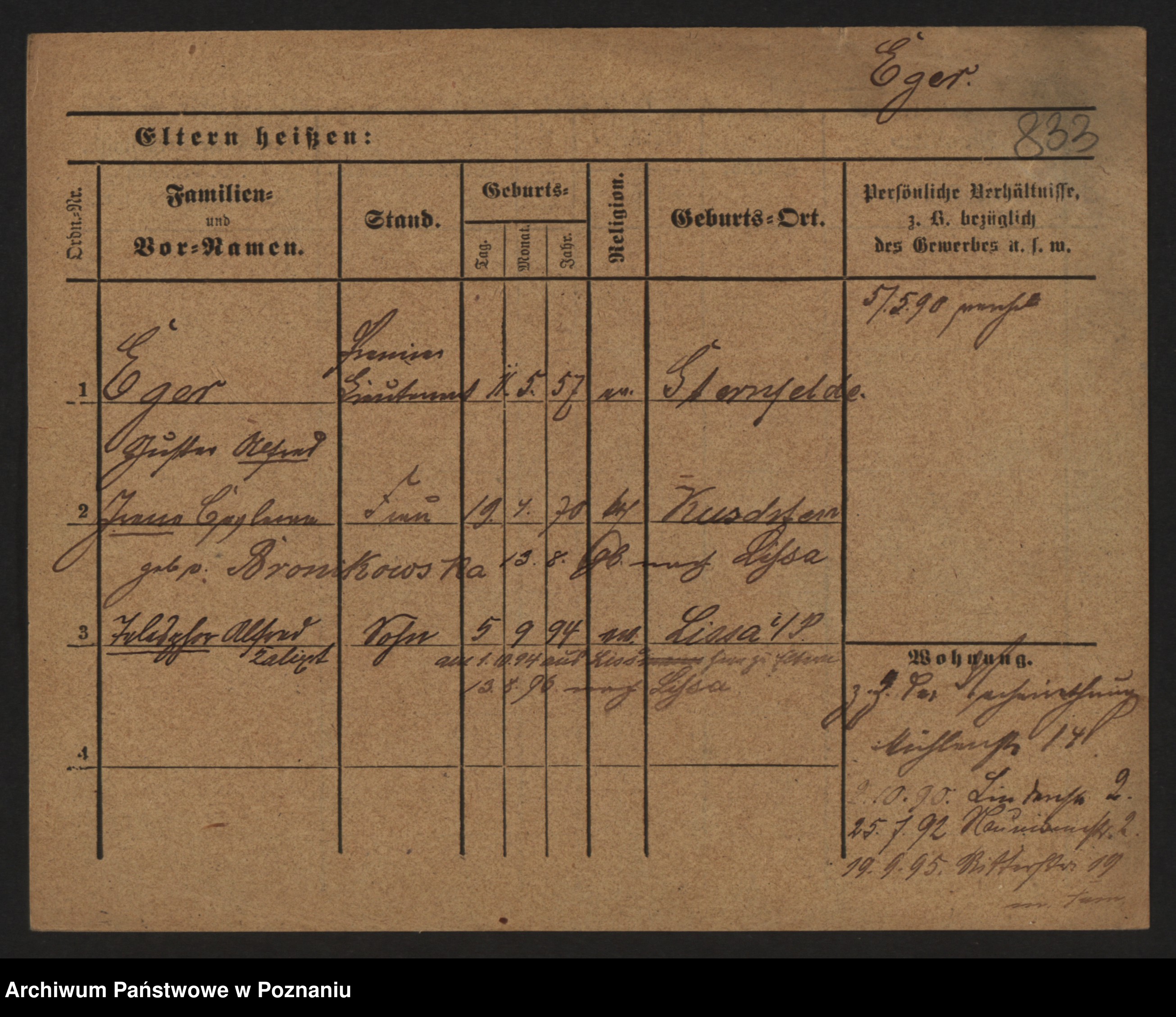 Podgląd karty osobowej dostępny jest po kliknięciu na nazwisko lub ikonkę karty. Można dokonywać powiększenia (ikony na górze) lub przechodzić między kolejnymi skanami (strzałki po bokach).