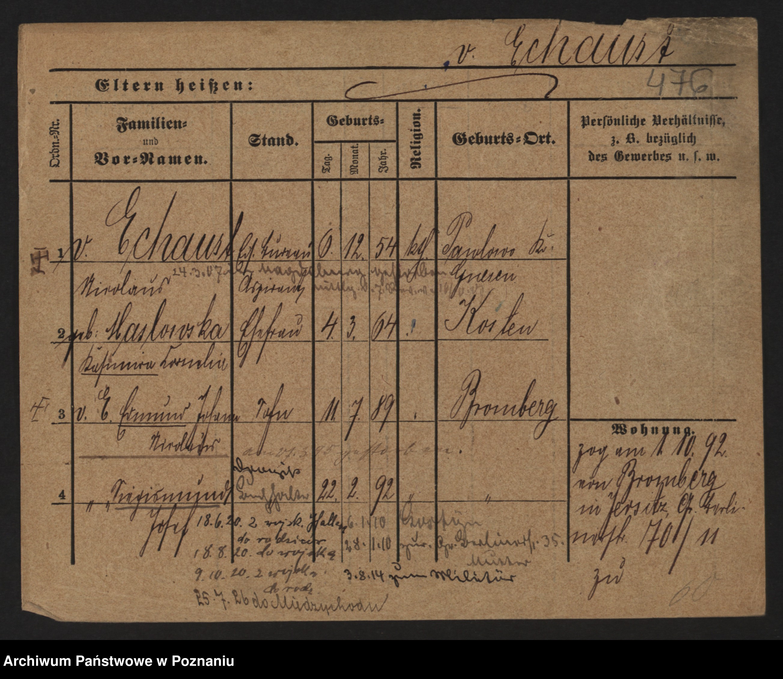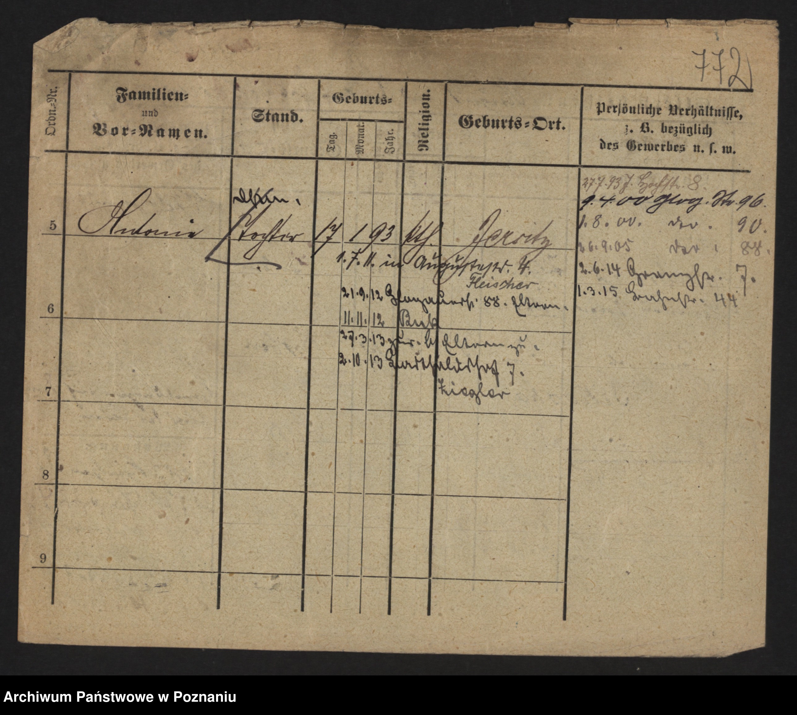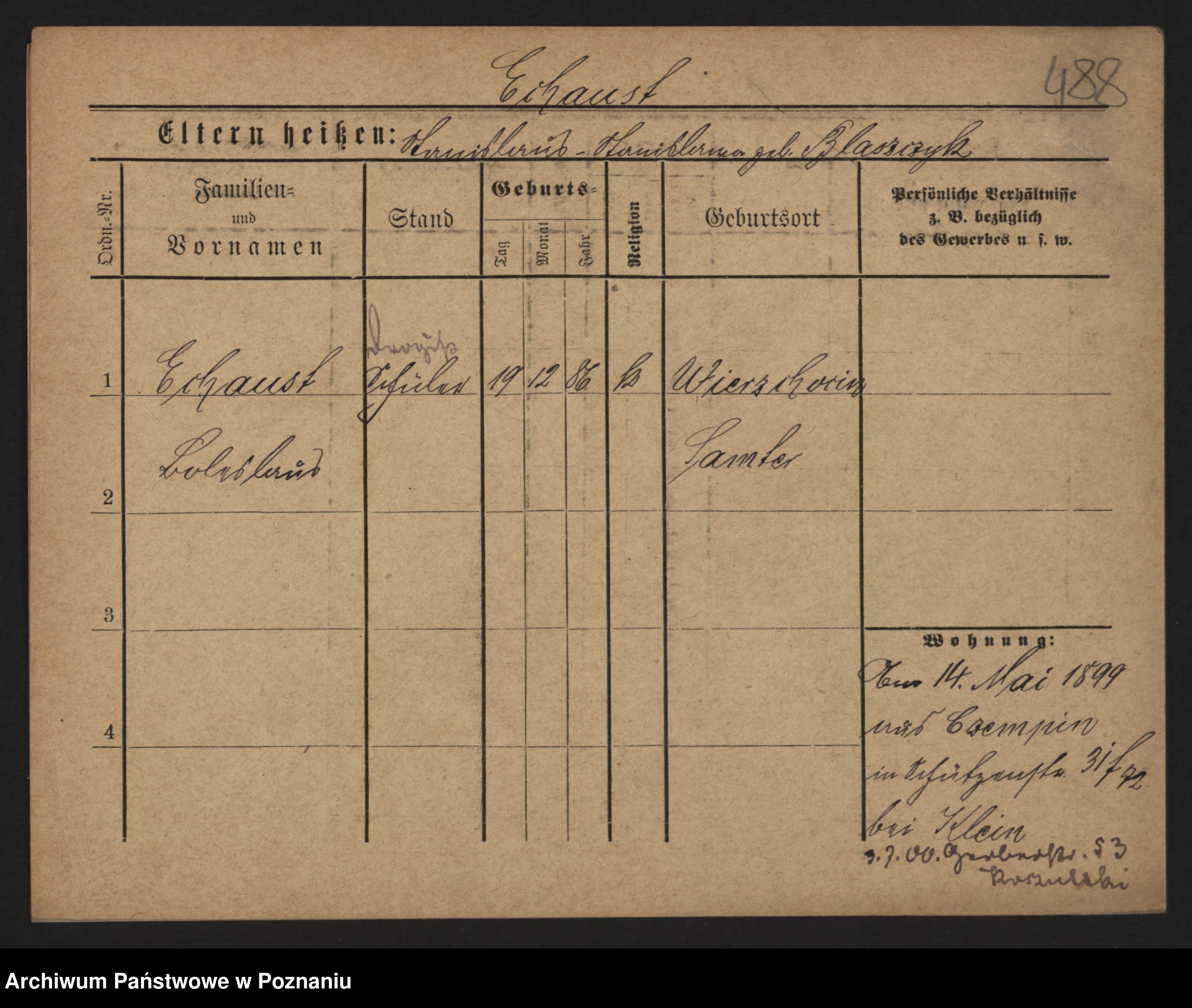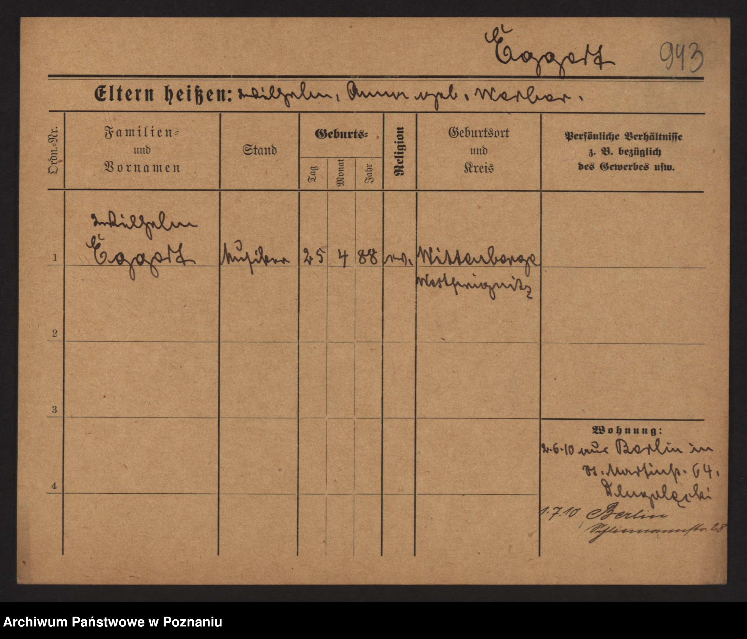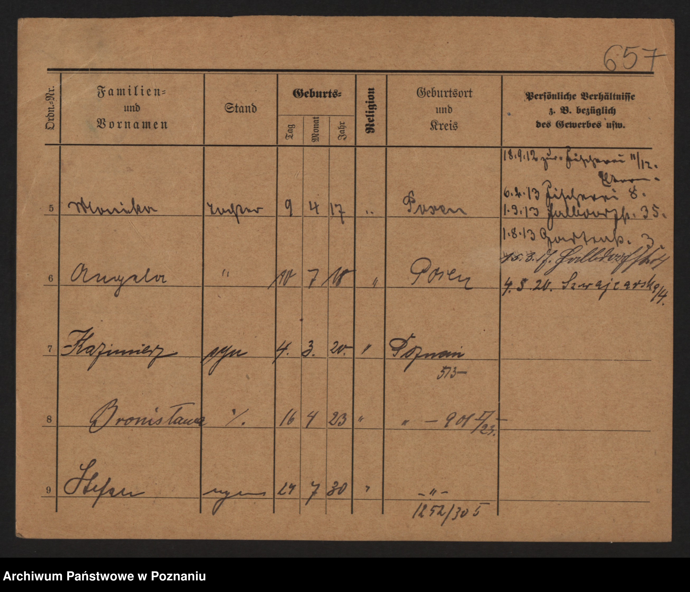 Podgląd karty osobowej dostępny jest po kliknięciu na nazwisko lub ikonkę karty. Można dokonywać powiększenia (ikony na górze) lub przechodzić między kolejnymi skanami (strzałki po bokach).