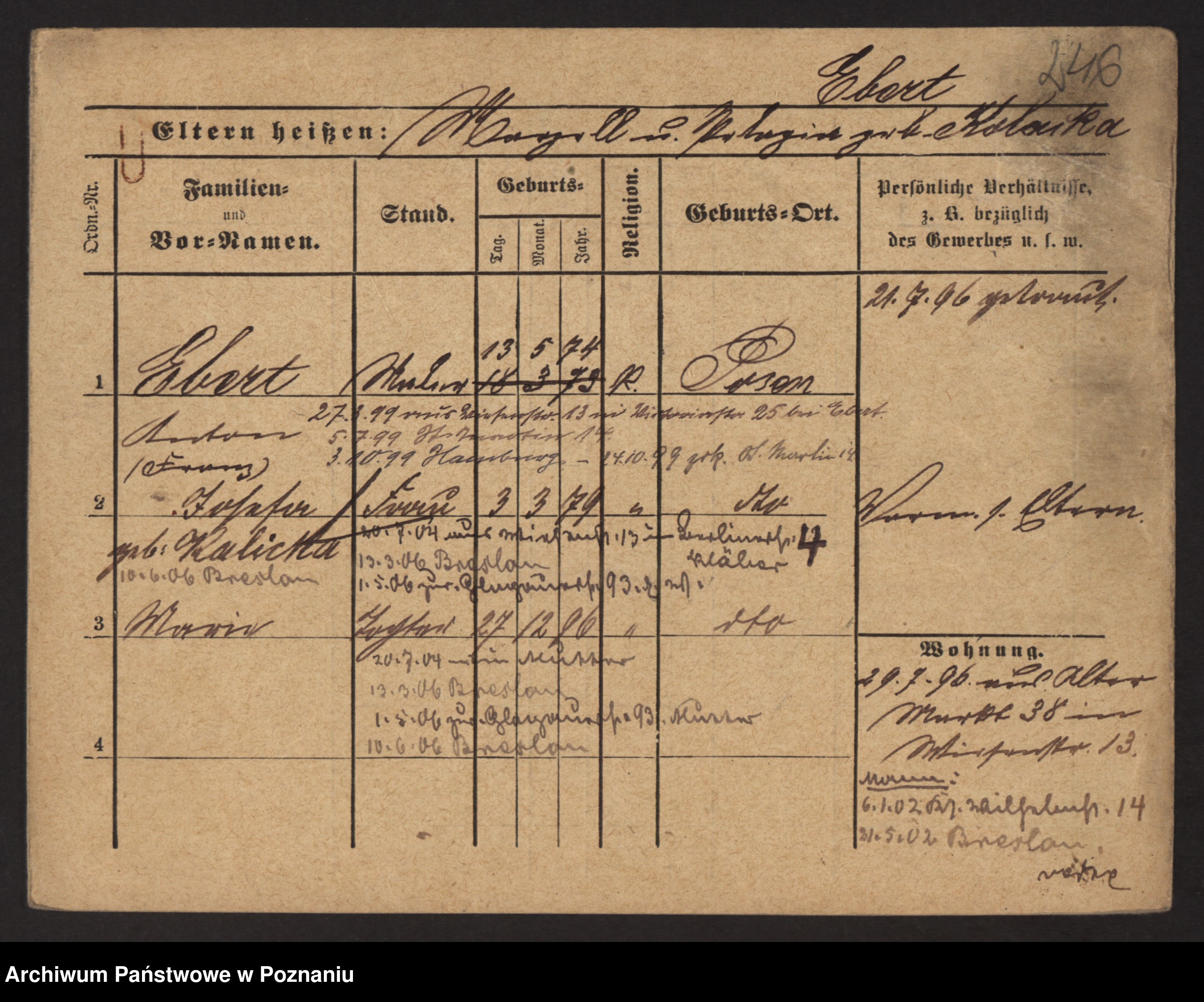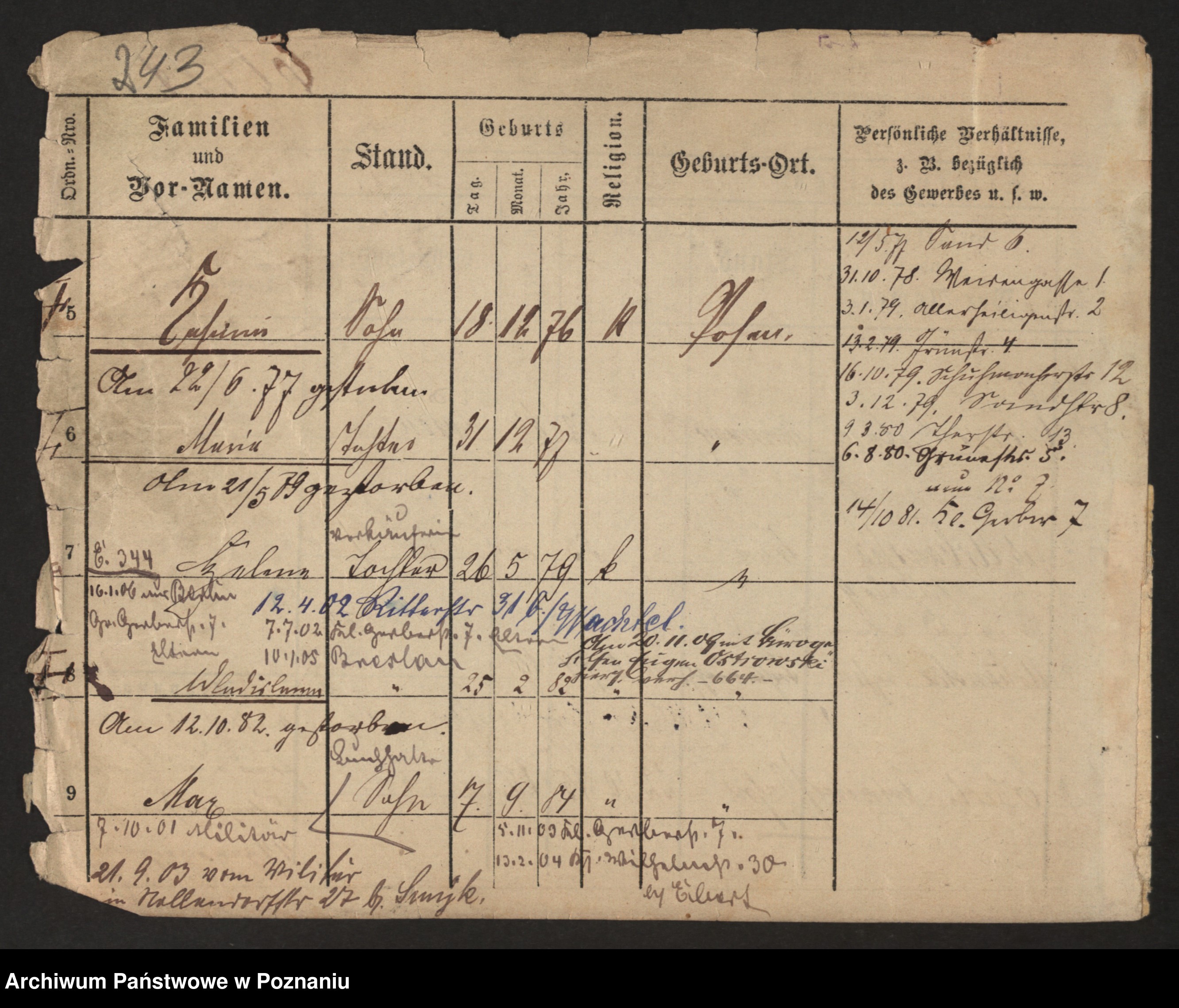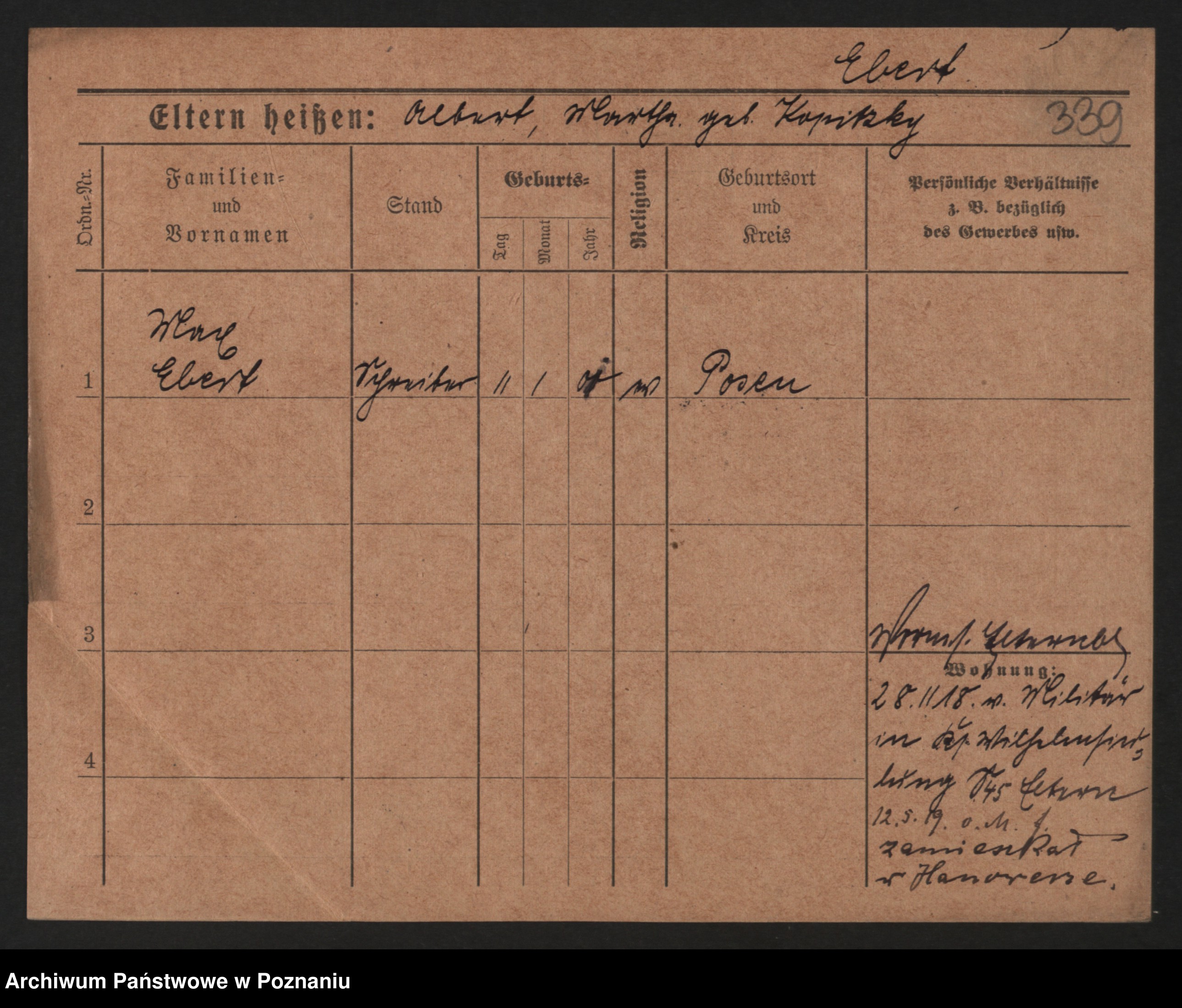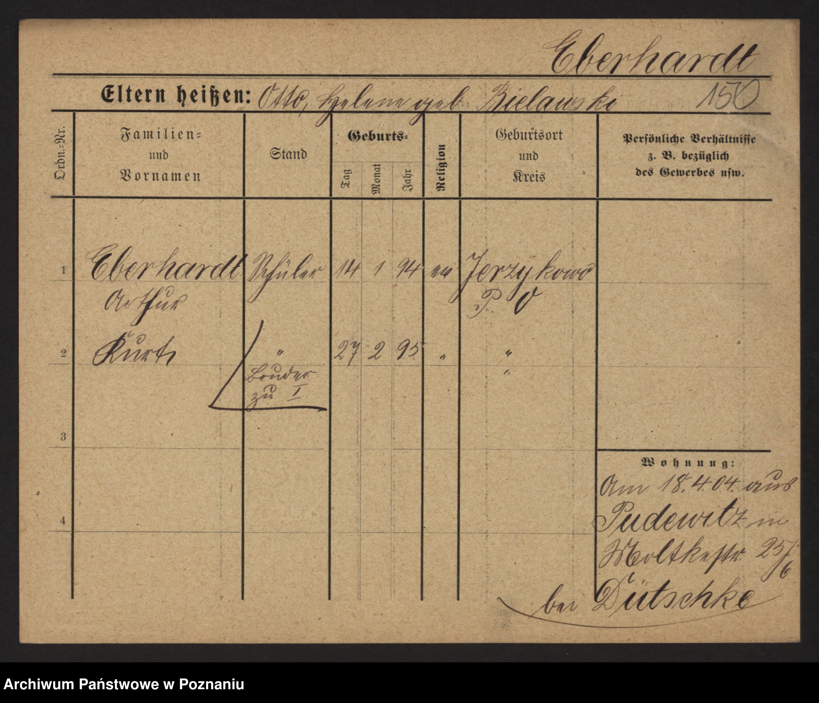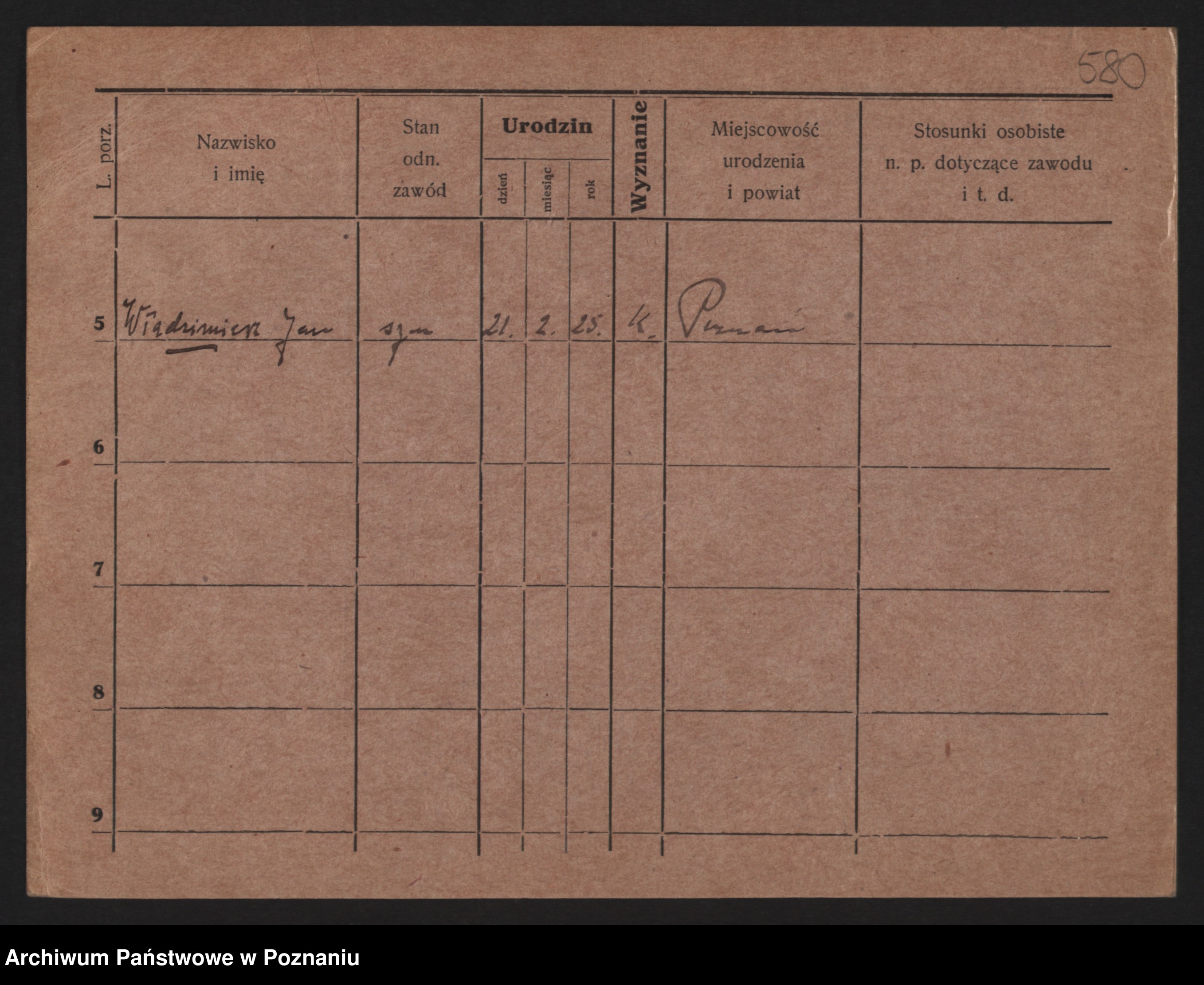 Podgląd karty osobowej dostępny jest po kliknięciu na nazwisko lub ikonkę karty. Można dokonywać powiększenia (ikony na górze) lub przechodzić między kolejnymi skanami (strzałki po bokach).