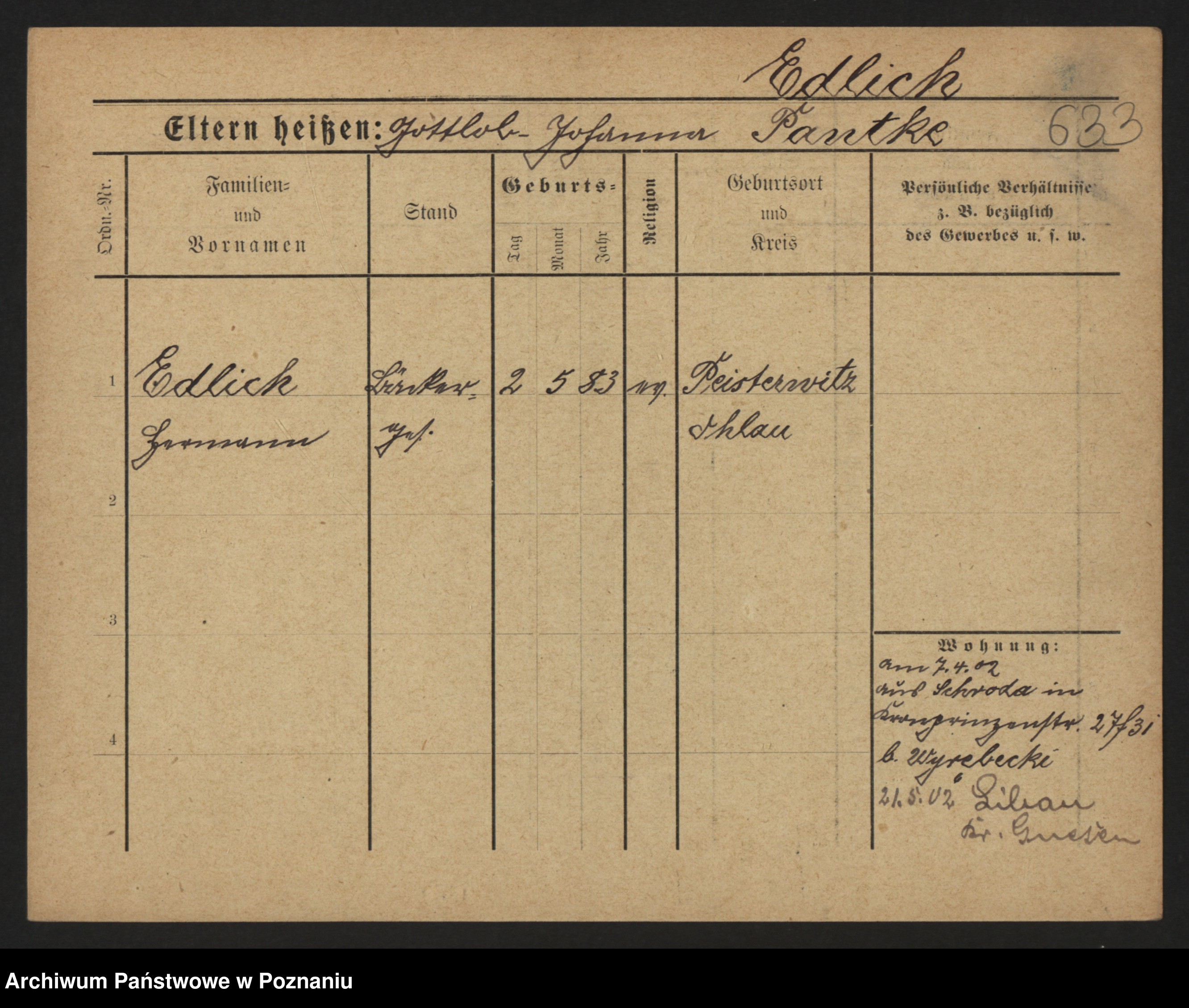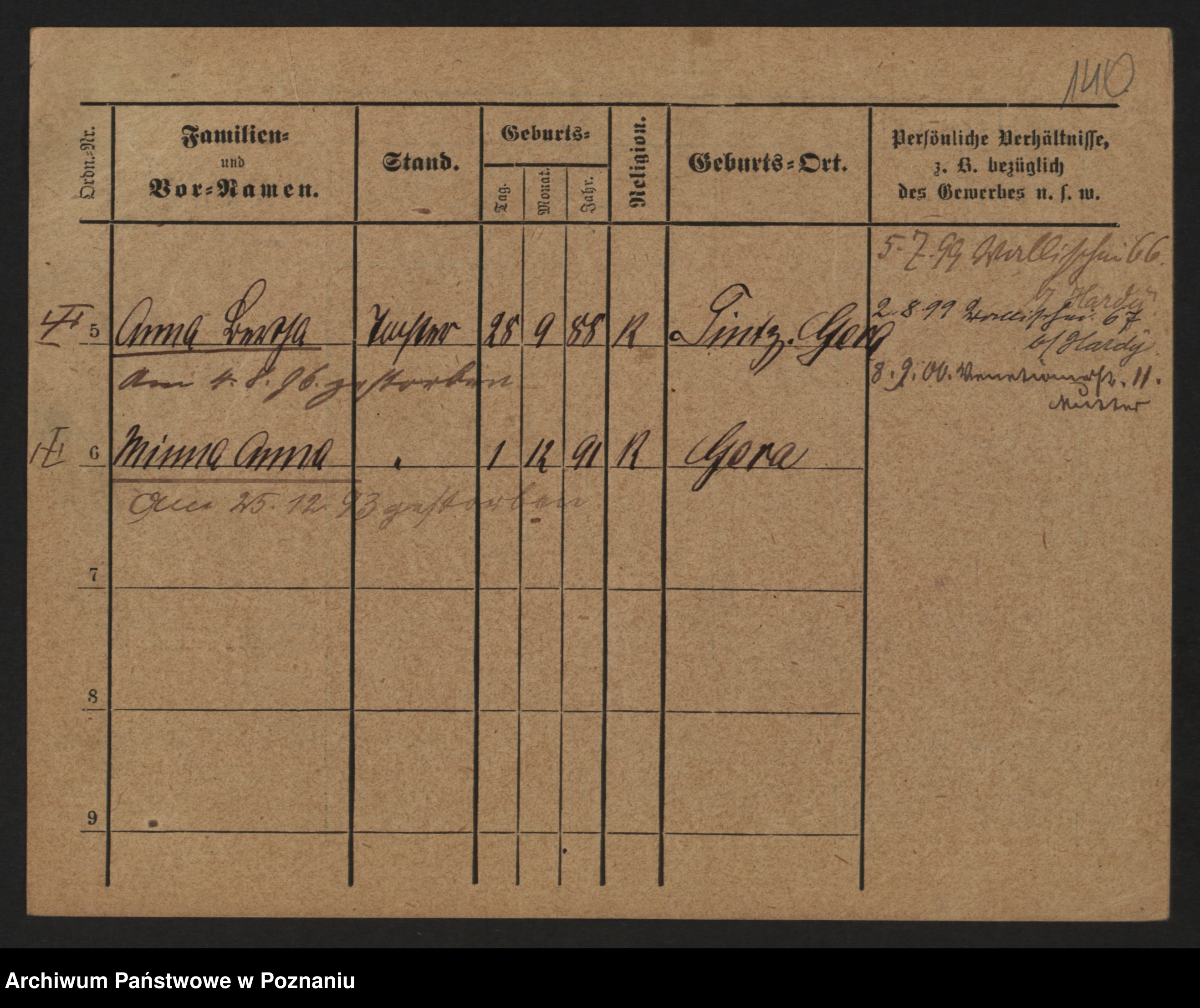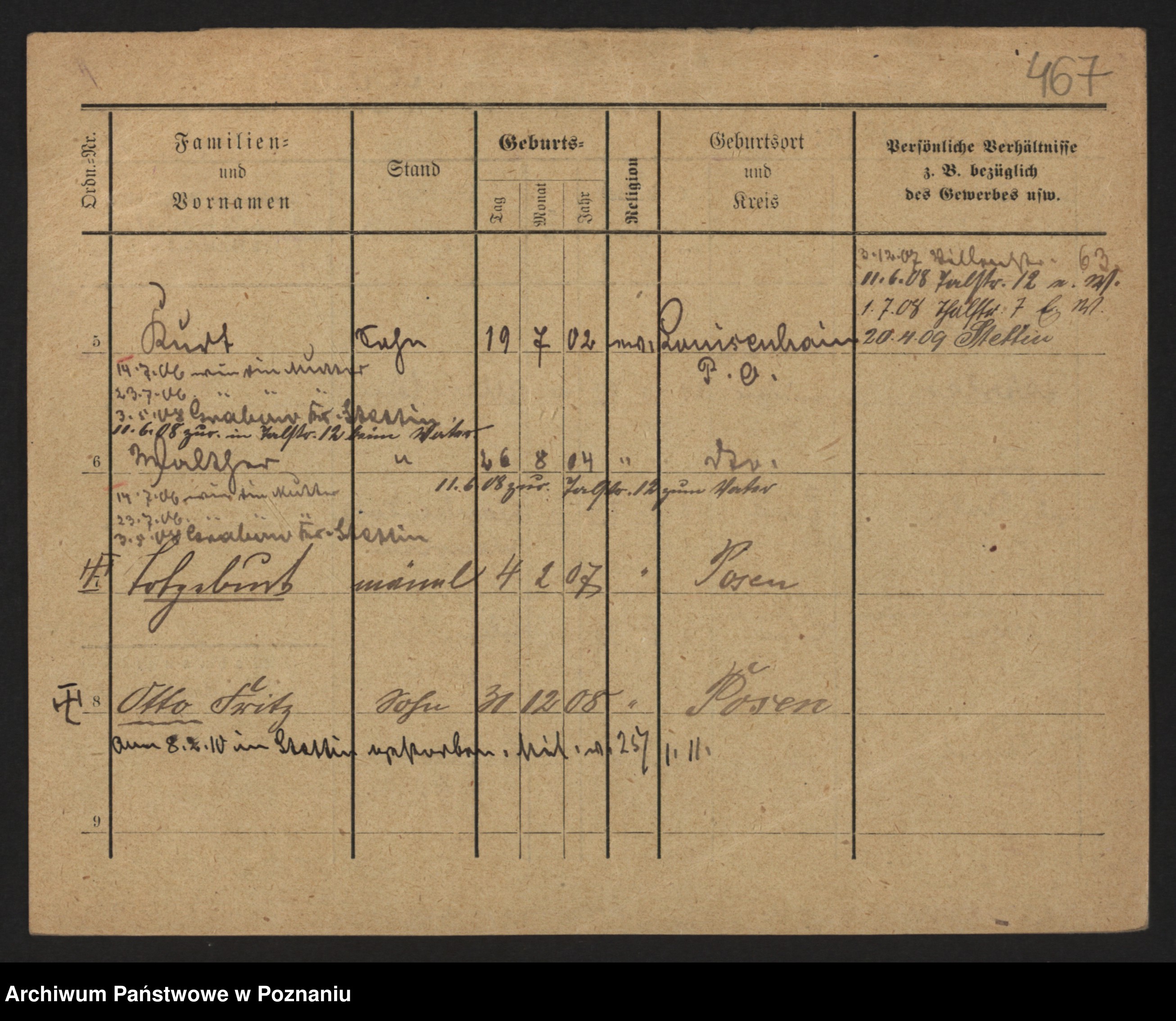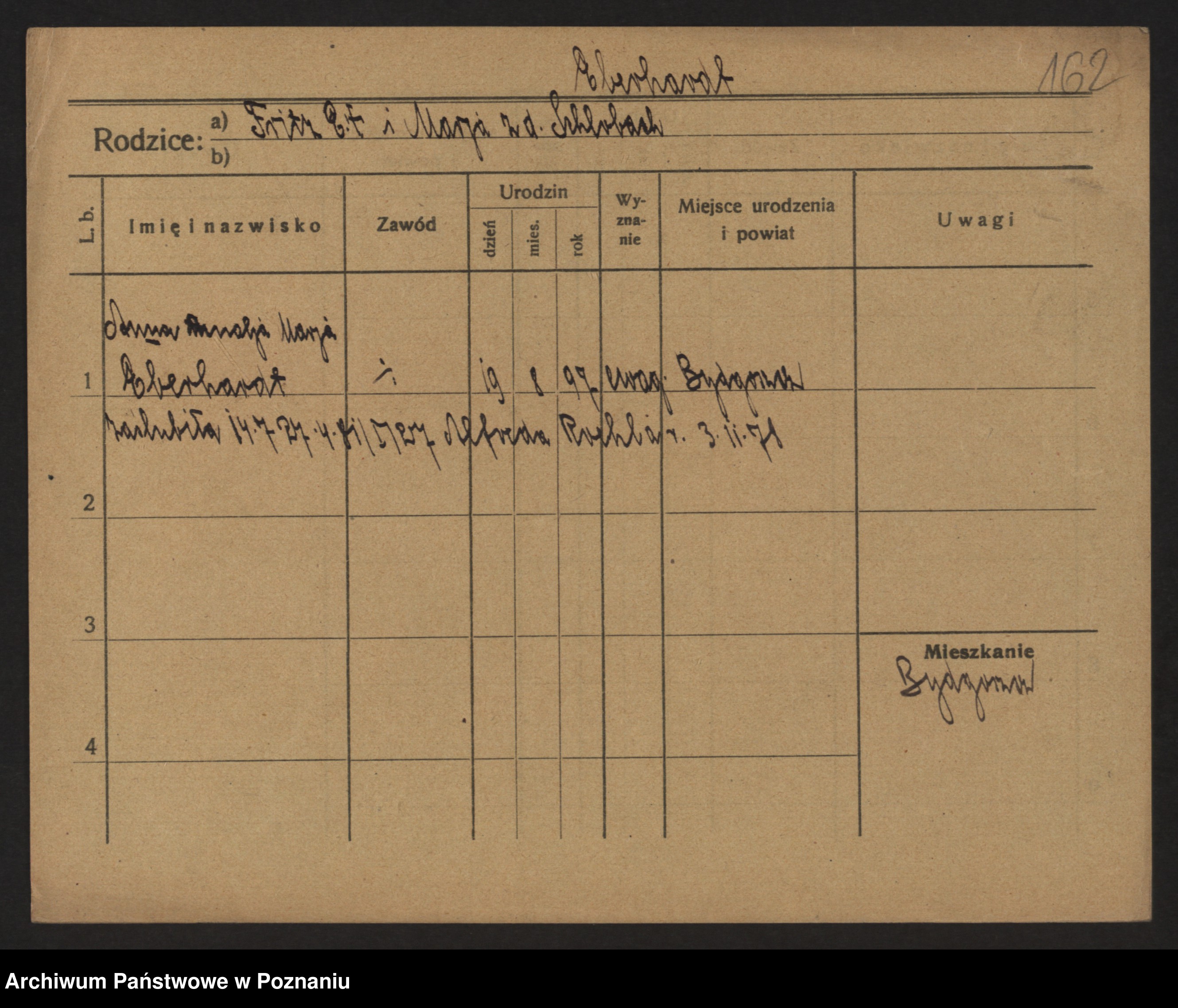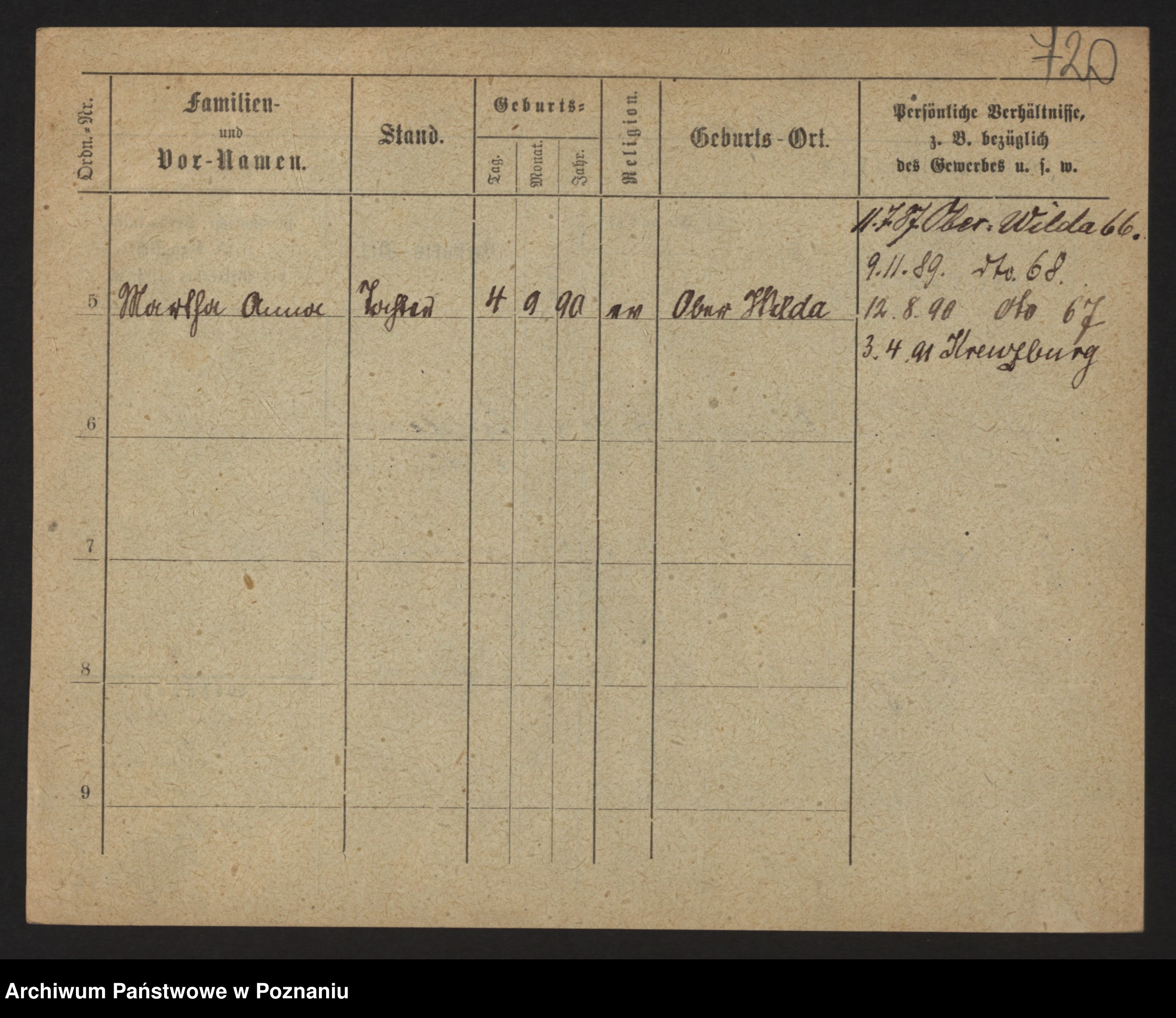Podgląd karty osobowej dostępny jest po kliknięciu na nazwisko lub ikonkę karty. Można dokonywać powiększenia (ikony na górze) lub przechodzić między kolejnymi skanami (strzałki po bokach).