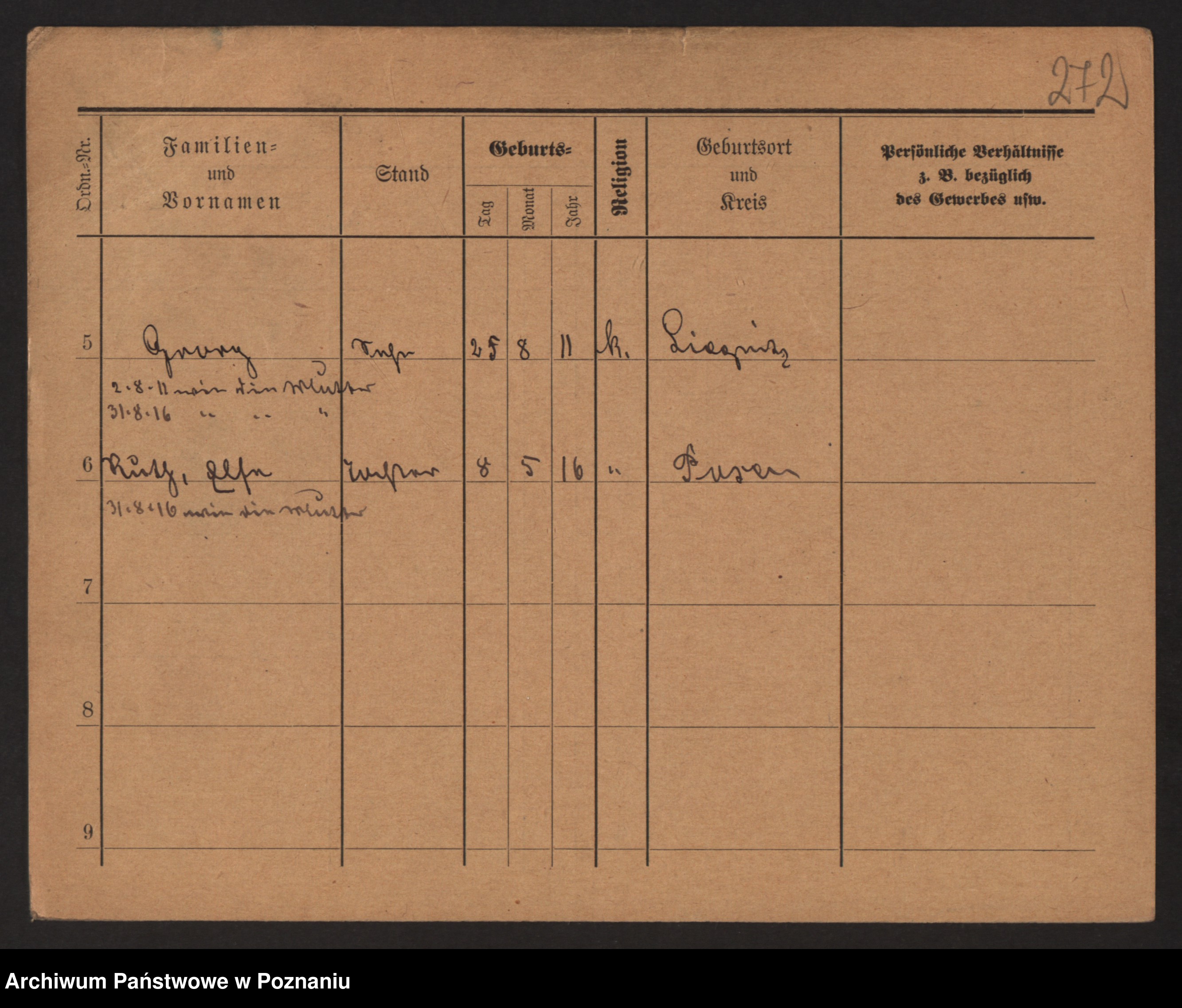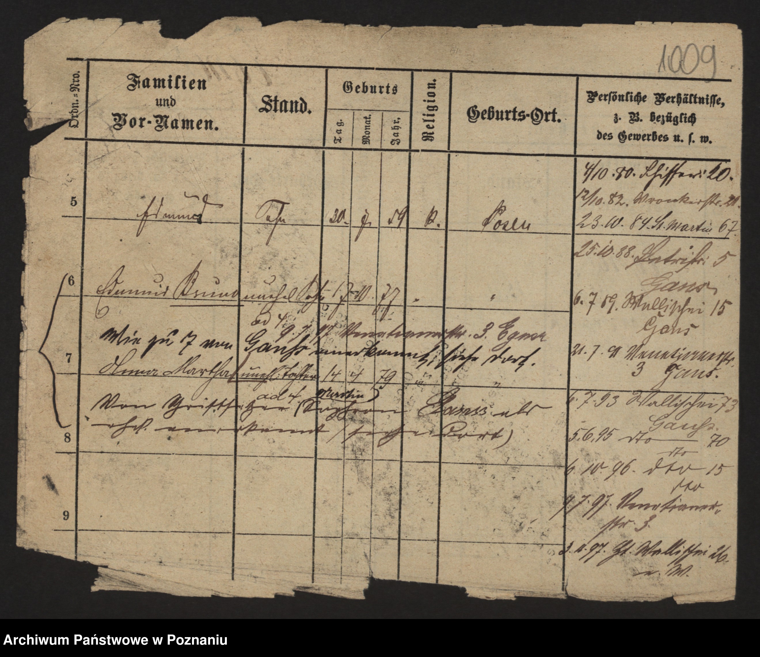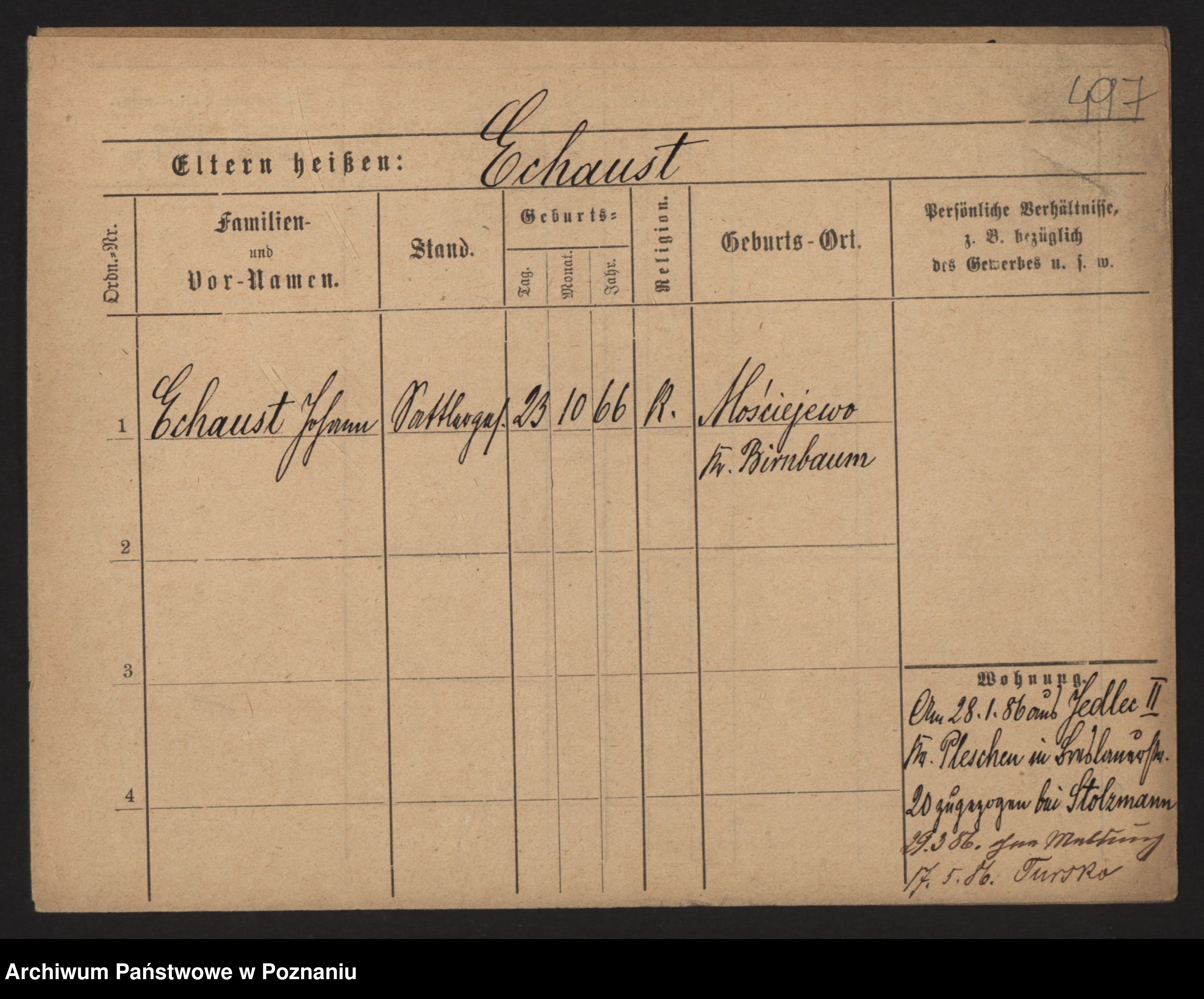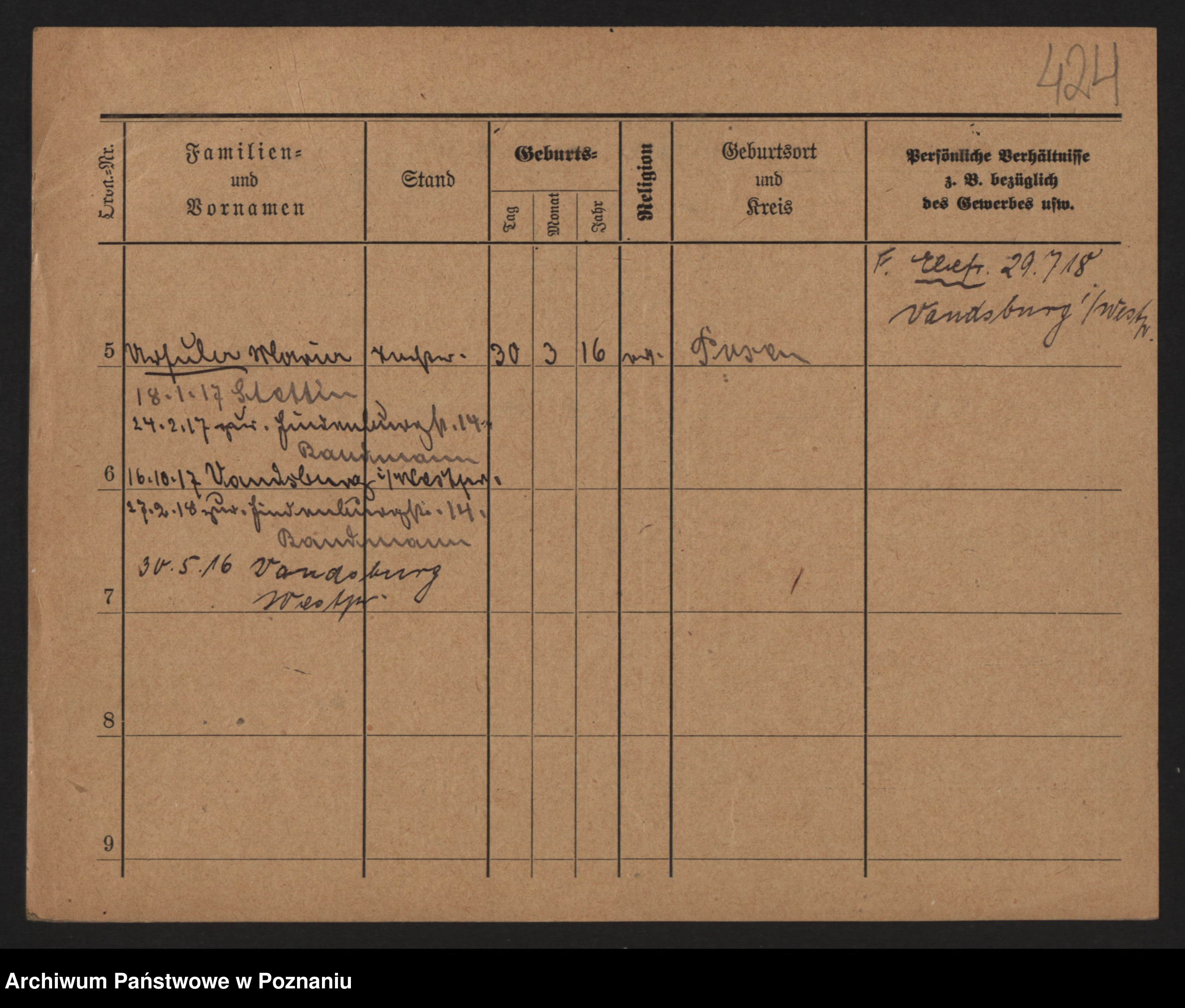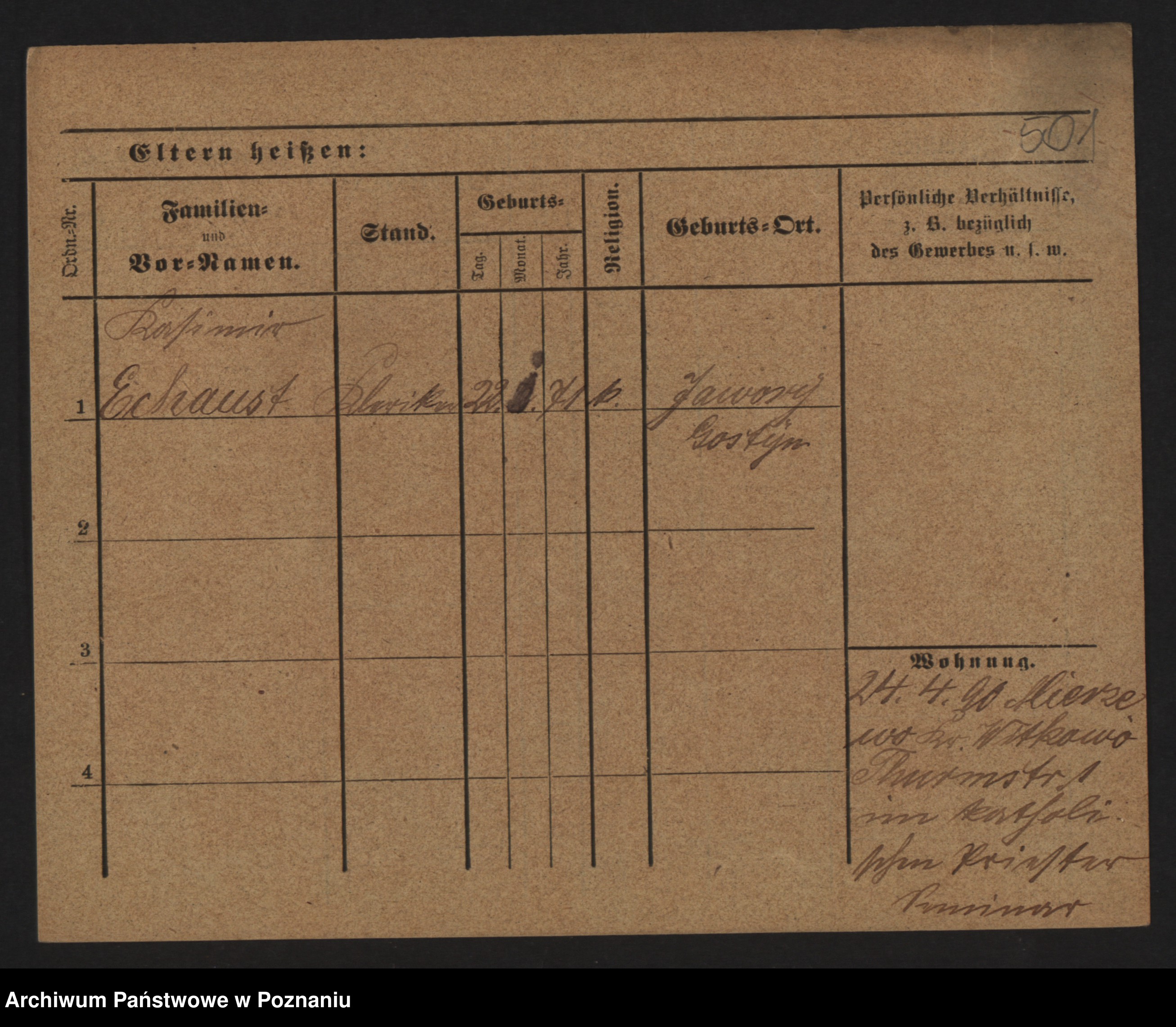 Podgląd karty osobowej dostępny jest po kliknięciu na nazwisko lub ikonkę karty. Można dokonywać powiększenia (ikony na górze) lub przechodzić między kolejnymi skanami (strzałki po bokach).