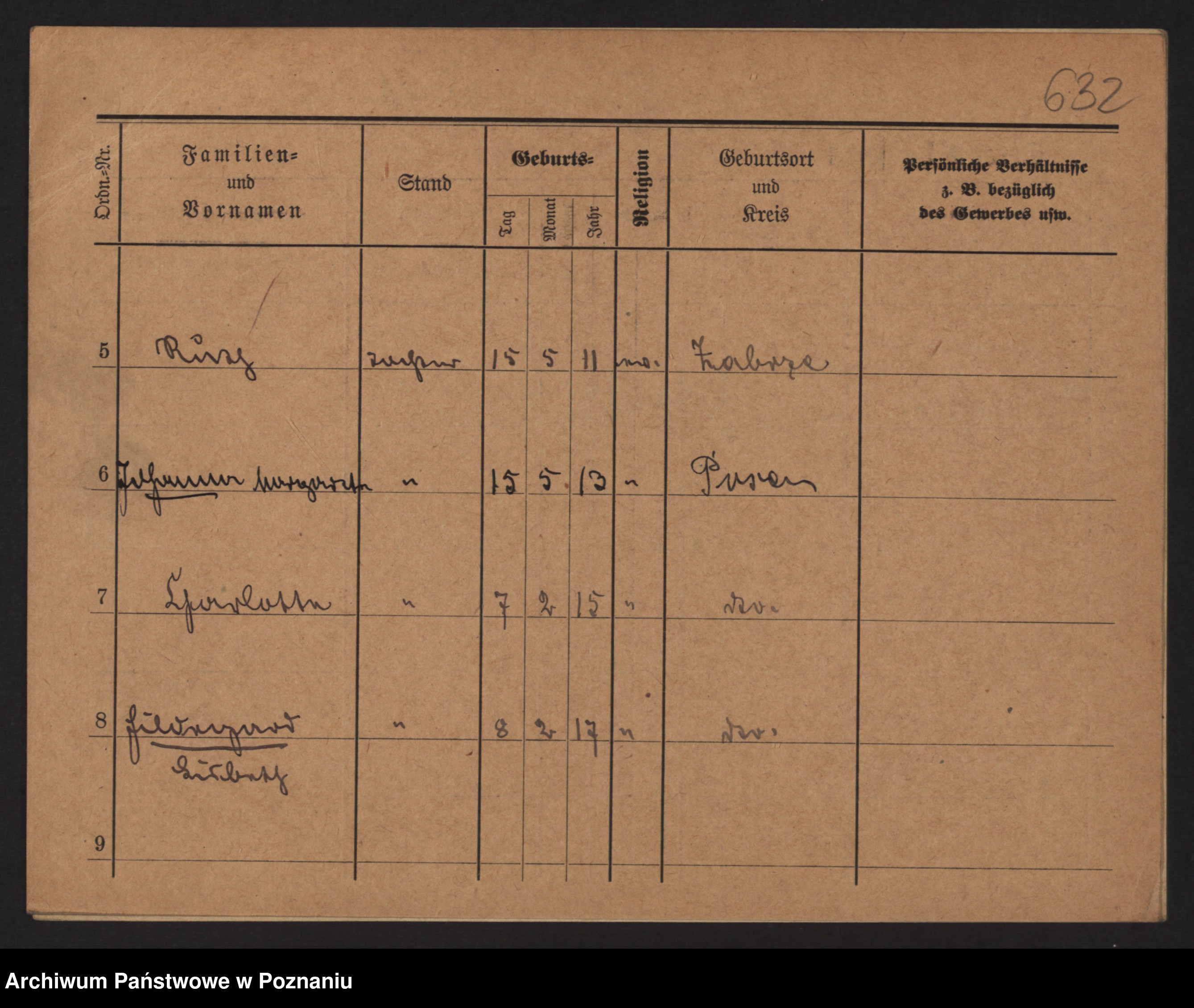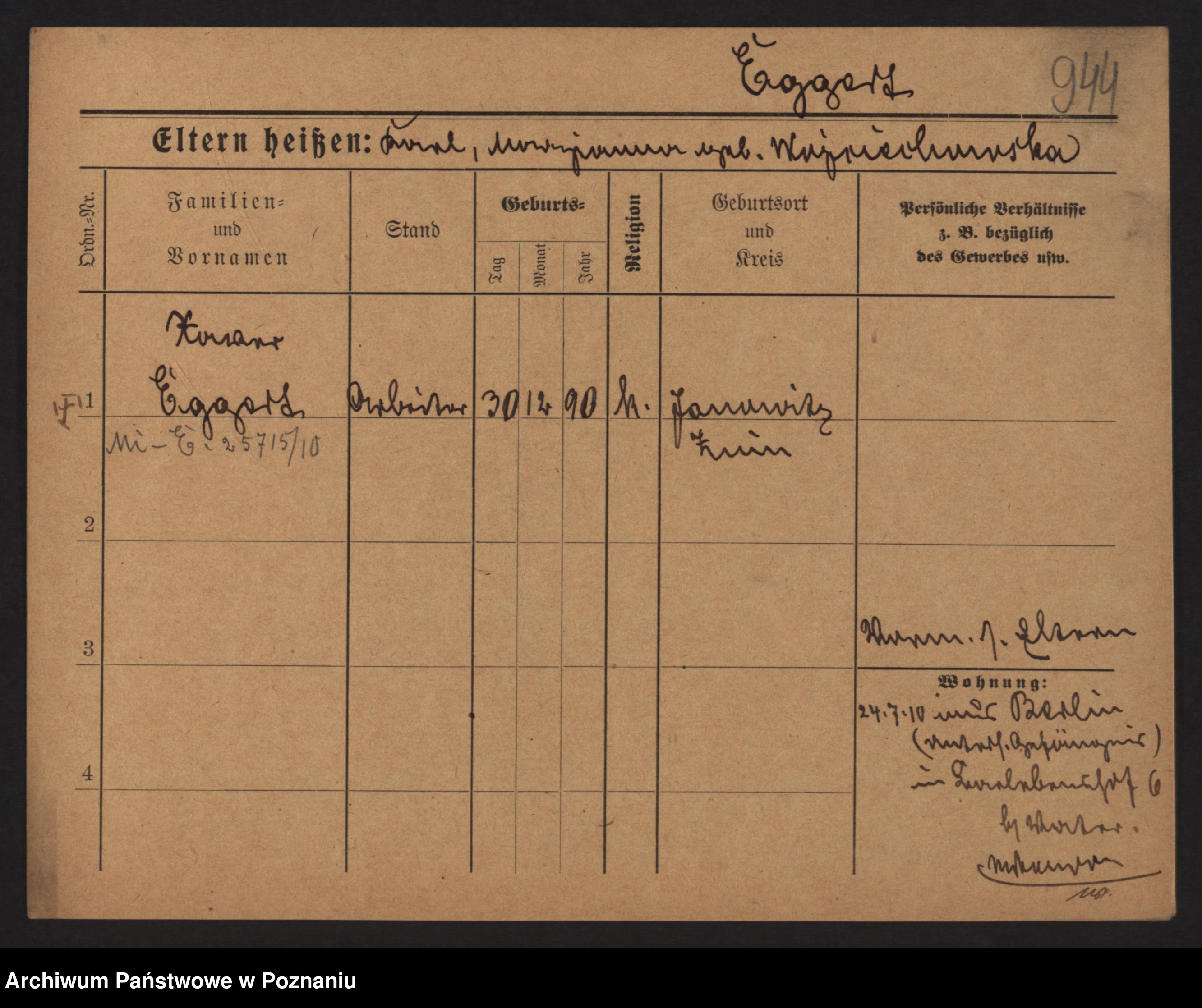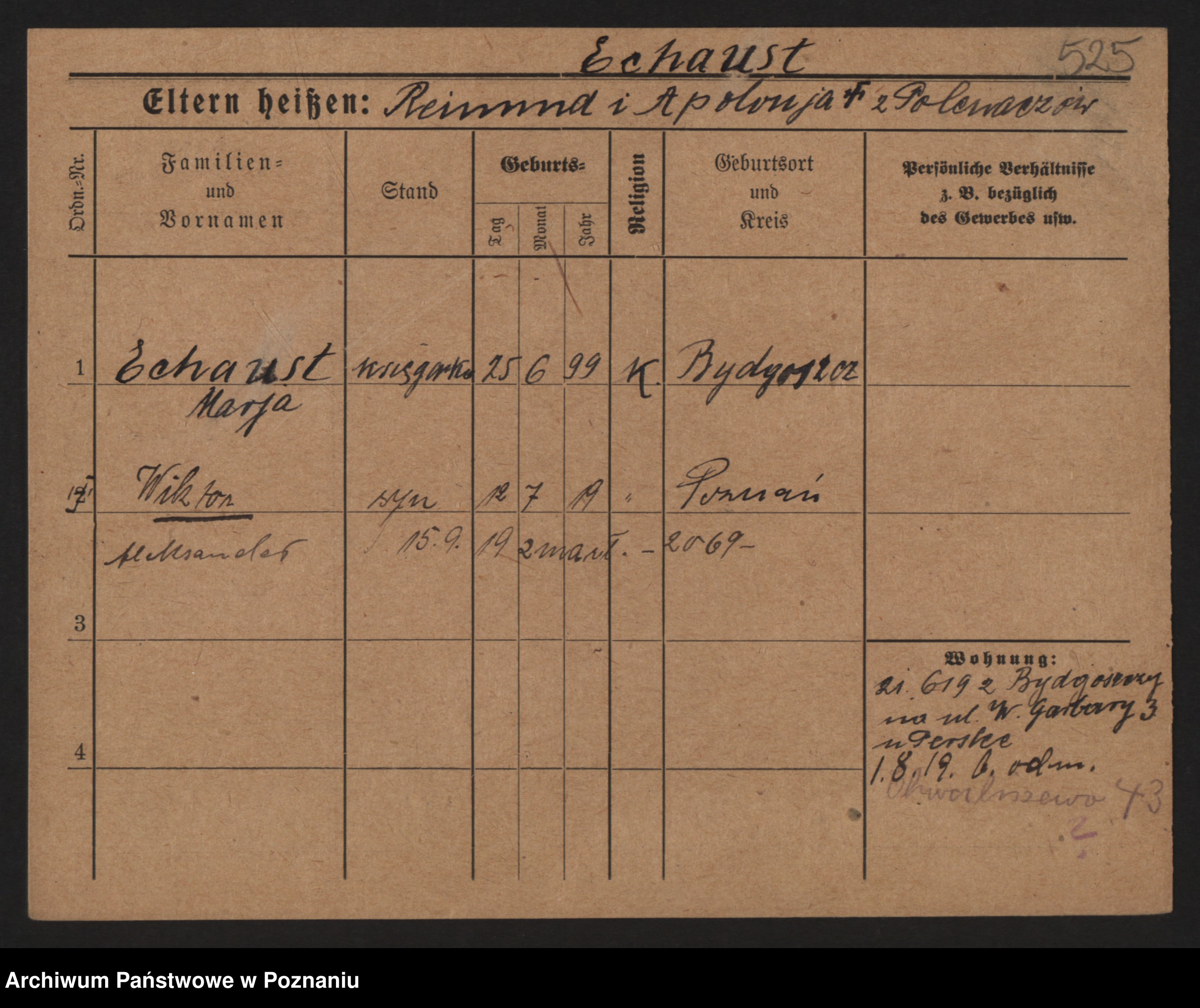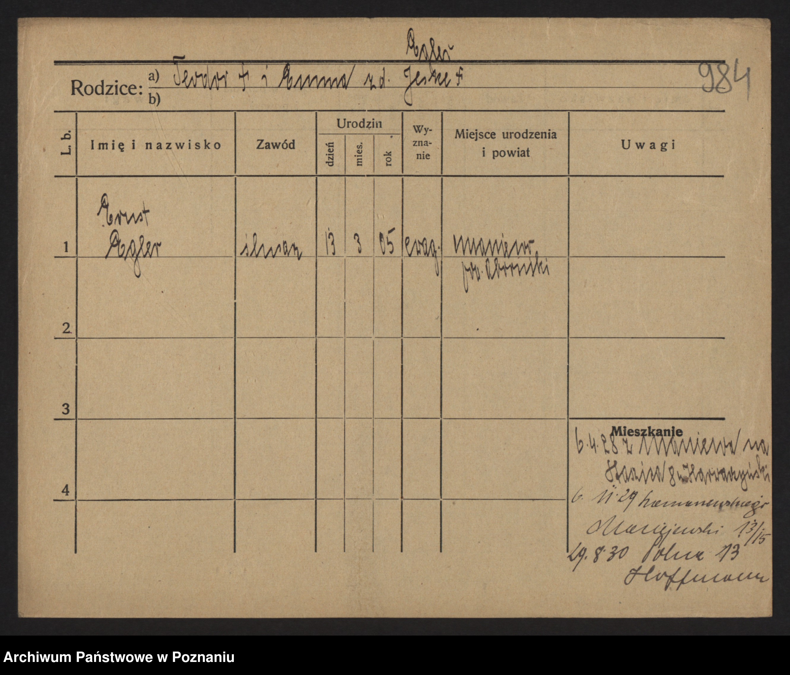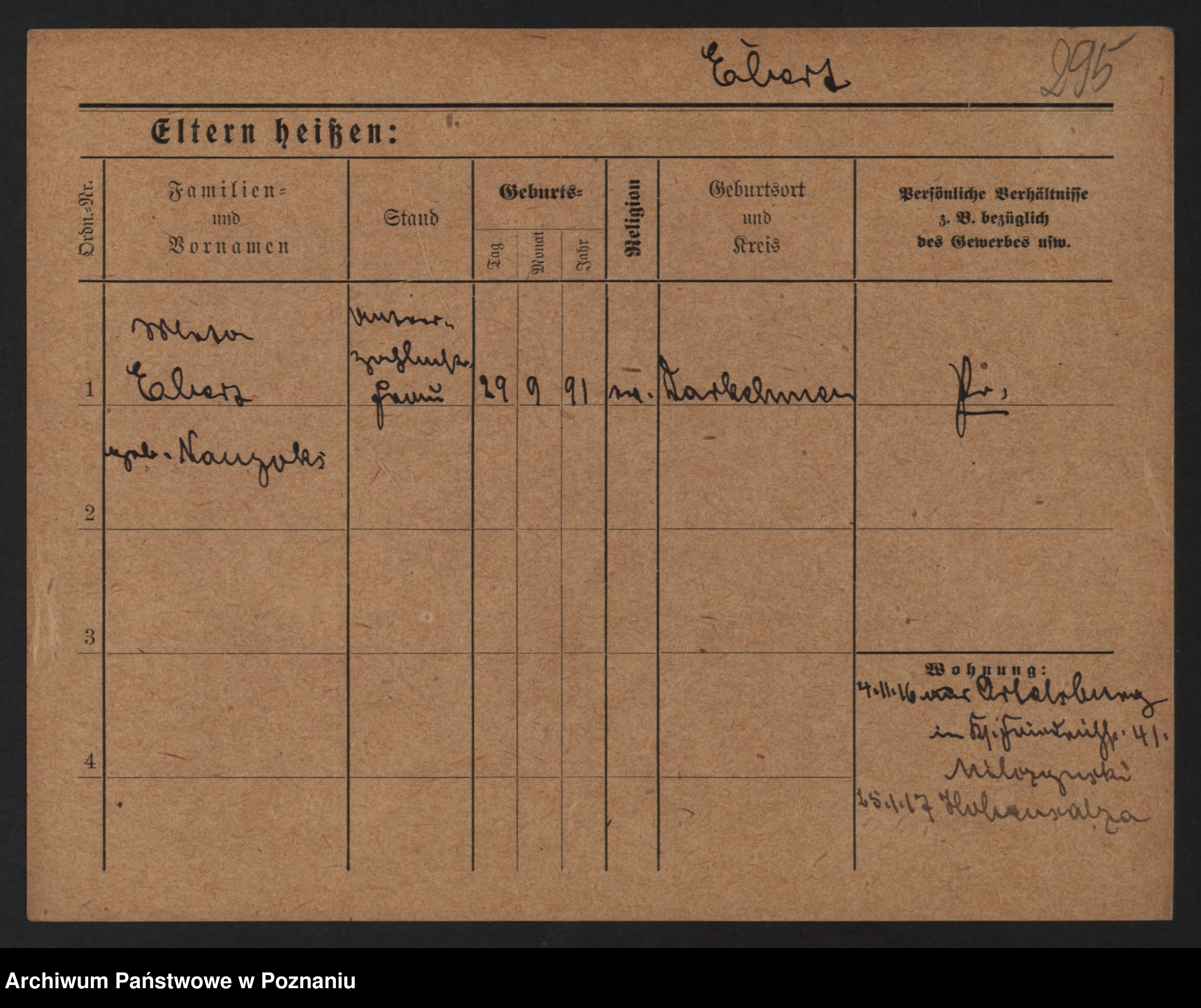 Podgląd karty osobowej dostępny jest po kliknięciu na nazwisko lub ikonkę karty. Można dokonywać powiększenia (ikony na górze) lub przechodzić między kolejnymi skanami (strzałki po bokach).
