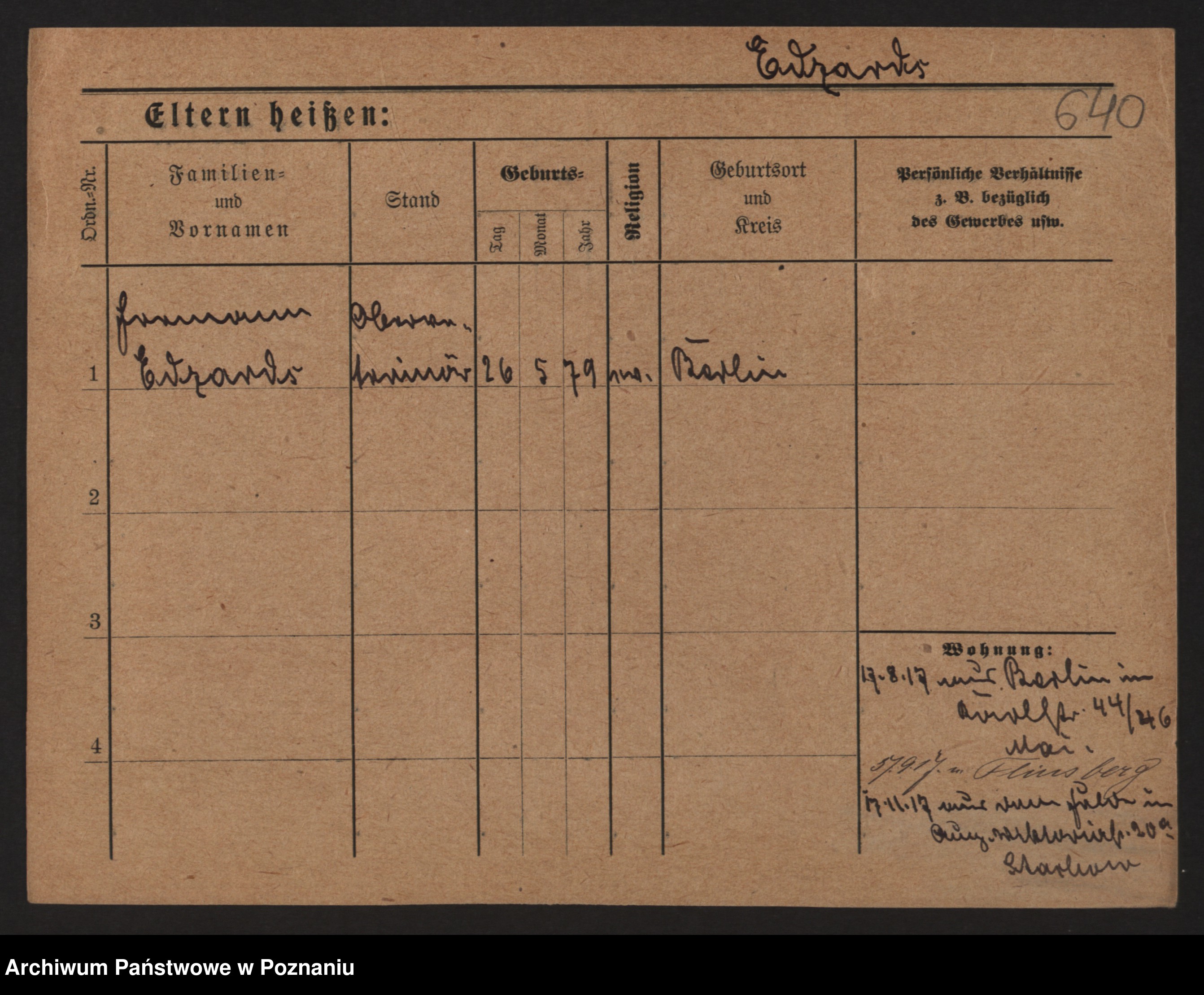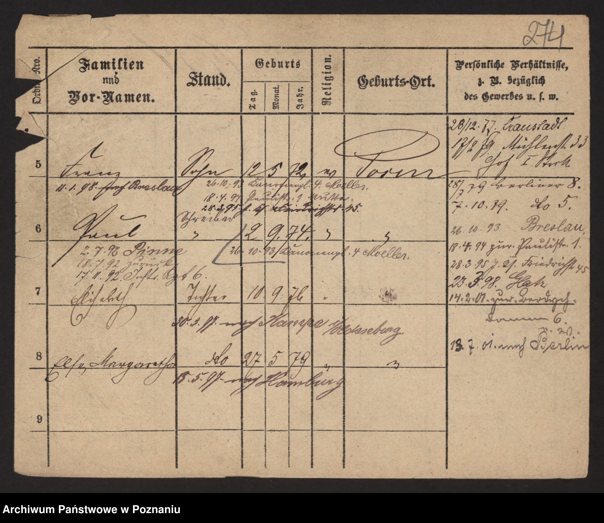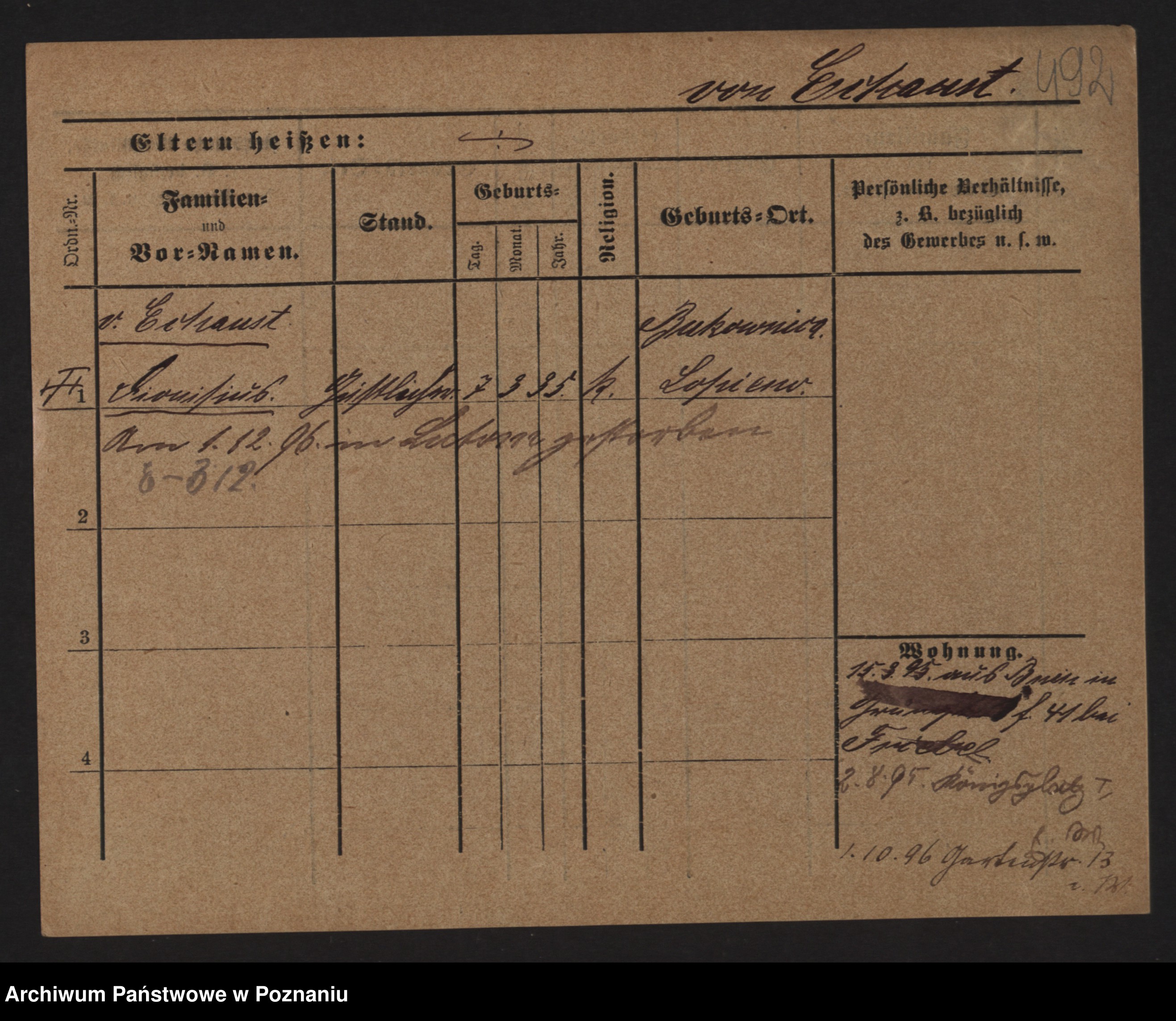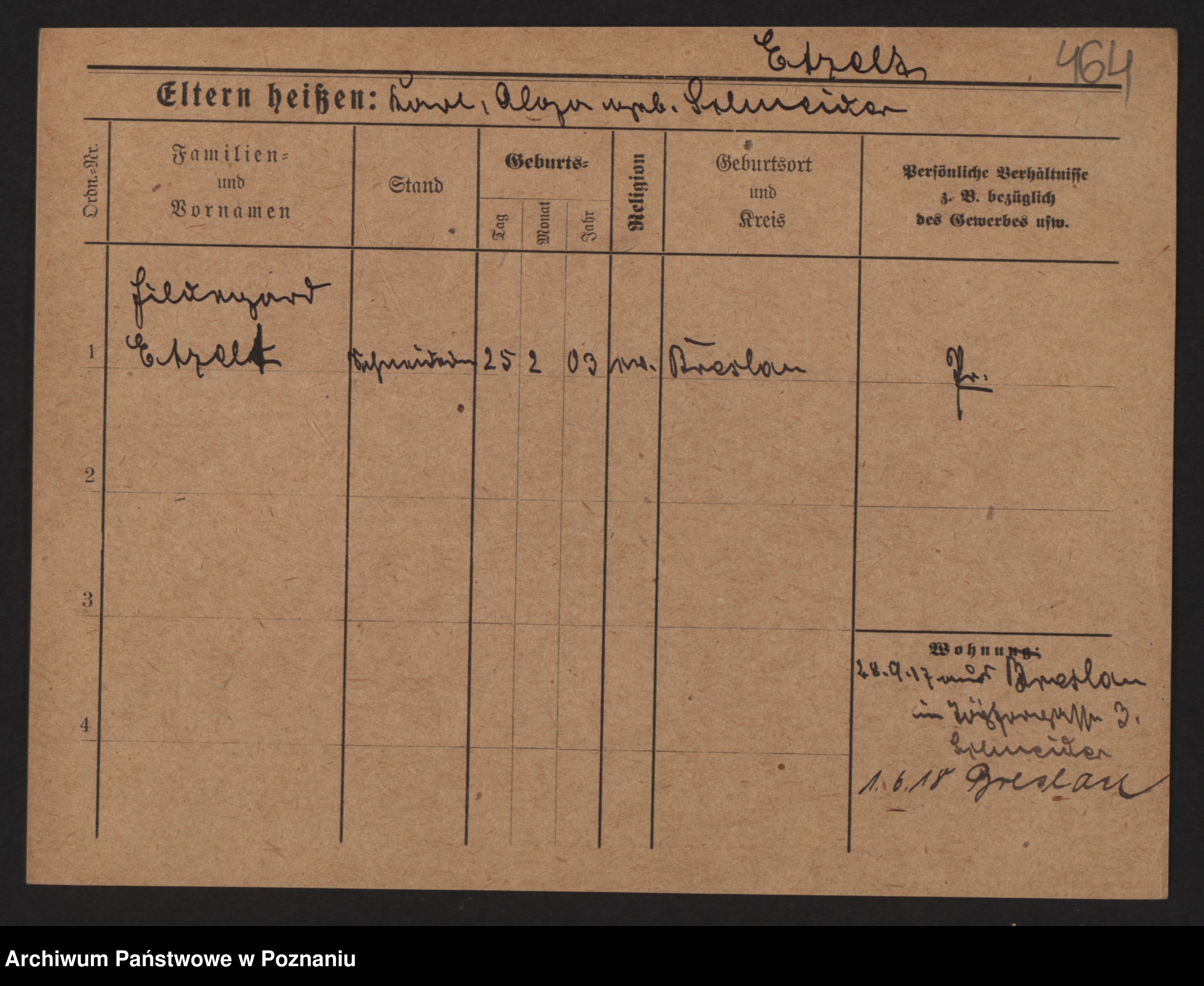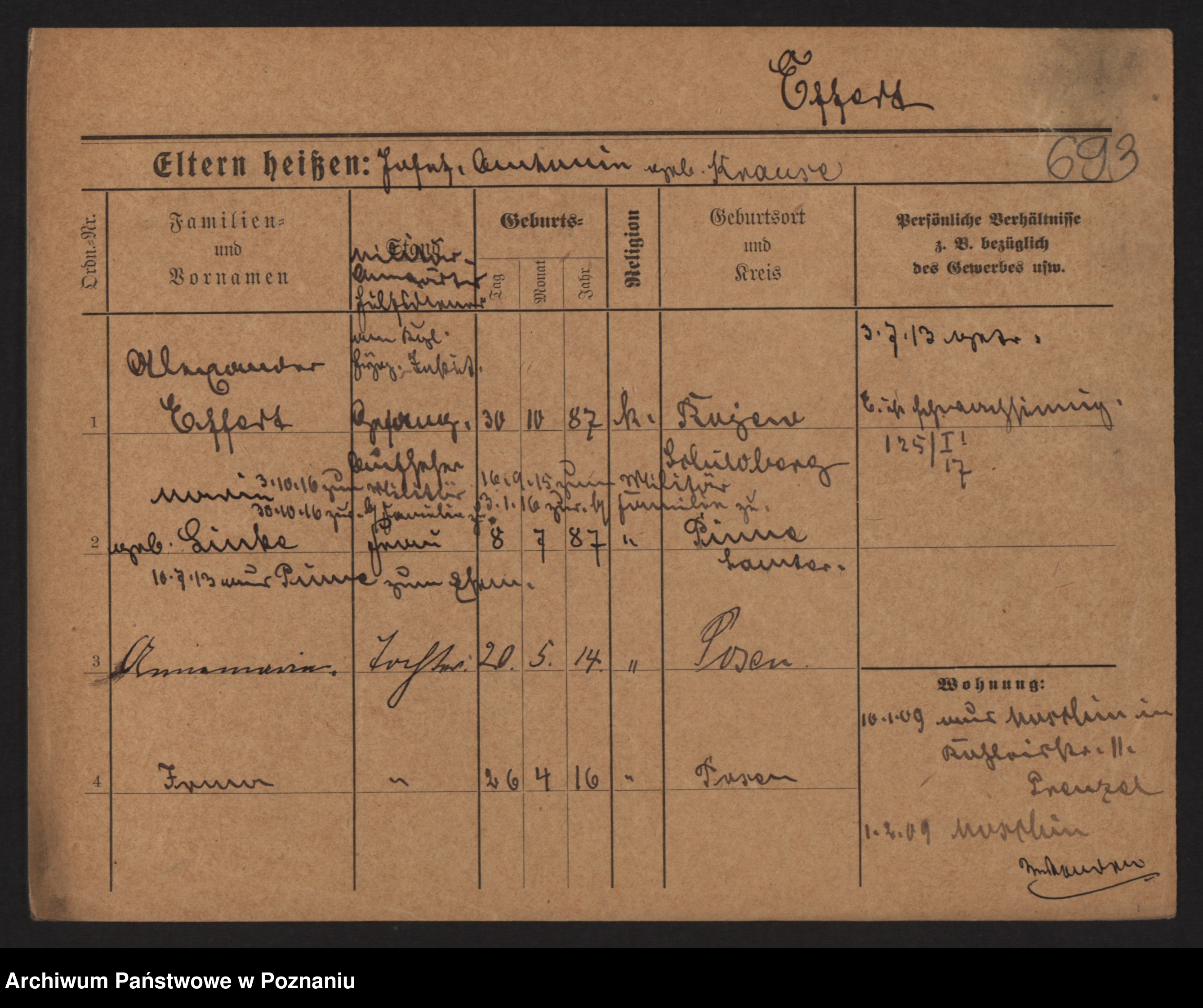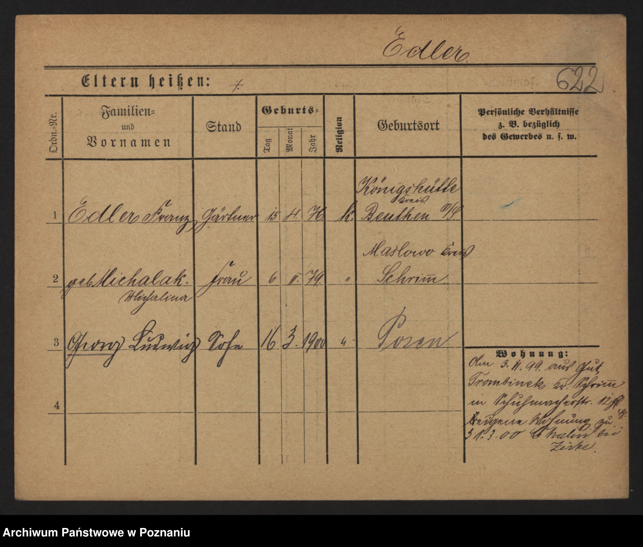 Podgląd karty osobowej dostępny jest po kliknięciu na nazwisko lub ikonkę karty. Można dokonywać powiększenia (ikony na górze) lub przechodzić między kolejnymi skanami (strzałki po bokach).