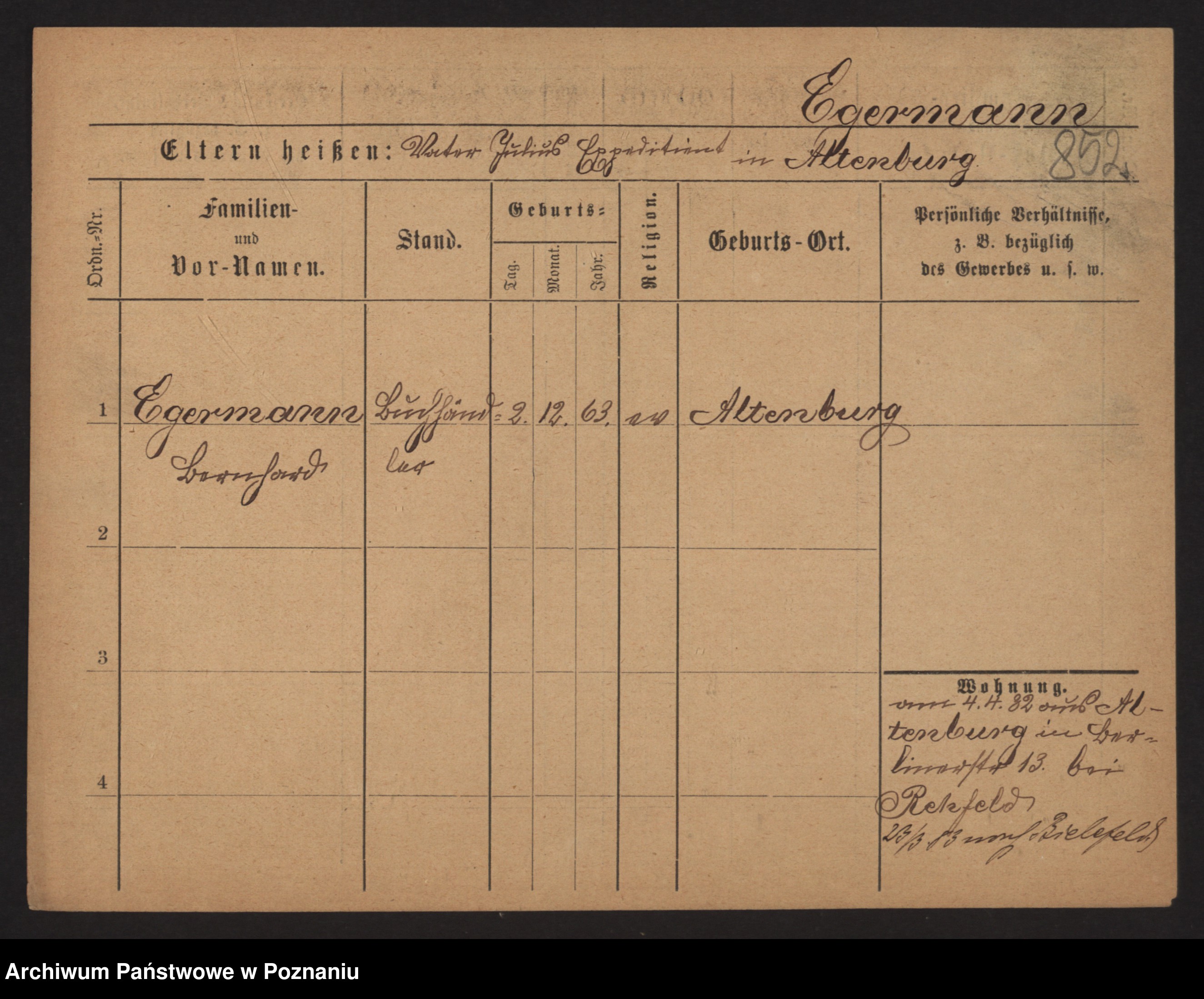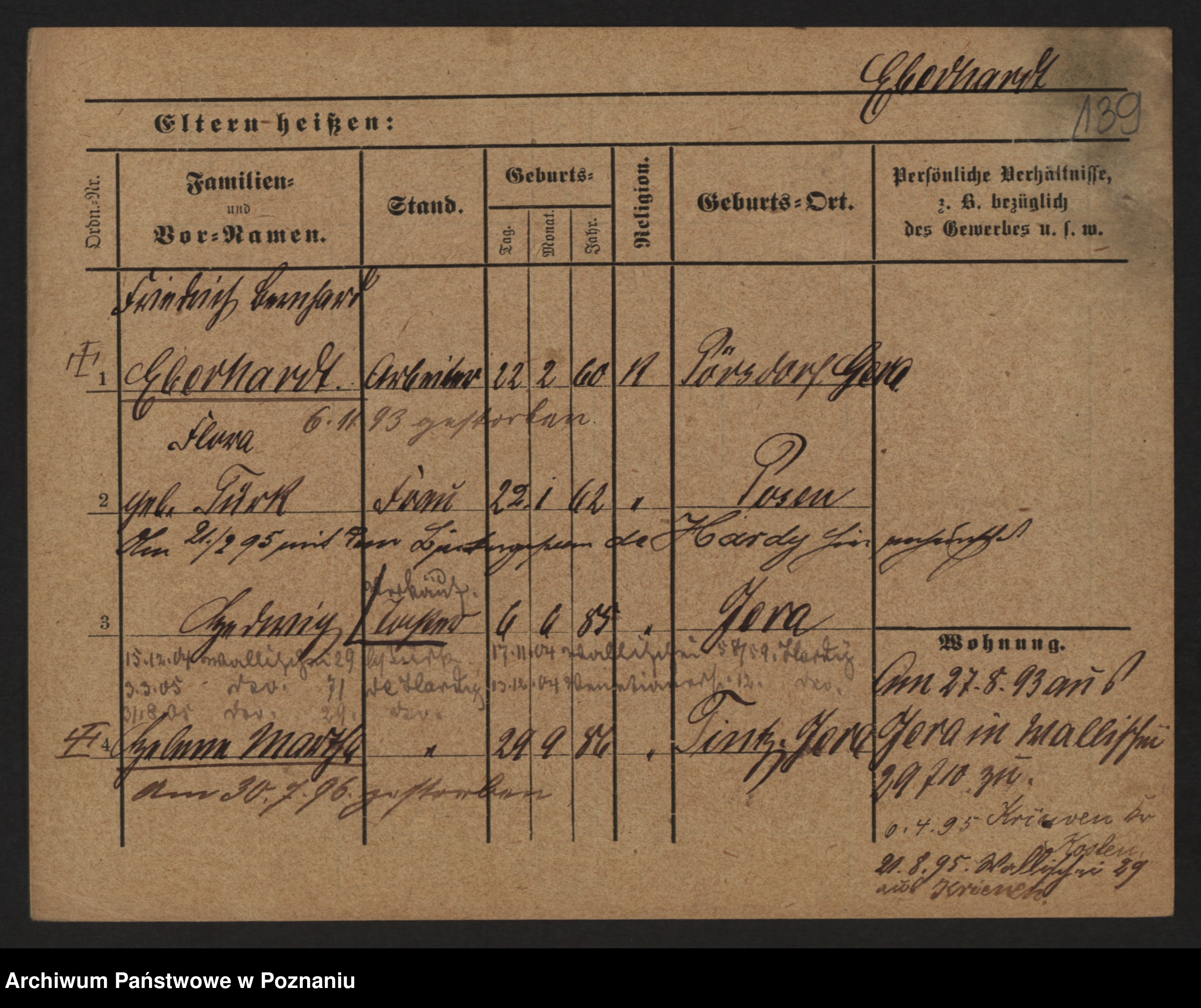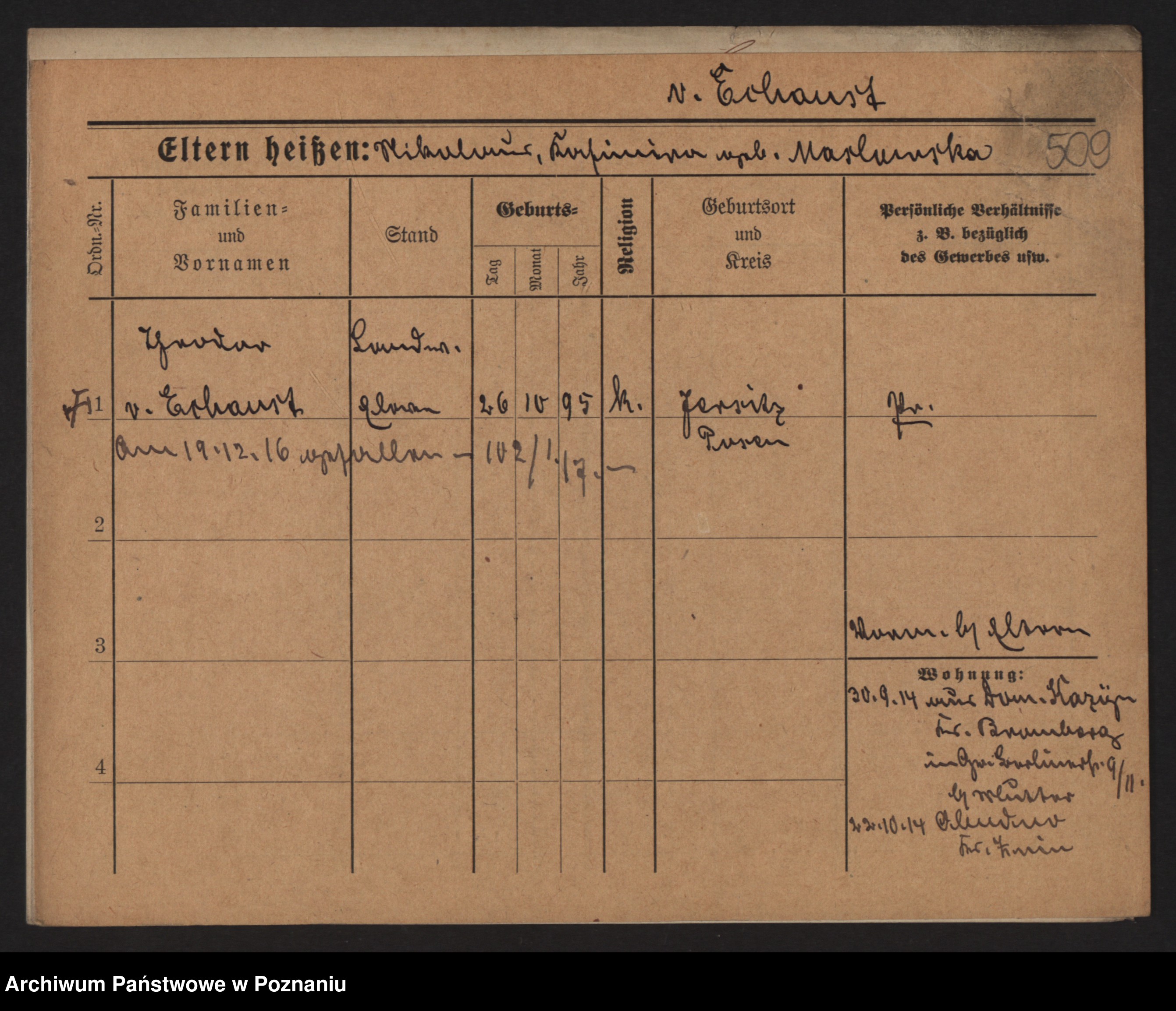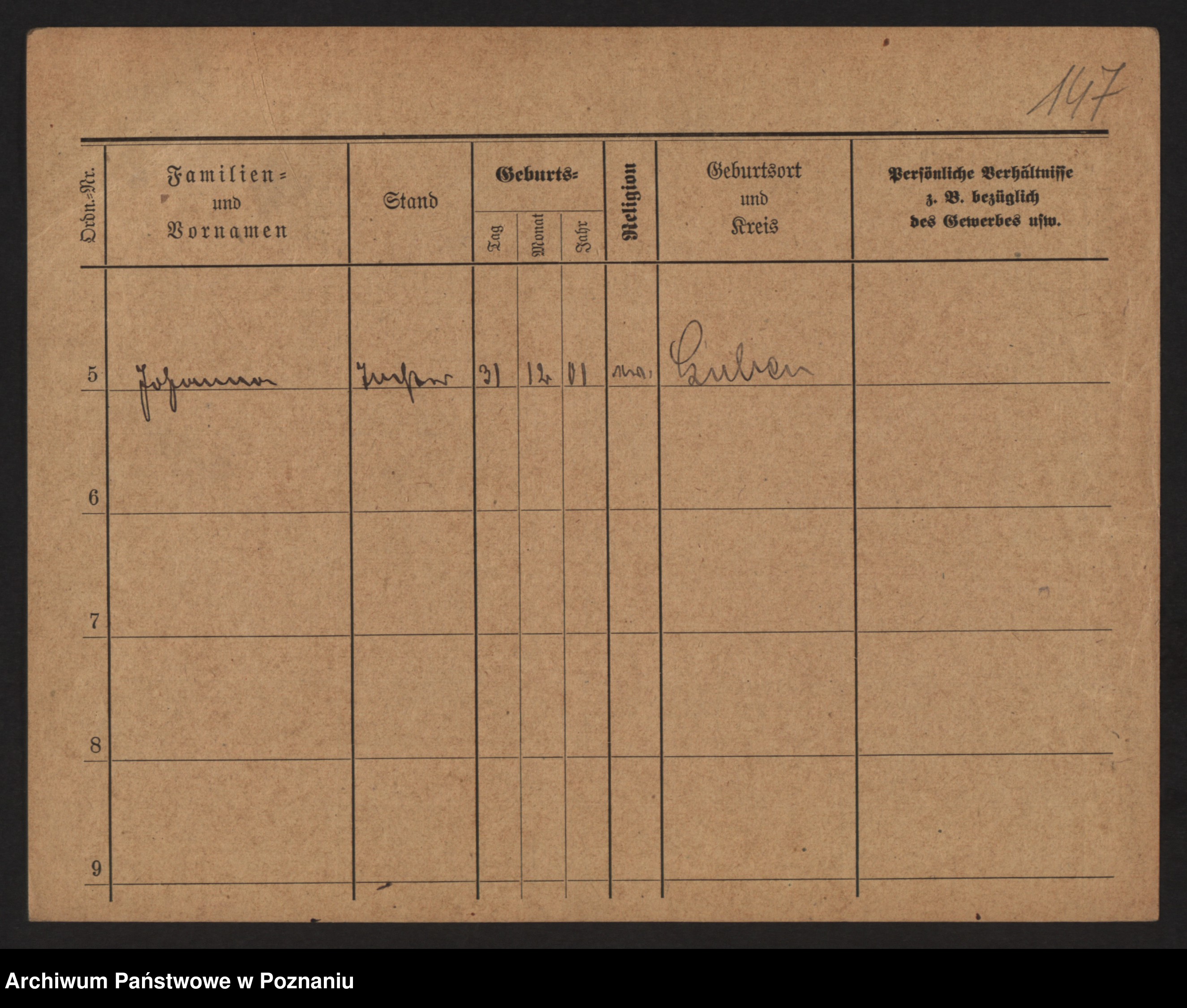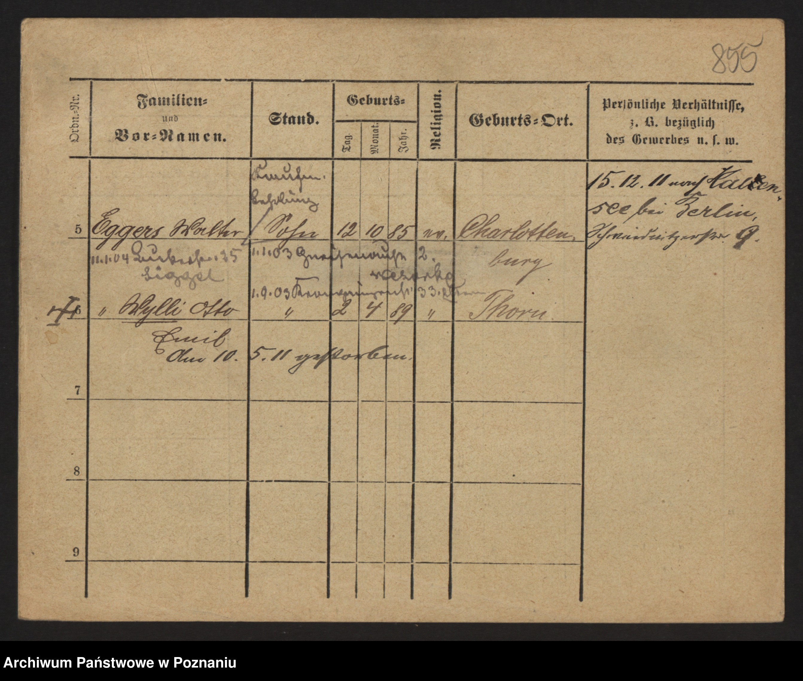 Podgląd karty osobowej dostępny jest po kliknięciu na nazwisko lub ikonkę karty. Można dokonywać powiększenia (ikony na górze) lub przechodzić między kolejnymi skanami (strzałki po bokach).