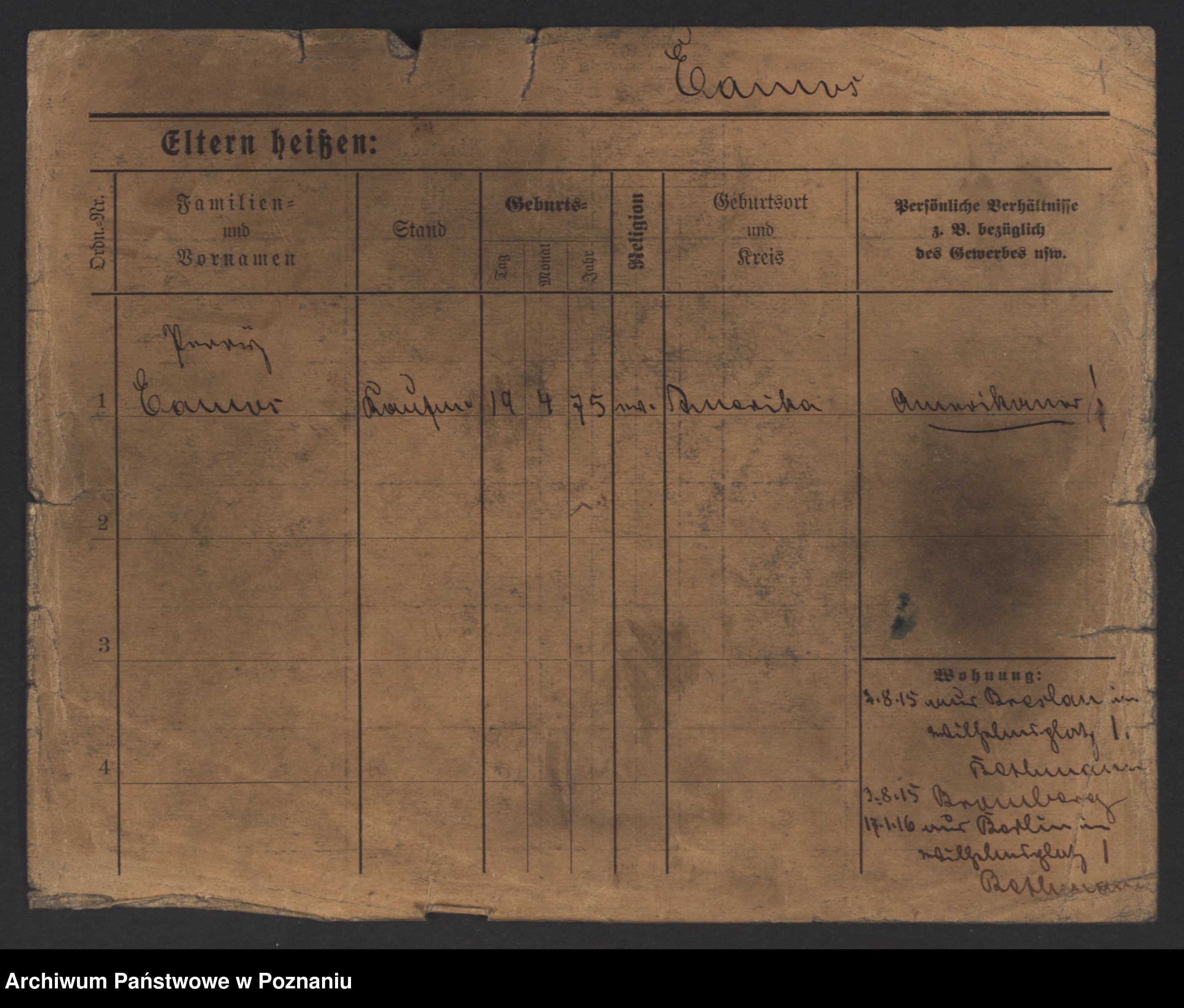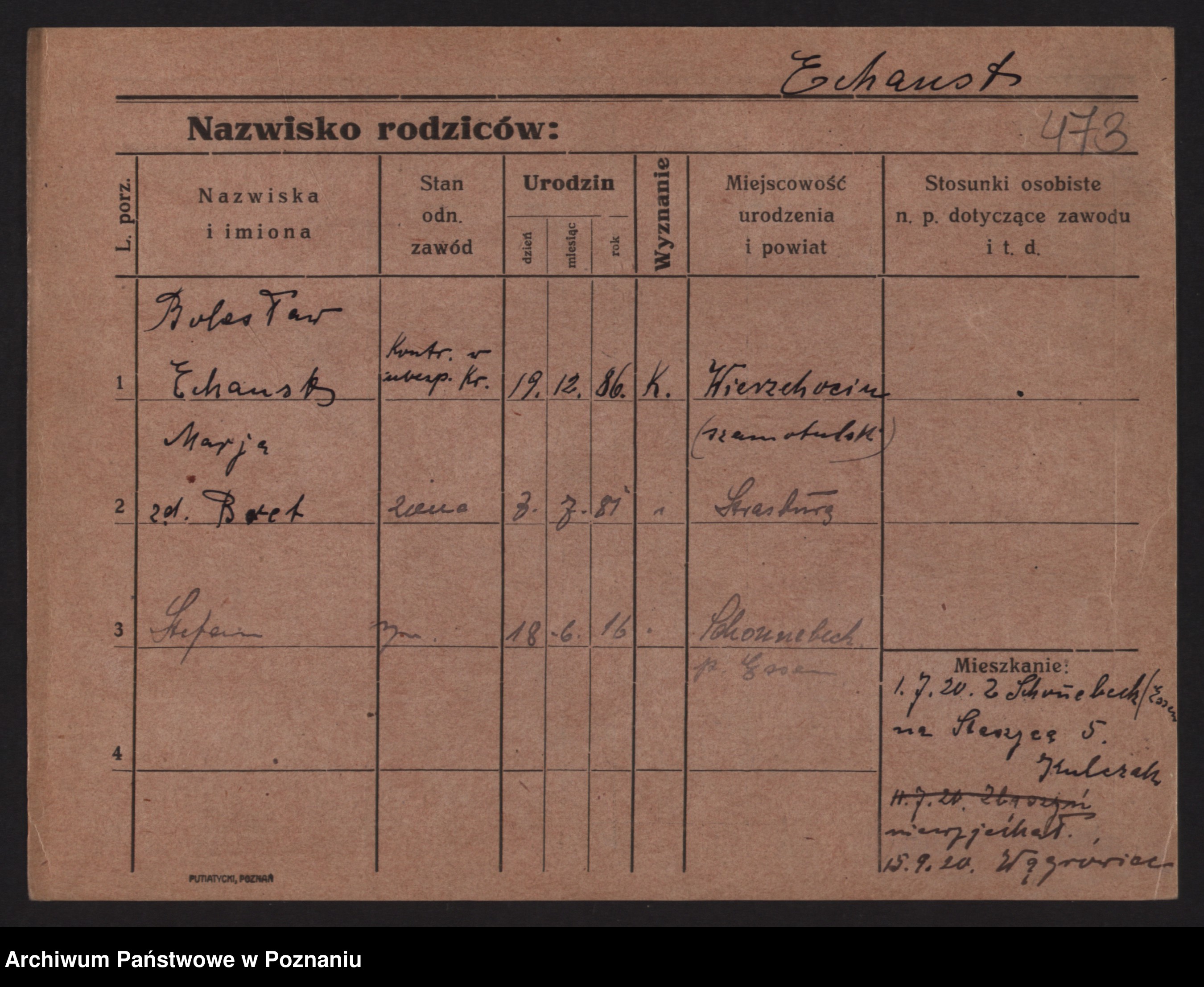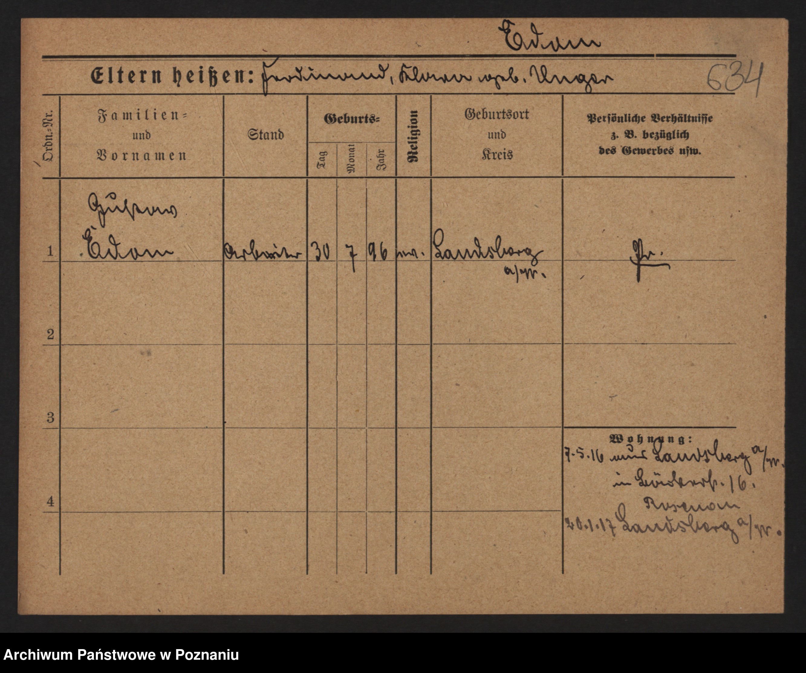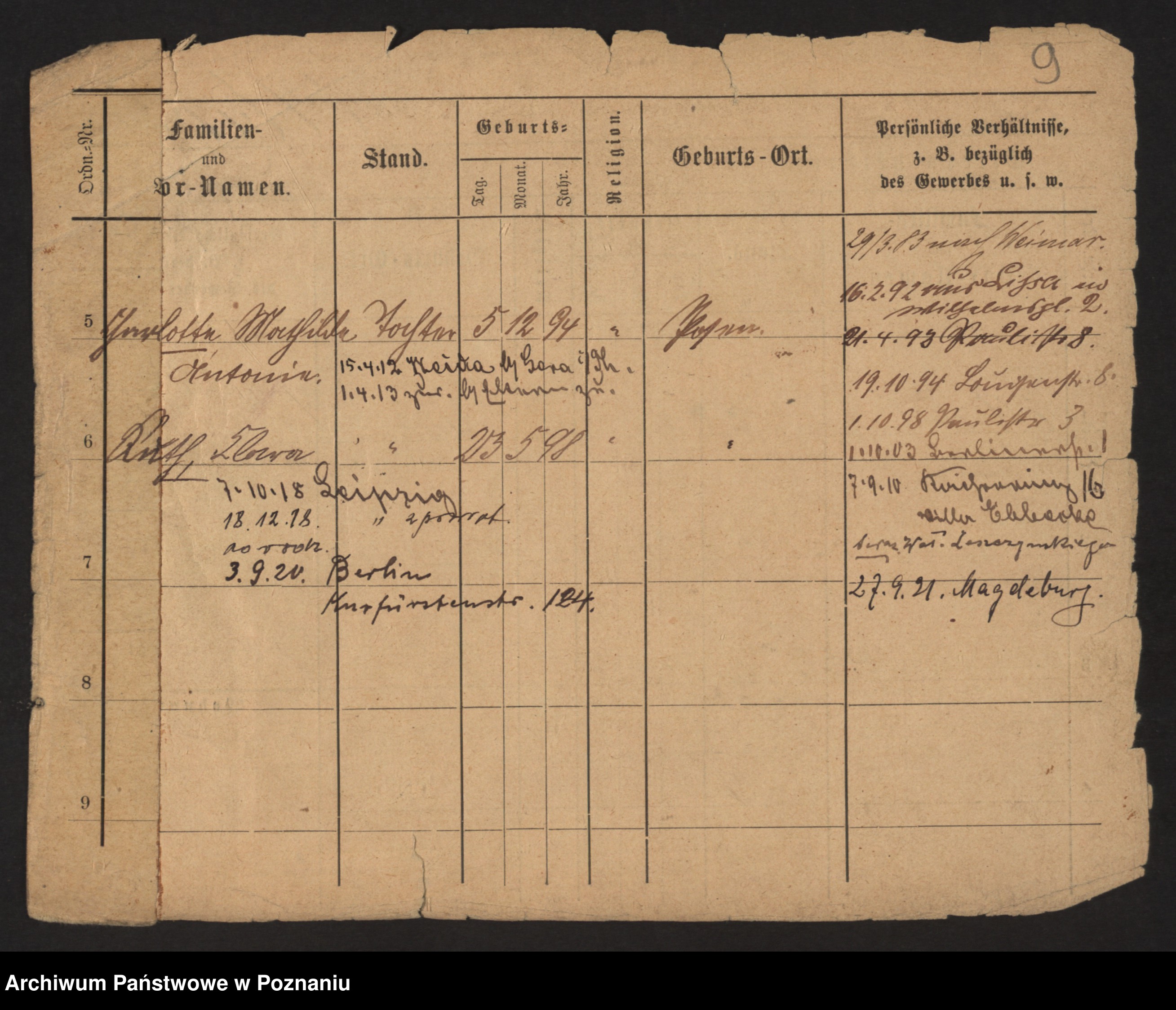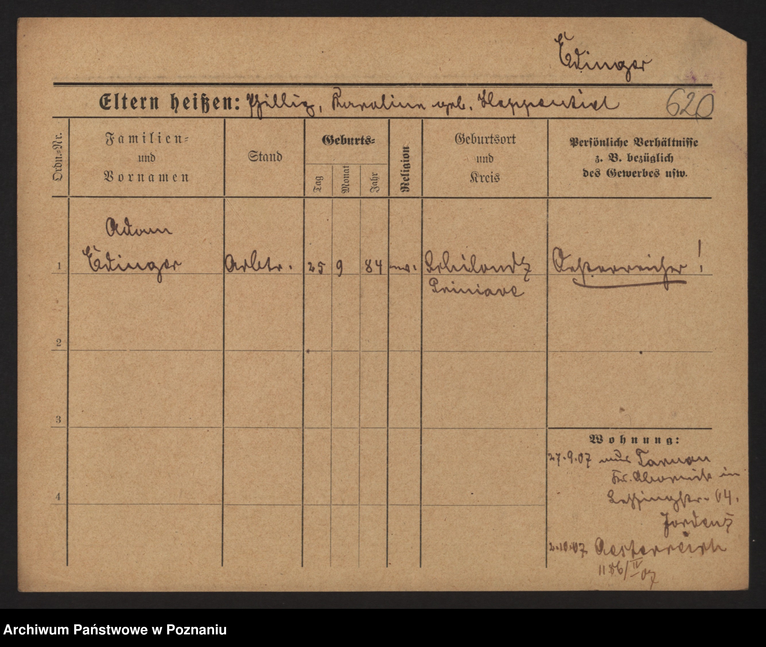 Podgląd karty osobowej dostępny jest po kliknięciu na nazwisko lub ikonkę karty. Można dokonywać powiększenia (ikony na górze) lub przechodzić między kolejnymi skanami (strzałki po bokach).