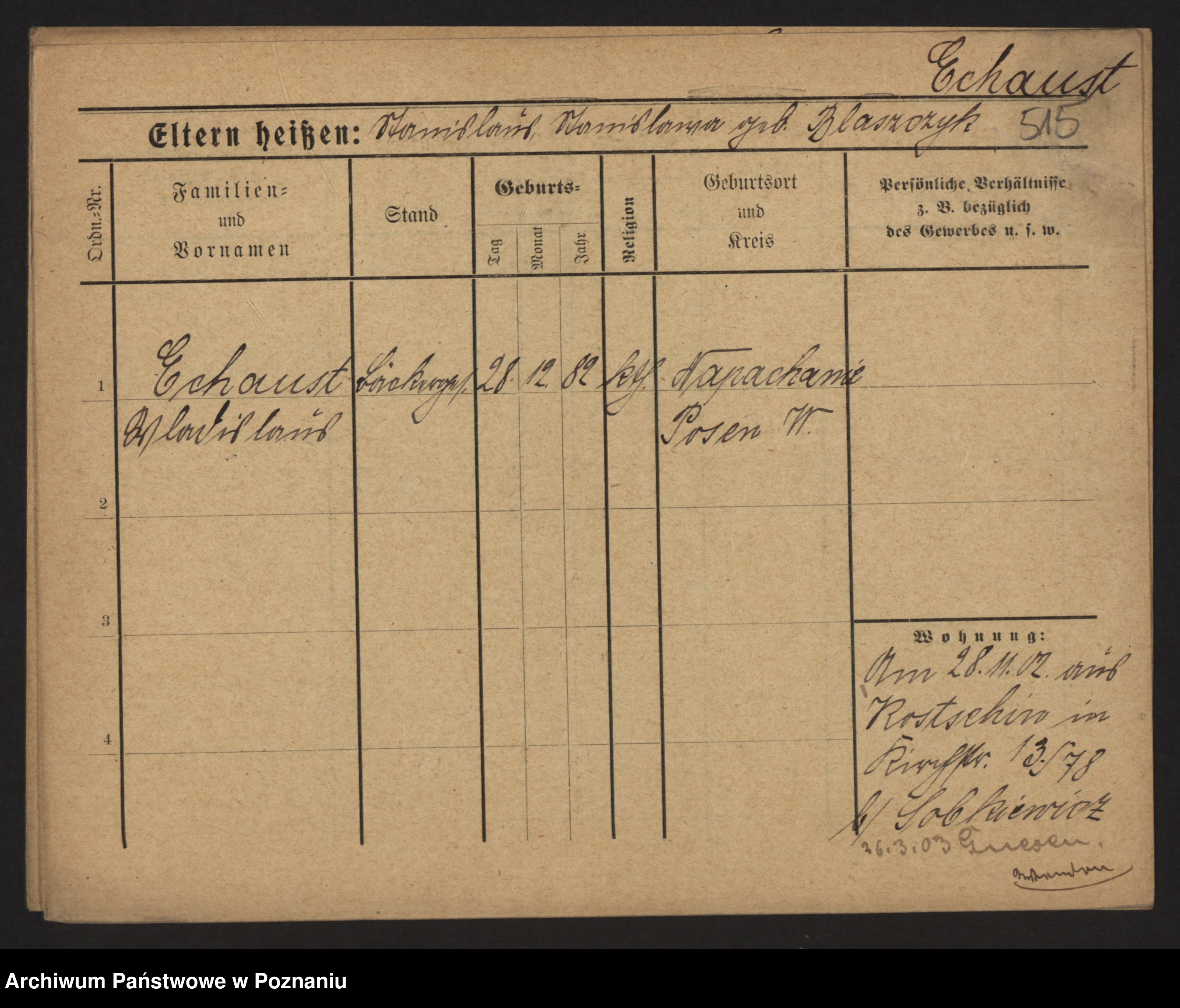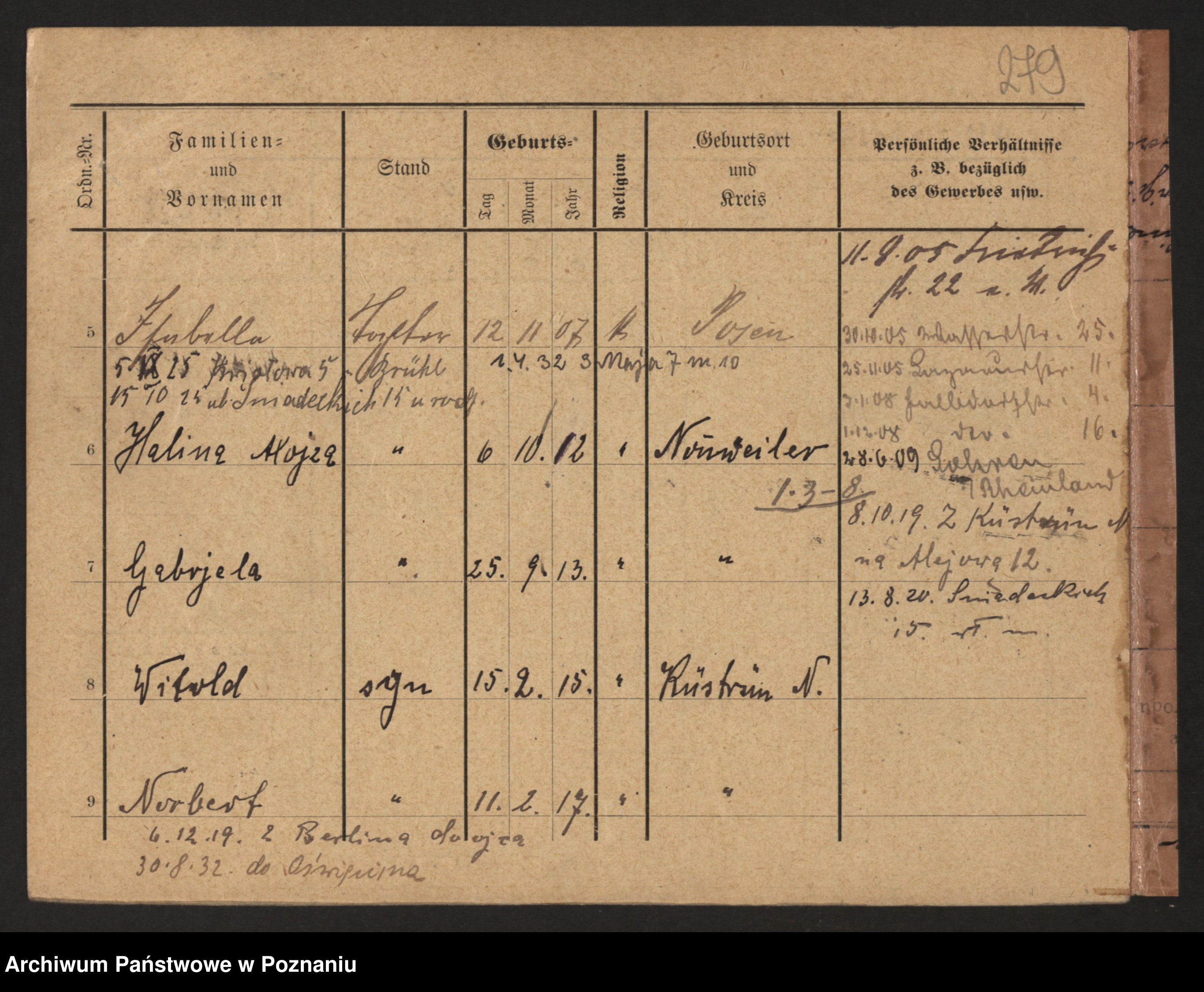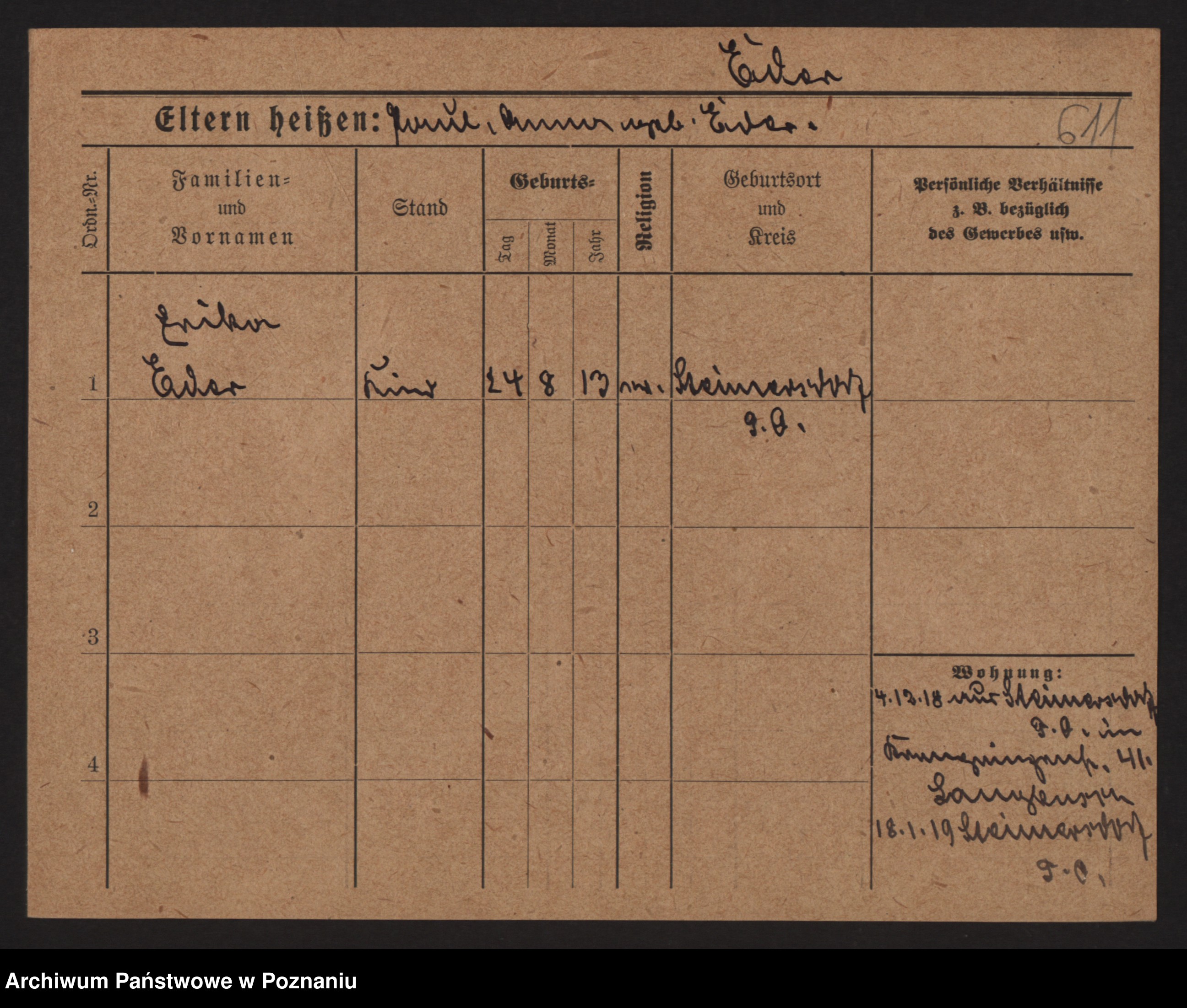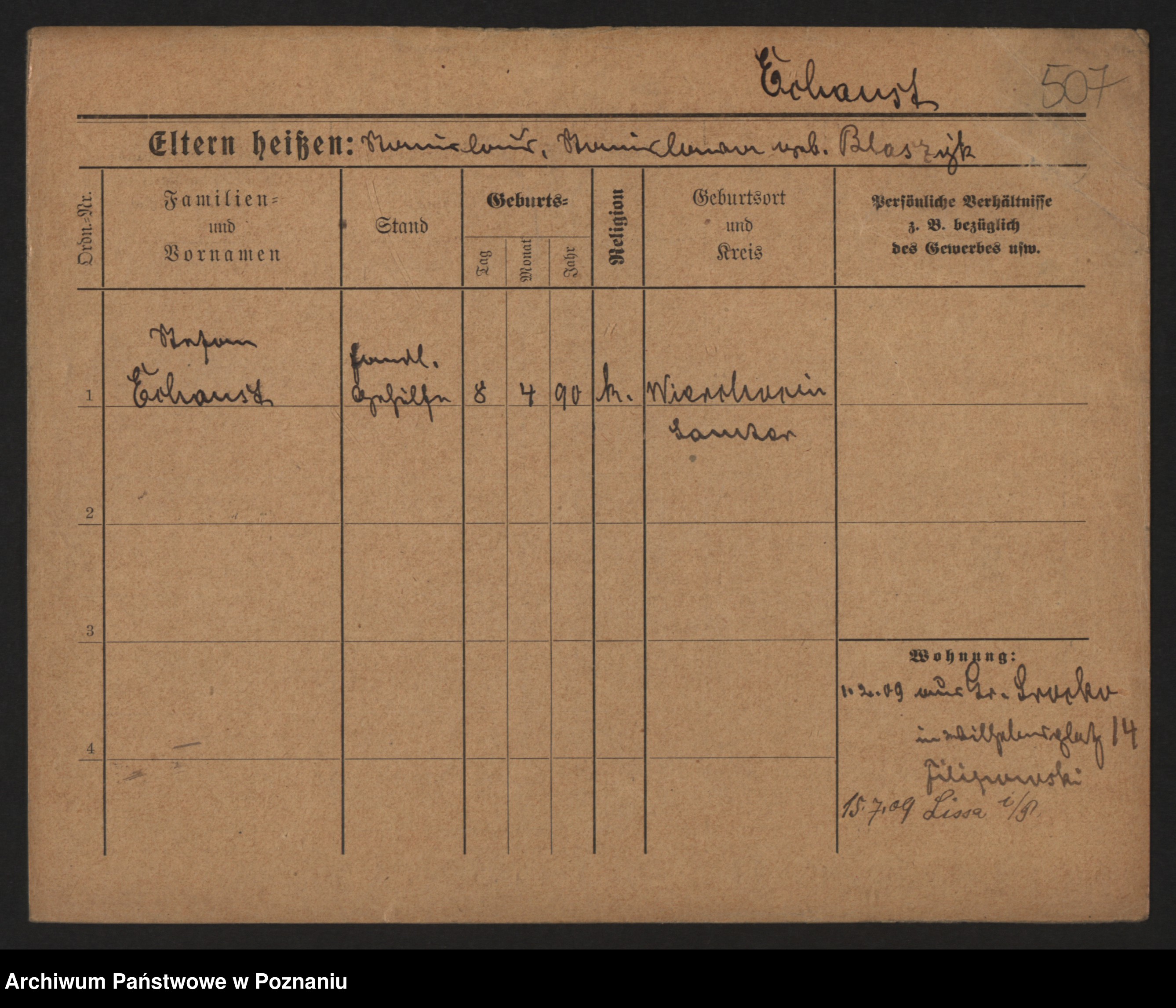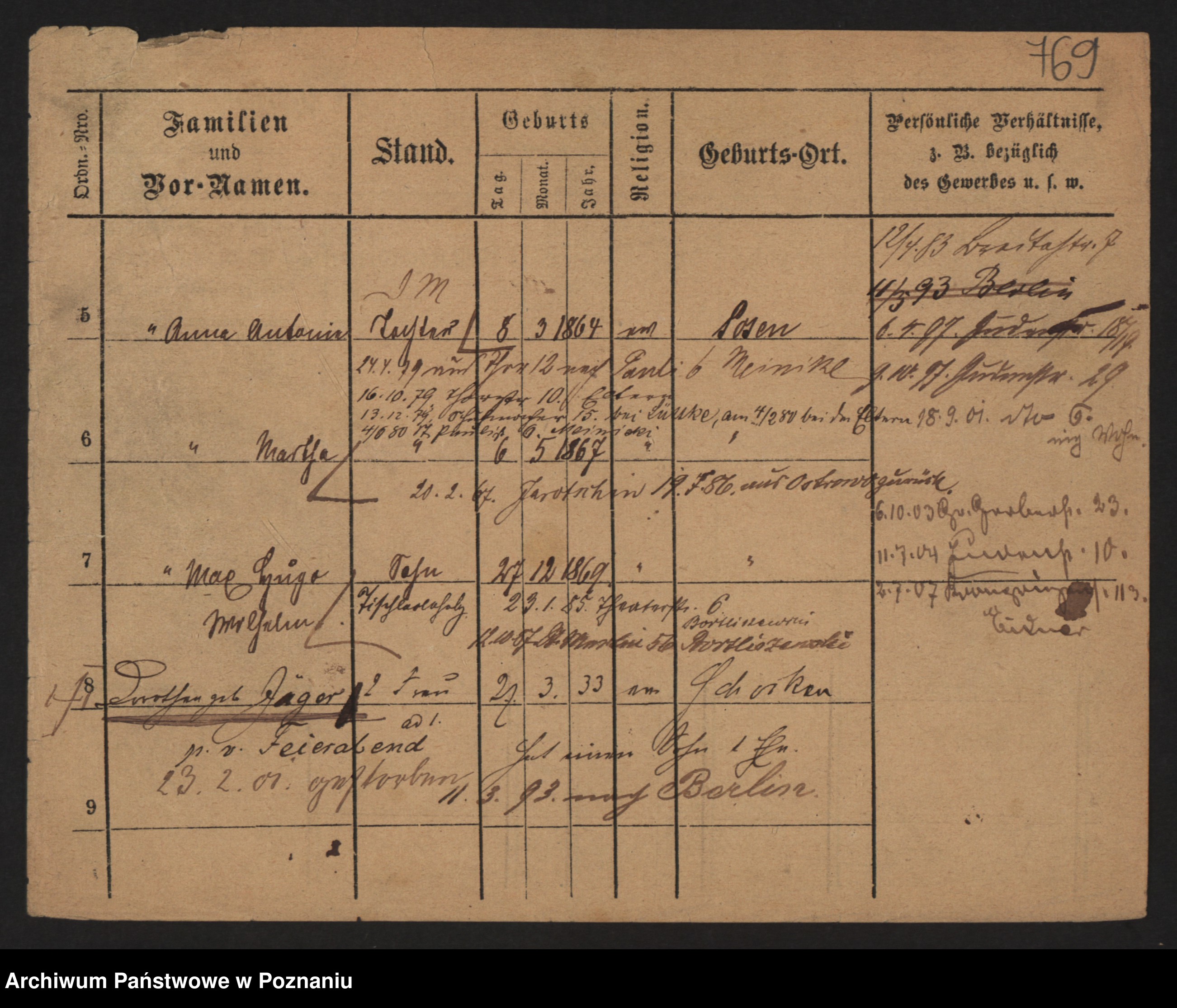 Podgląd karty osobowej dostępny jest po kliknięciu na nazwisko lub ikonkę karty. Można dokonywać powiększenia (ikony na górze) lub przechodzić między kolejnymi skanami (strzałki po bokach).