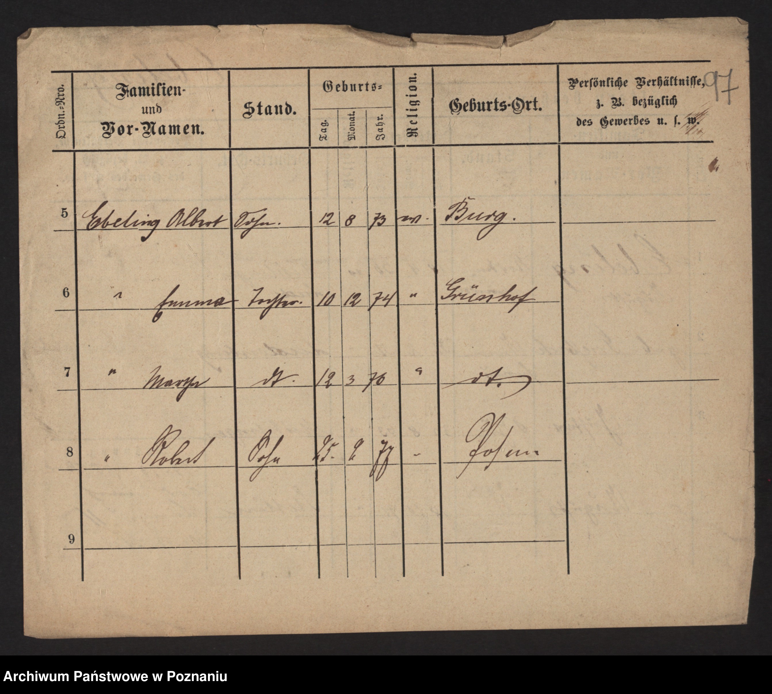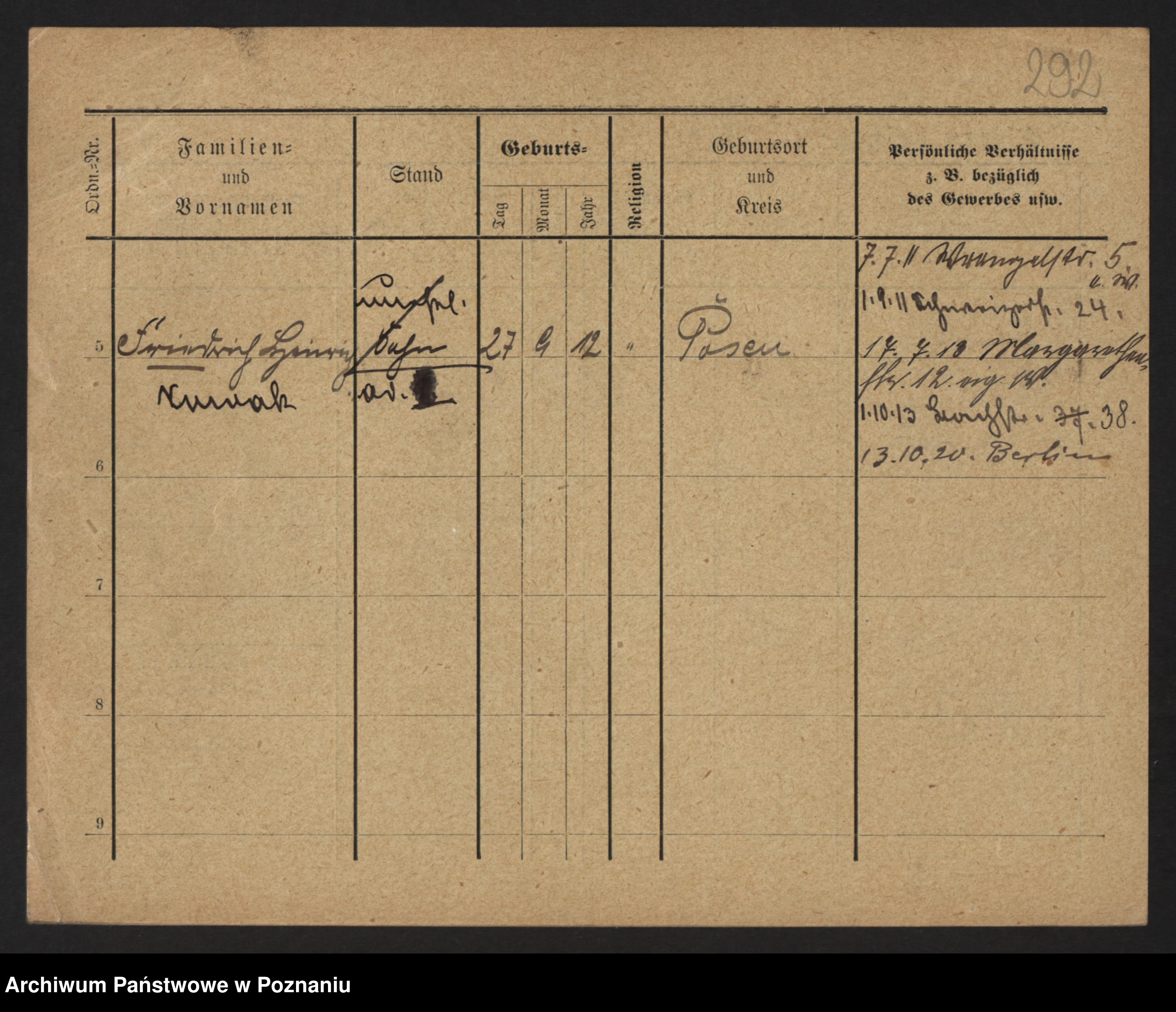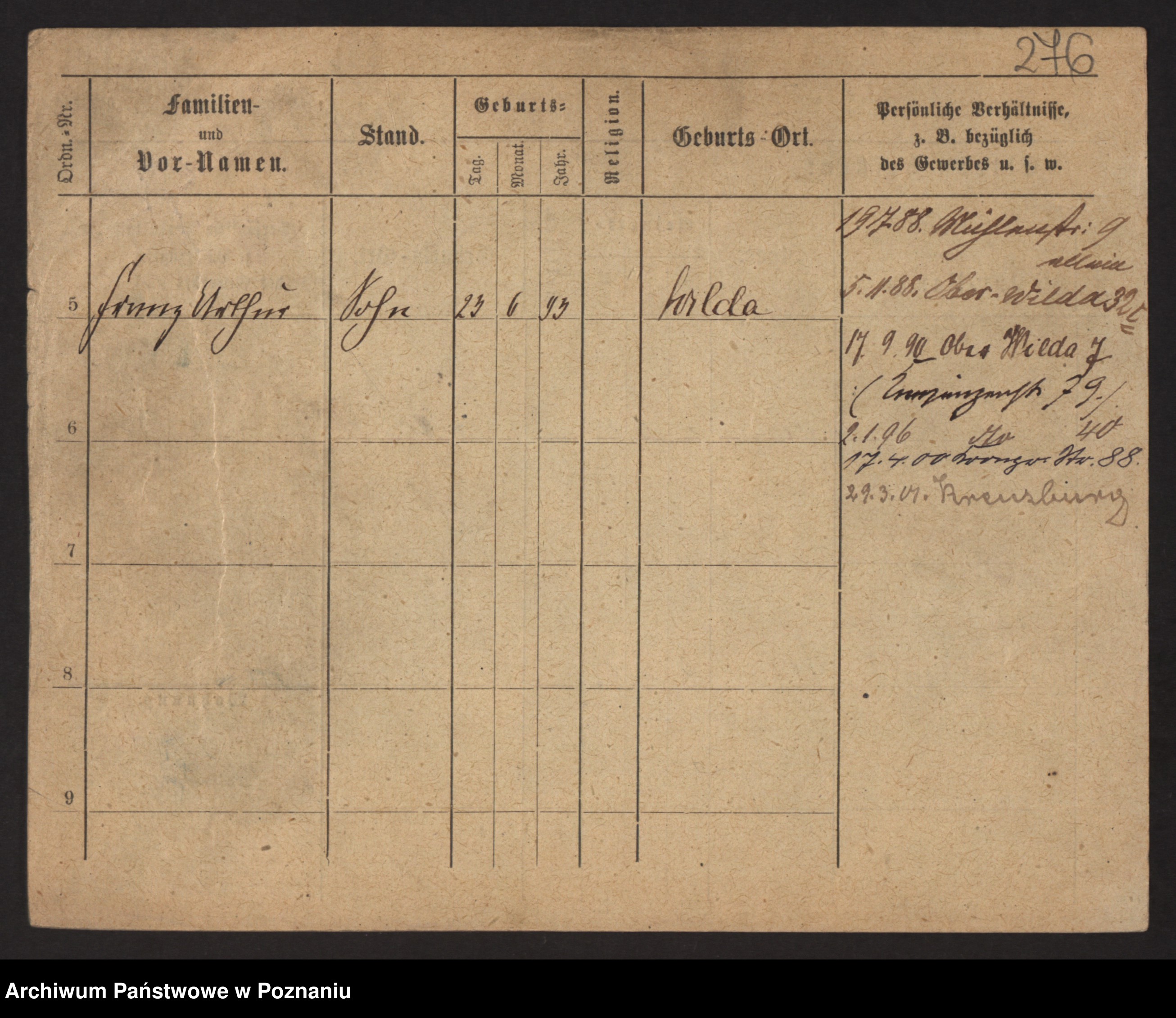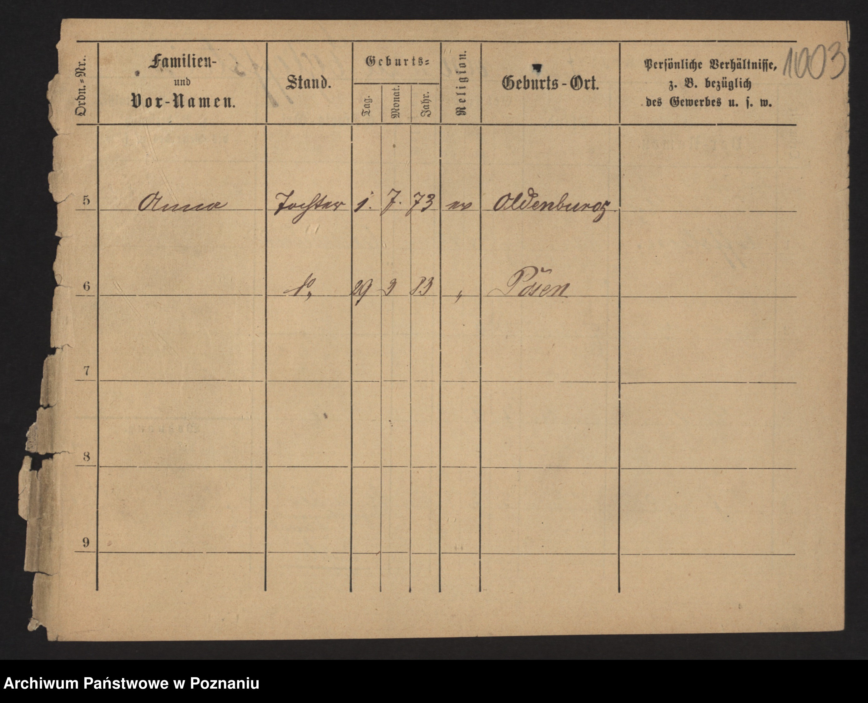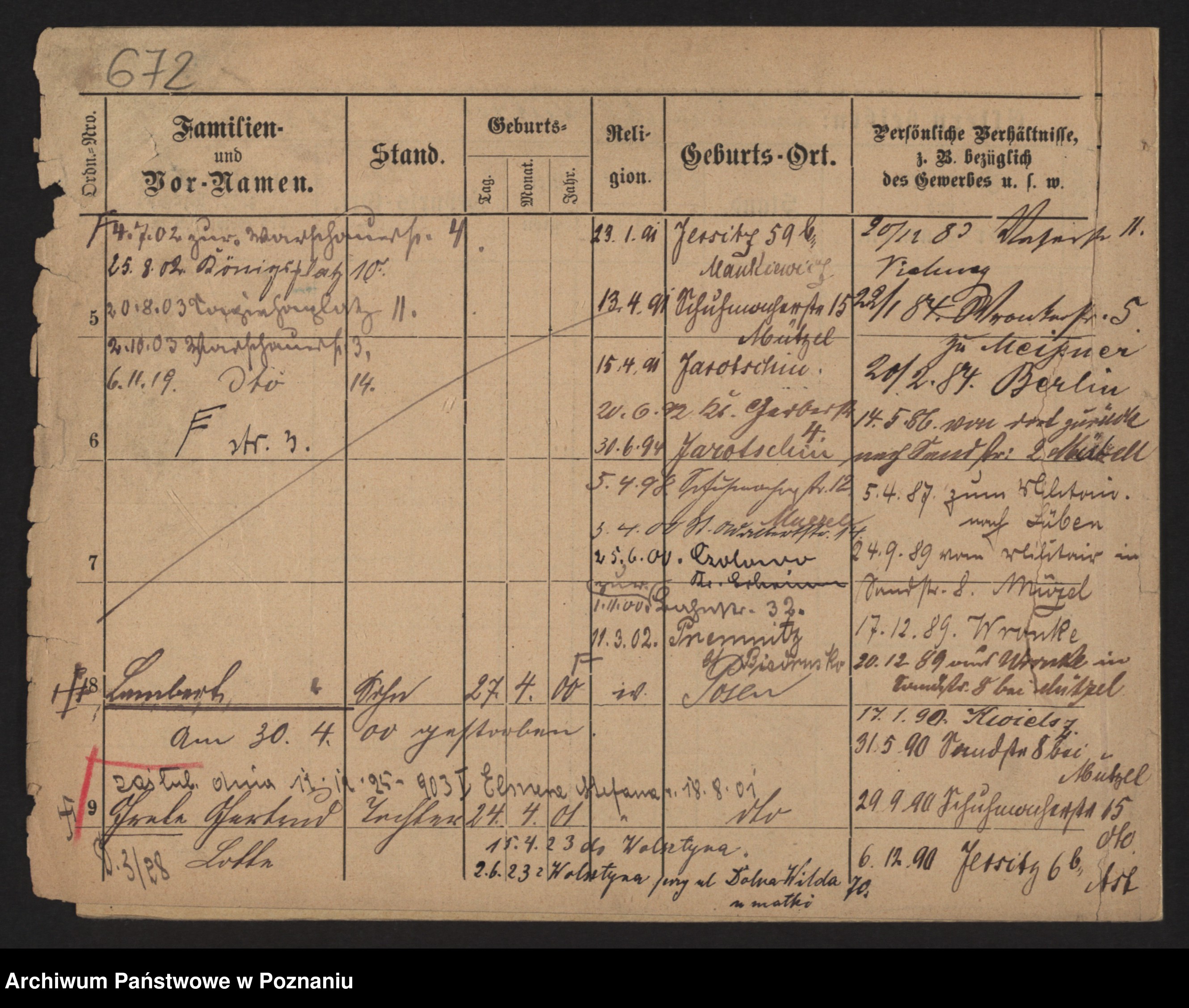 Podgląd karty osobowej dostępny jest po kliknięciu na nazwisko lub ikonkę karty. Można dokonywać powiększenia (ikony na górze) lub przechodzić między kolejnymi skanami (strzałki po bokach).