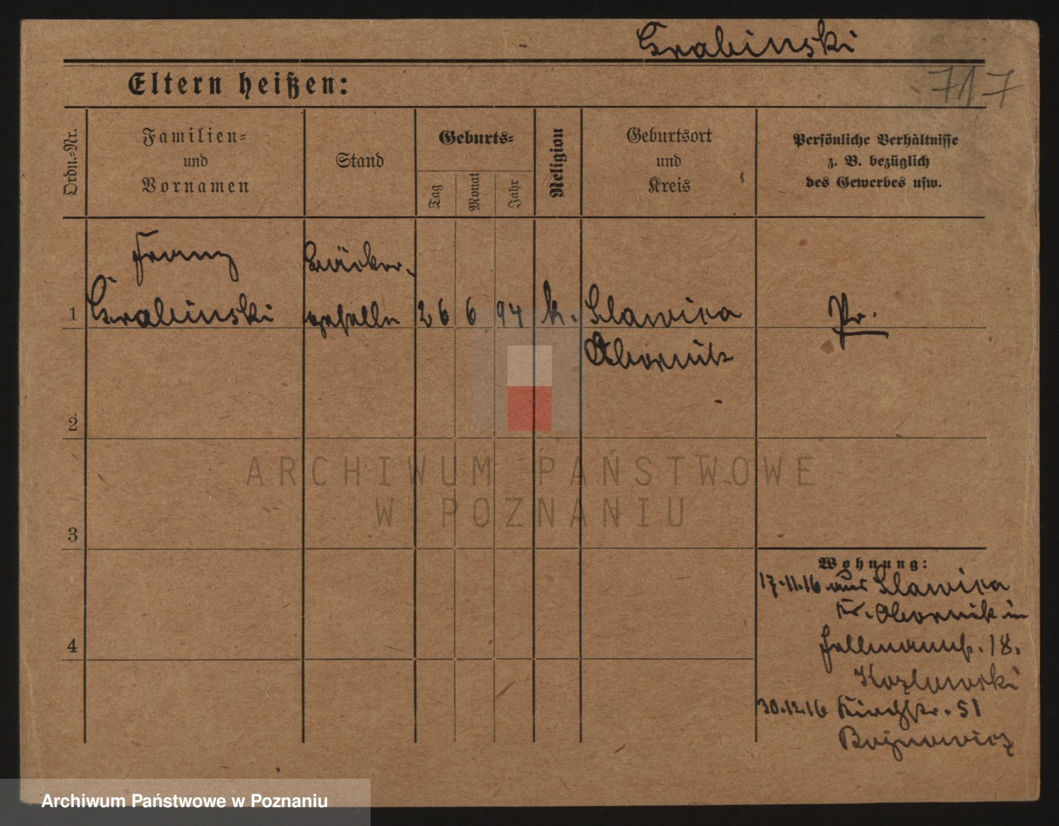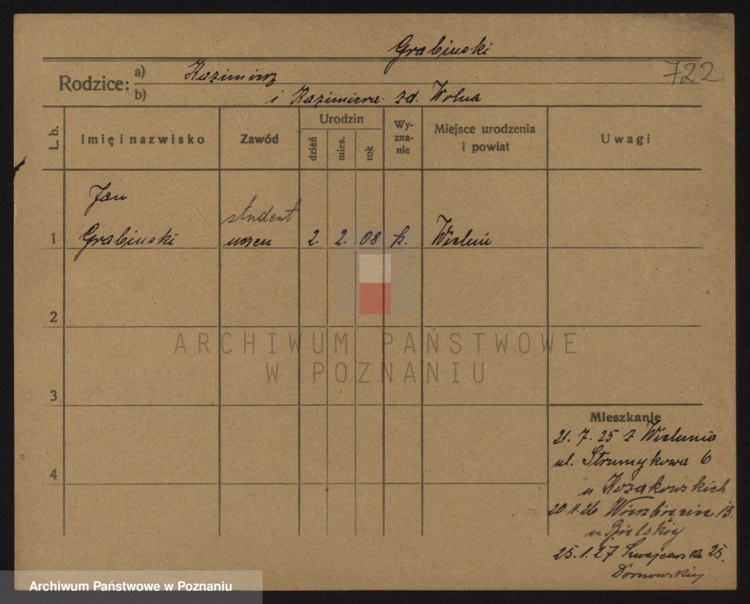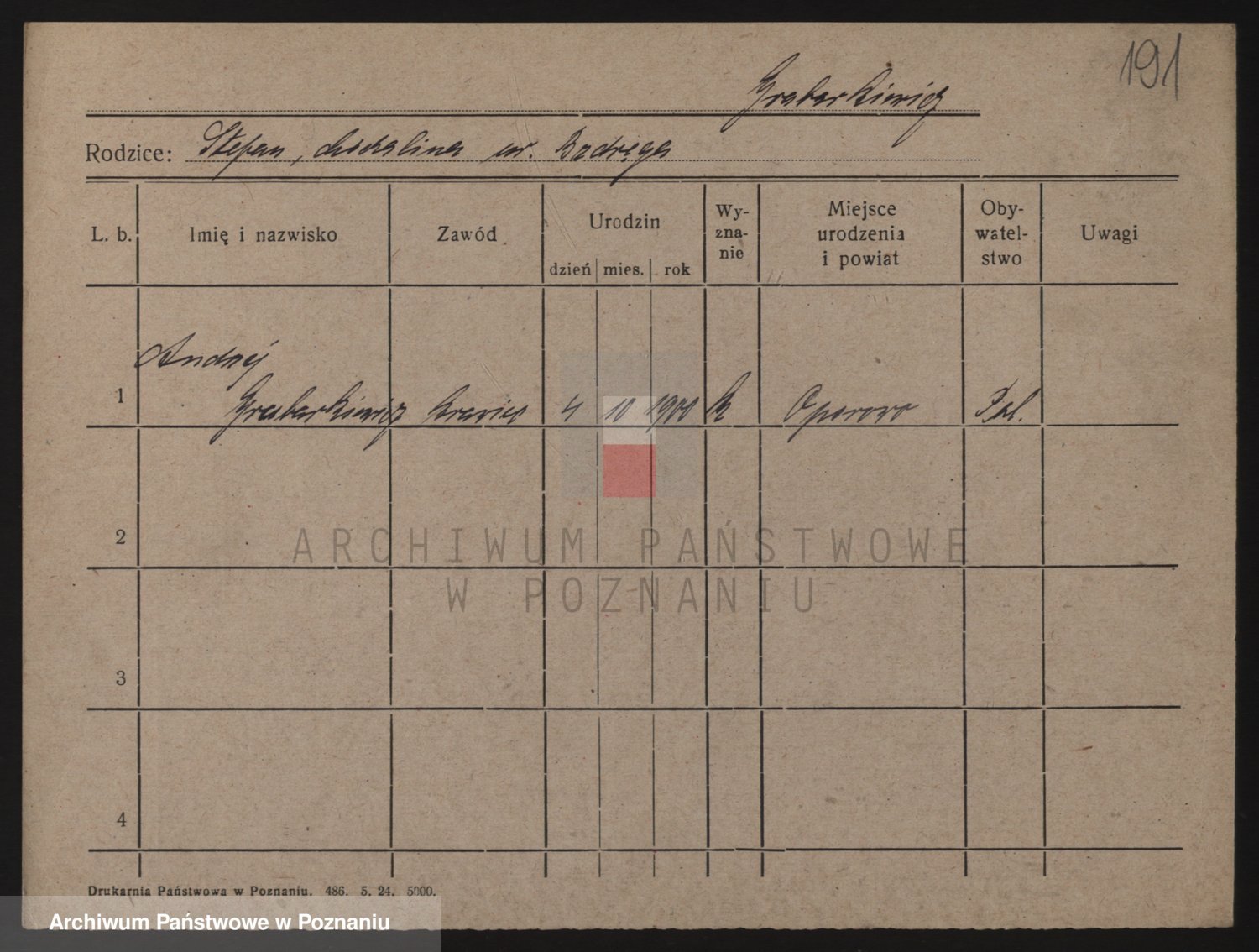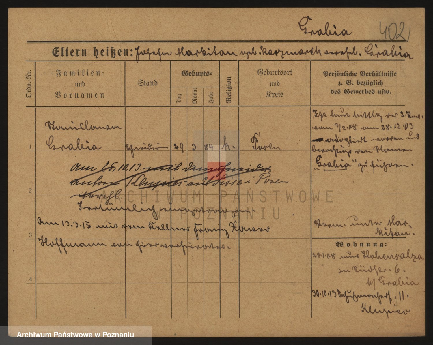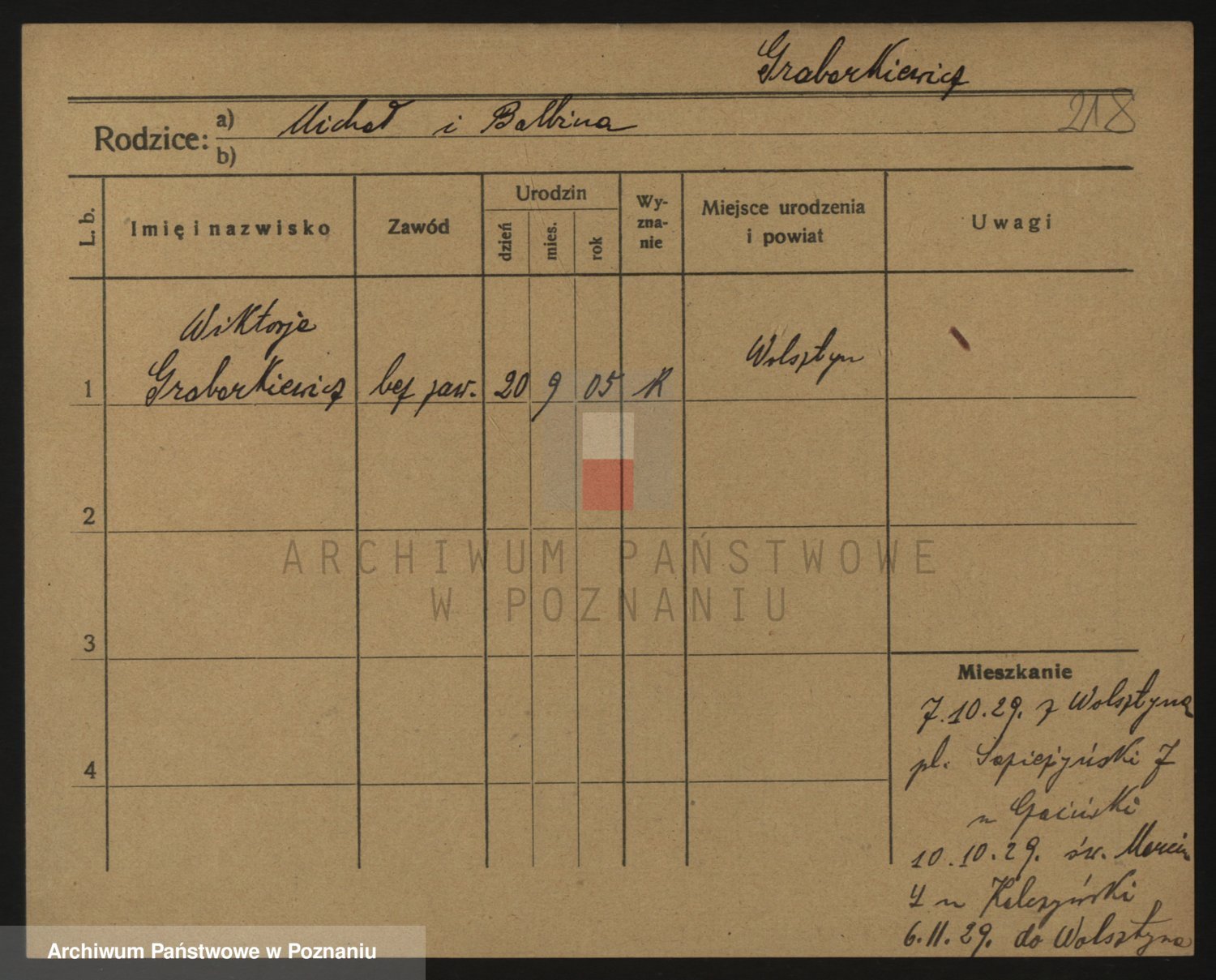 Podgląd karty osobowej dostępny jest po kliknięciu na nazwisko lub ikonkę karty. Można dokonywać powiększenia (ikony na górze) lub przechodzić między kolejnymi skanami (strzałki po bokach).