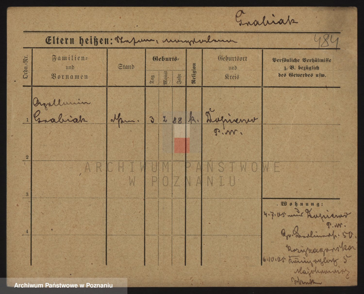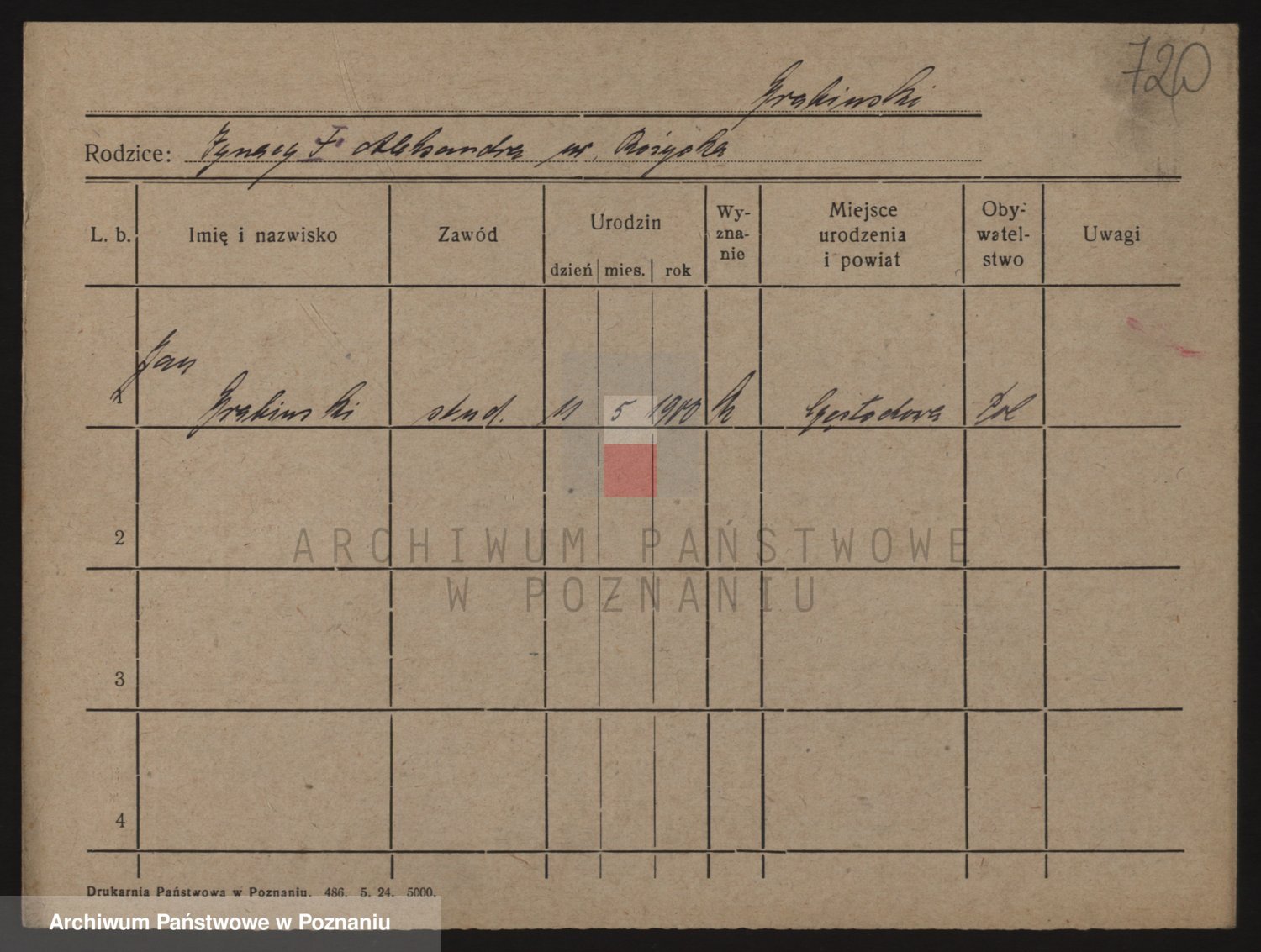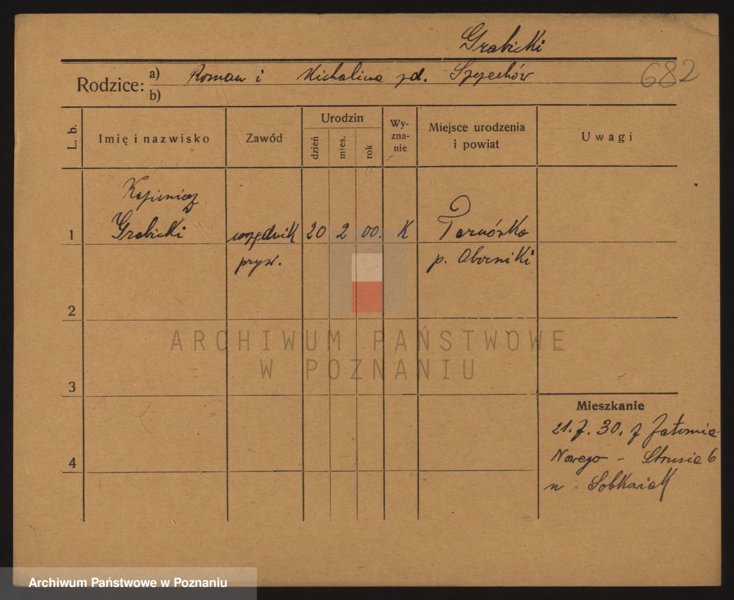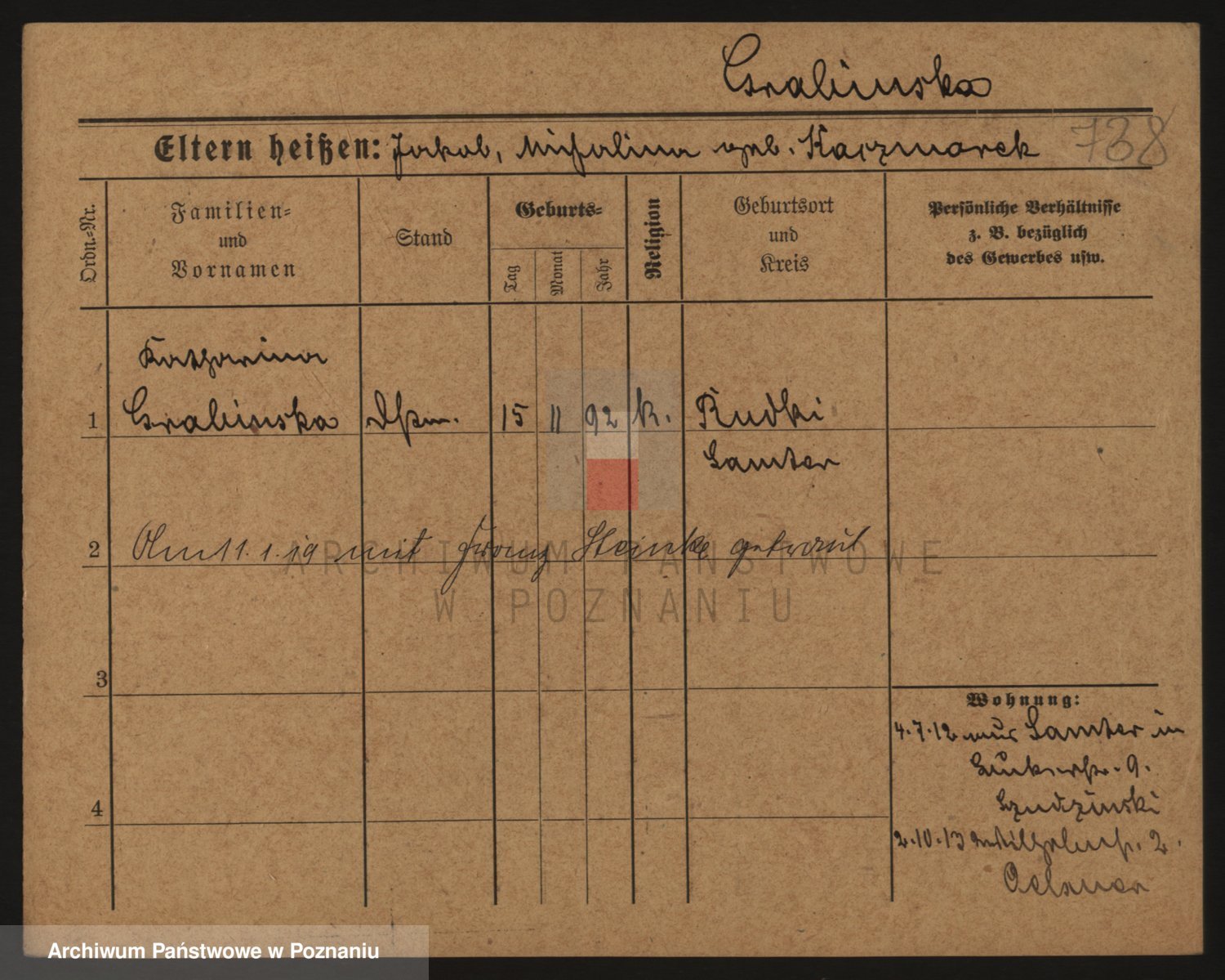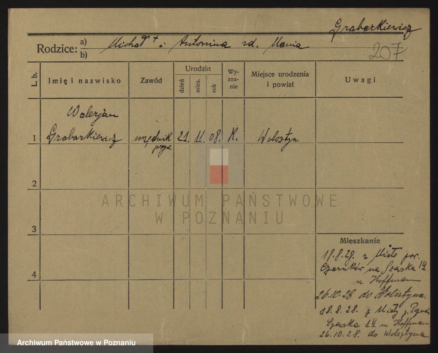 Podgląd karty osobowej dostępny jest po kliknięciu na nazwisko lub ikonkę karty. Można dokonywać powiększenia (ikony na górze) lub przechodzić między kolejnymi skanami (strzałki po bokach).