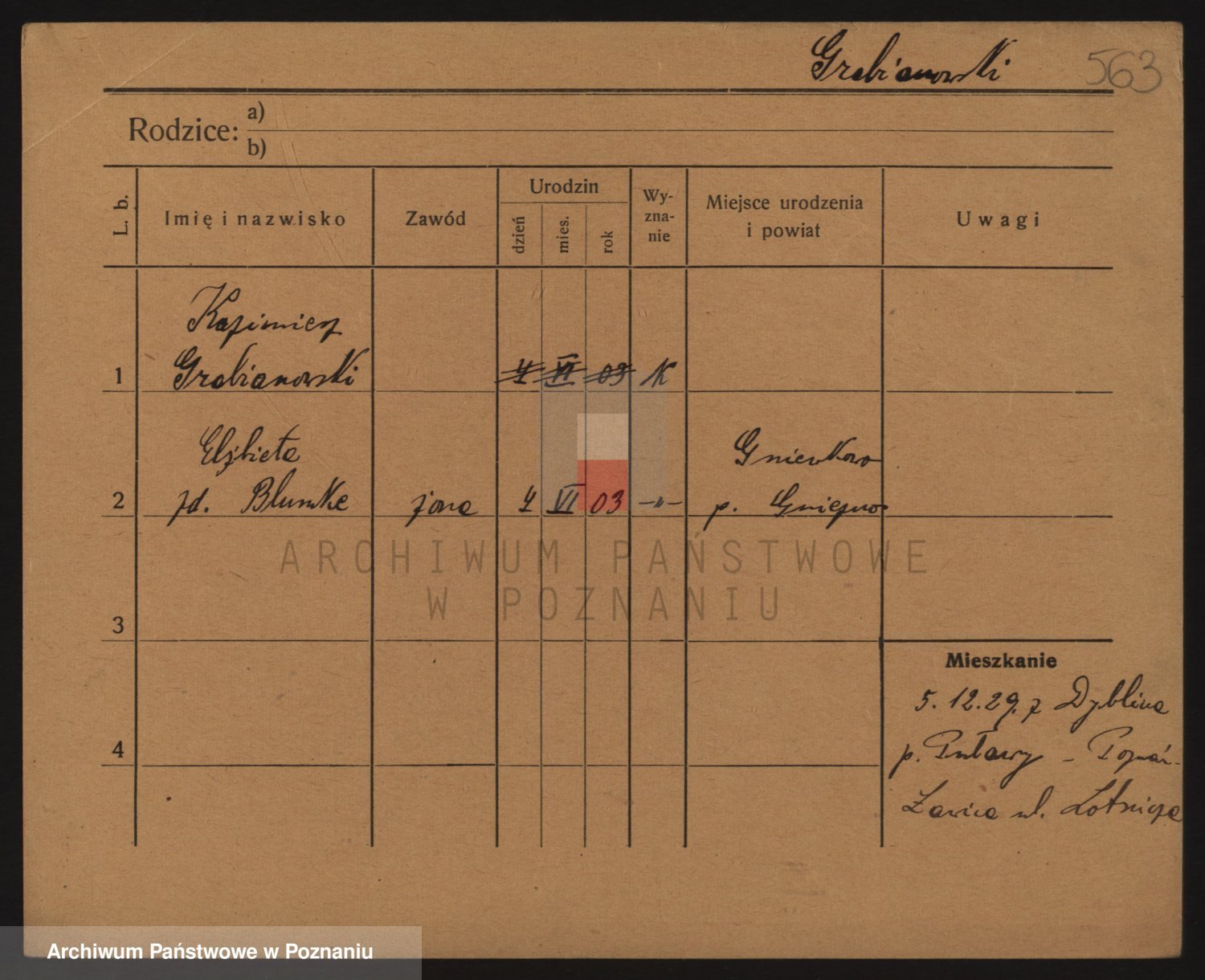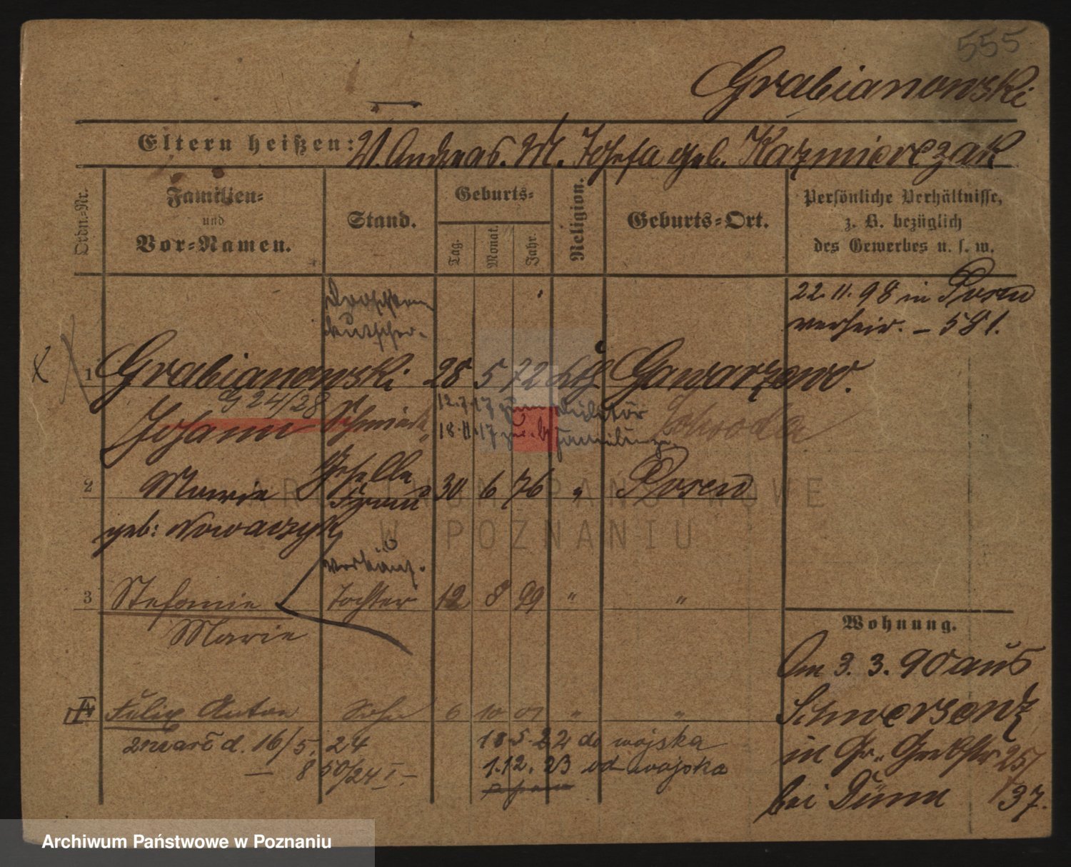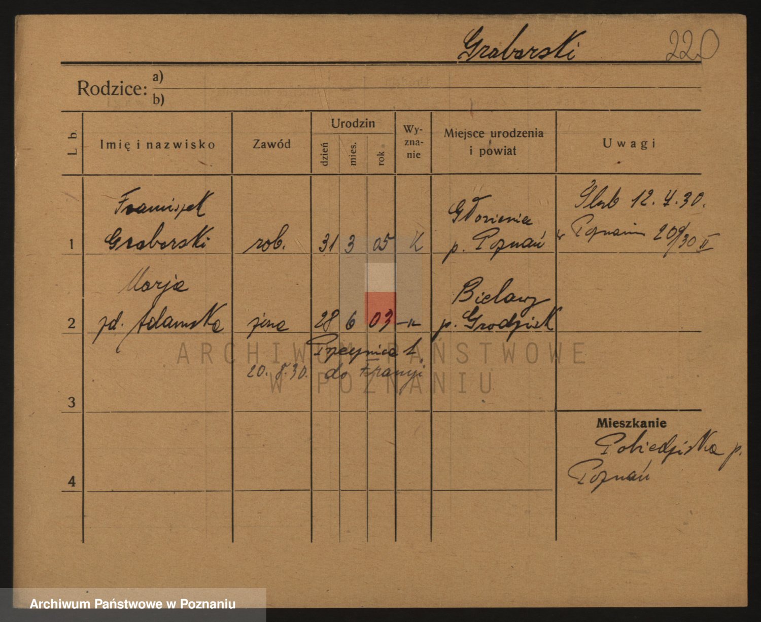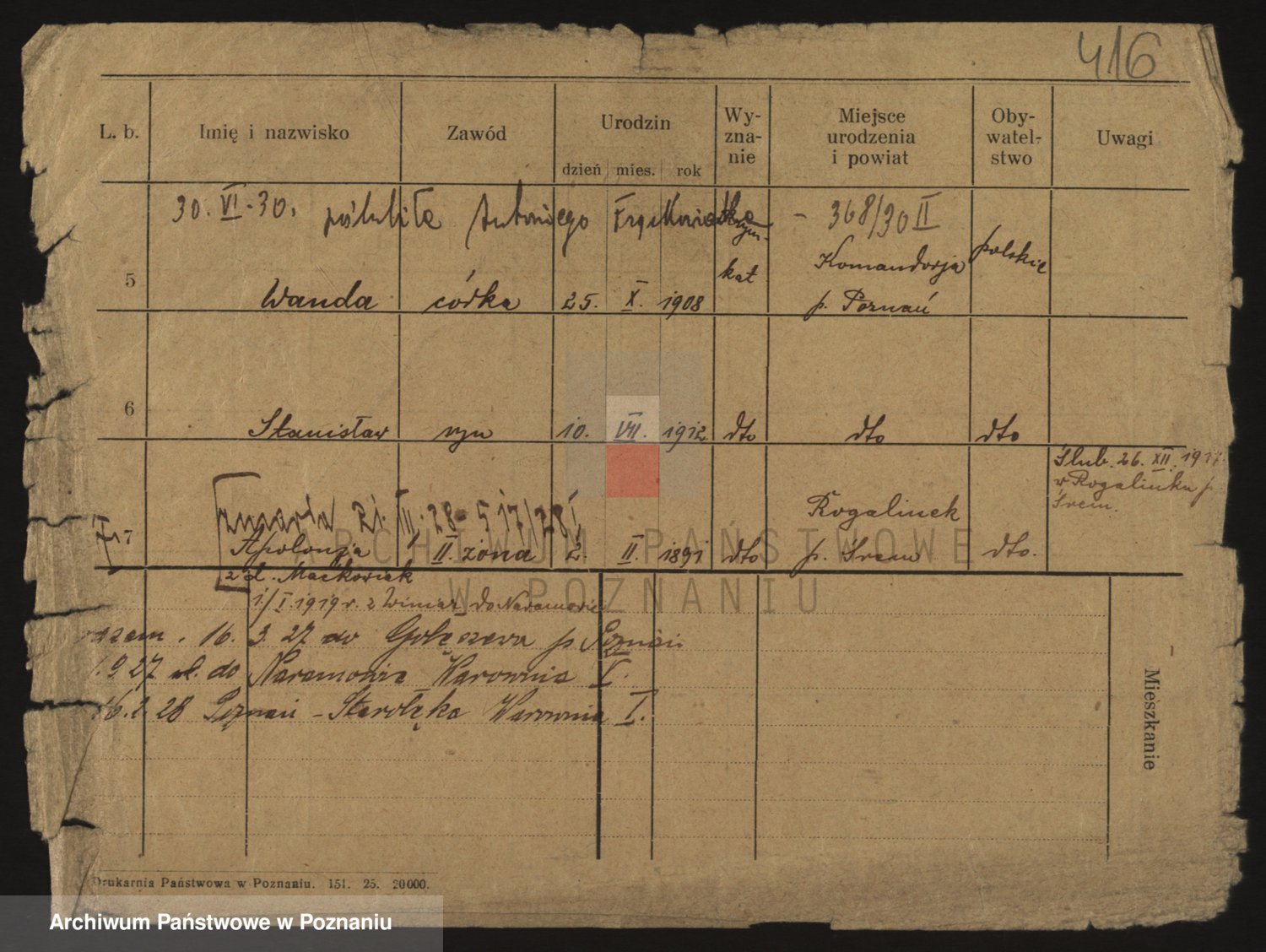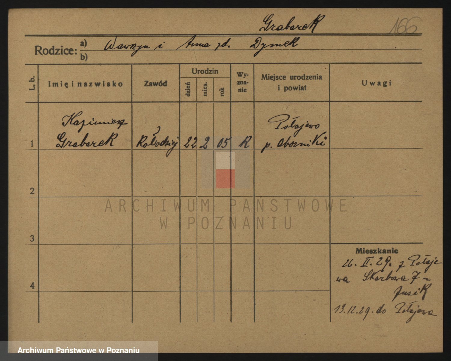 Podgląd karty osobowej dostępny jest po kliknięciu na nazwisko lub ikonkę karty. Można dokonywać powiększenia (ikony na górze) lub przechodzić między kolejnymi skanami (strzałki po bokach).