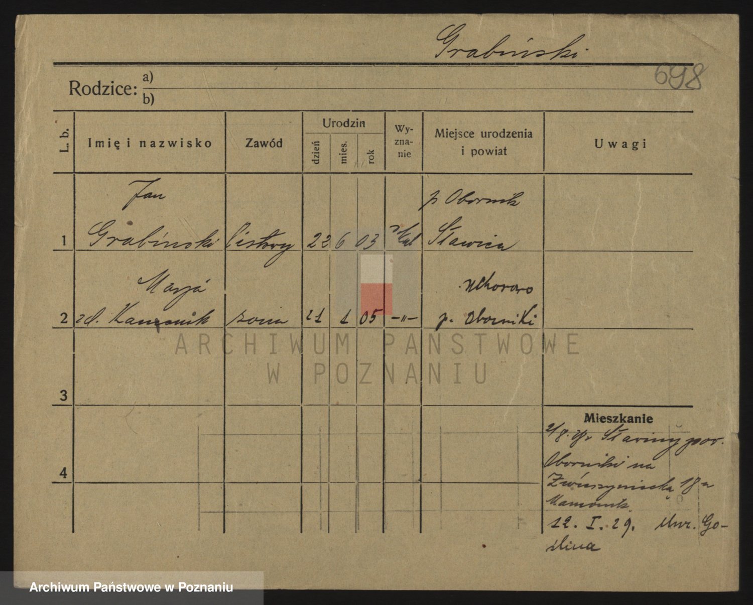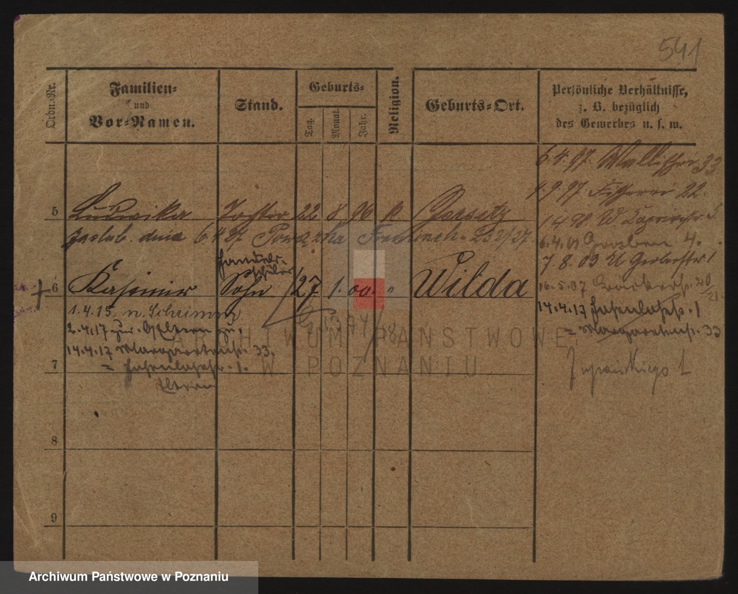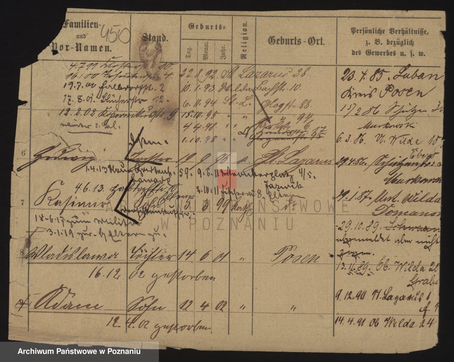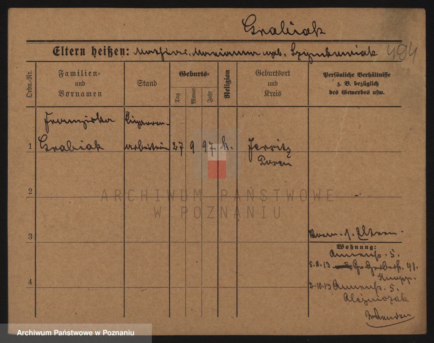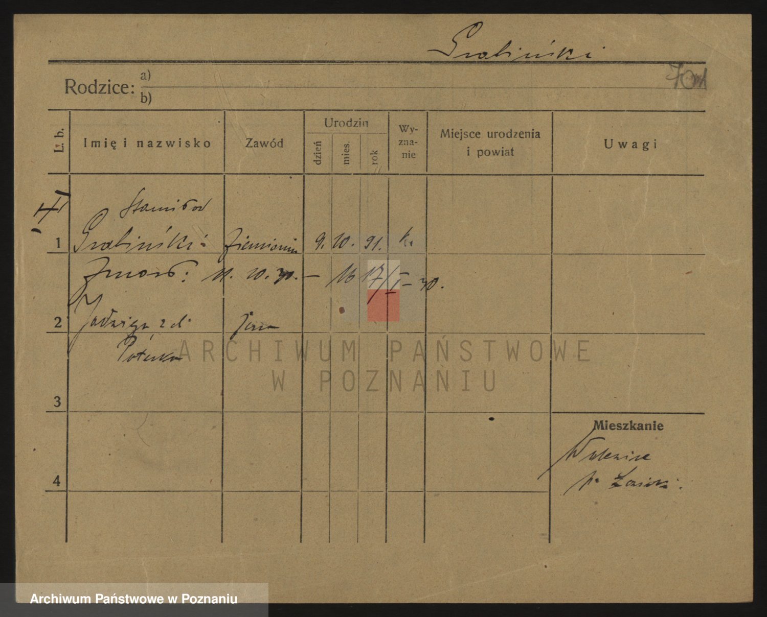 Podgląd karty osobowej dostępny jest po kliknięciu na nazwisko lub ikonkę karty. Można dokonywać powiększenia (ikony na górze) lub przechodzić między kolejnymi skanami (strzałki po bokach).