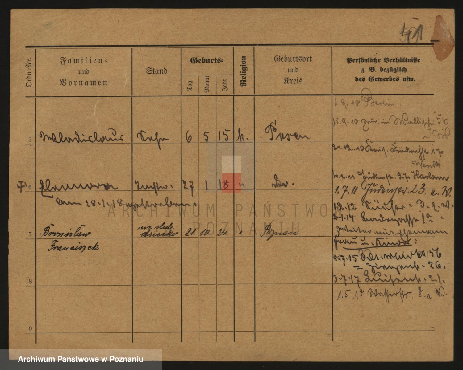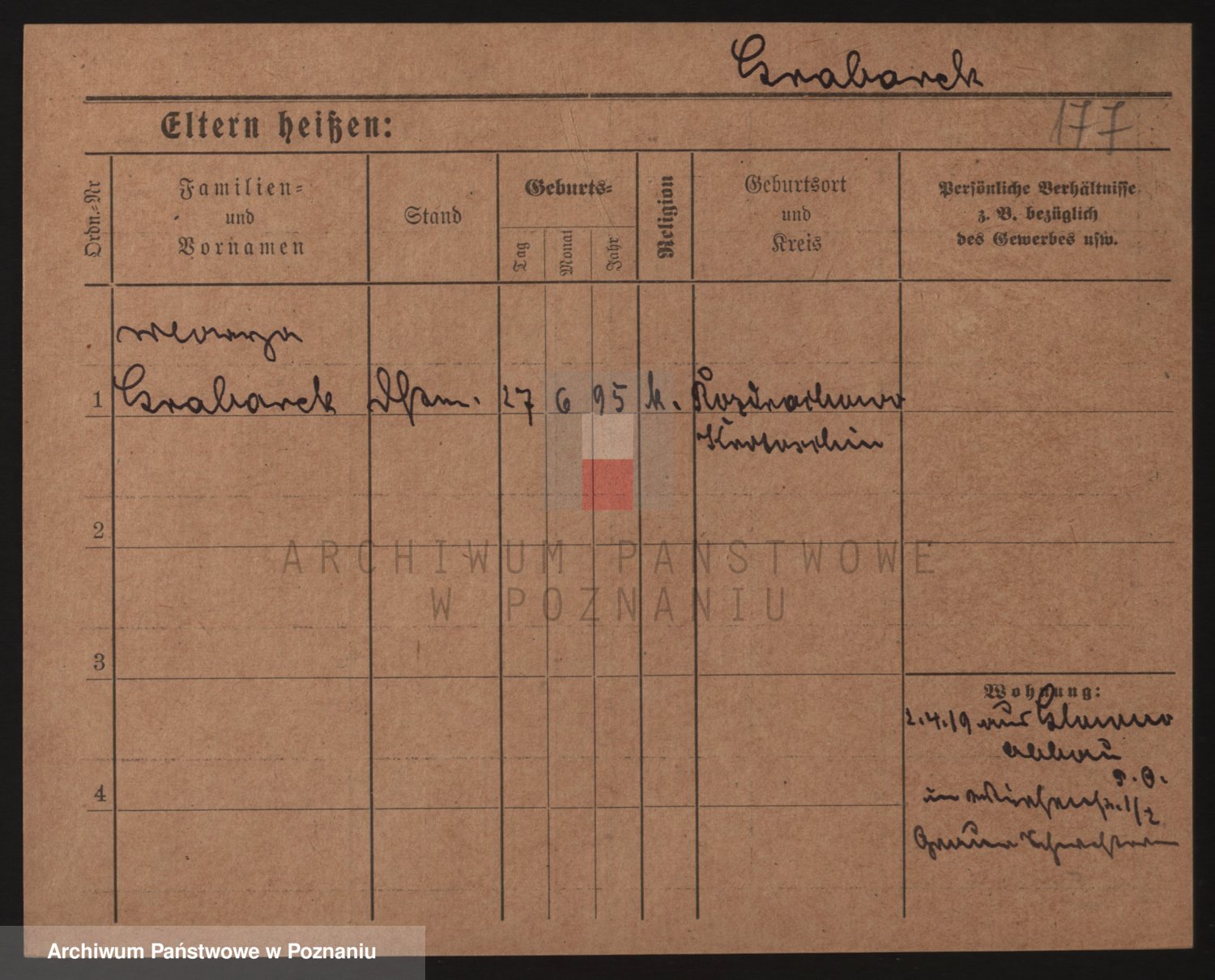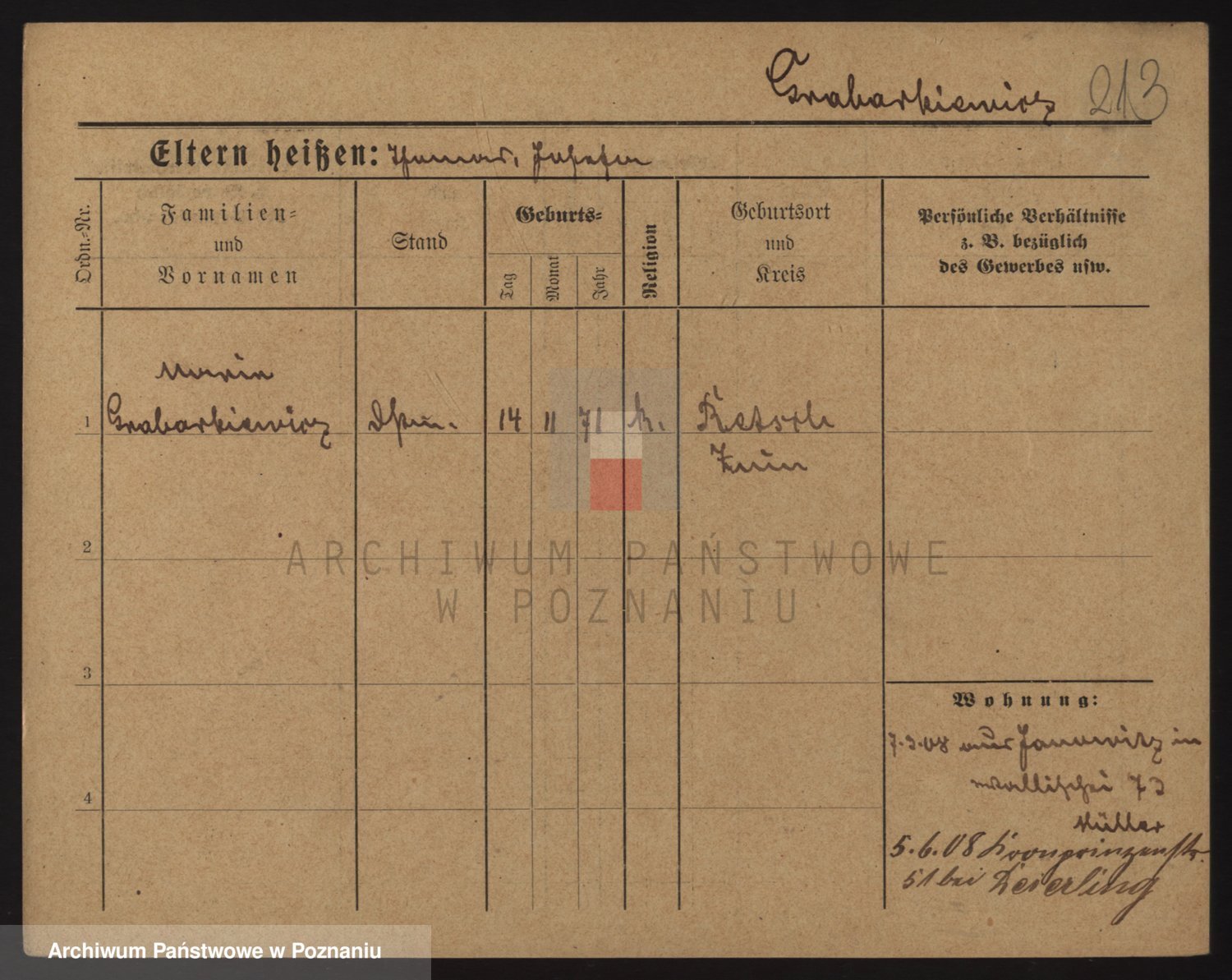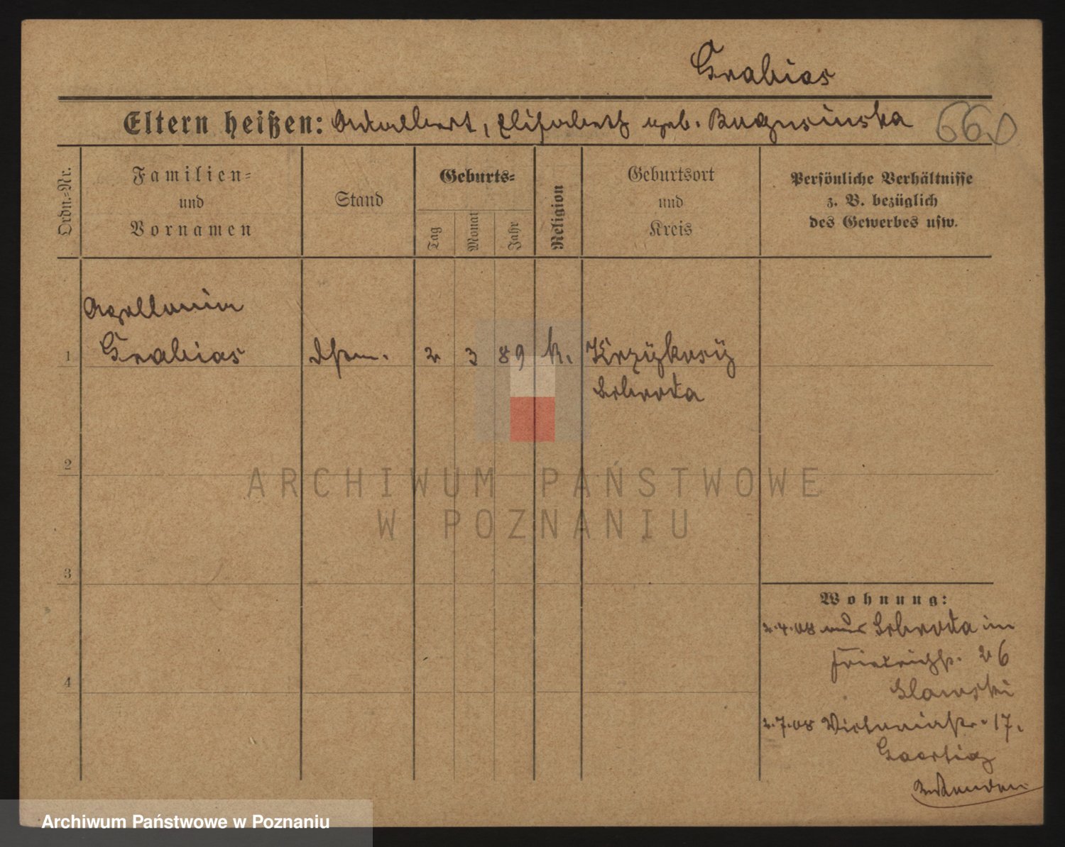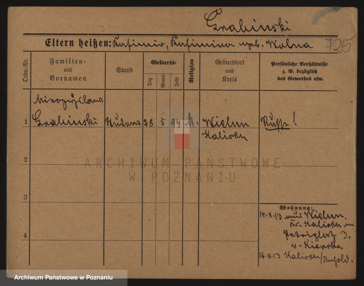 Podgląd karty osobowej dostępny jest po kliknięciu na nazwisko lub ikonkę karty. Można dokonywać powiększenia (ikony na górze) lub przechodzić między kolejnymi skanami (strzałki po bokach).